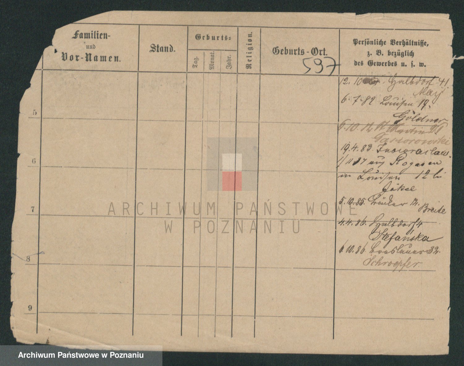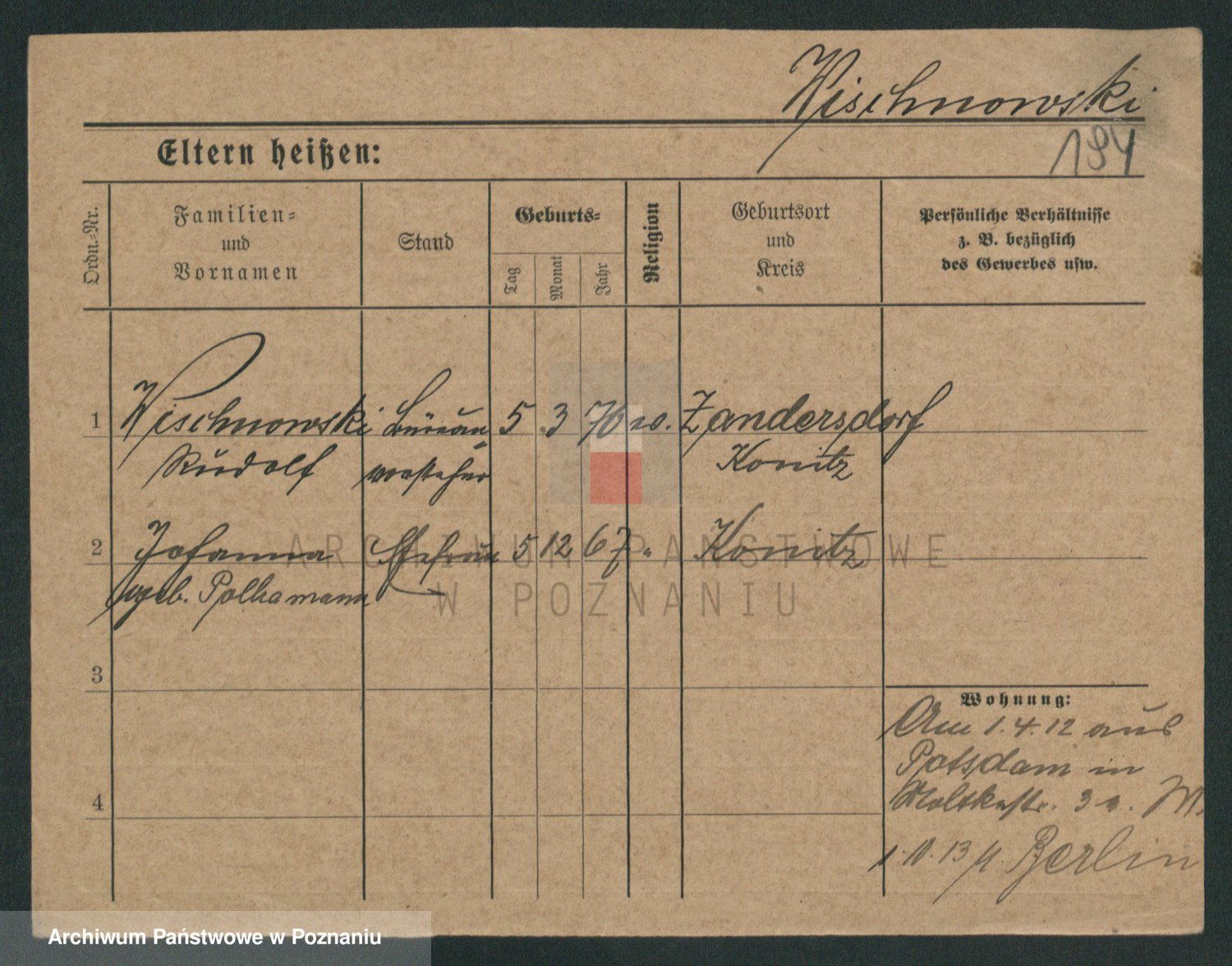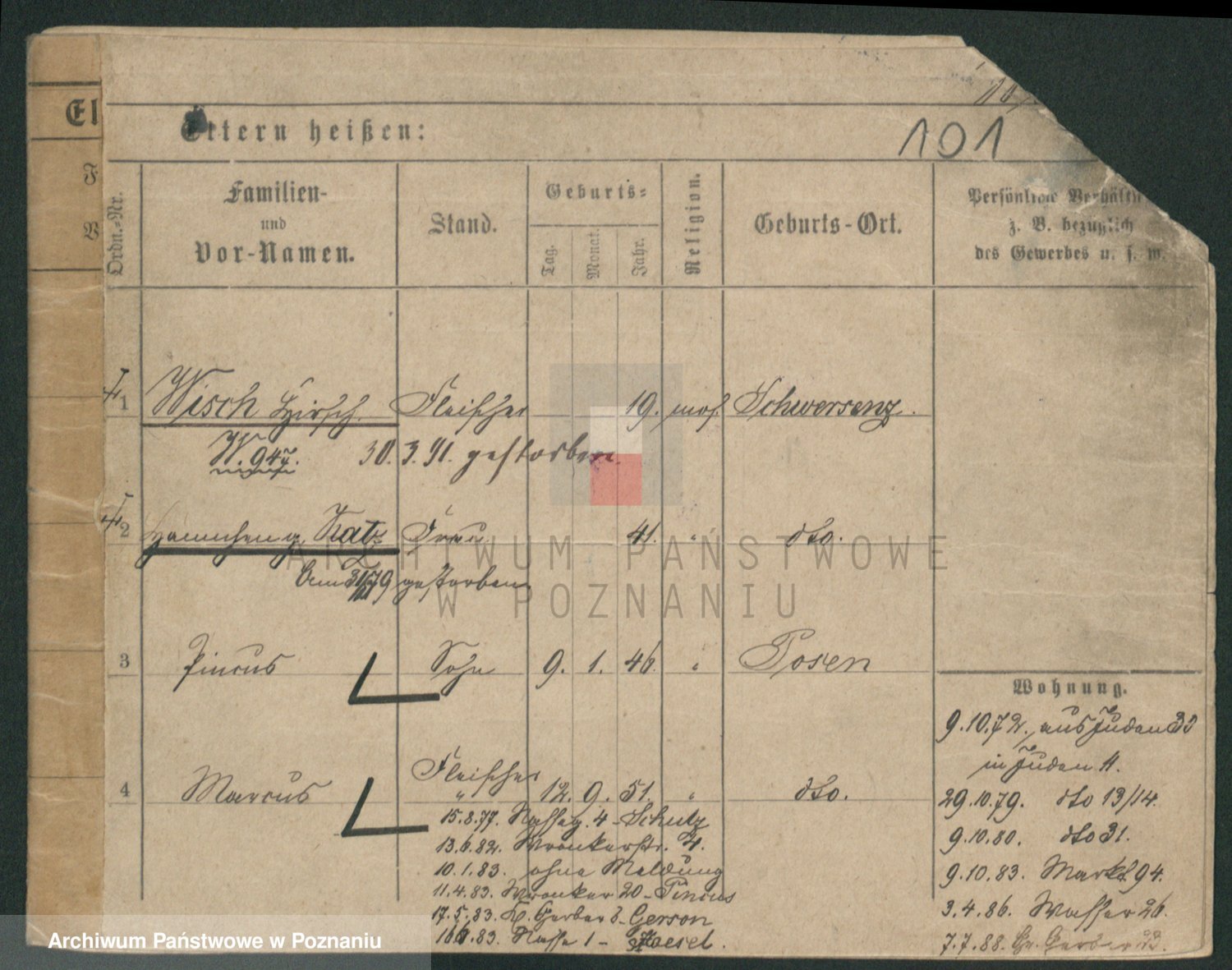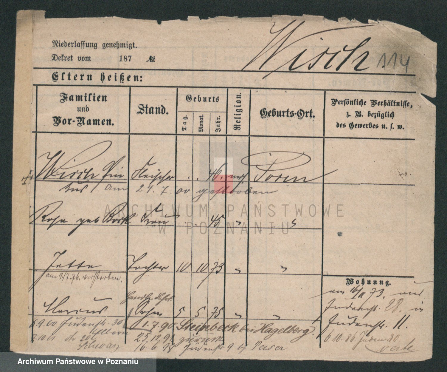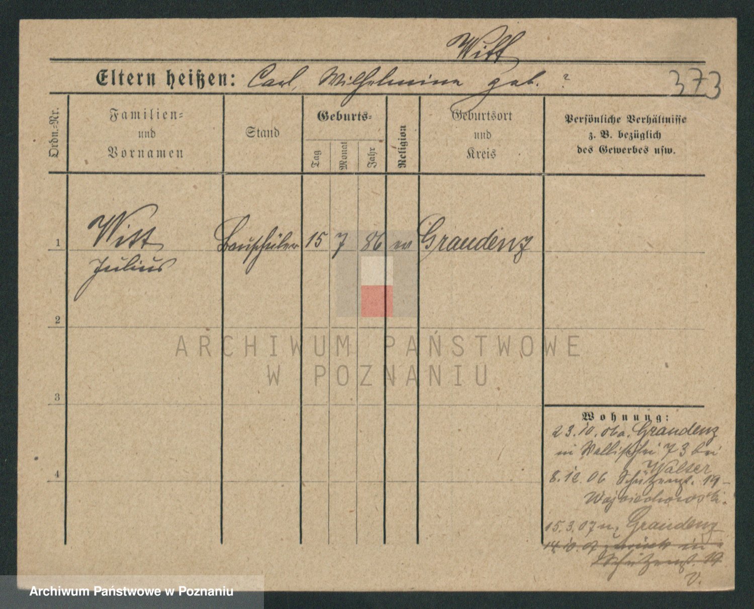 Podgląd karty osobowej dostępny jest po kliknięciu na nazwisko lub ikonkę karty. Można dokonywać powiększenia (ikony na górze) lub przechodzić między kolejnymi skanami (strzałki po bokach).