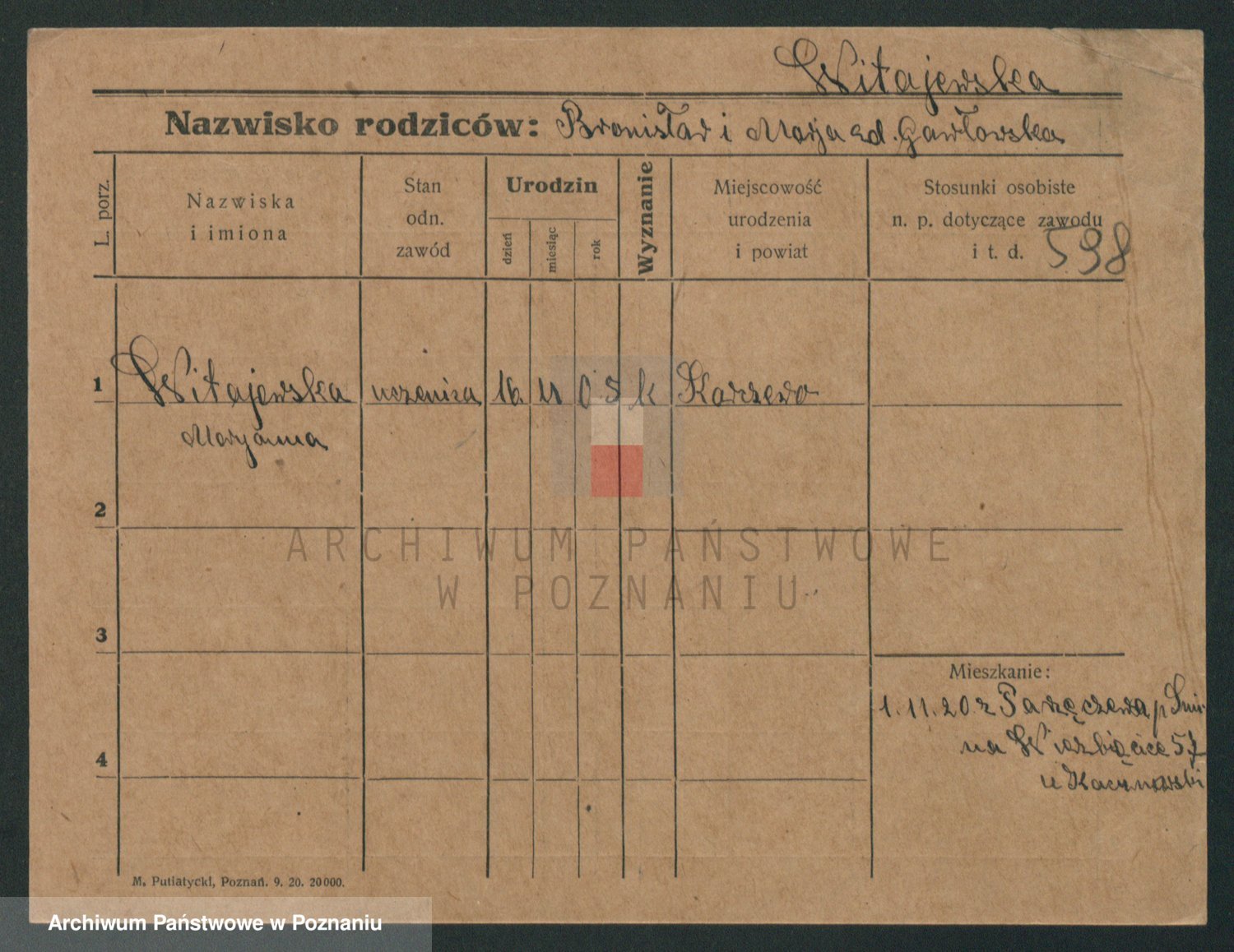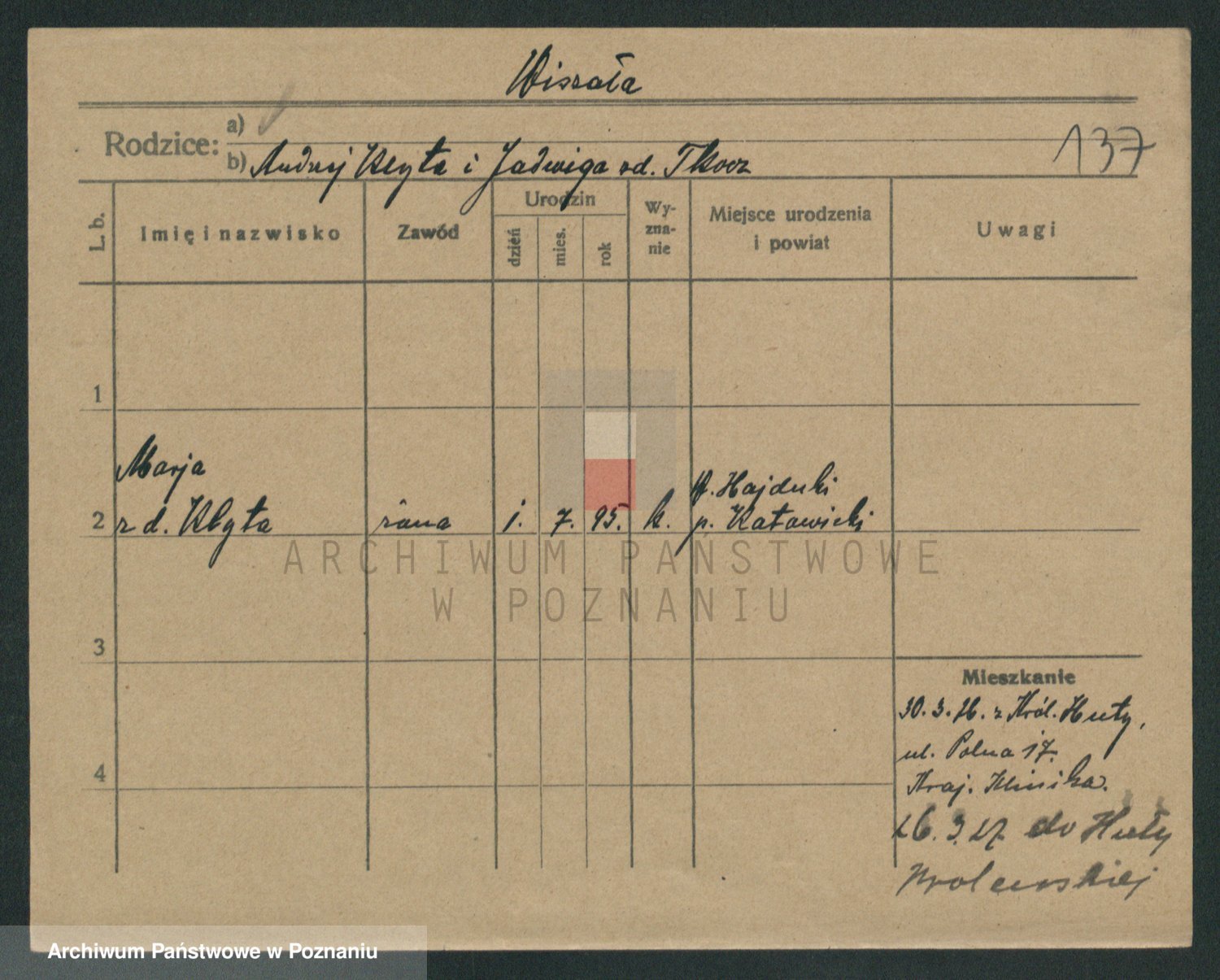Wiśniowska z d. Gawlak, Marja