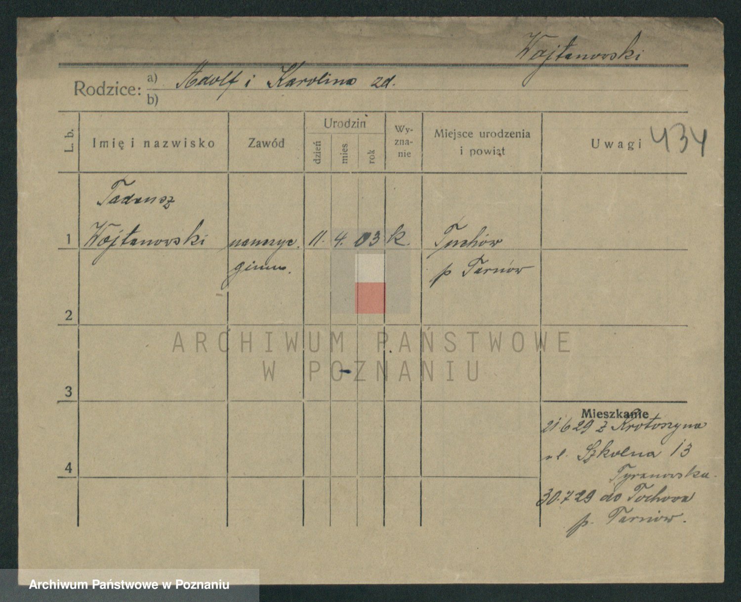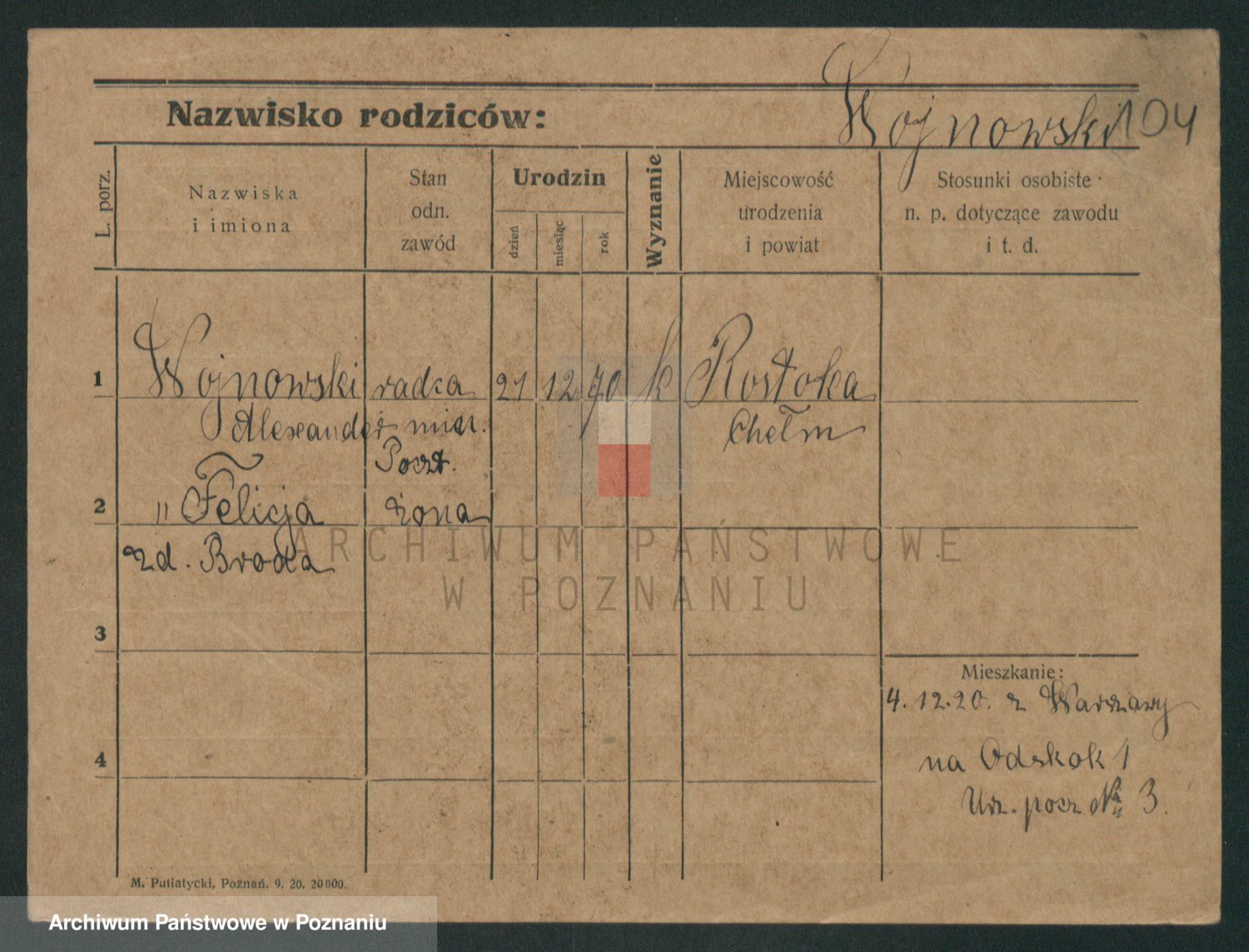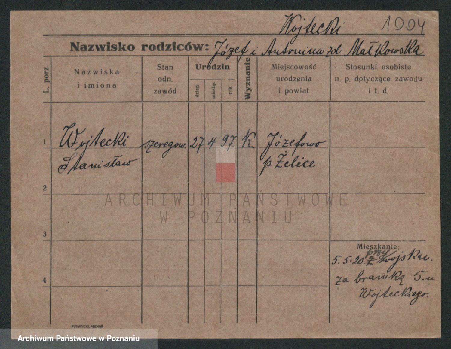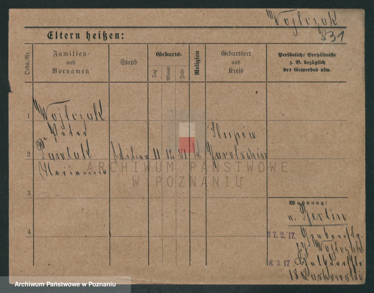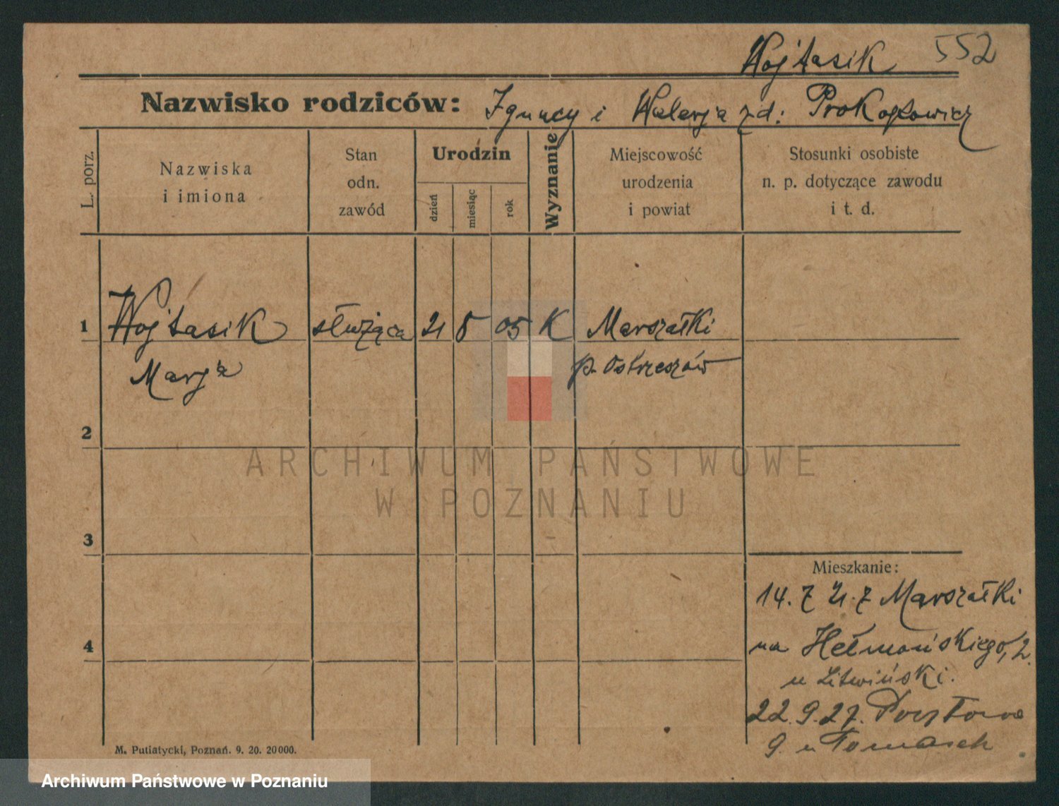 Podgląd karty osobowej dostępny jest po kliknięciu na nazwisko lub ikonkę karty. Można dokonywać powiększenia (ikony na górze) lub przechodzić między kolejnymi skanami (strzałki po bokach).