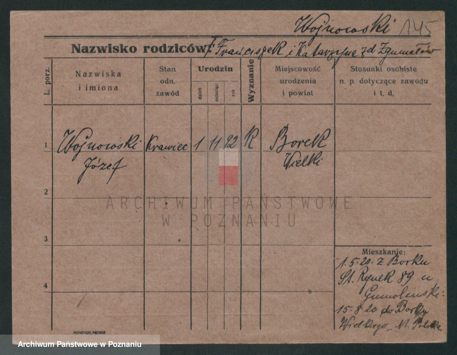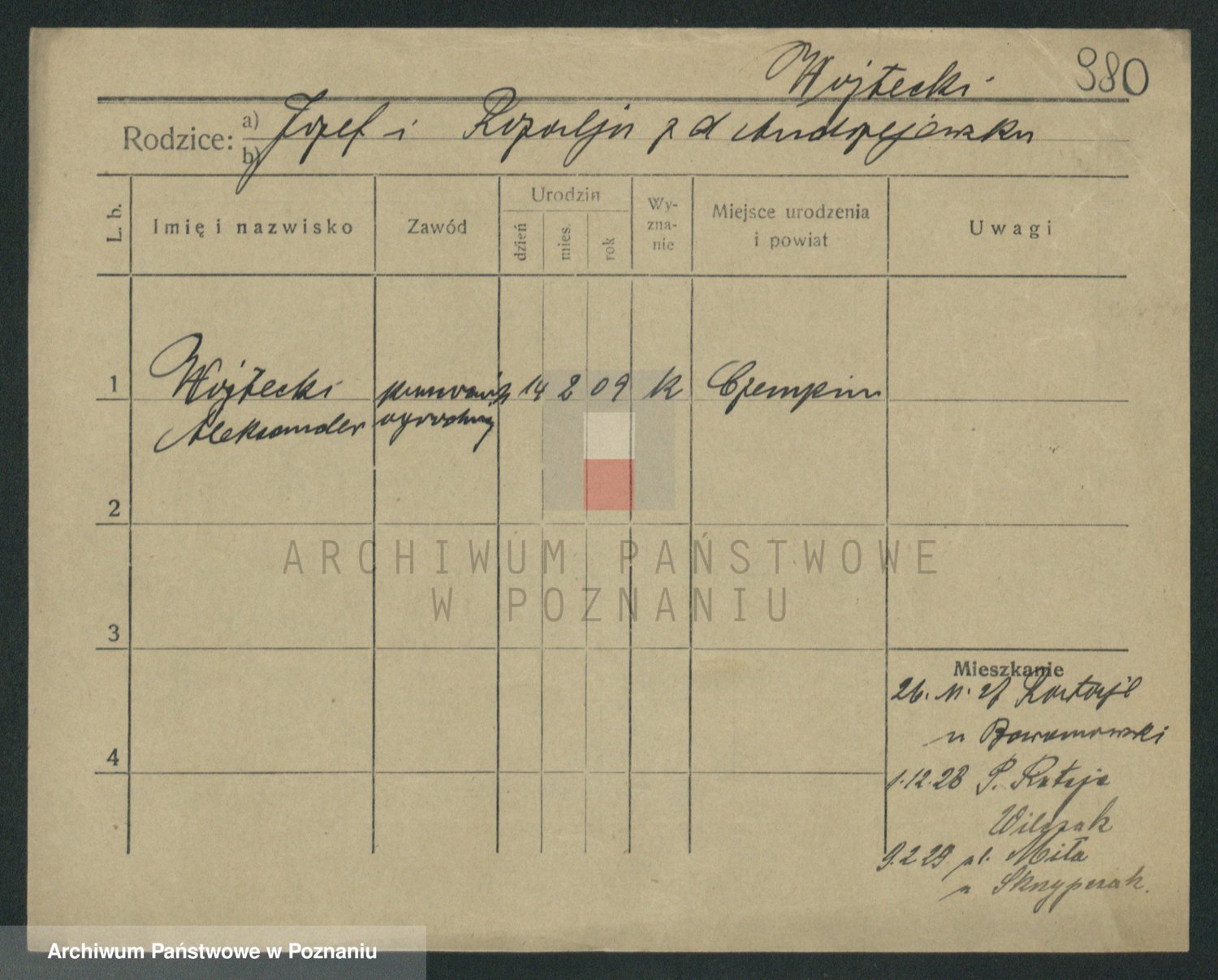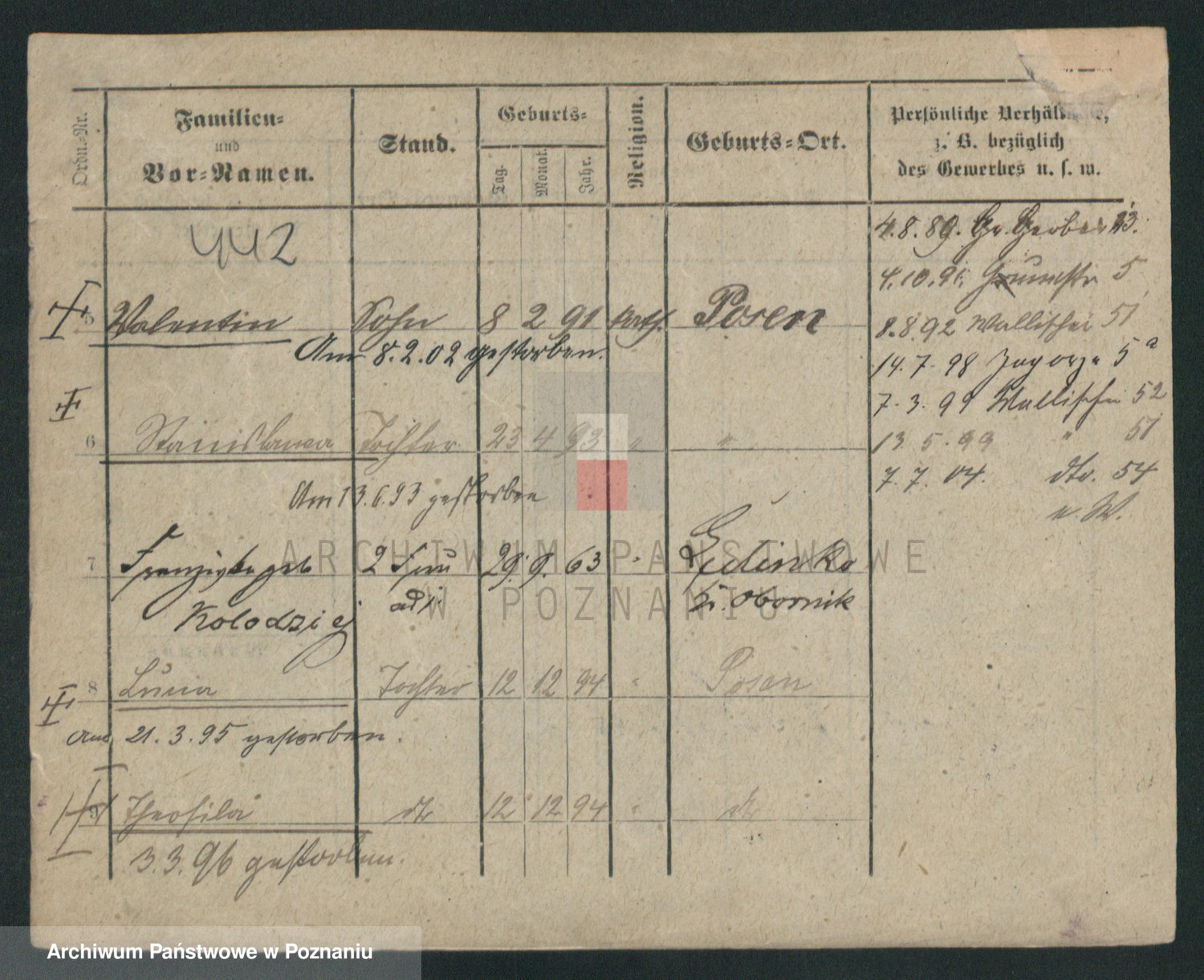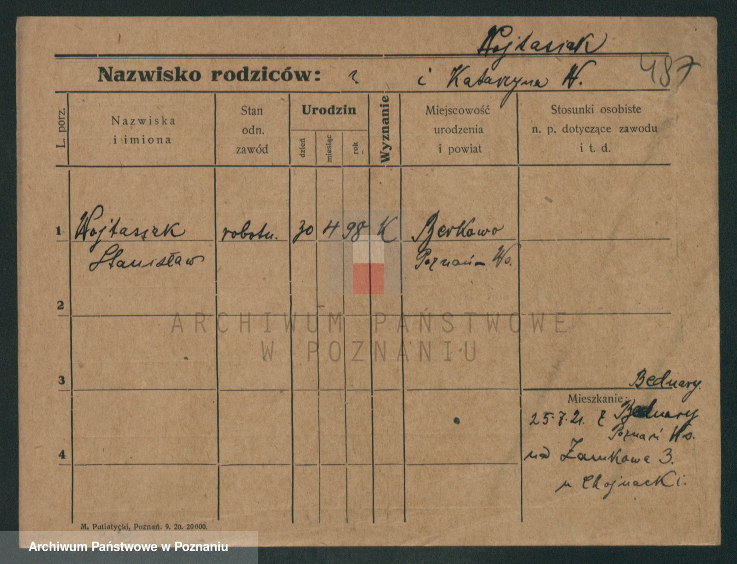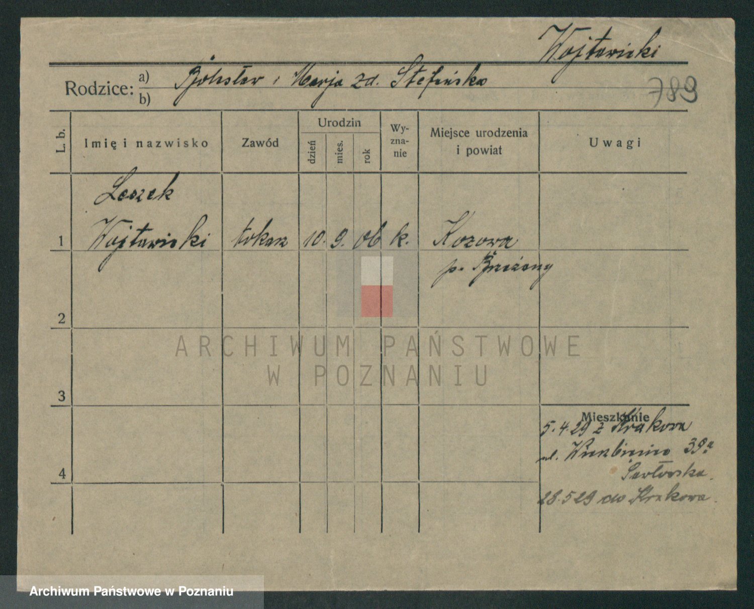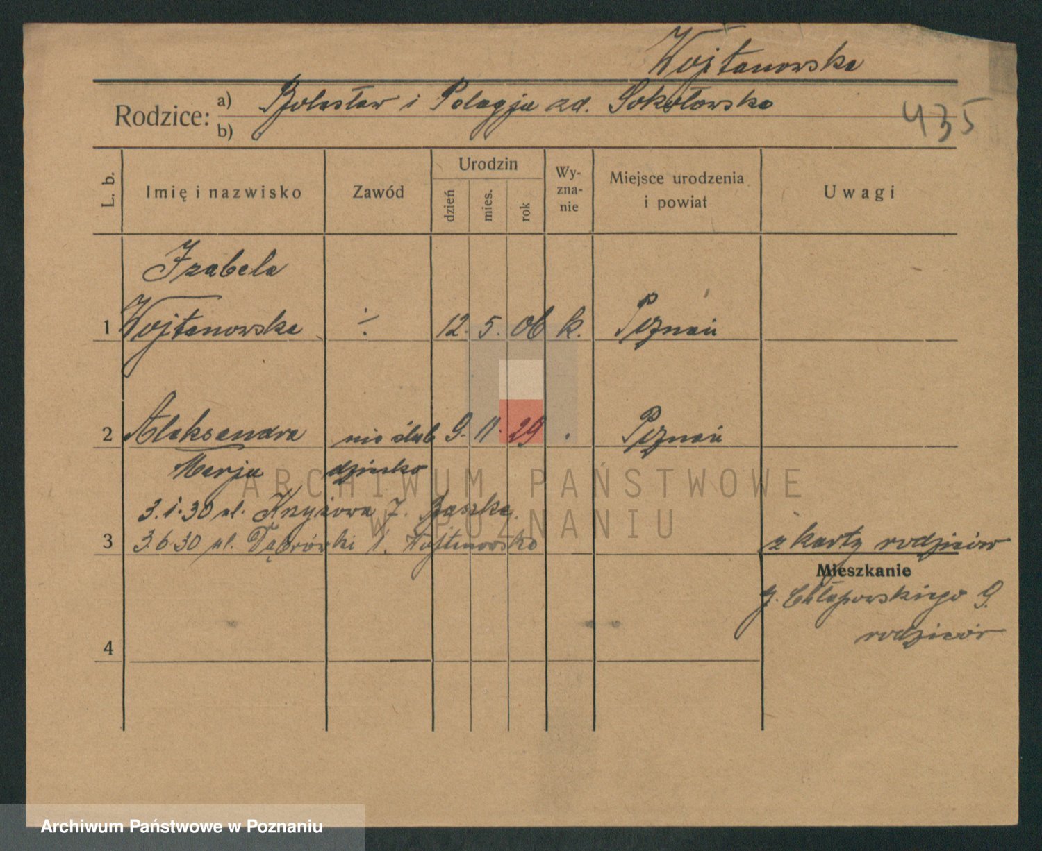 Podgląd karty osobowej dostępny jest po kliknięciu na nazwisko lub ikonkę karty. Można dokonywać powiększenia (ikony na górze) lub przechodzić między kolejnymi skanami (strzałki po bokach).