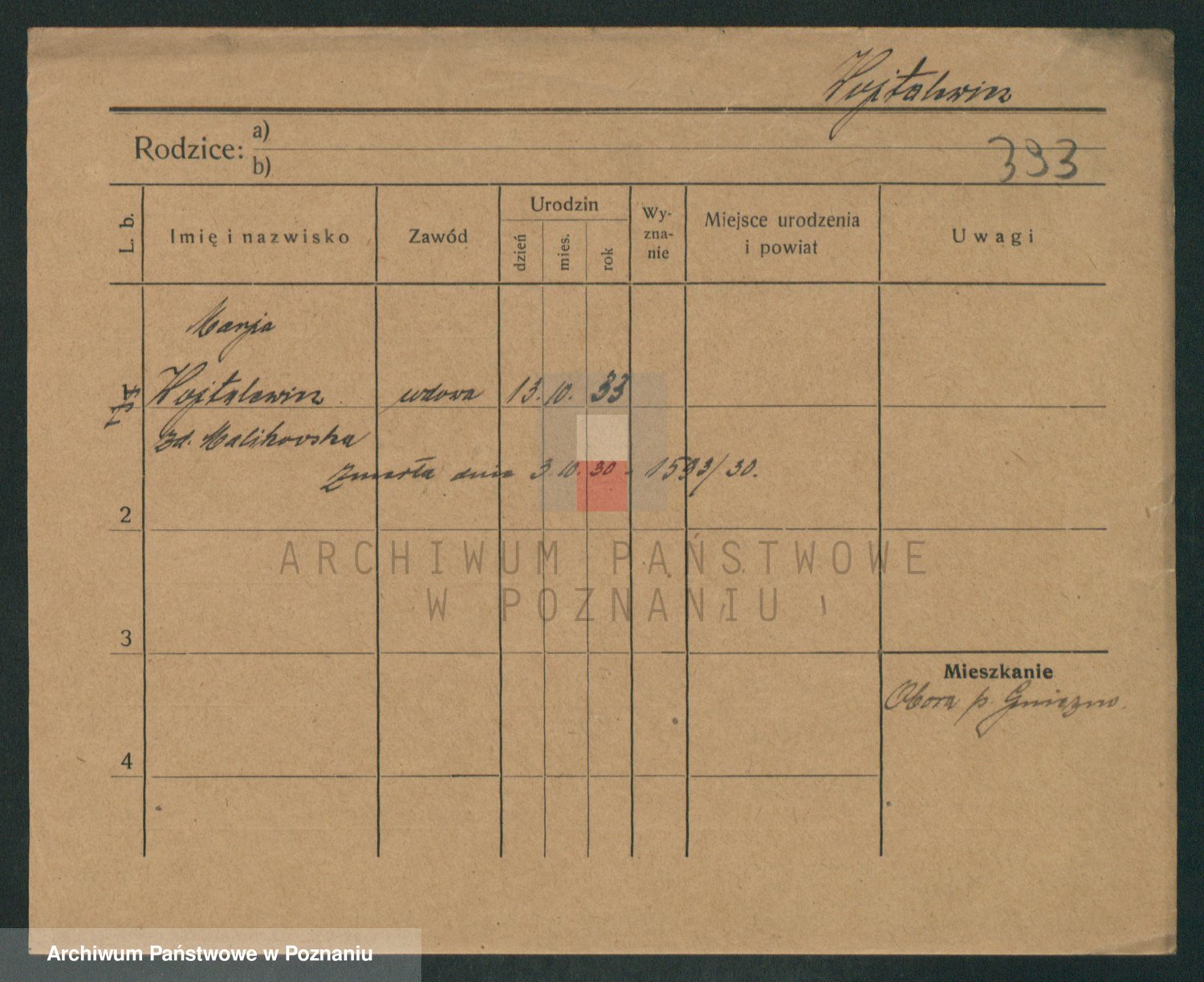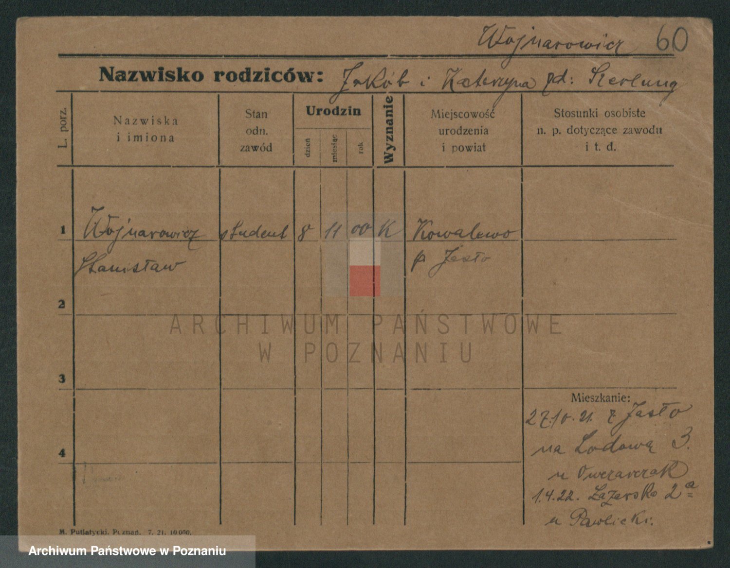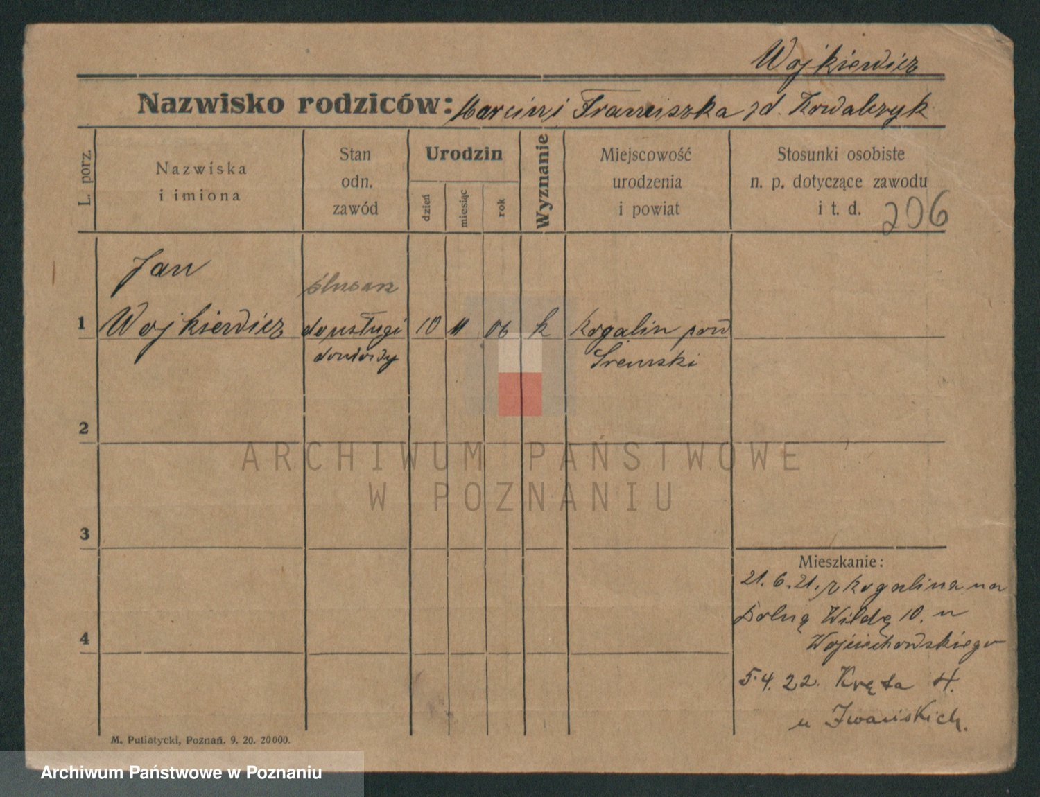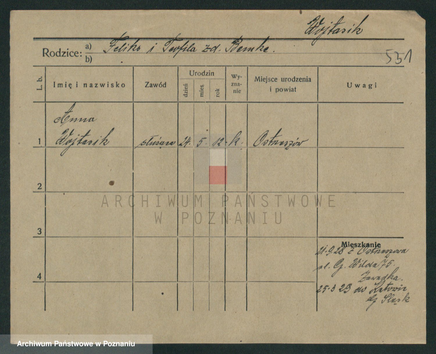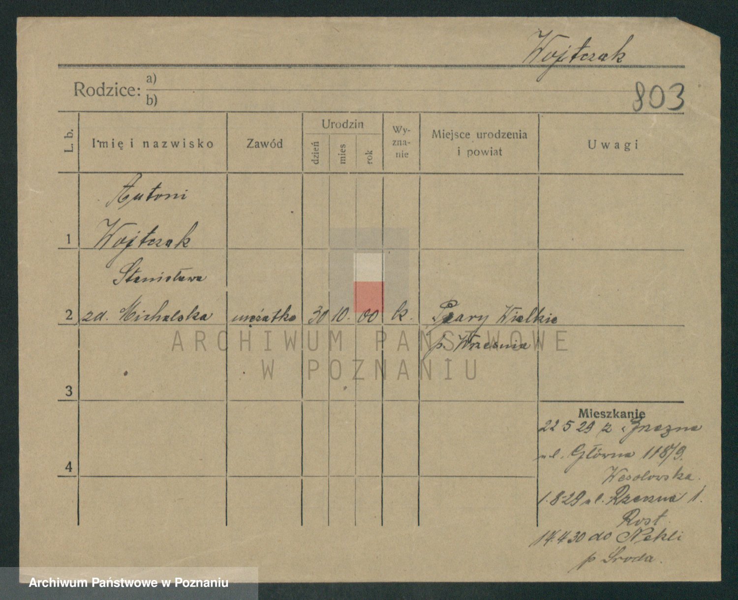 Podgląd karty osobowej dostępny jest po kliknięciu na nazwisko lub ikonkę karty. Można dokonywać powiększenia (ikony na górze) lub przechodzić między kolejnymi skanami (strzałki po bokach).