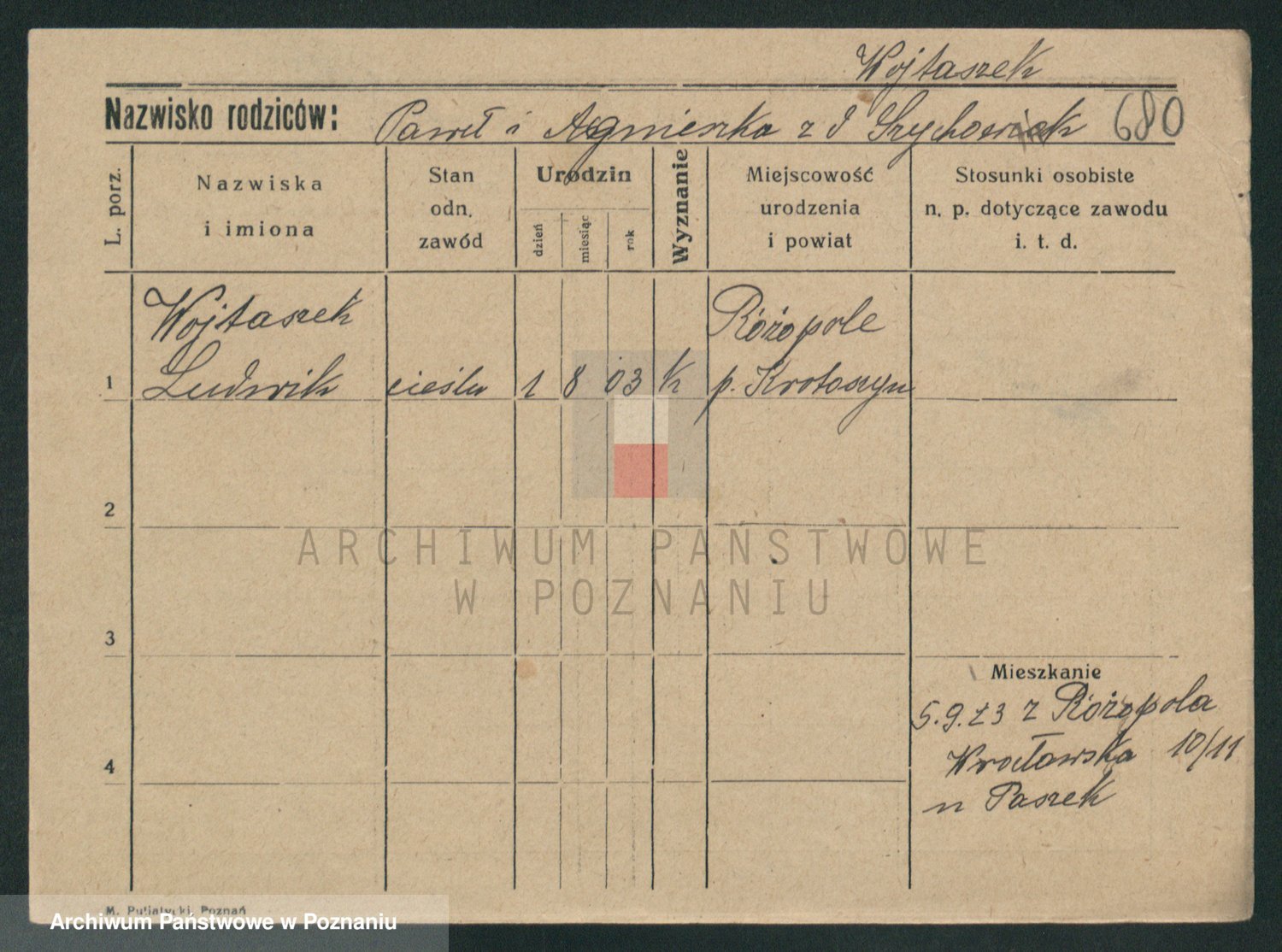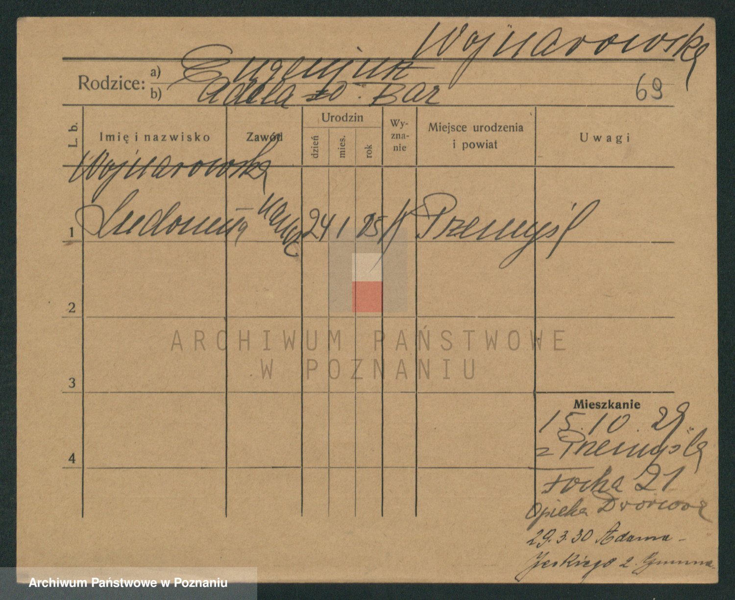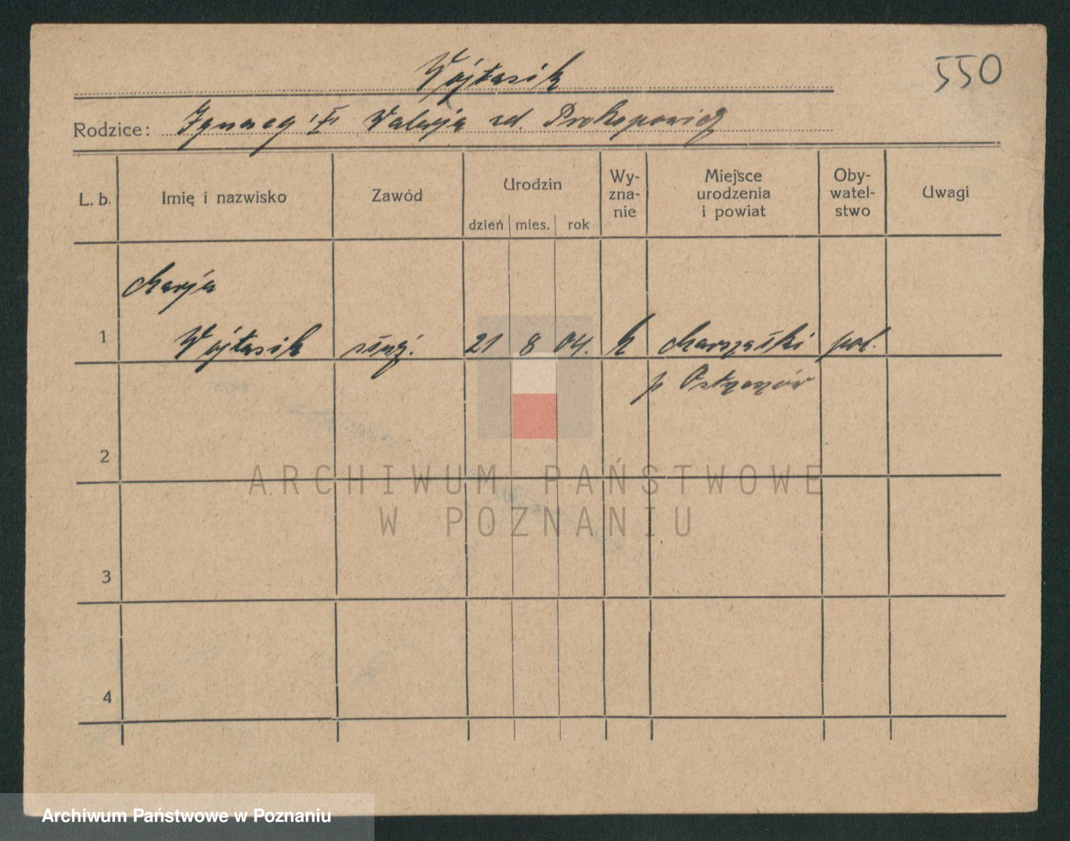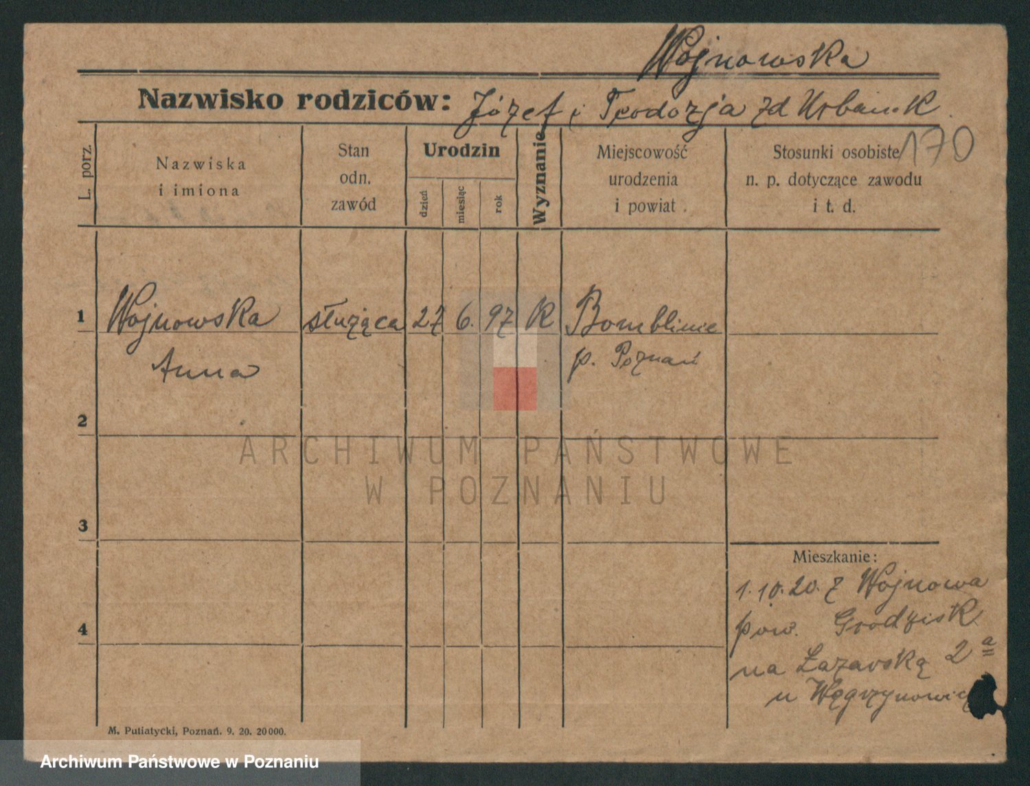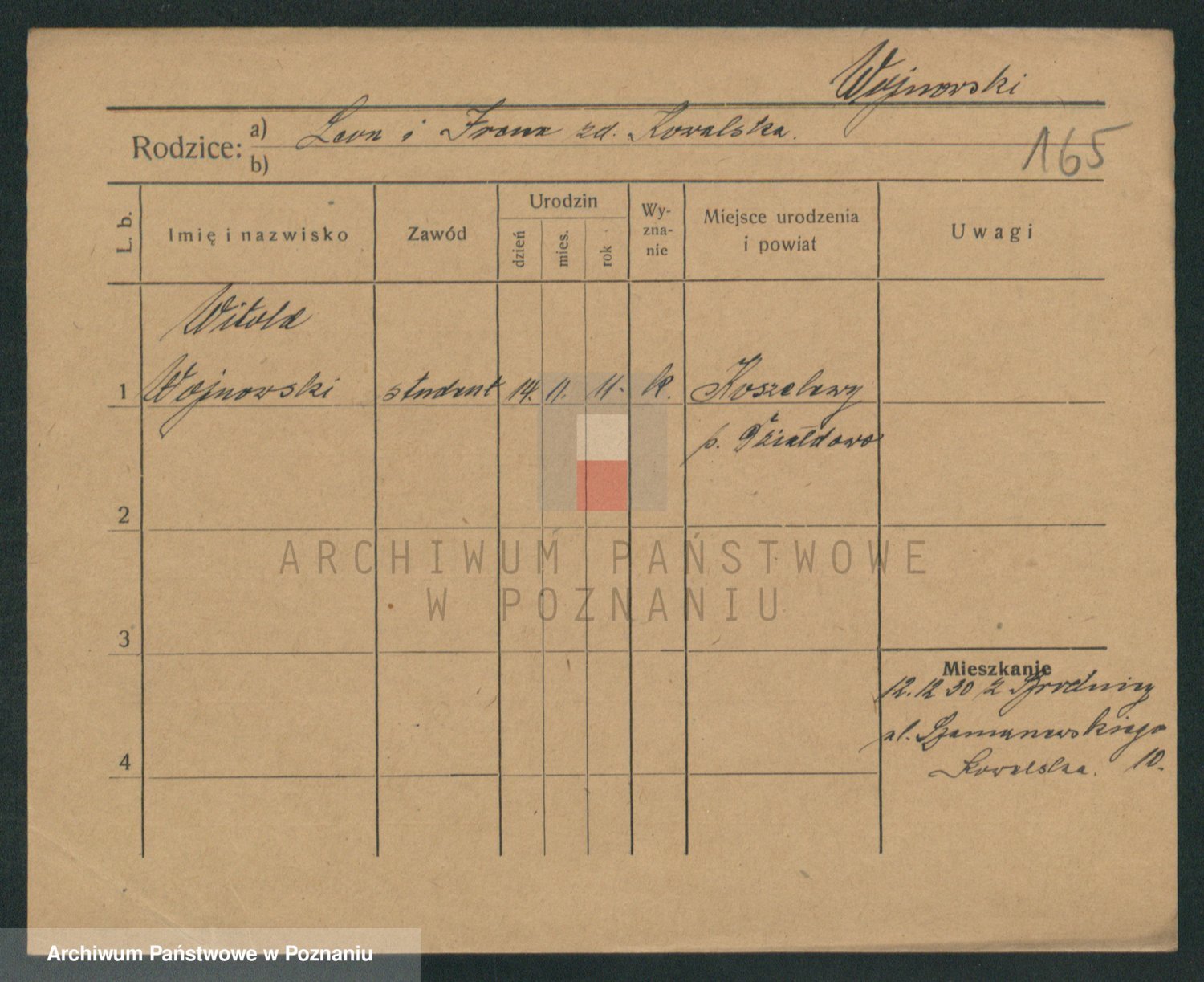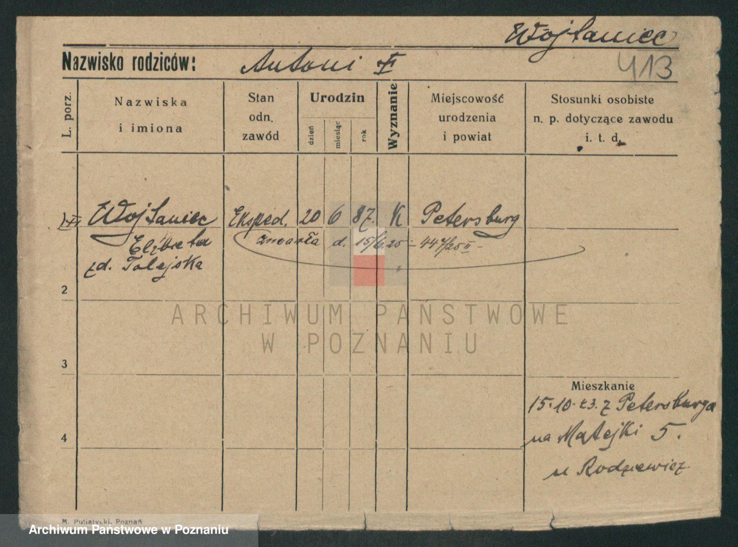 Podgląd karty osobowej dostępny jest po kliknięciu na nazwisko lub ikonkę karty. Można dokonywać powiększenia (ikony na górze) lub przechodzić między kolejnymi skanami (strzałki po bokach).