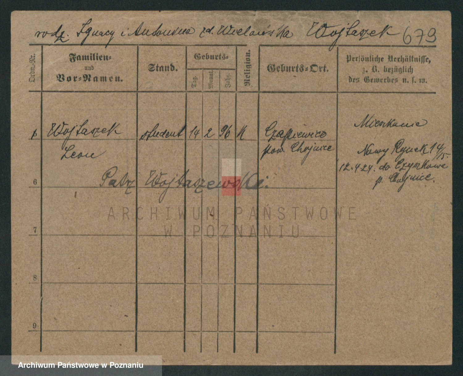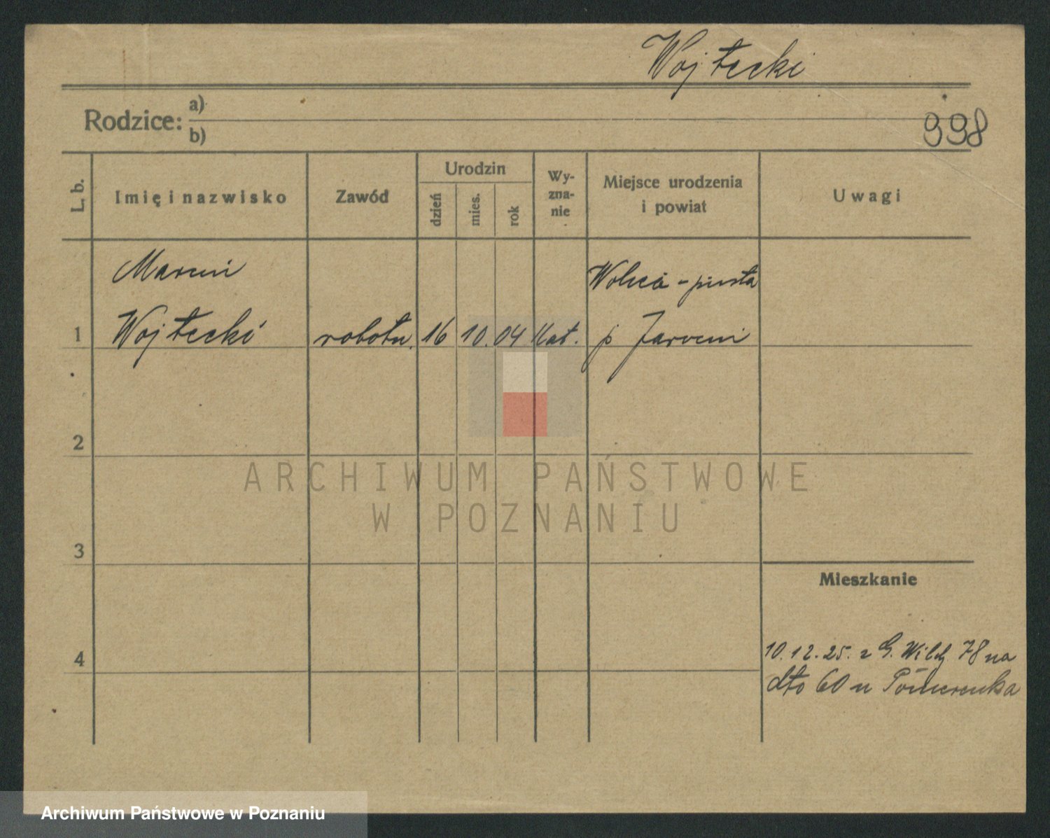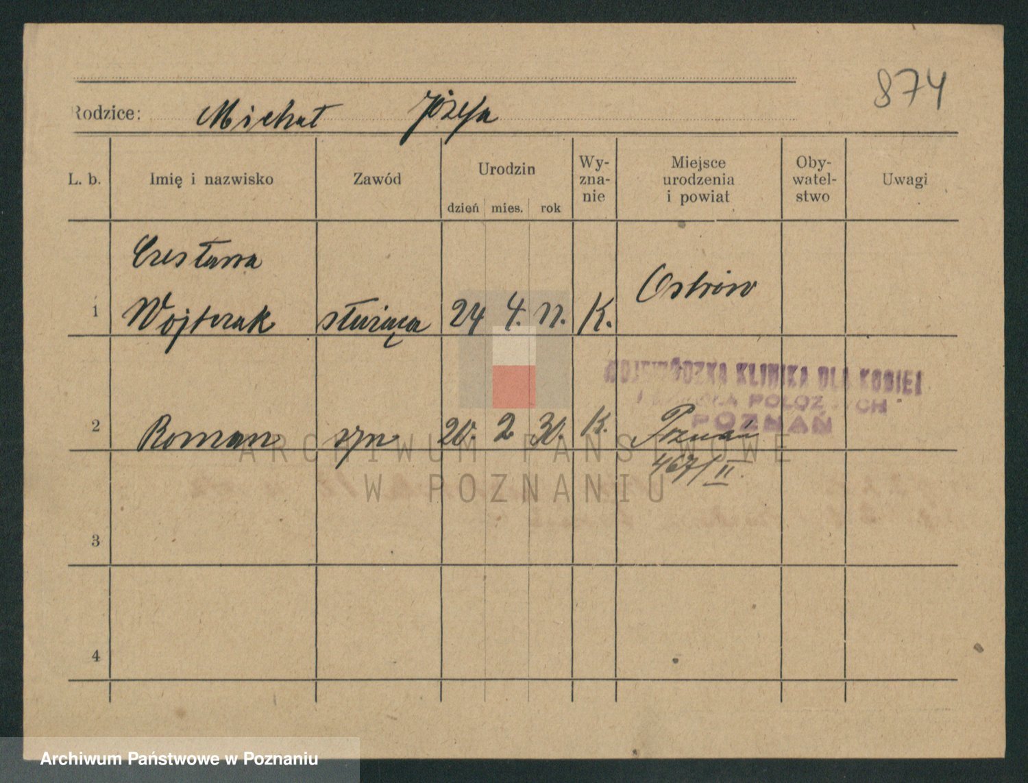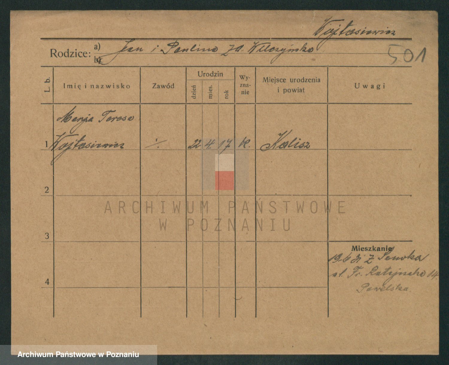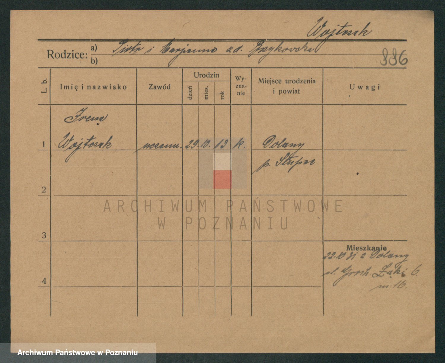 Podgląd karty osobowej dostępny jest po kliknięciu na nazwisko lub ikonkę karty. Można dokonywać powiększenia (ikony na górze) lub przechodzić między kolejnymi skanami (strzałki po bokach).