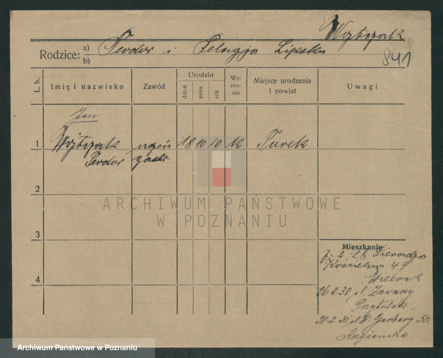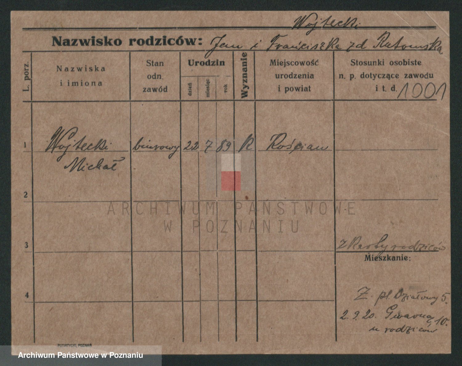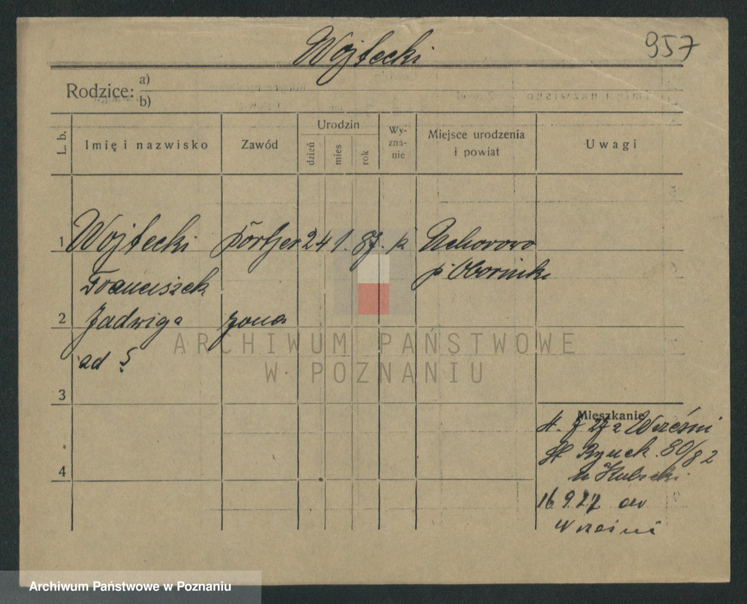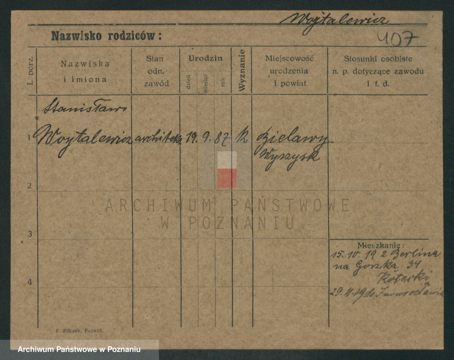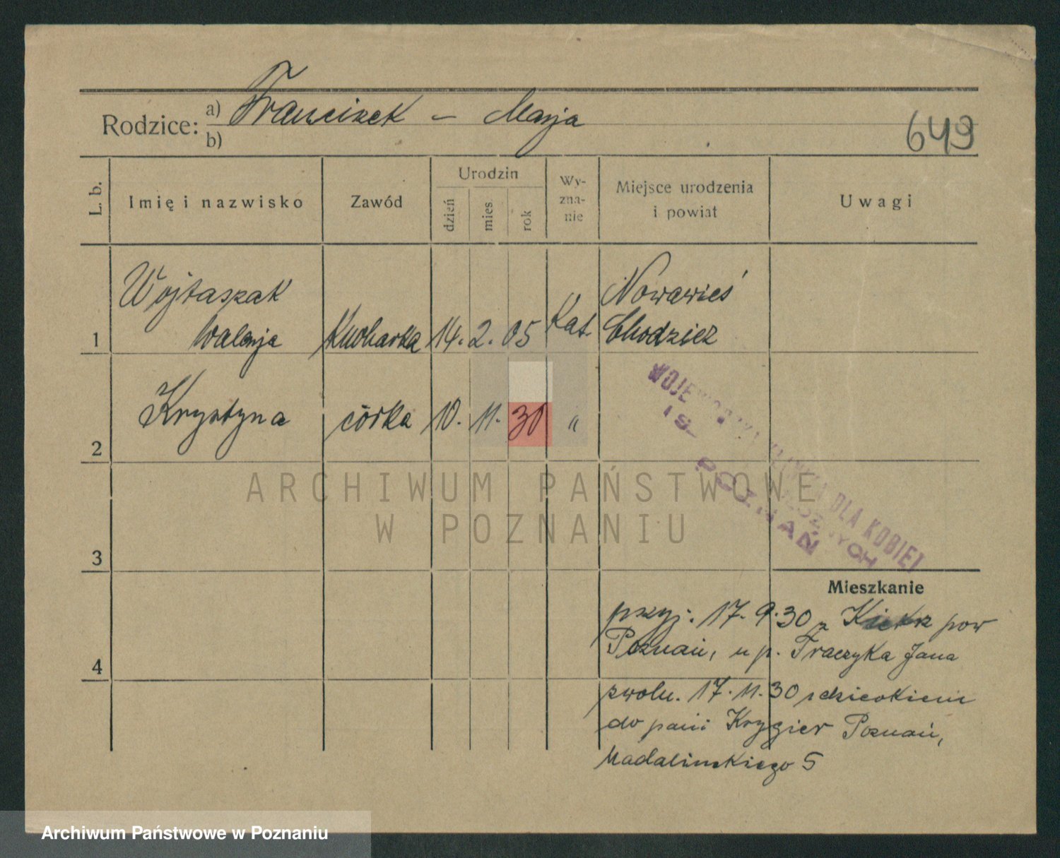 Podgląd karty osobowej dostępny jest po kliknięciu na nazwisko lub ikonkę karty. Można dokonywać powiększenia (ikony na górze) lub przechodzić między kolejnymi skanami (strzałki po bokach).