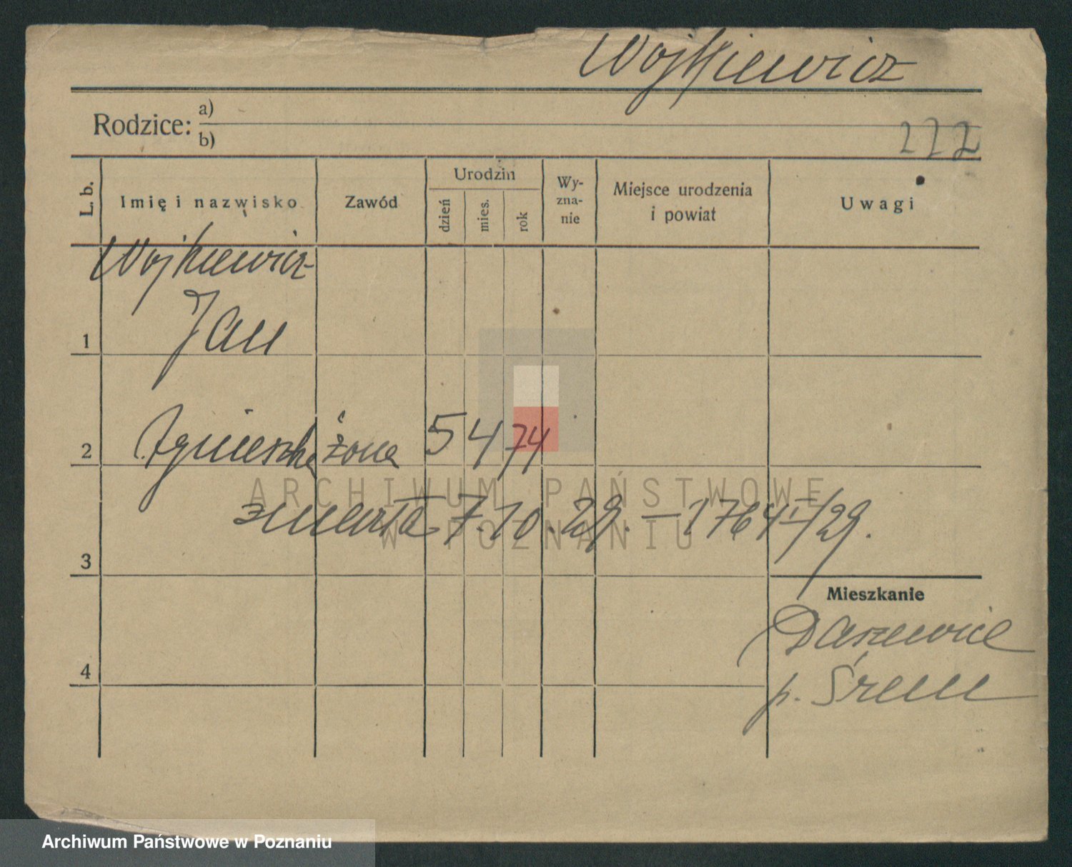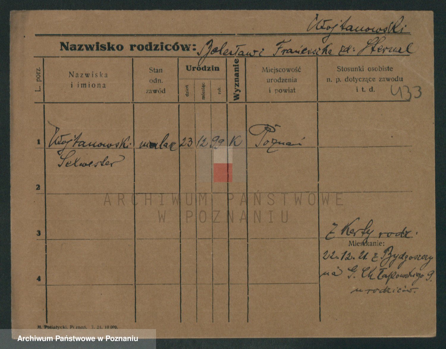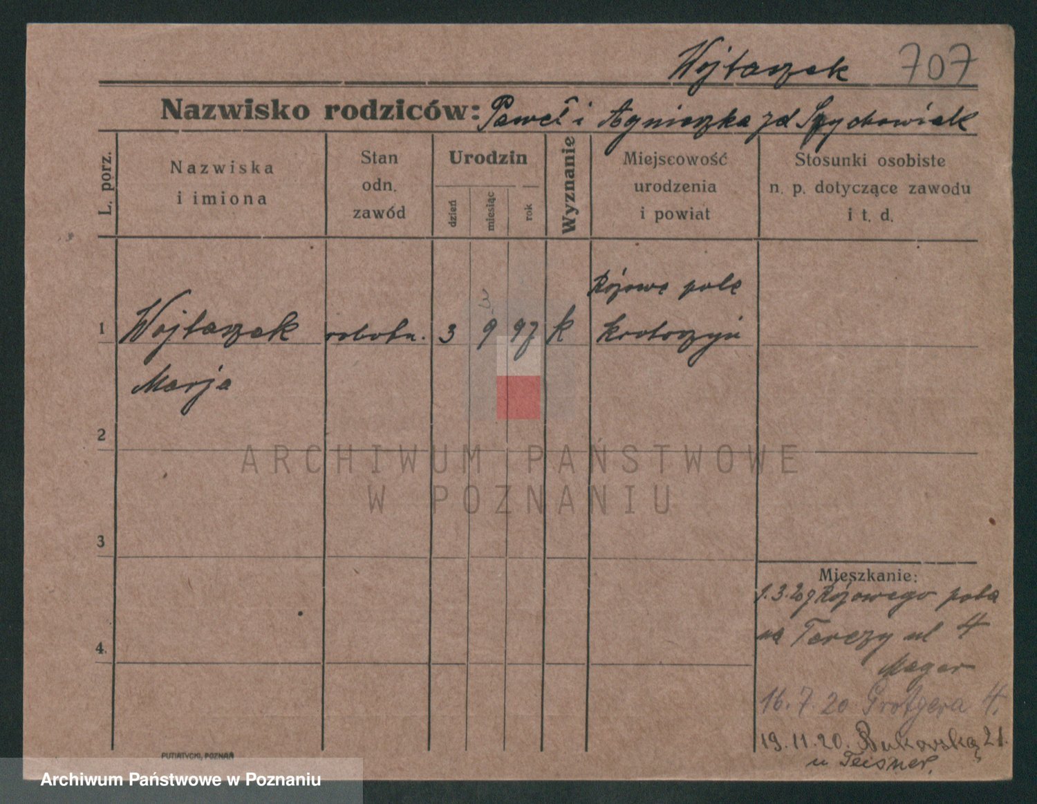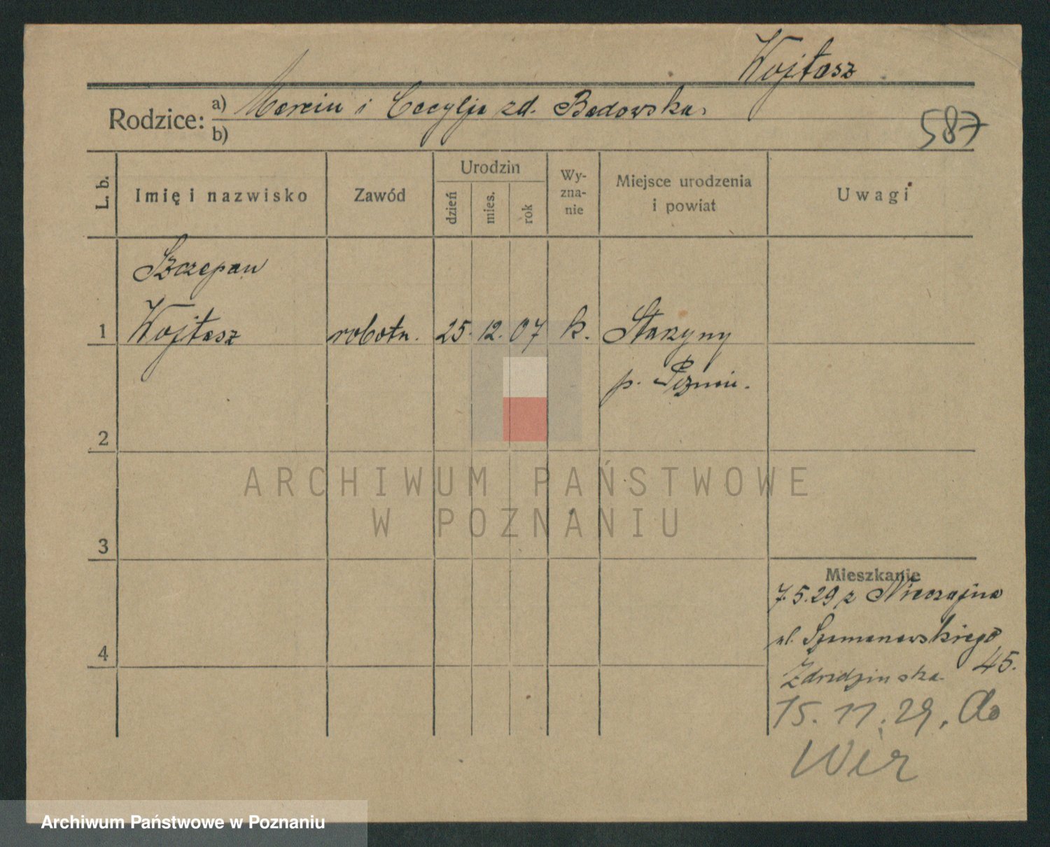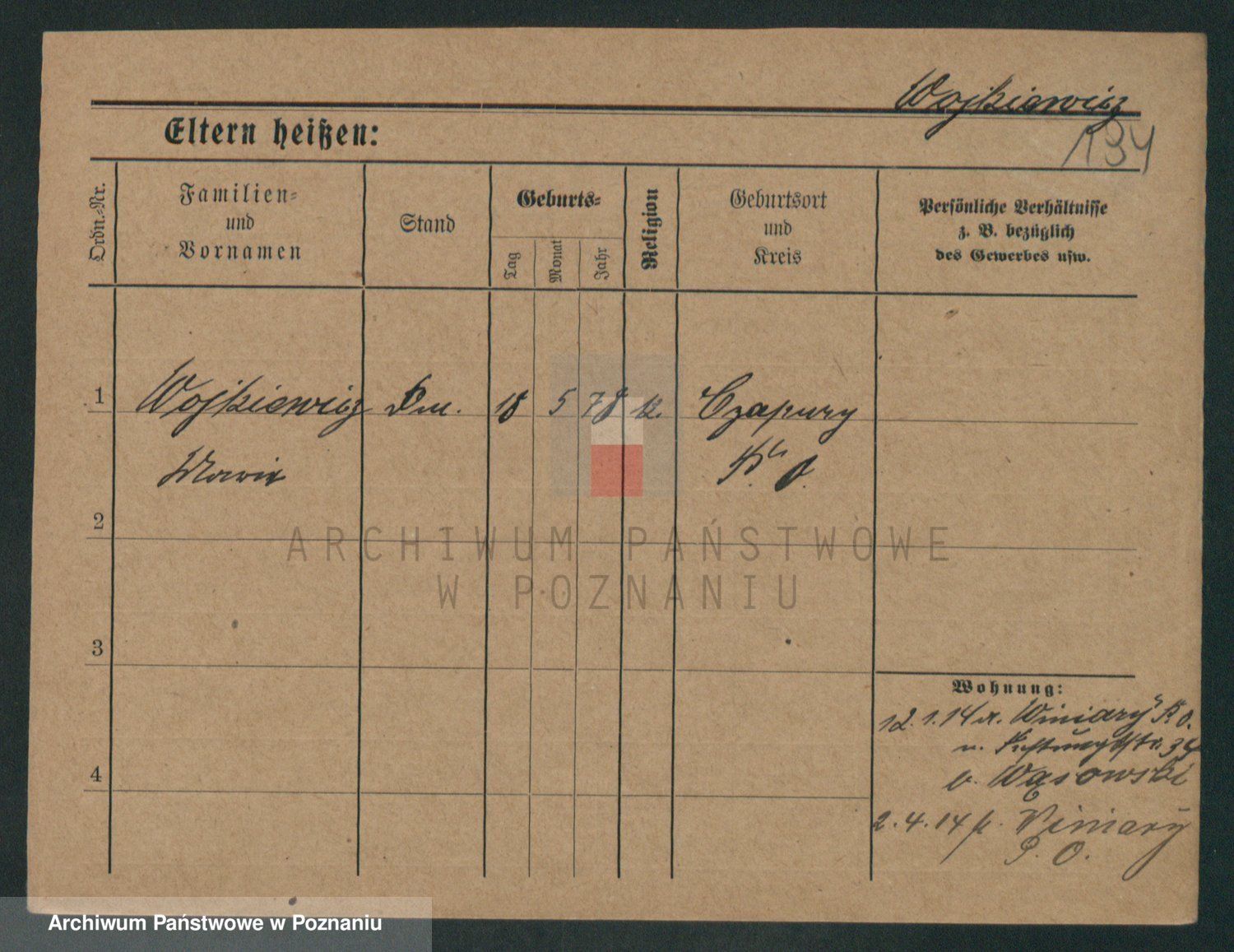 Podgląd karty osobowej dostępny jest po kliknięciu na nazwisko lub ikonkę karty. Można dokonywać powiększenia (ikony na górze) lub przechodzić między kolejnymi skanami (strzałki po bokach).