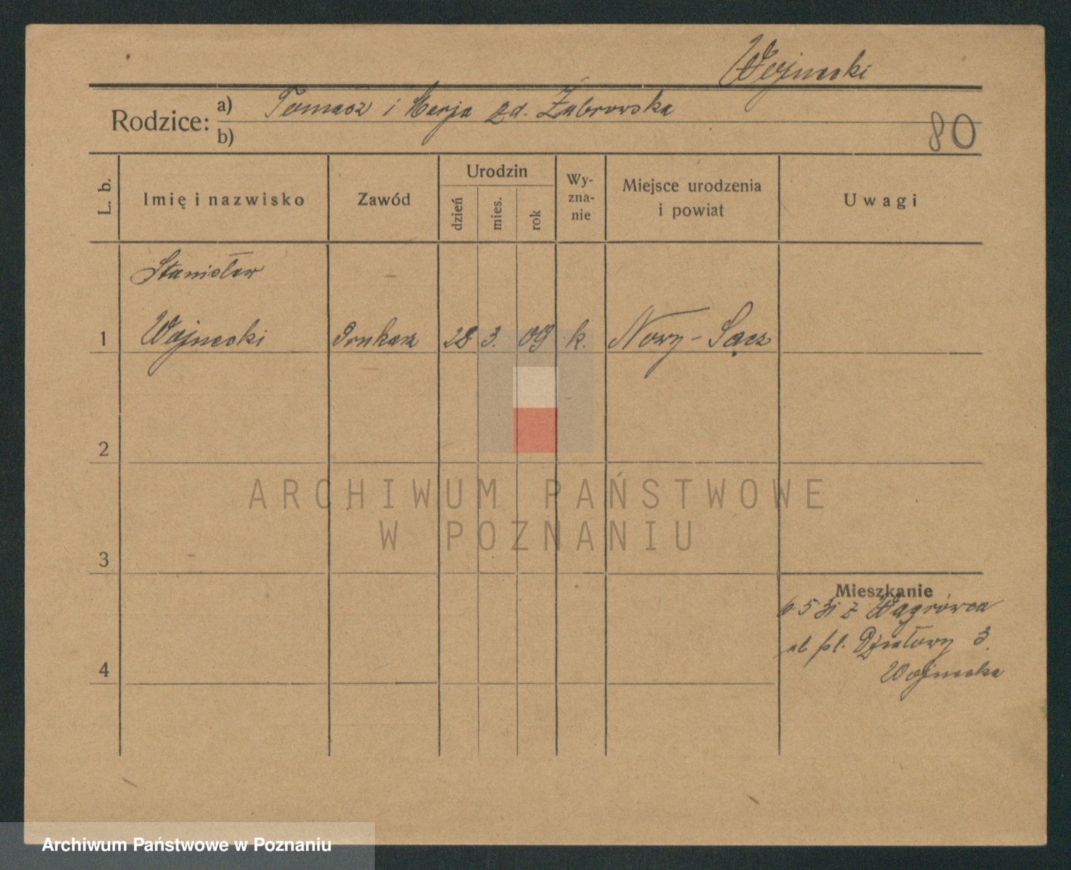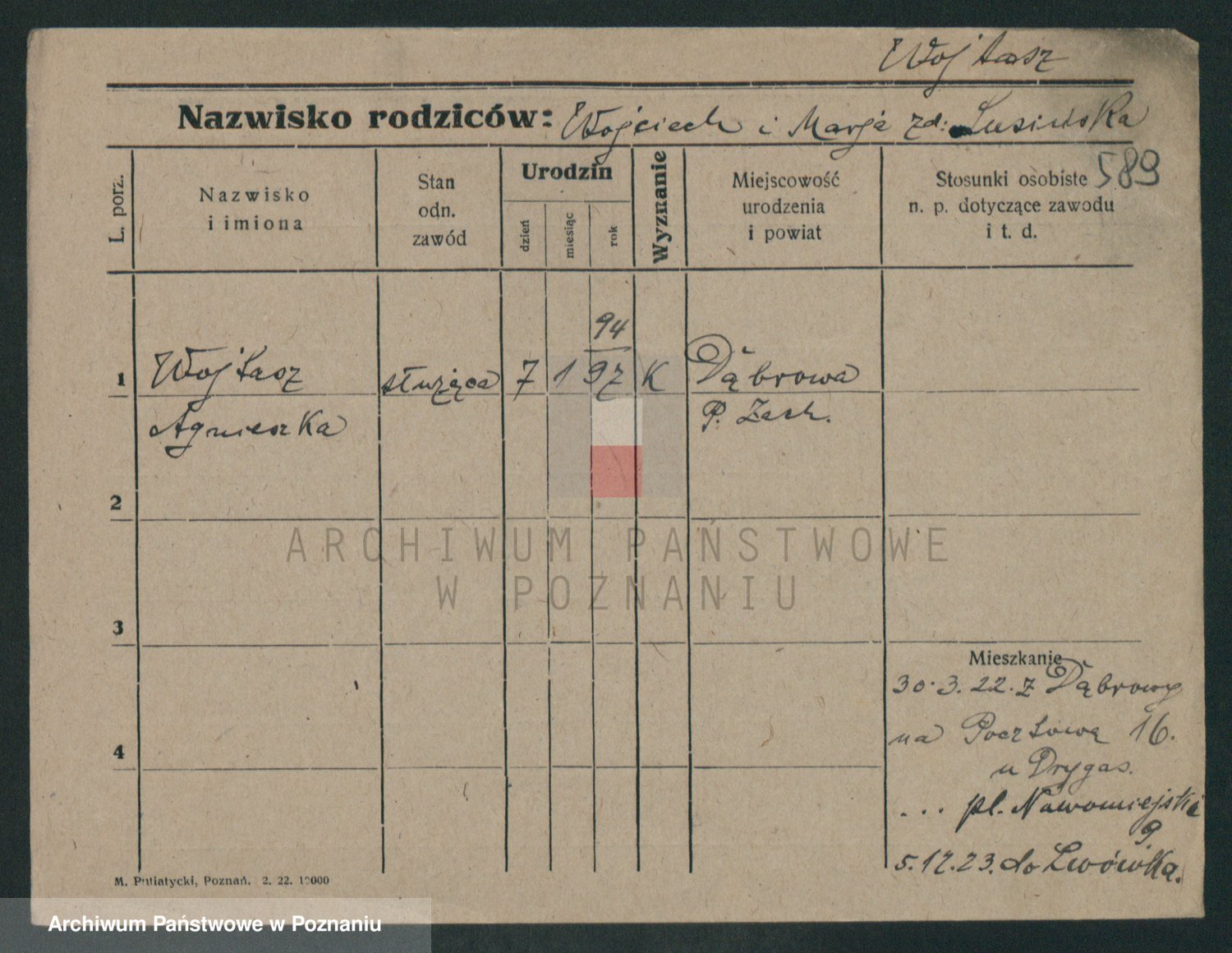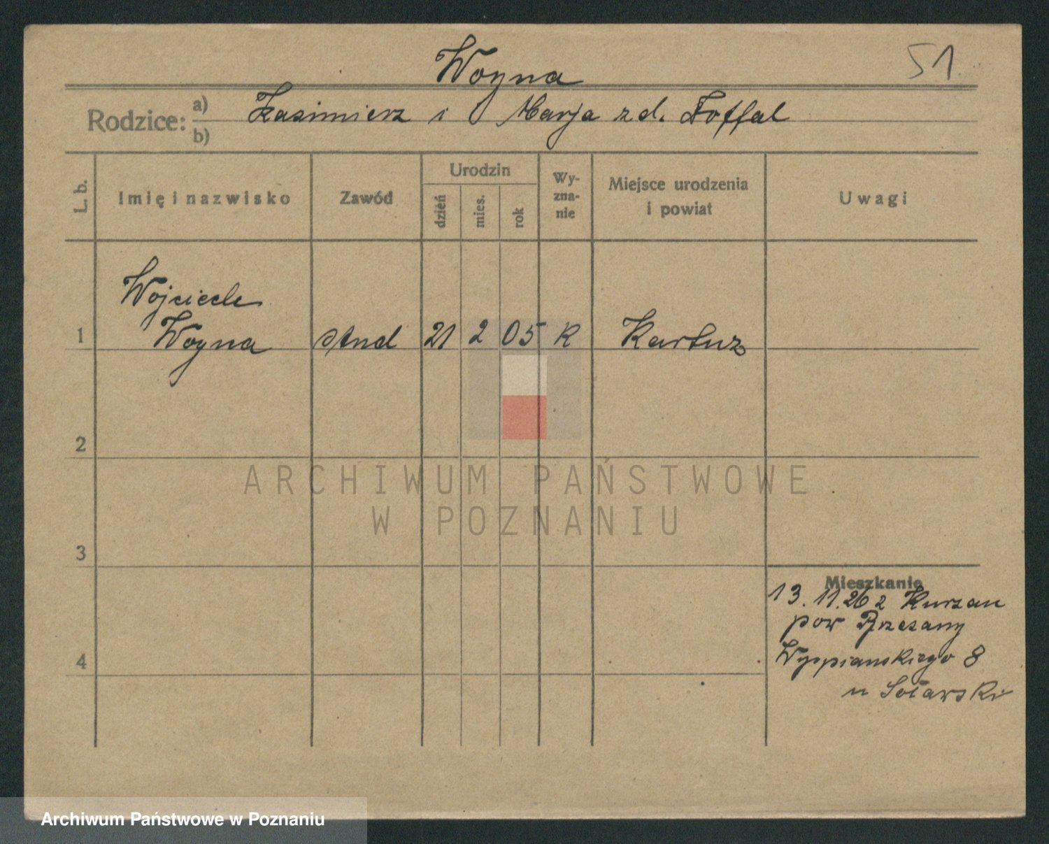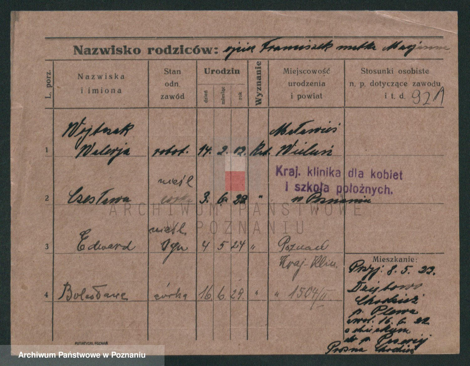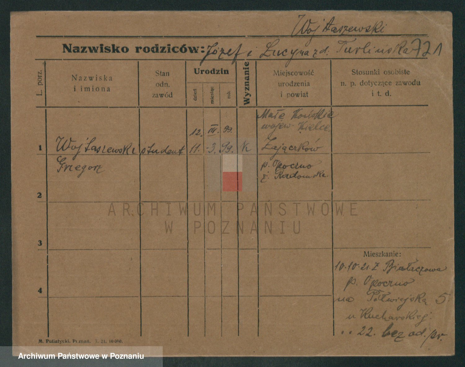 Podgląd karty osobowej dostępny jest po kliknięciu na nazwisko lub ikonkę karty. Można dokonywać powiększenia (ikony na górze) lub przechodzić między kolejnymi skanami (strzałki po bokach).