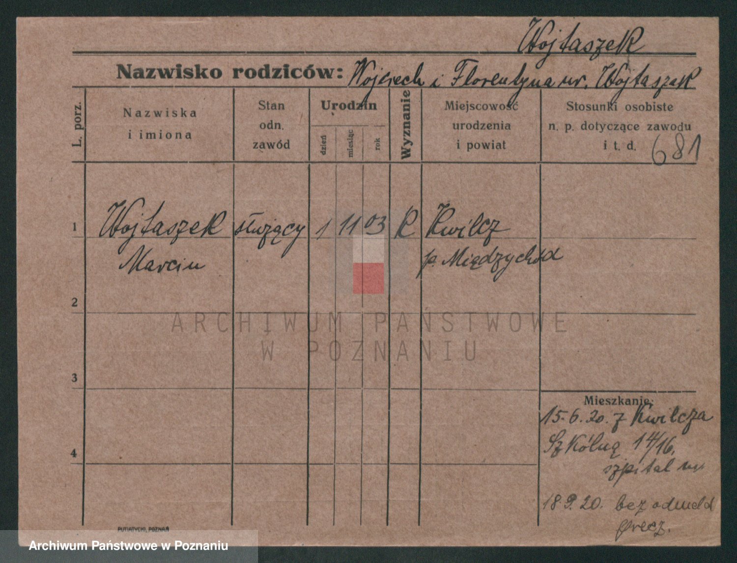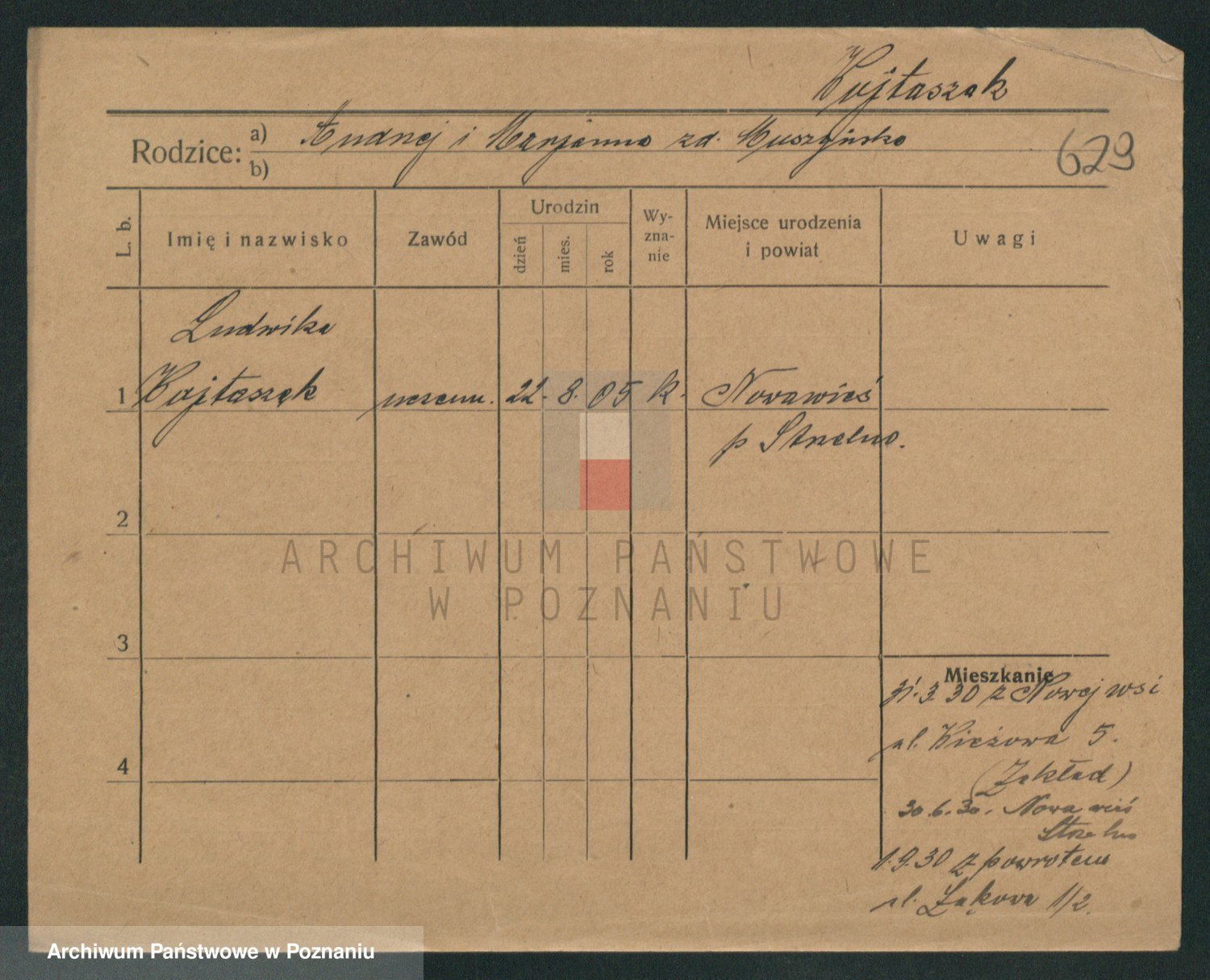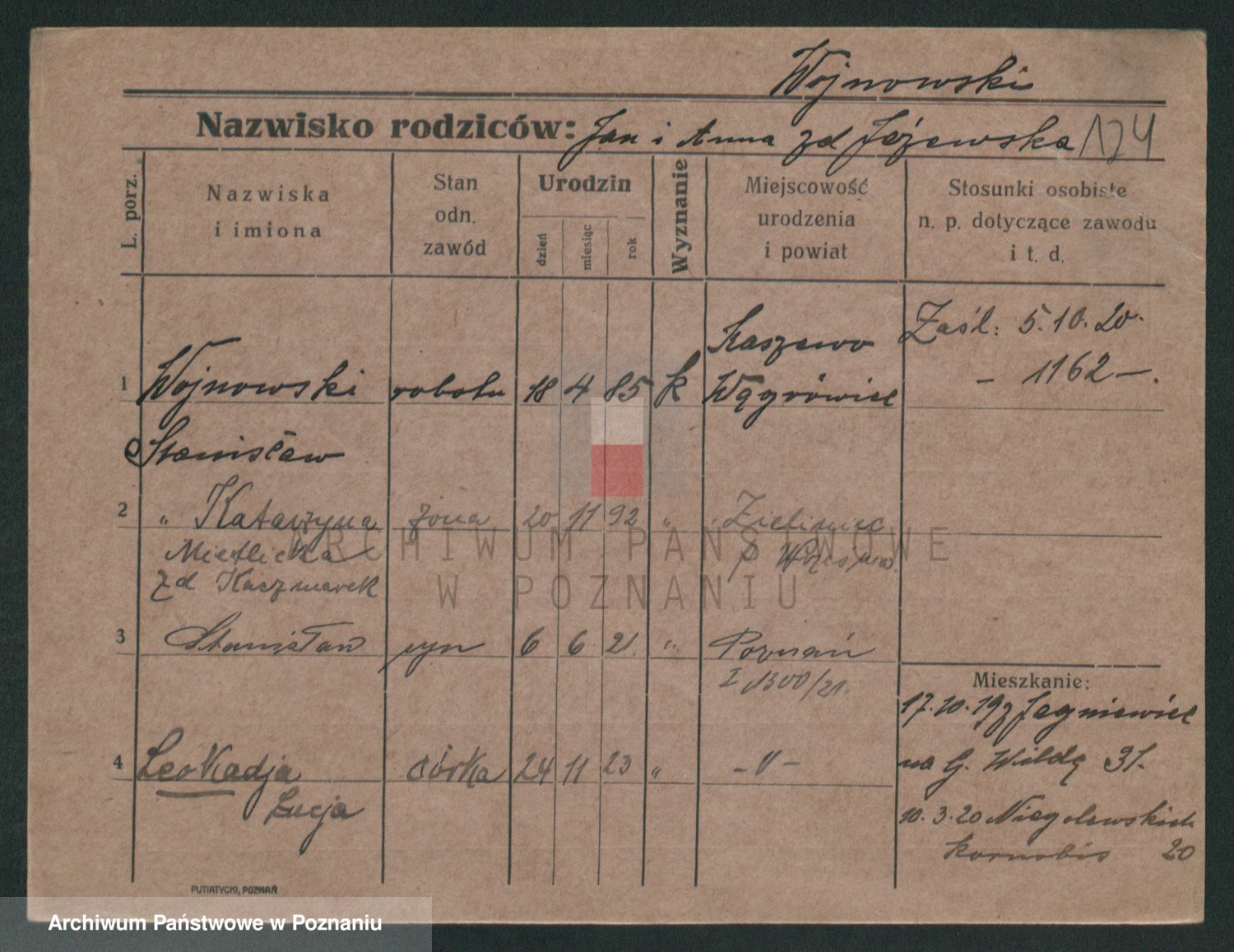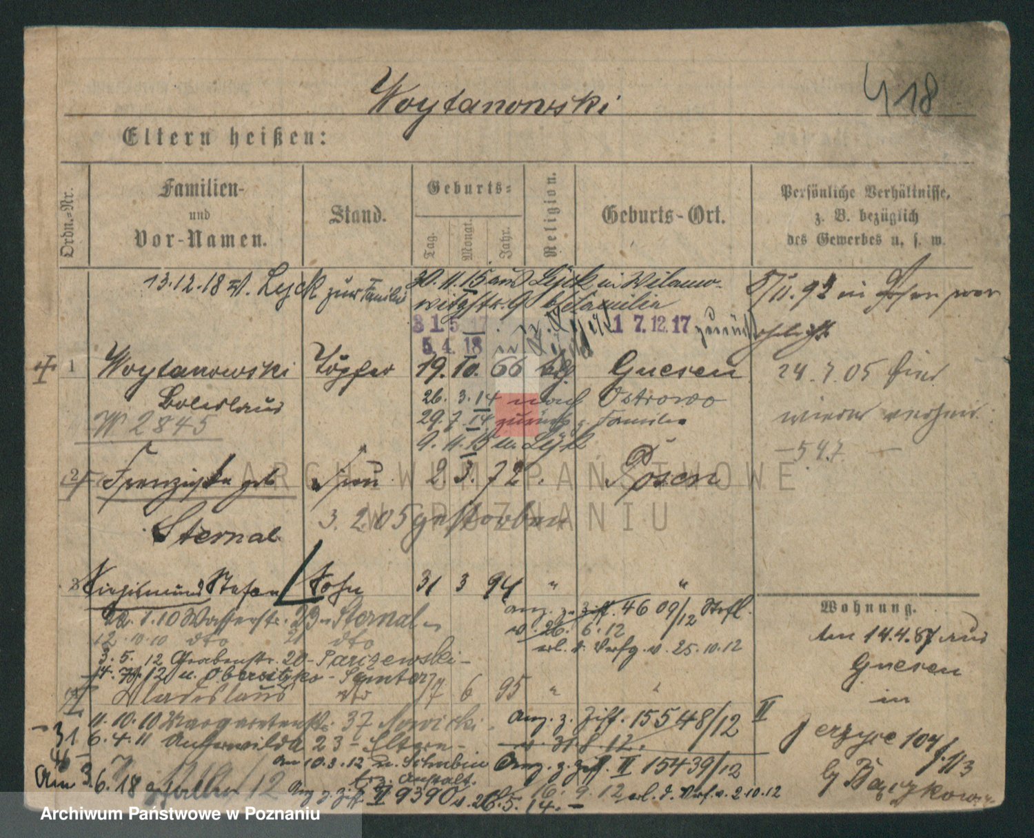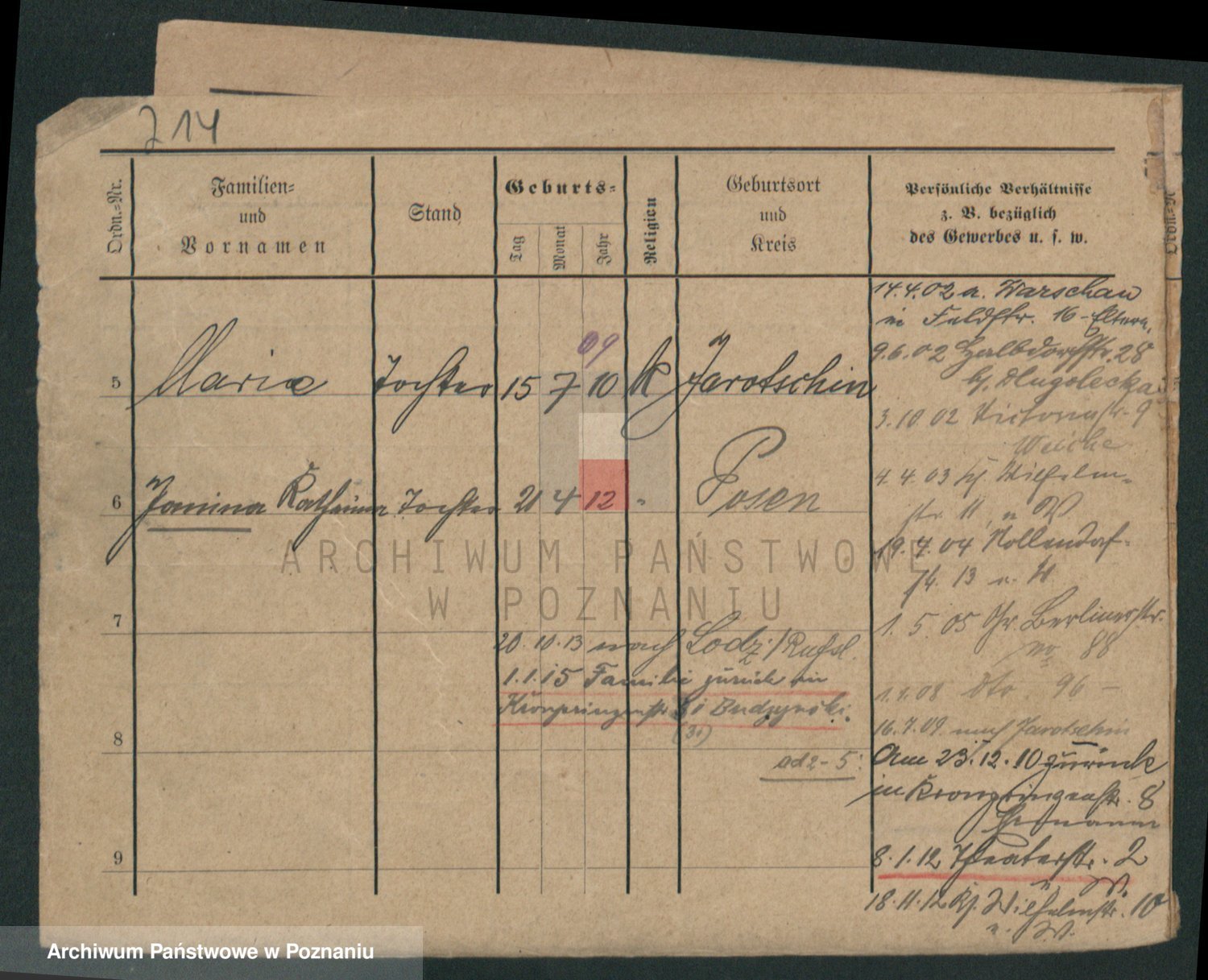 Podgląd karty osobowej dostępny jest po kliknięciu na nazwisko lub ikonkę karty. Można dokonywać powiększenia (ikony na górze) lub przechodzić między kolejnymi skanami (strzałki po bokach).