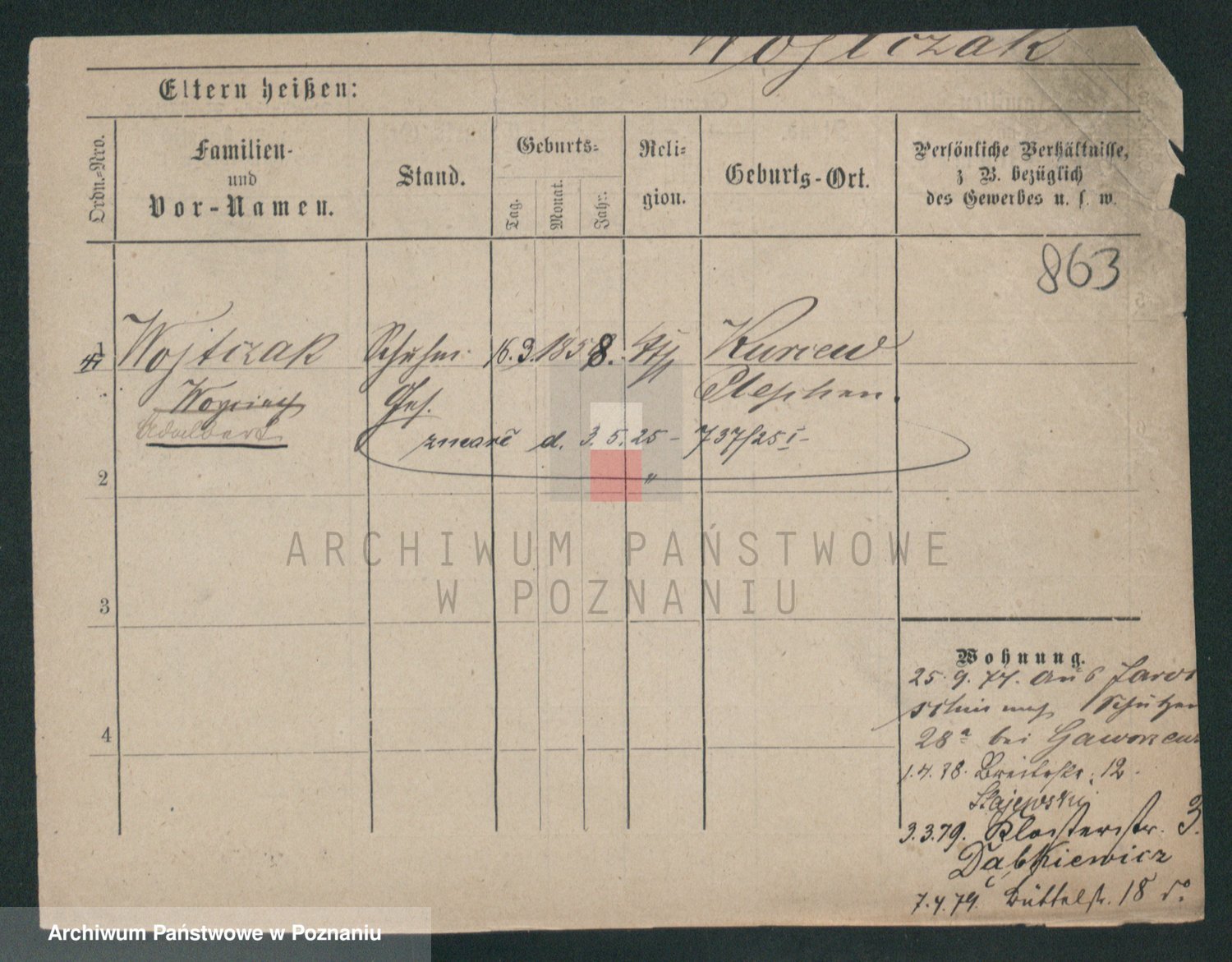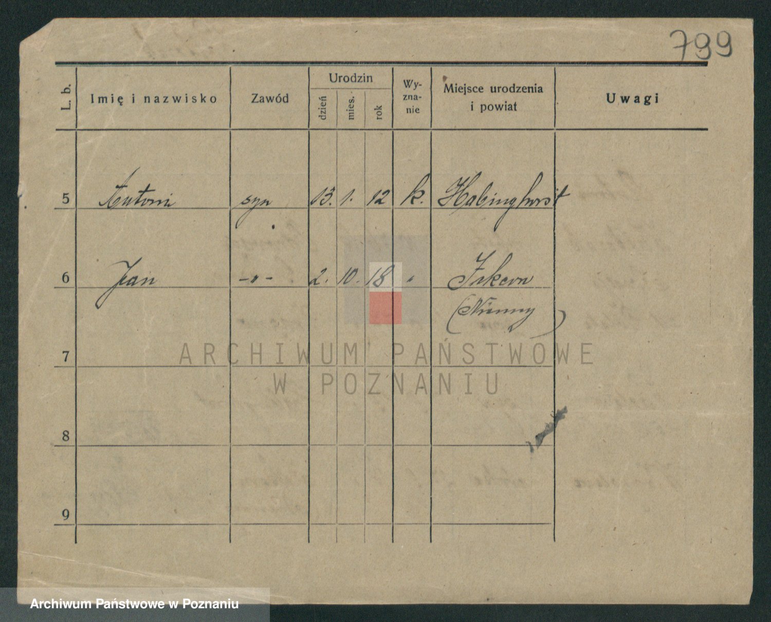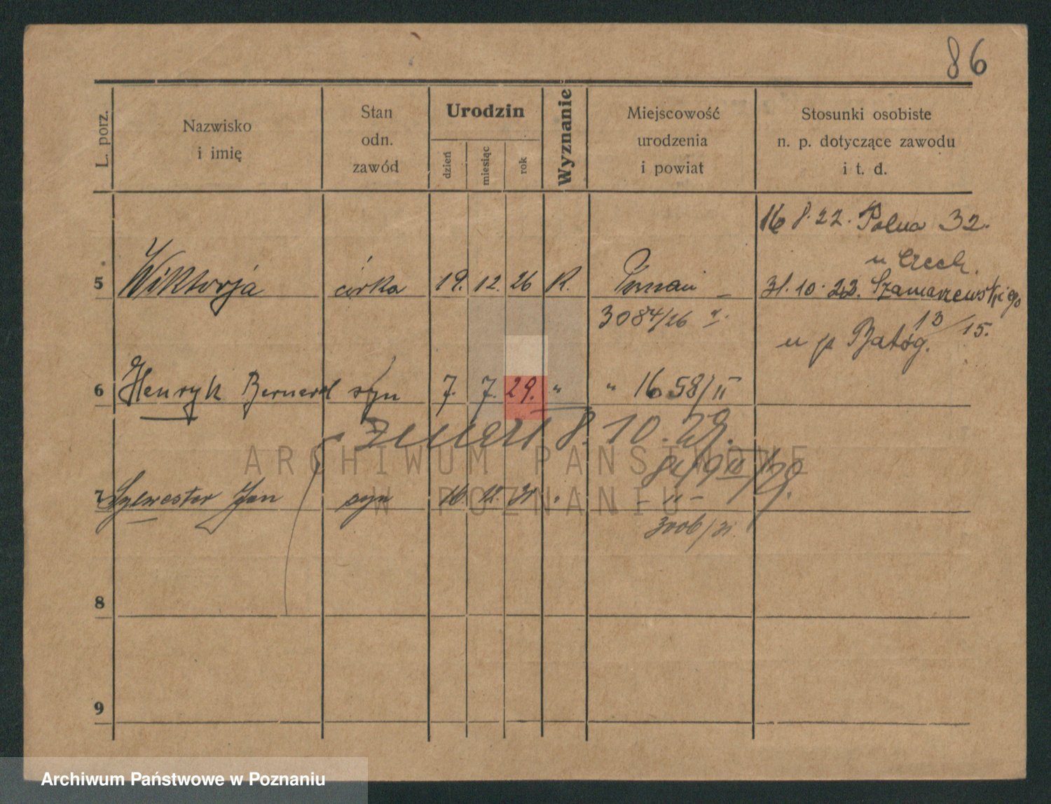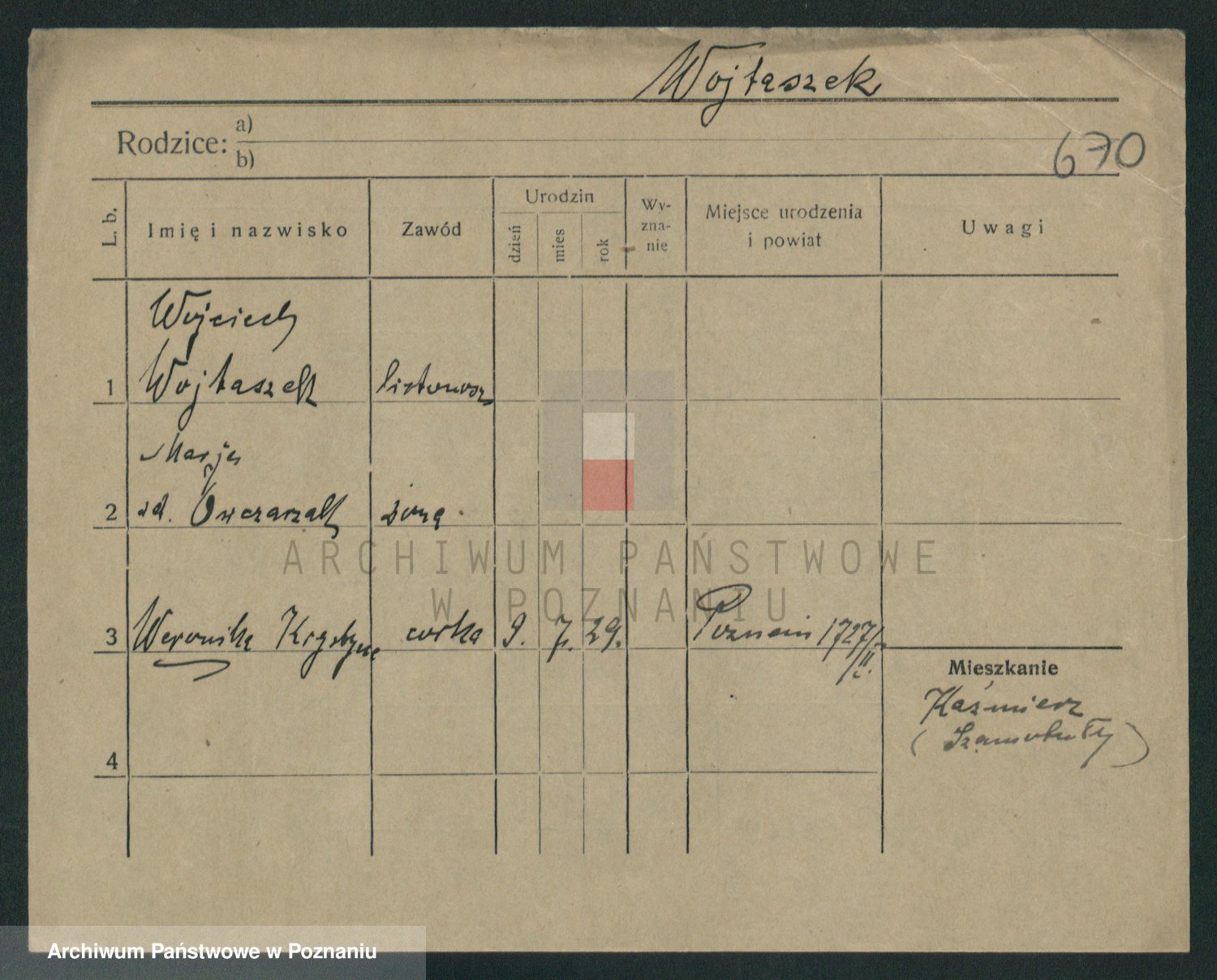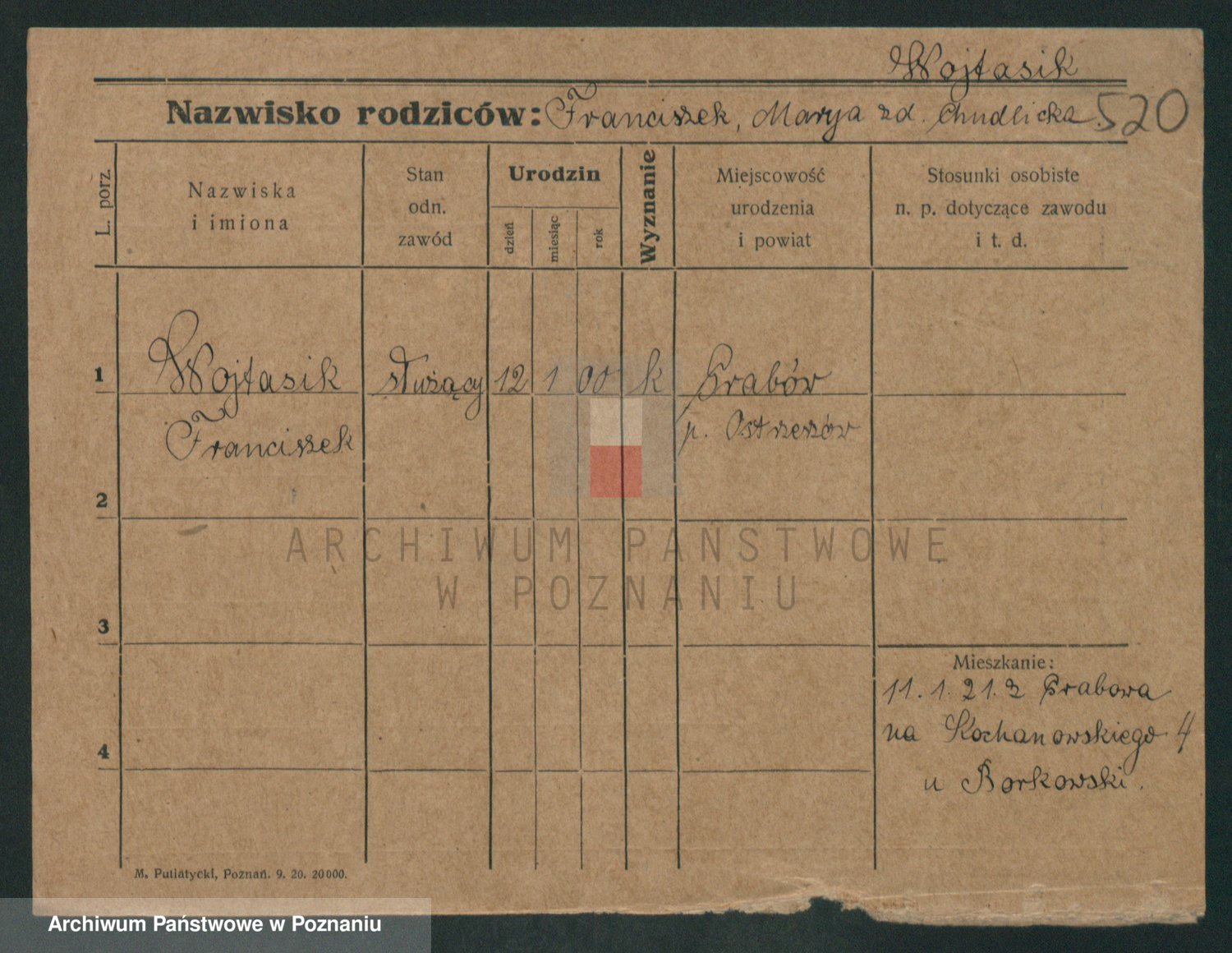 Podgląd karty osobowej dostępny jest po kliknięciu na nazwisko lub ikonkę karty. Można dokonywać powiększenia (ikony na górze) lub przechodzić między kolejnymi skanami (strzałki po bokach).
