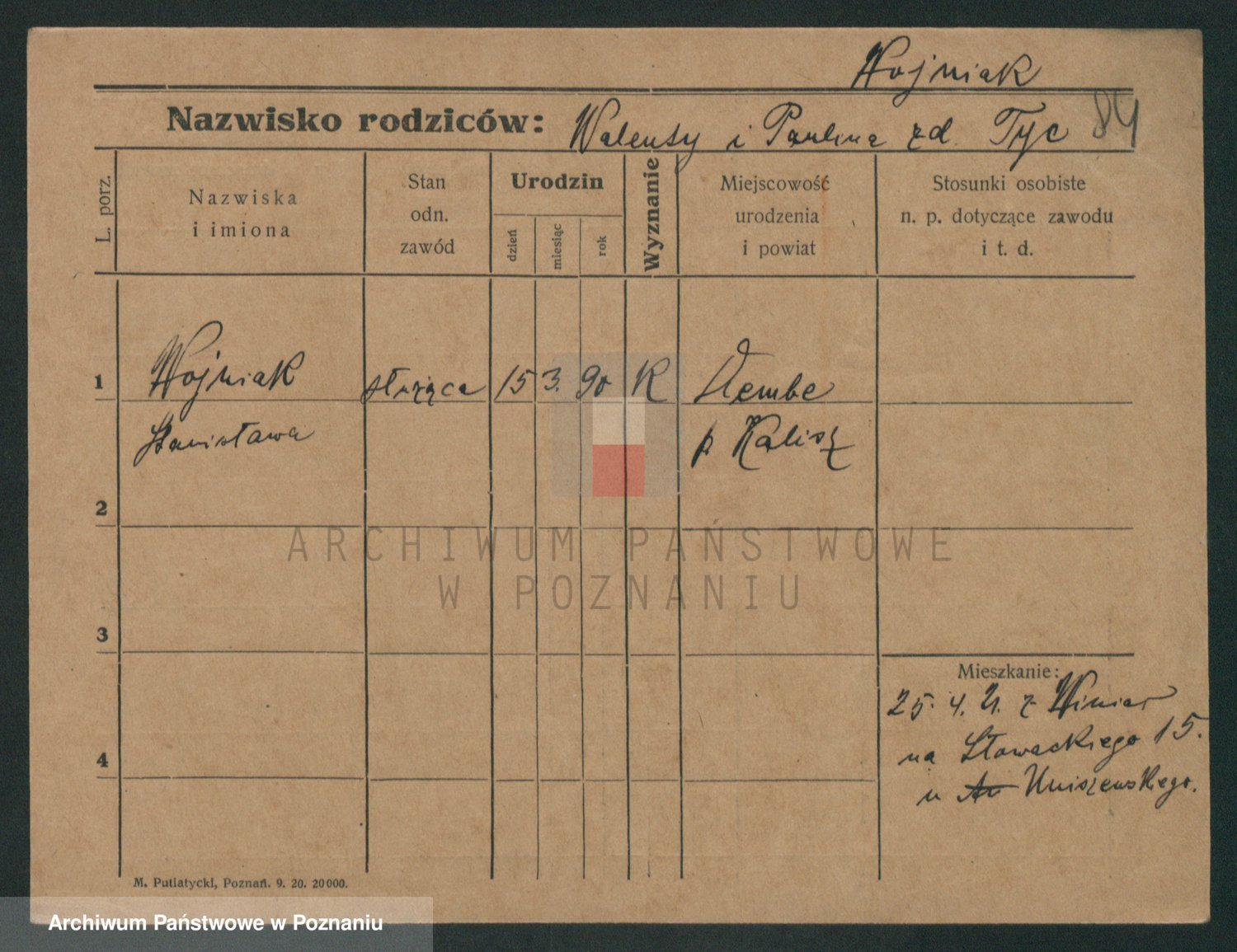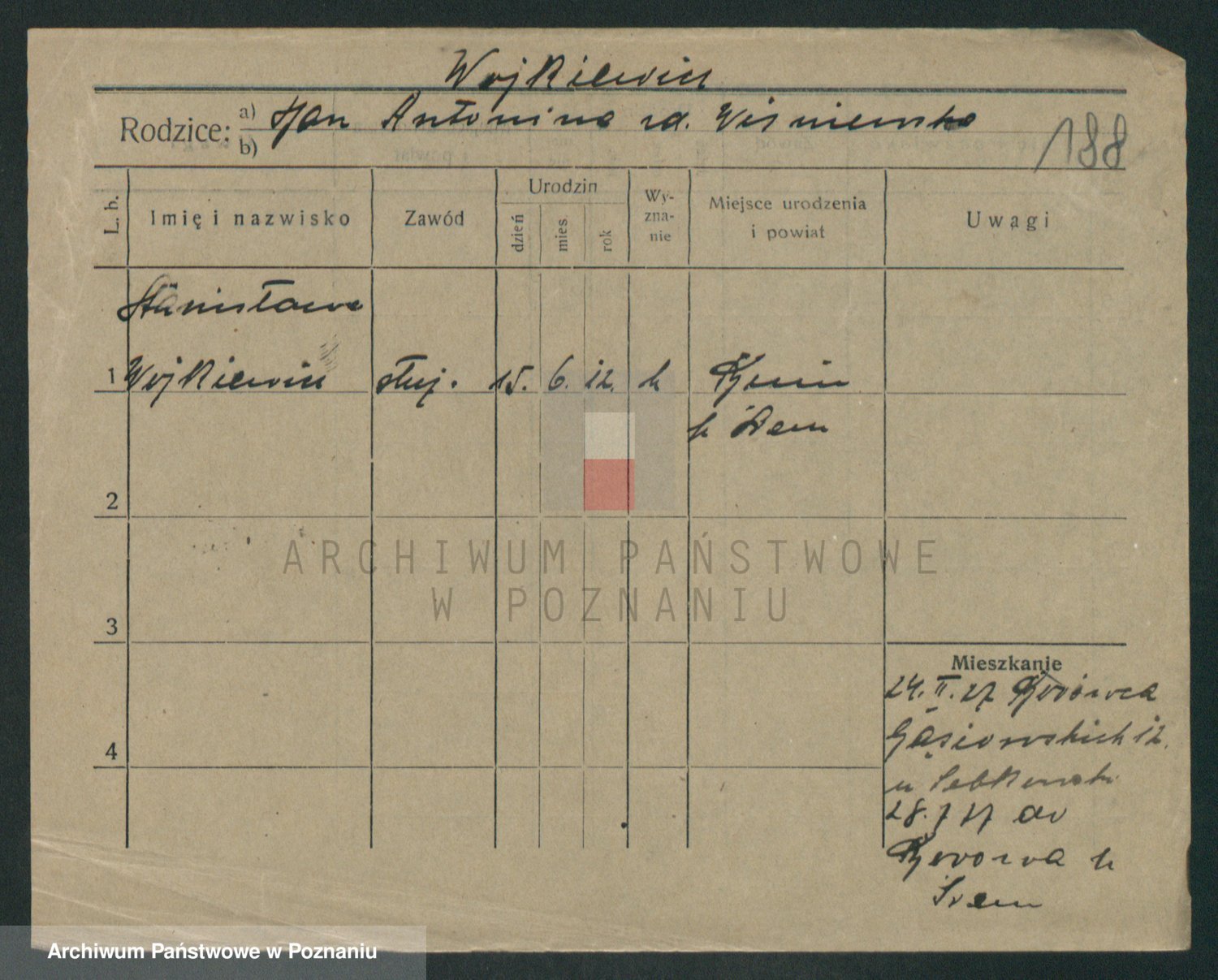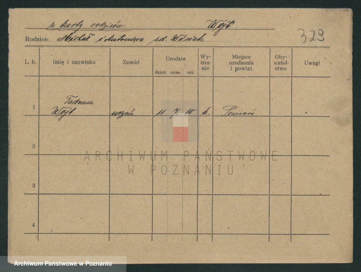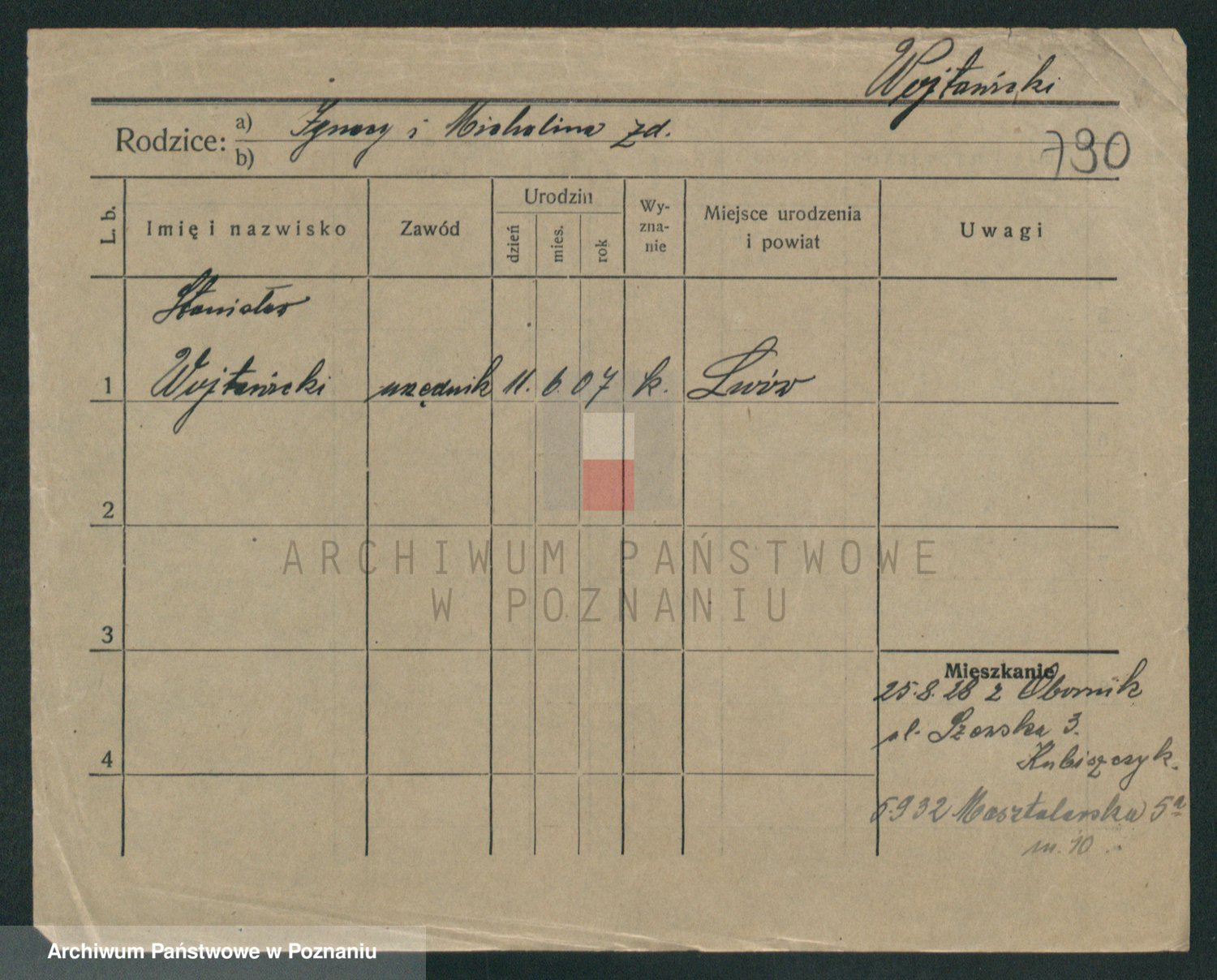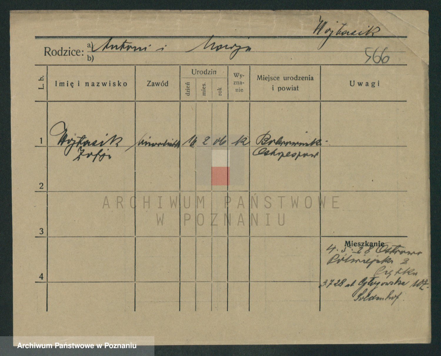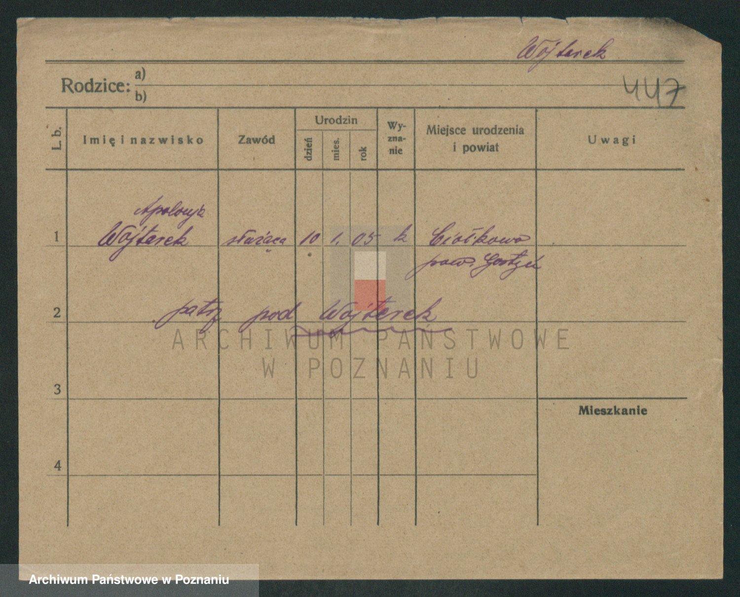 Podgląd karty osobowej dostępny jest po kliknięciu na nazwisko lub ikonkę karty. Można dokonywać powiększenia (ikony na górze) lub przechodzić między kolejnymi skanami (strzałki po bokach).