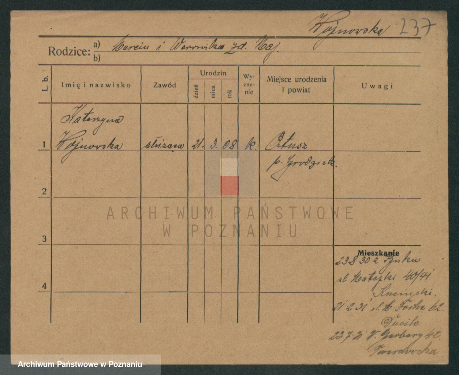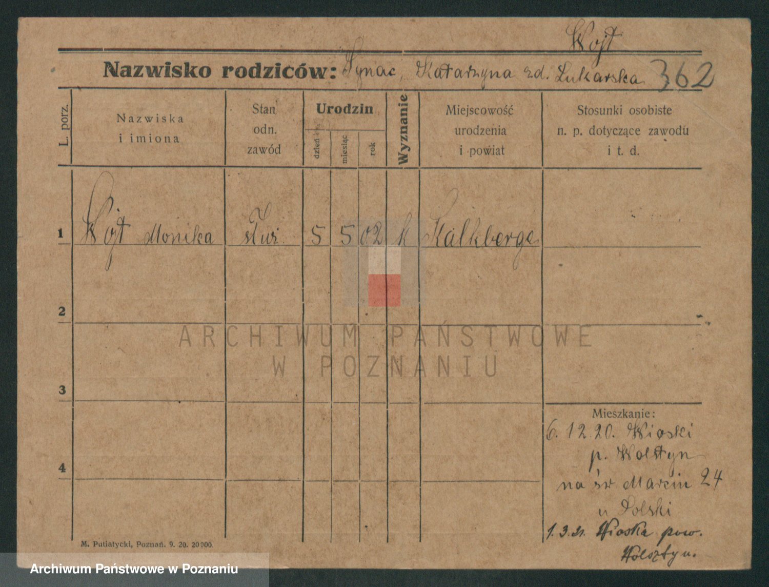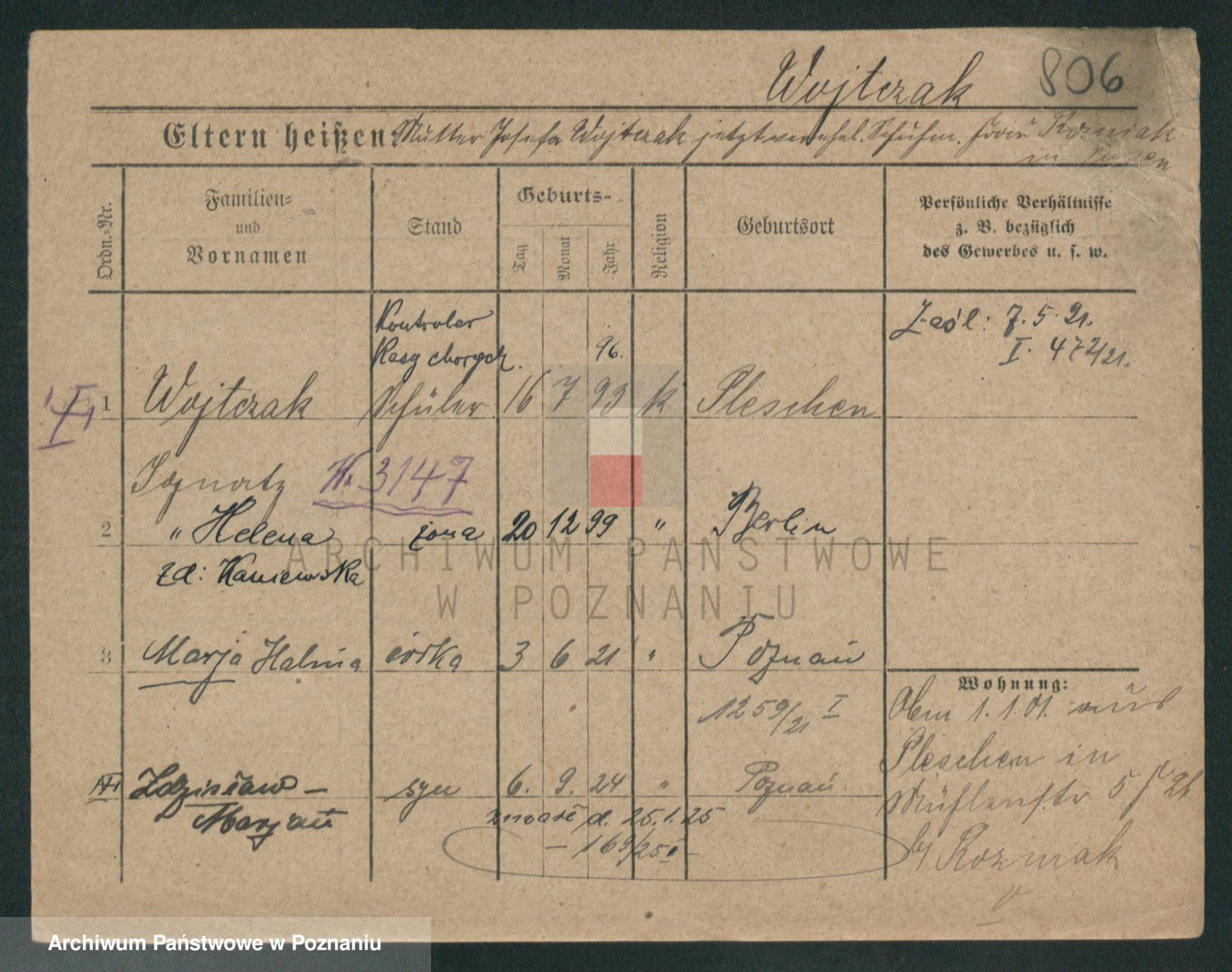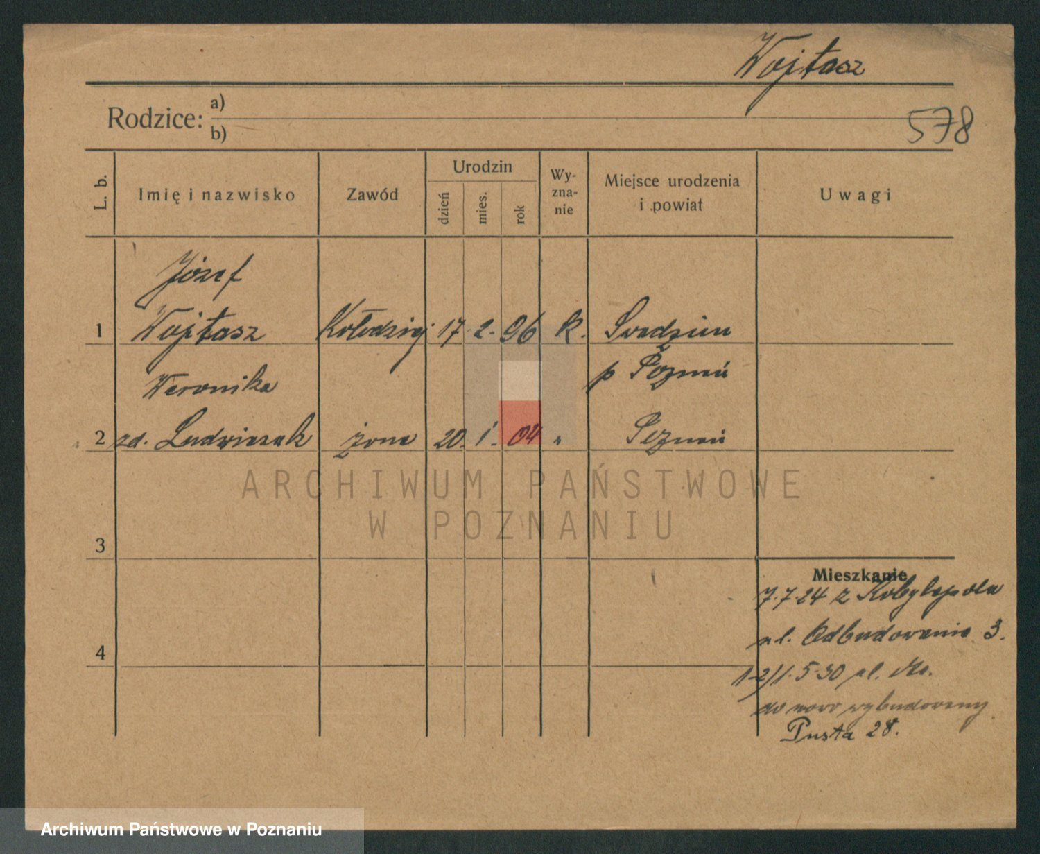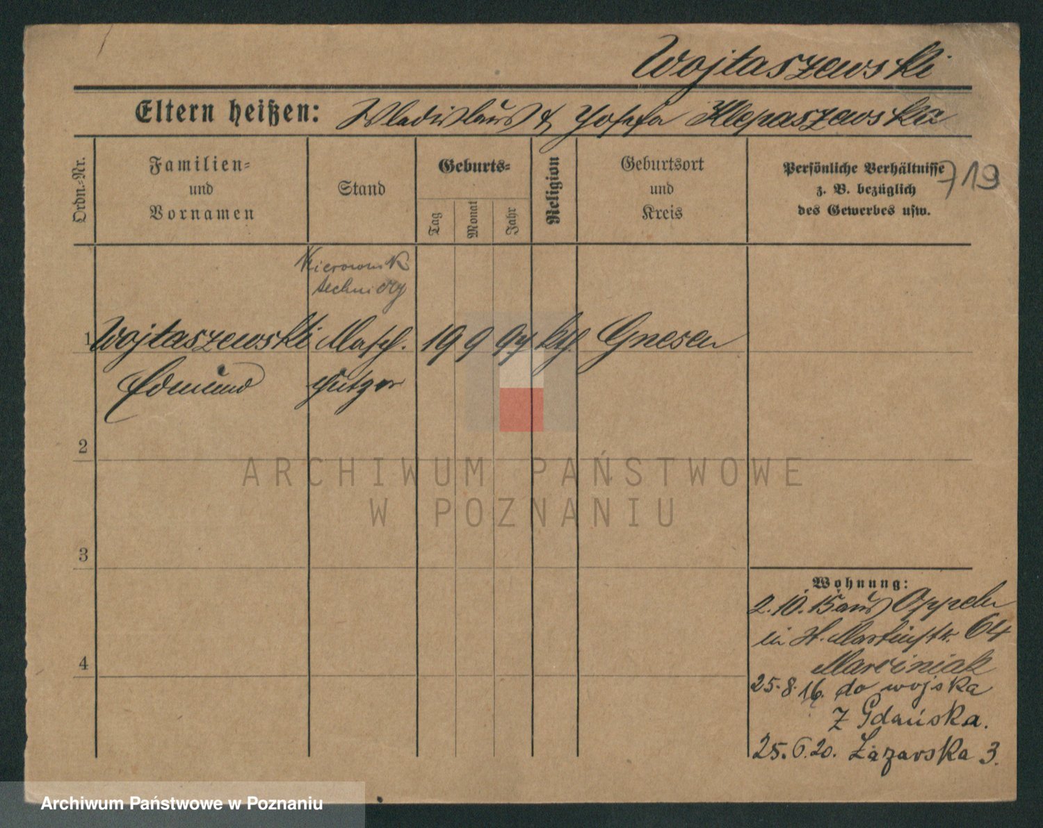 Podgląd karty osobowej dostępny jest po kliknięciu na nazwisko lub ikonkę karty. Można dokonywać powiększenia (ikony na górze) lub przechodzić między kolejnymi skanami (strzałki po bokach).