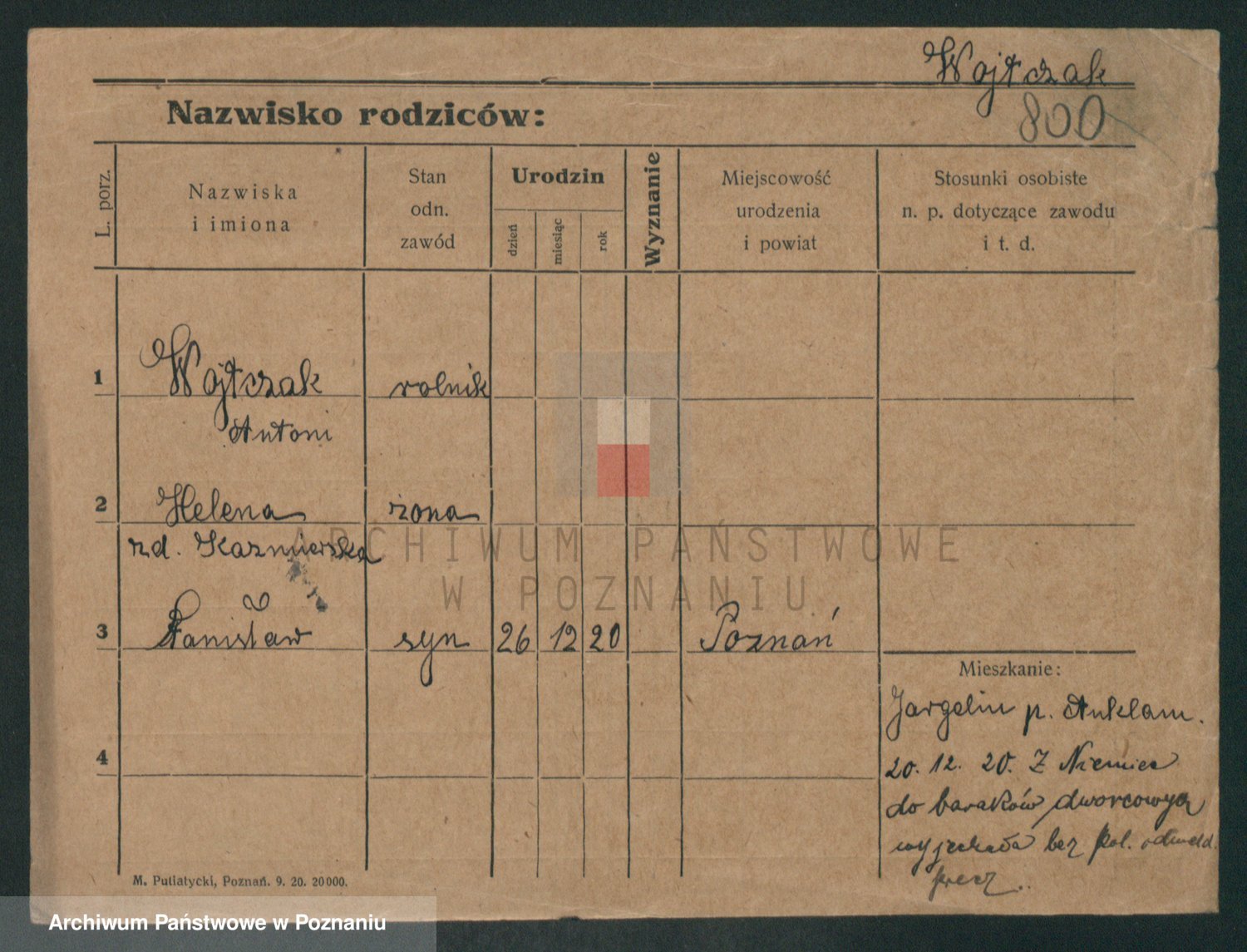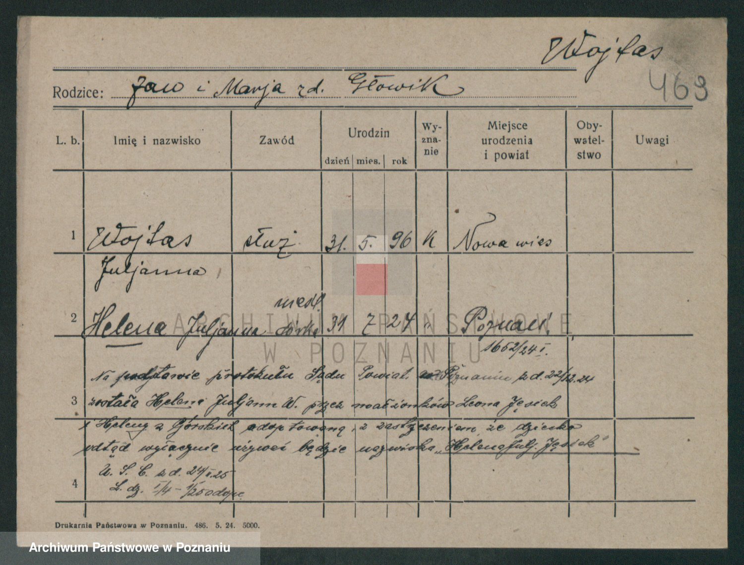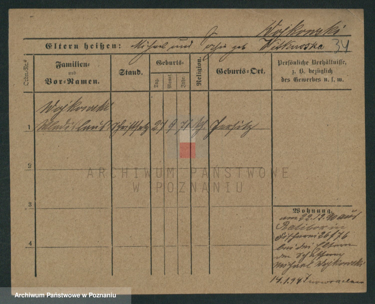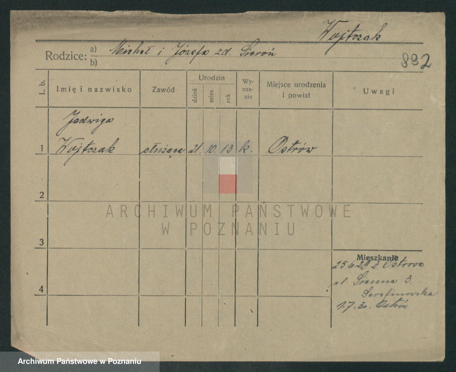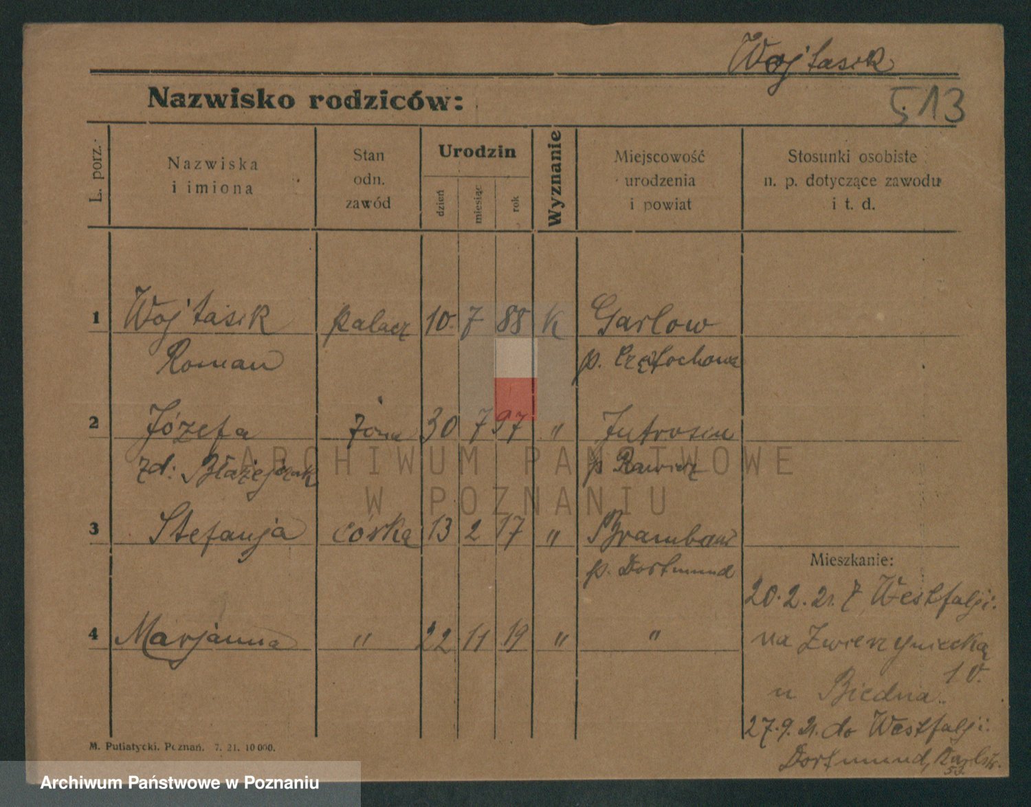 Podgląd karty osobowej dostępny jest po kliknięciu na nazwisko lub ikonkę karty. Można dokonywać powiększenia (ikony na górze) lub przechodzić między kolejnymi skanami (strzałki po bokach).