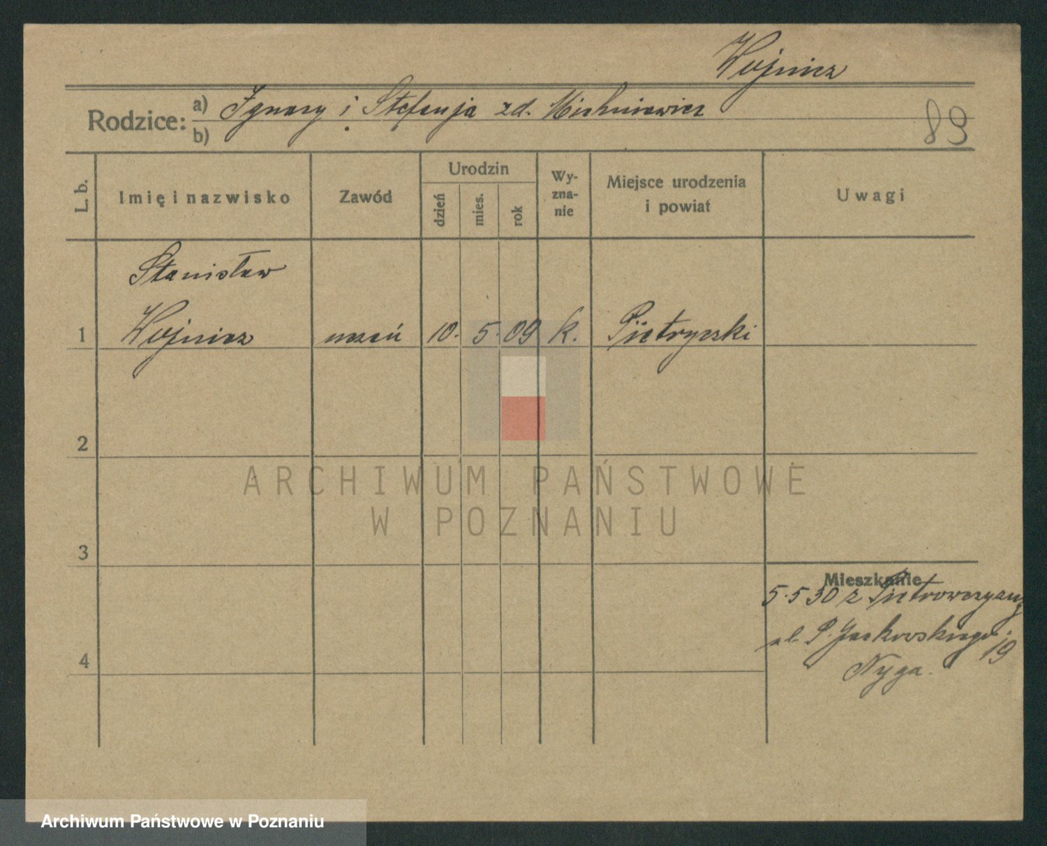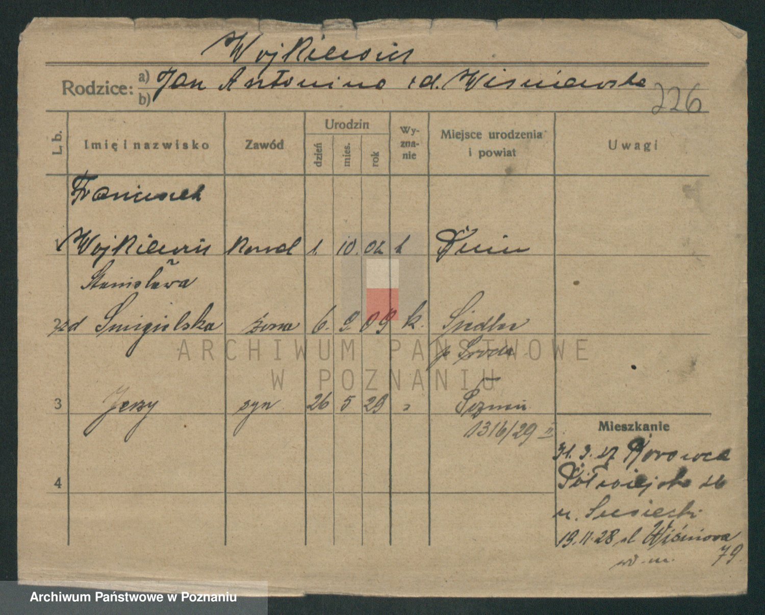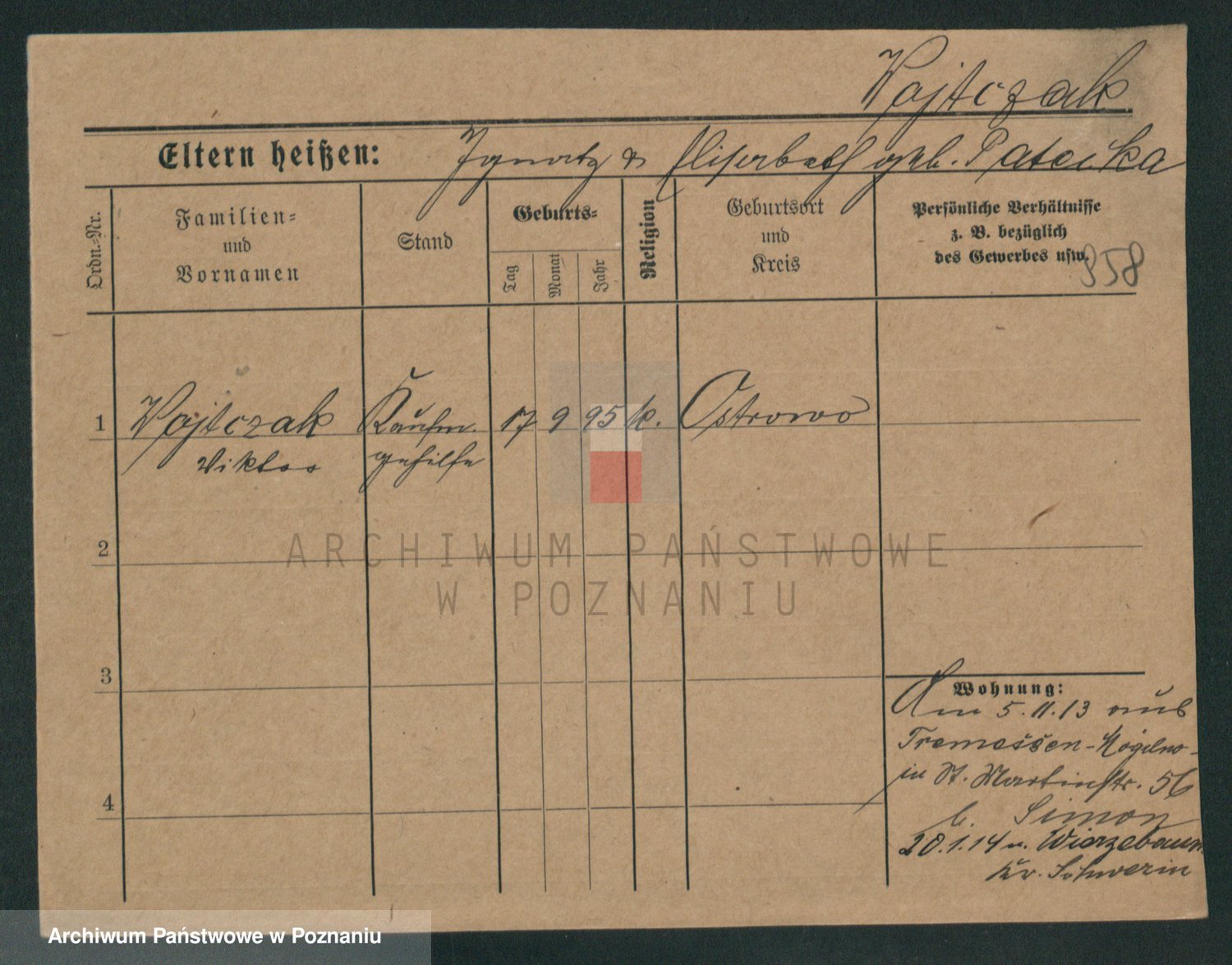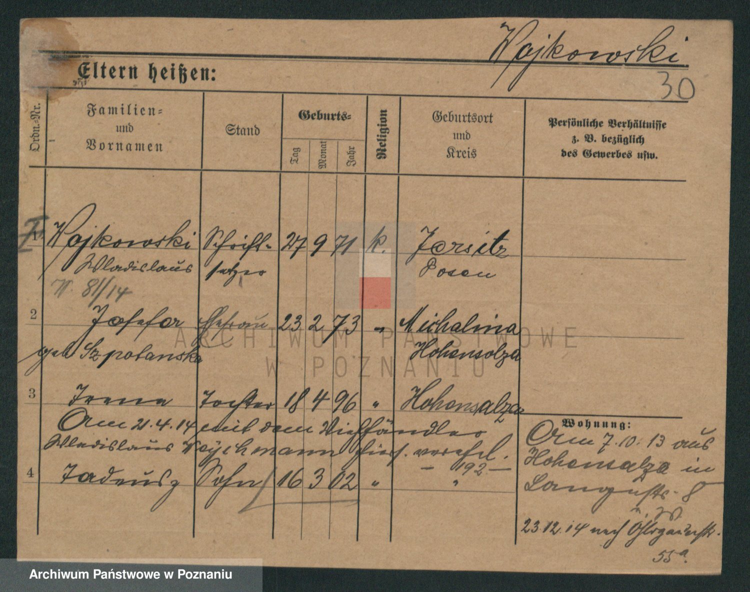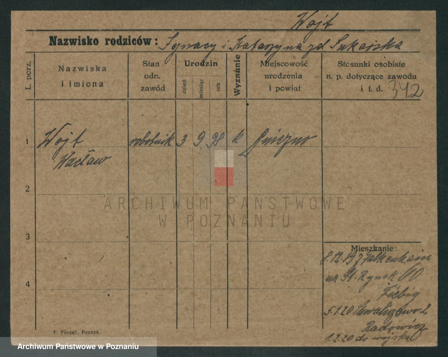 Podgląd karty osobowej dostępny jest po kliknięciu na nazwisko lub ikonkę karty. Można dokonywać powiększenia (ikony na górze) lub przechodzić między kolejnymi skanami (strzałki po bokach).