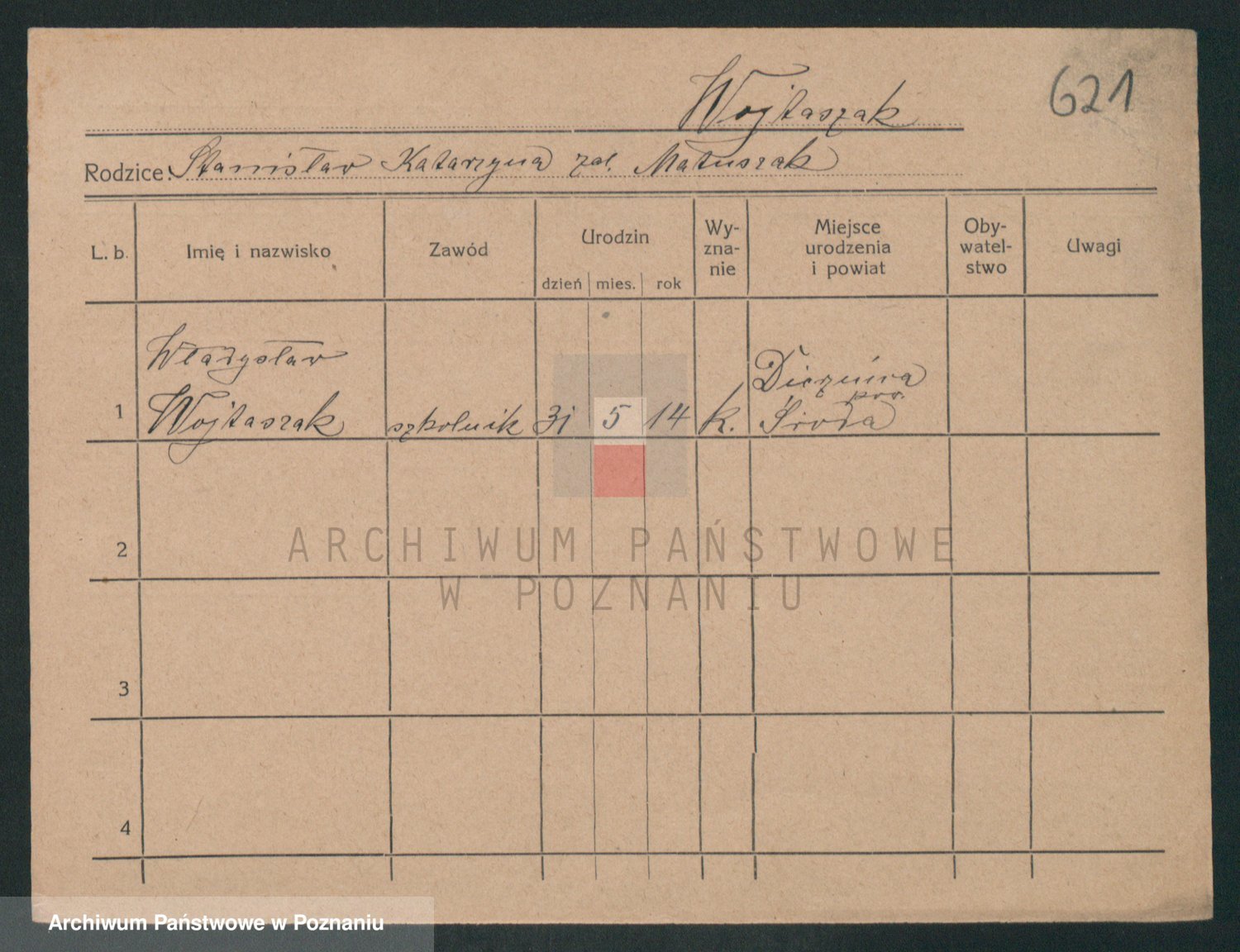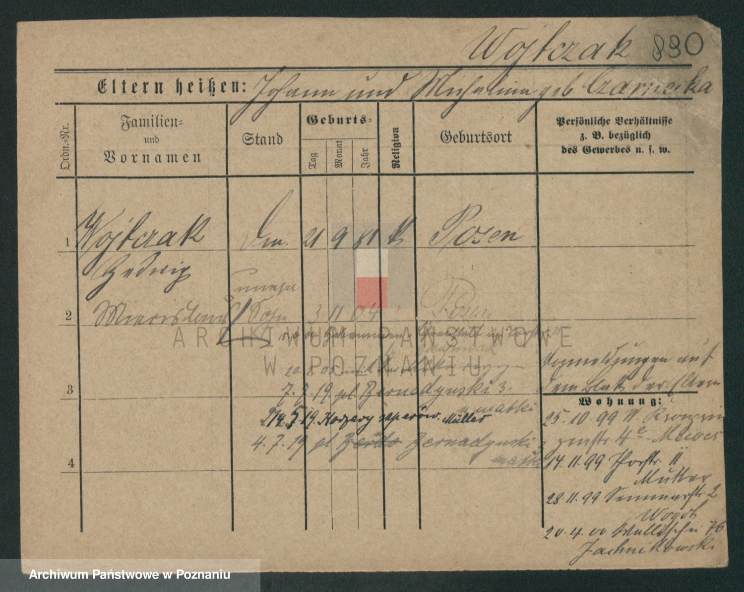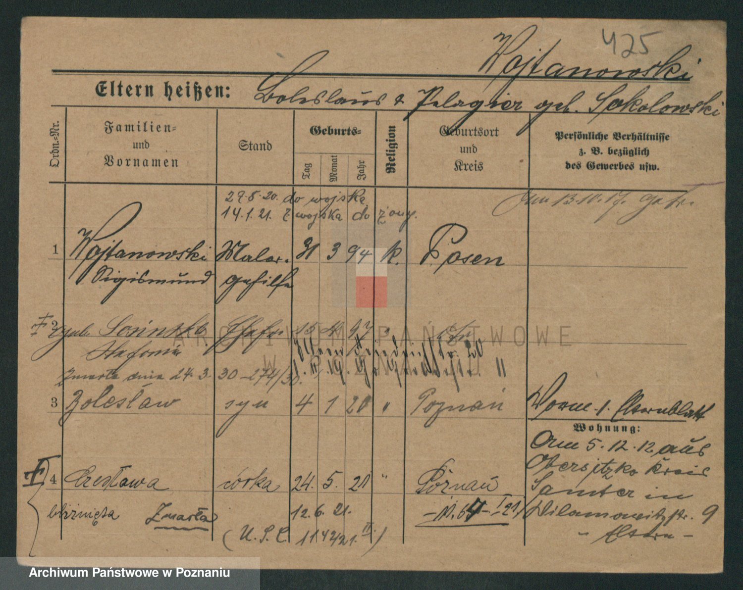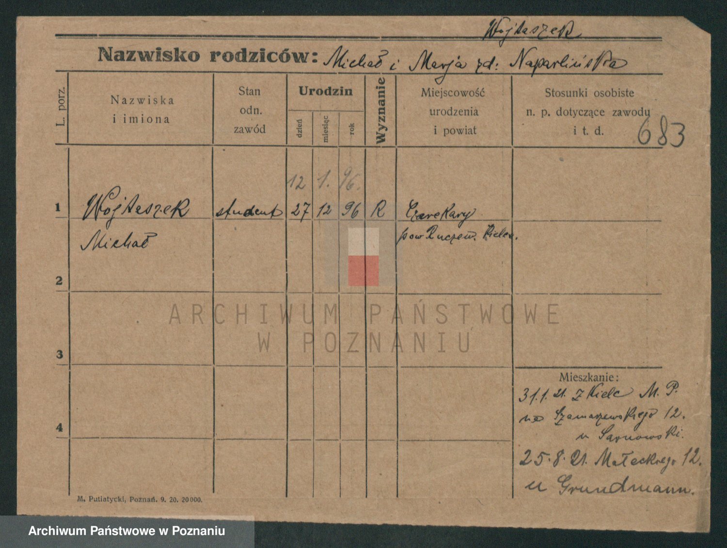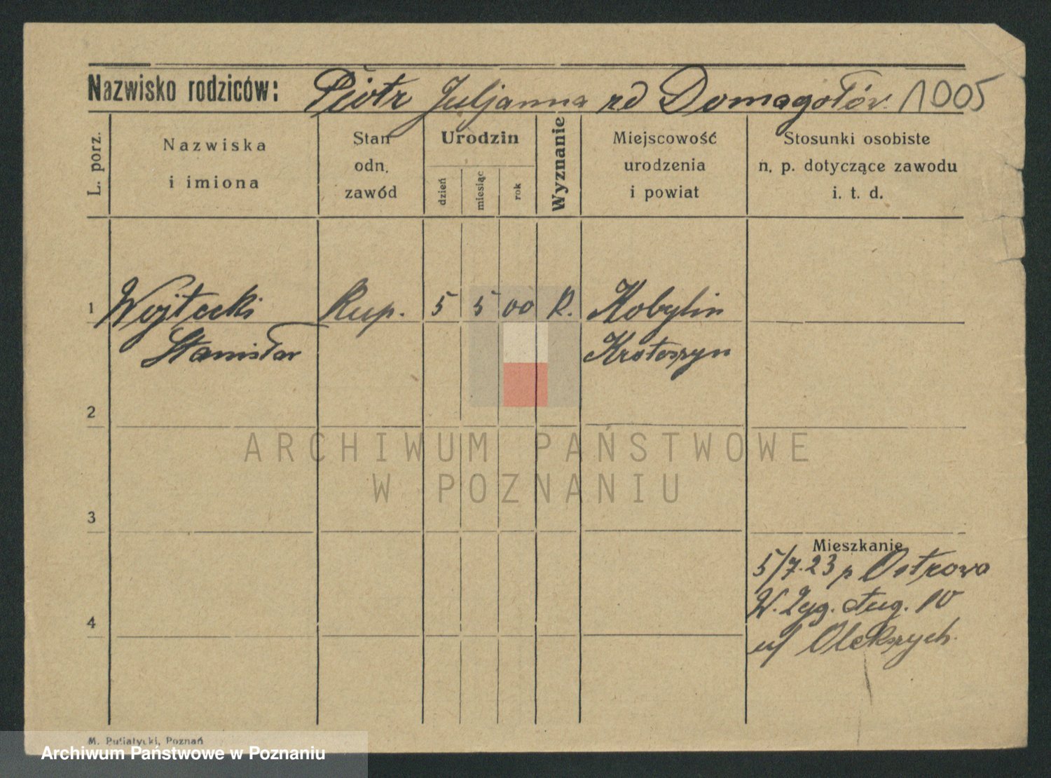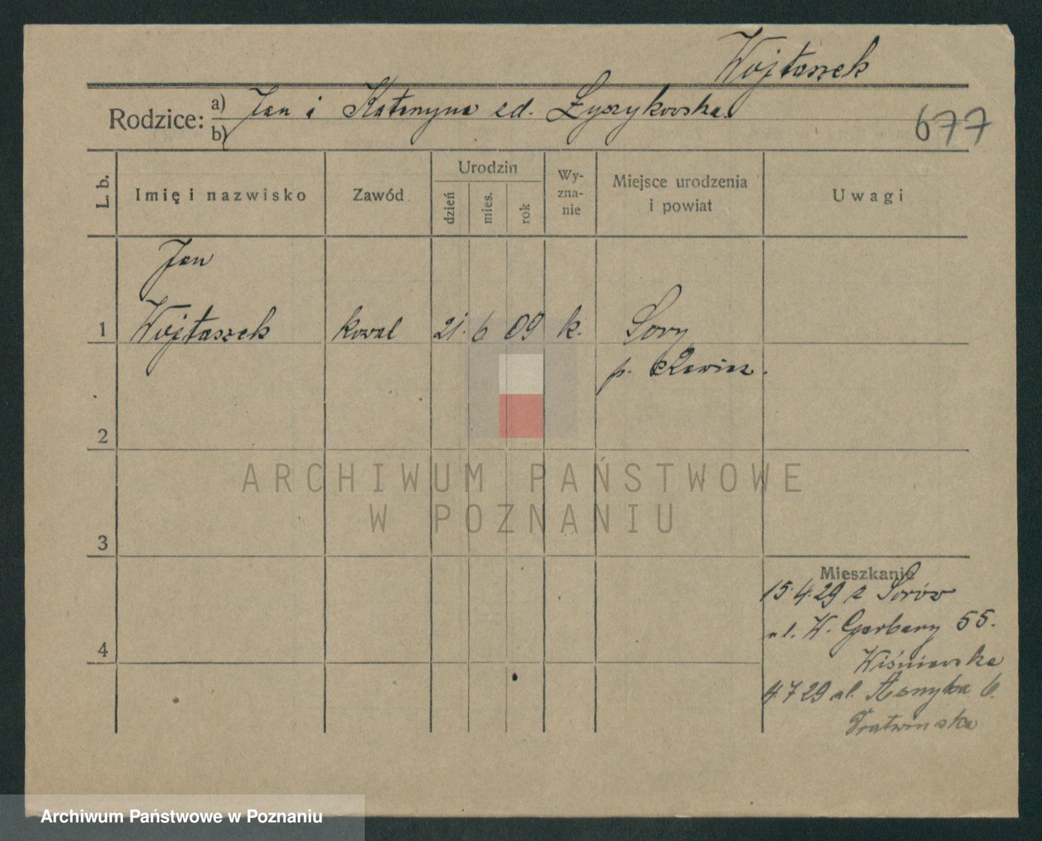 Podgląd karty osobowej dostępny jest po kliknięciu na nazwisko lub ikonkę karty. Można dokonywać powiększenia (ikony na górze) lub przechodzić między kolejnymi skanami (strzałki po bokach).