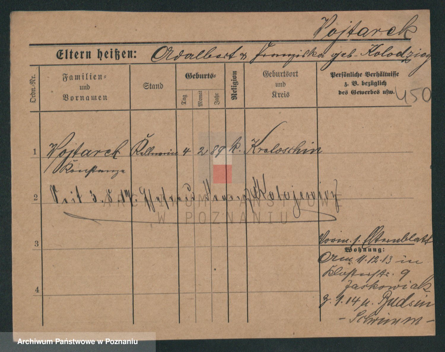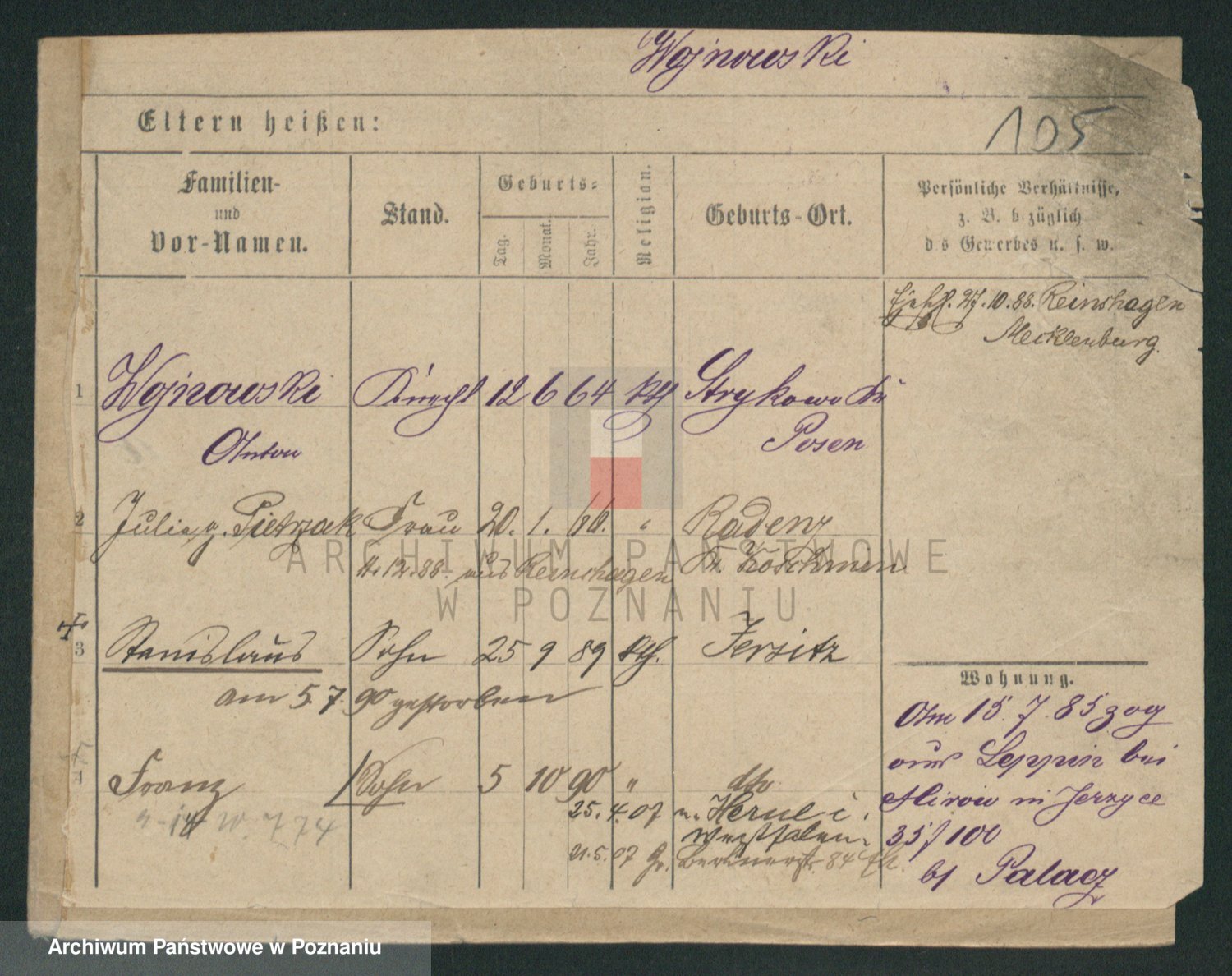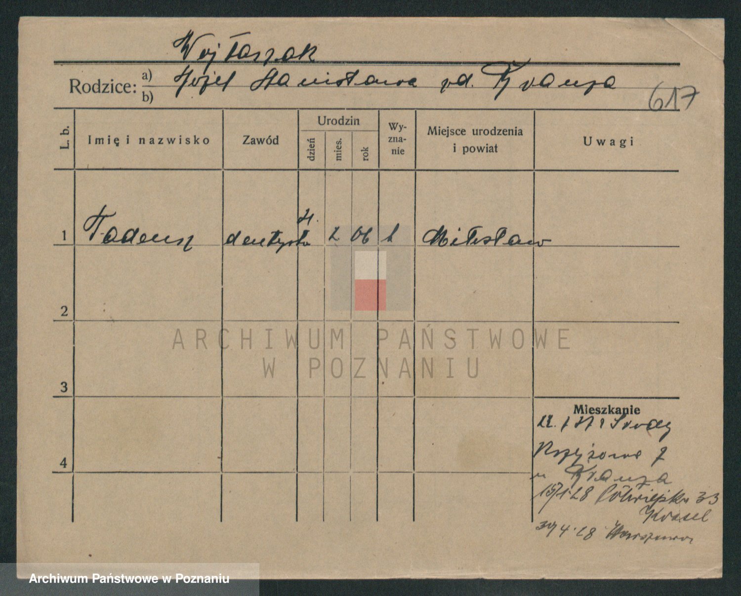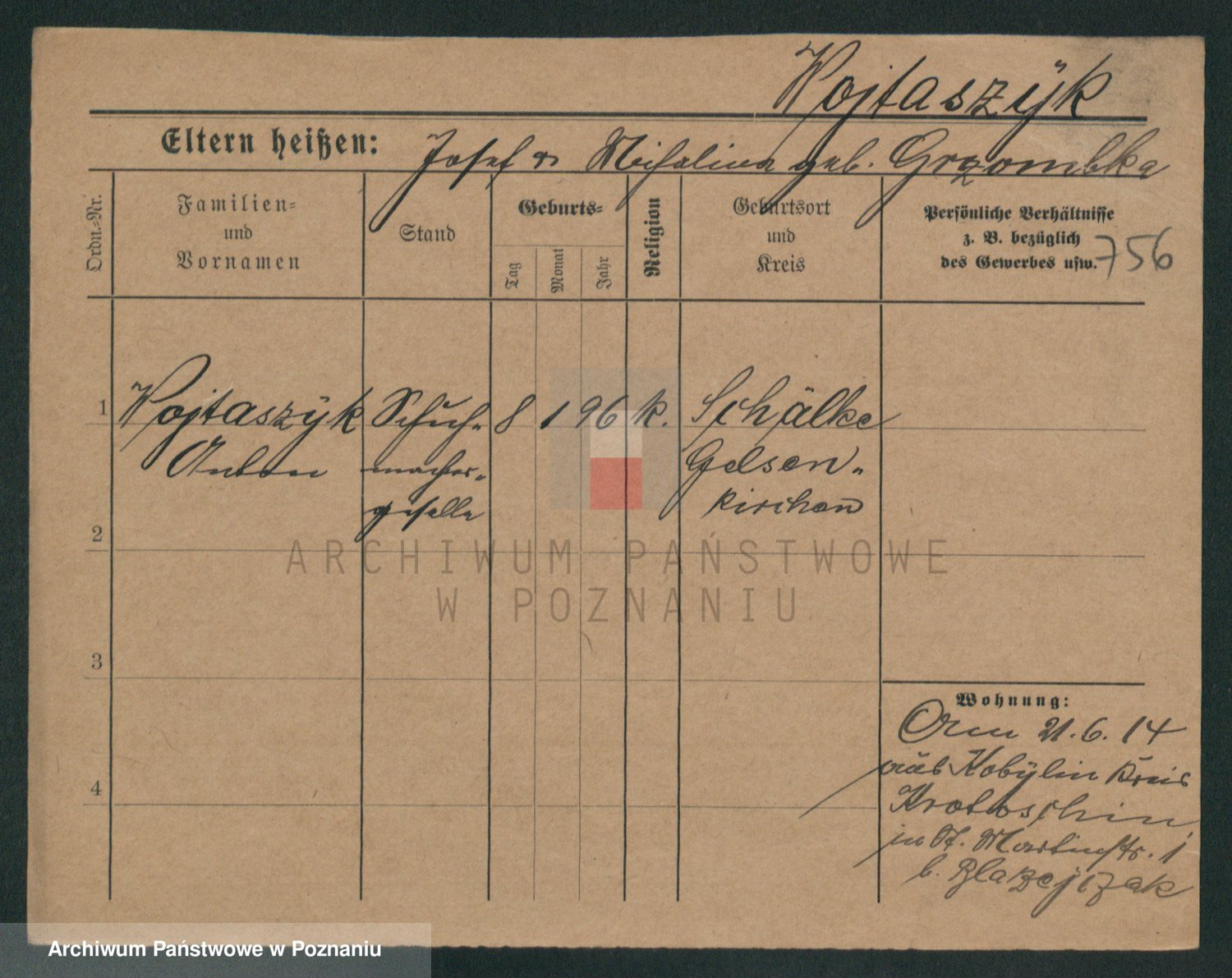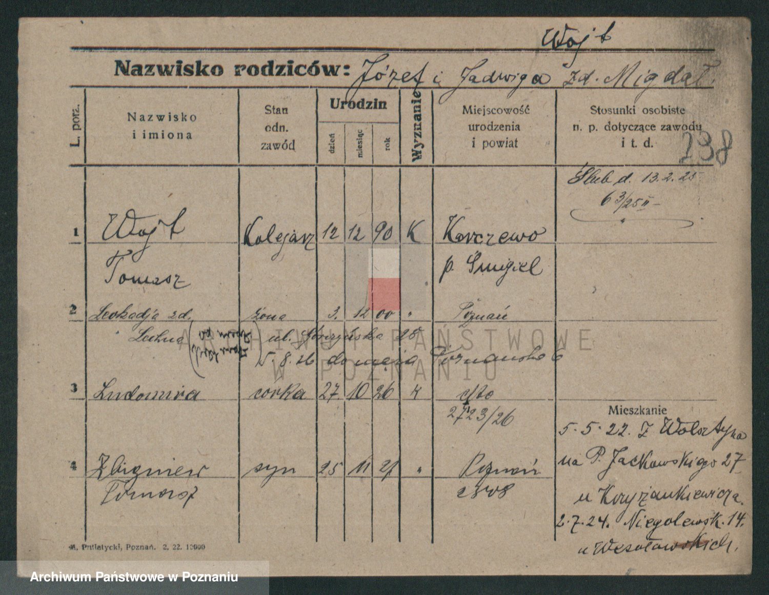 Podgląd karty osobowej dostępny jest po kliknięciu na nazwisko lub ikonkę karty. Można dokonywać powiększenia (ikony na górze) lub przechodzić między kolejnymi skanami (strzałki po bokach).