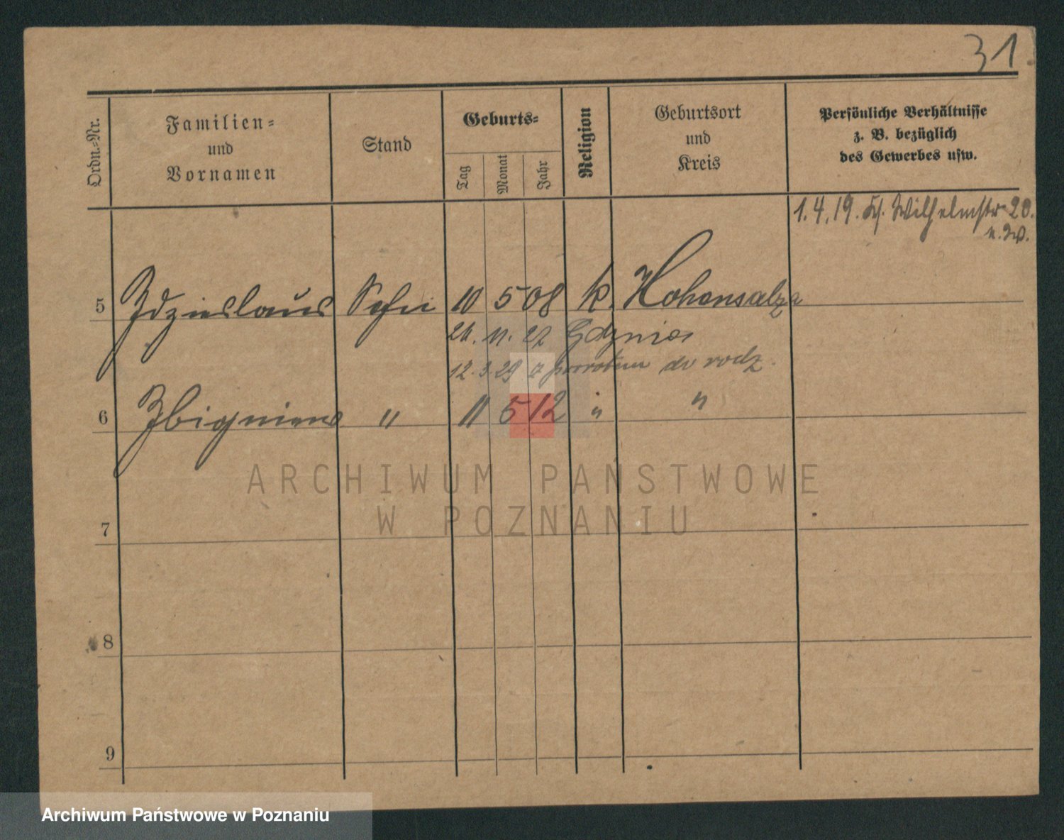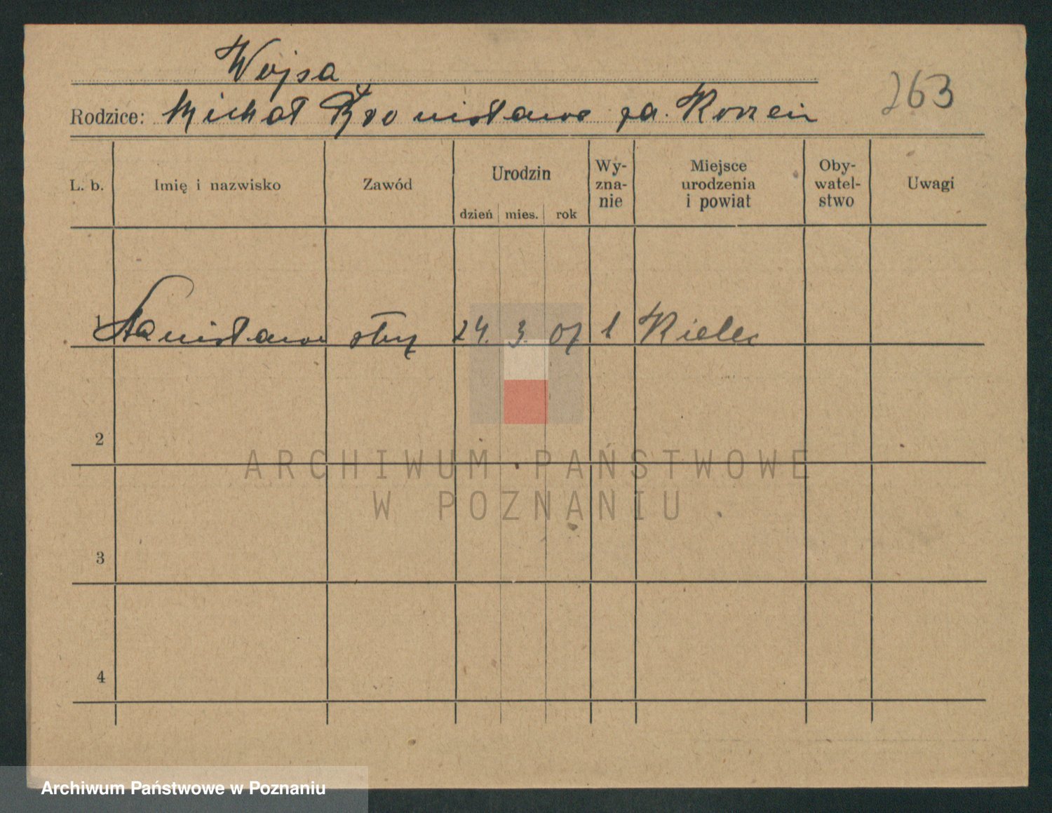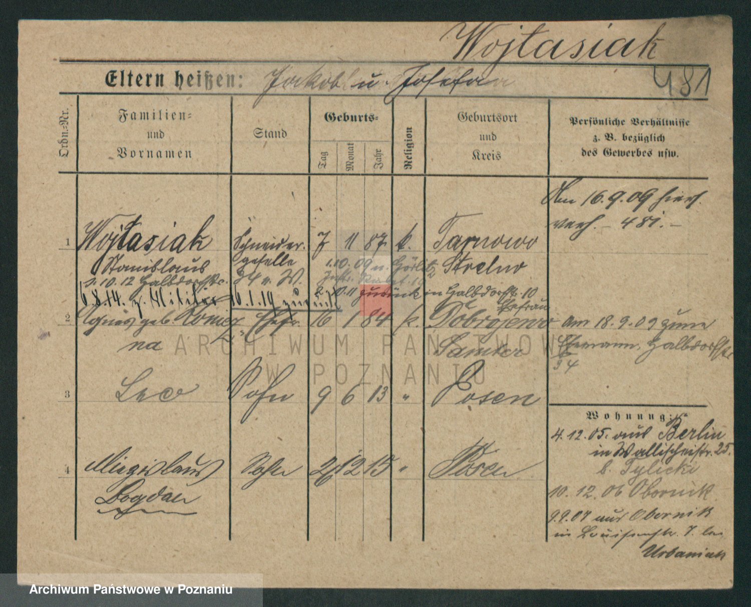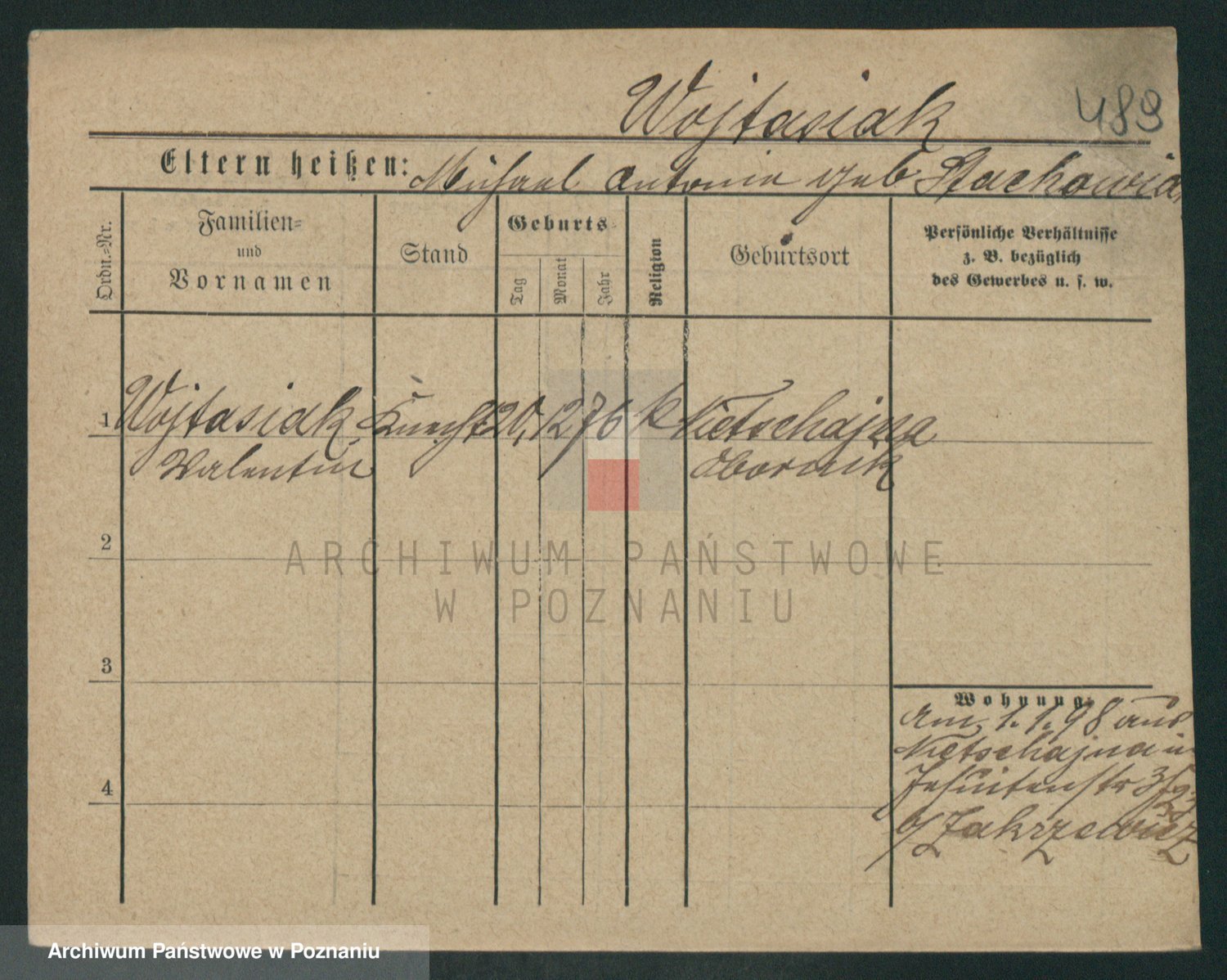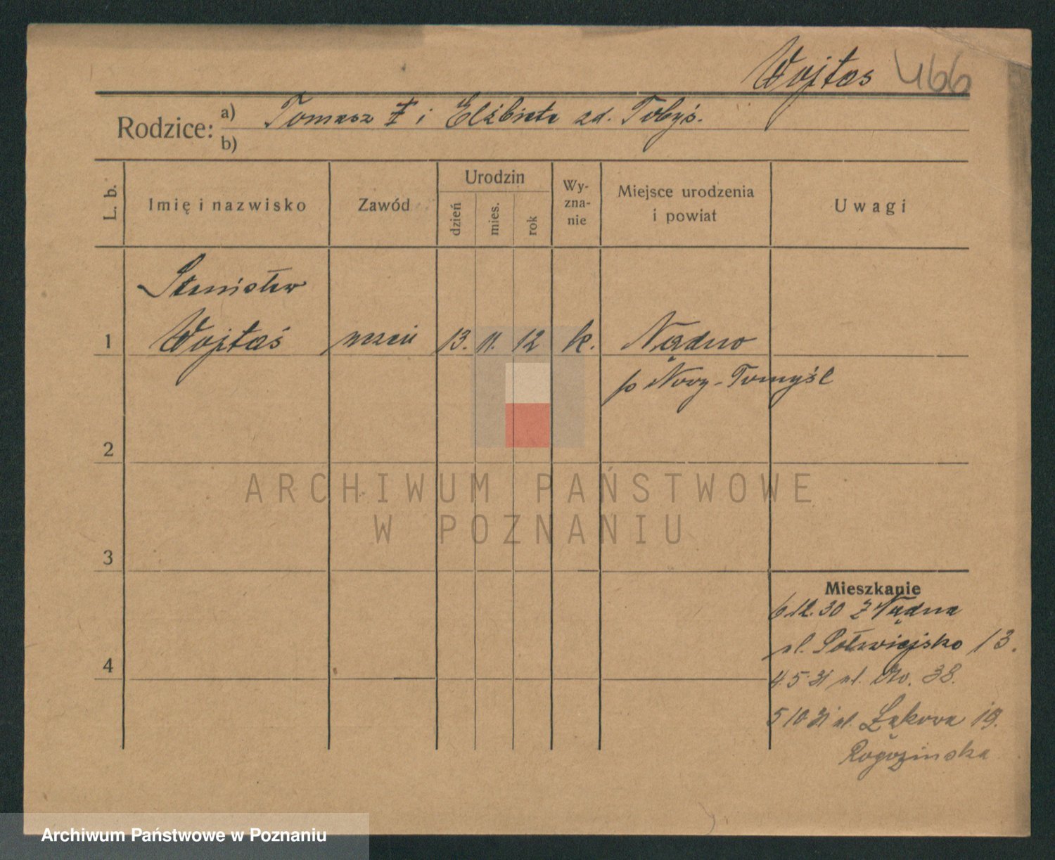 Podgląd karty osobowej dostępny jest po kliknięciu na nazwisko lub ikonkę karty. Można dokonywać powiększenia (ikony na górze) lub przechodzić między kolejnymi skanami (strzałki po bokach).