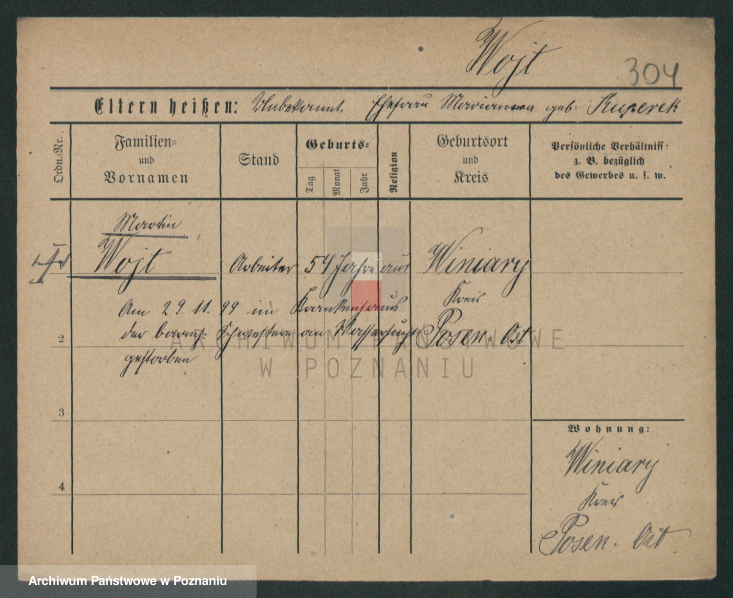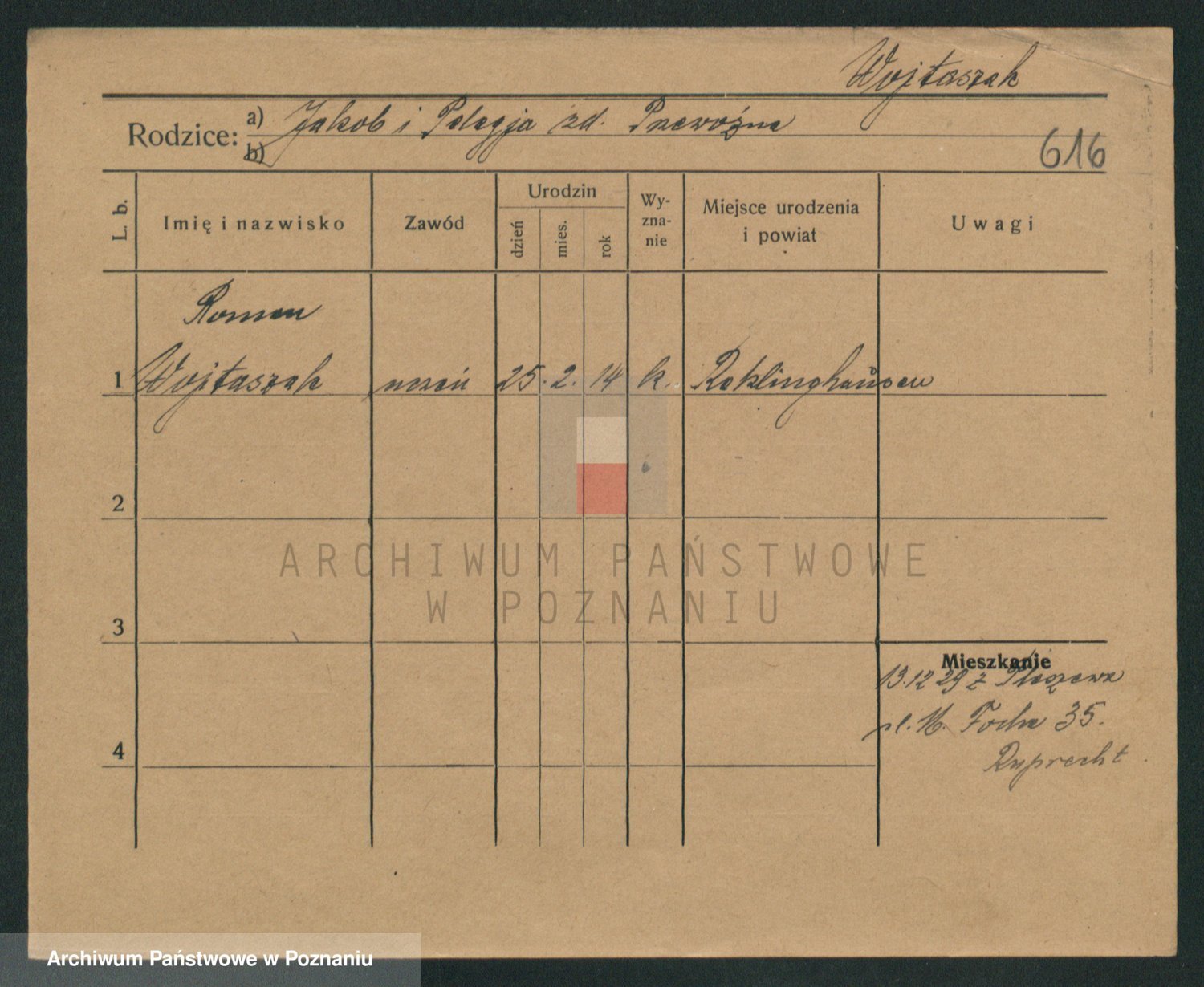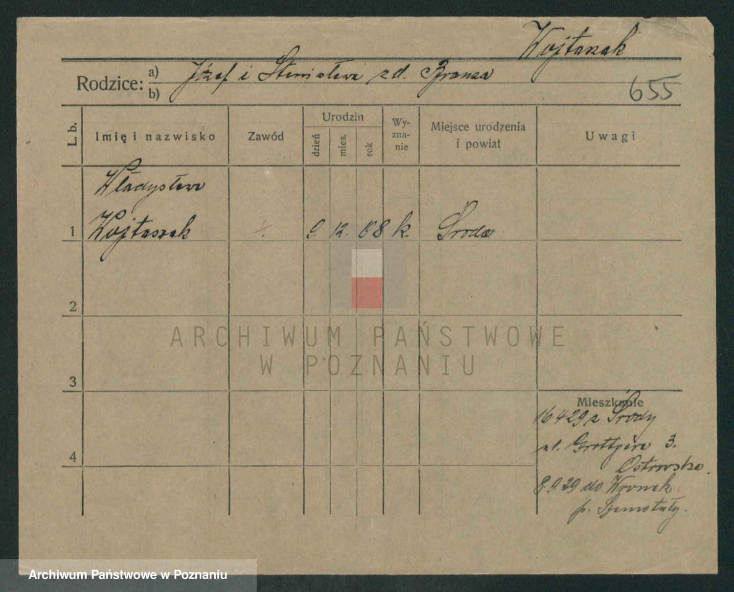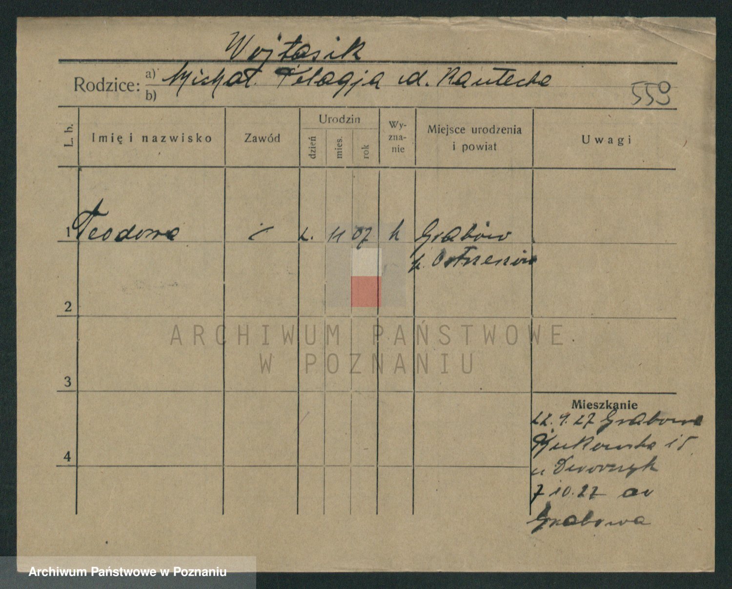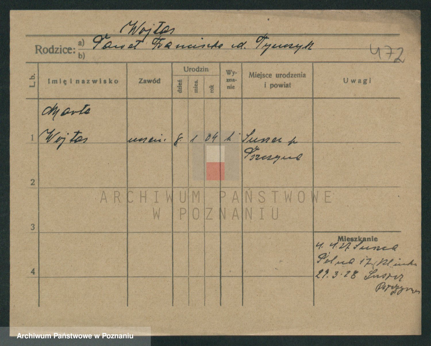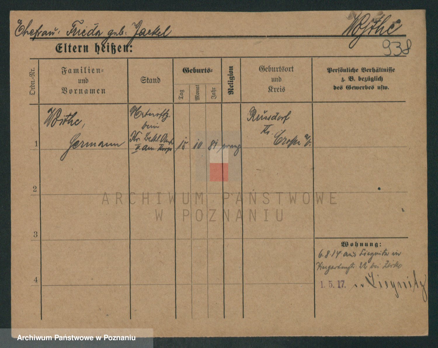 Podgląd karty osobowej dostępny jest po kliknięciu na nazwisko lub ikonkę karty. Można dokonywać powiększenia (ikony na górze) lub przechodzić między kolejnymi skanami (strzałki po bokach).
