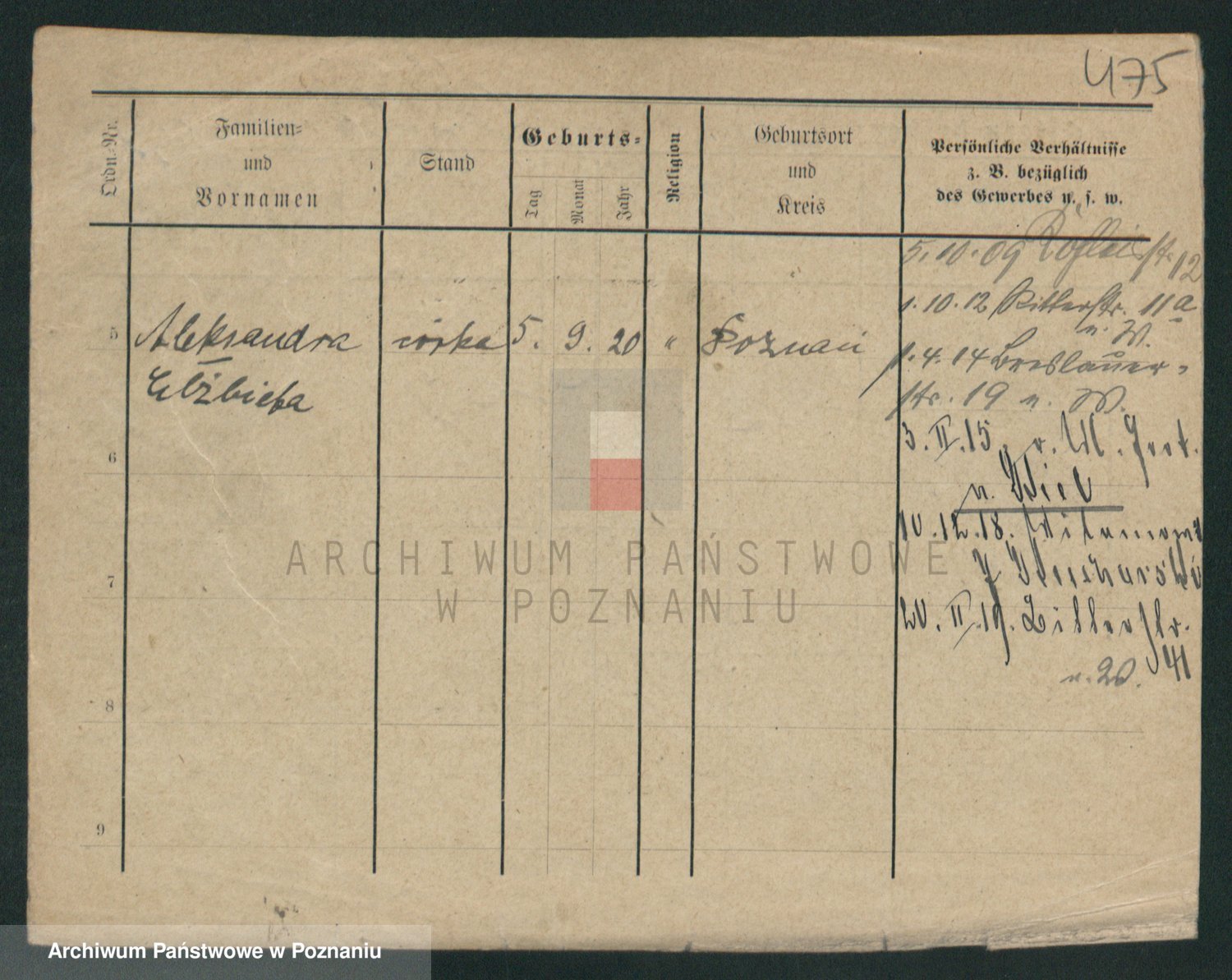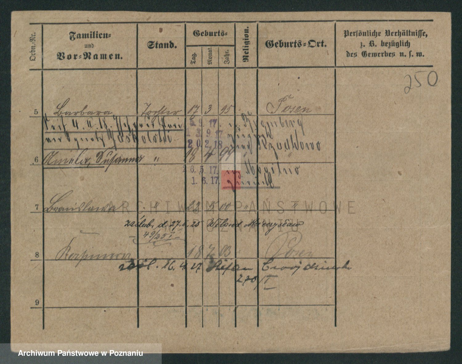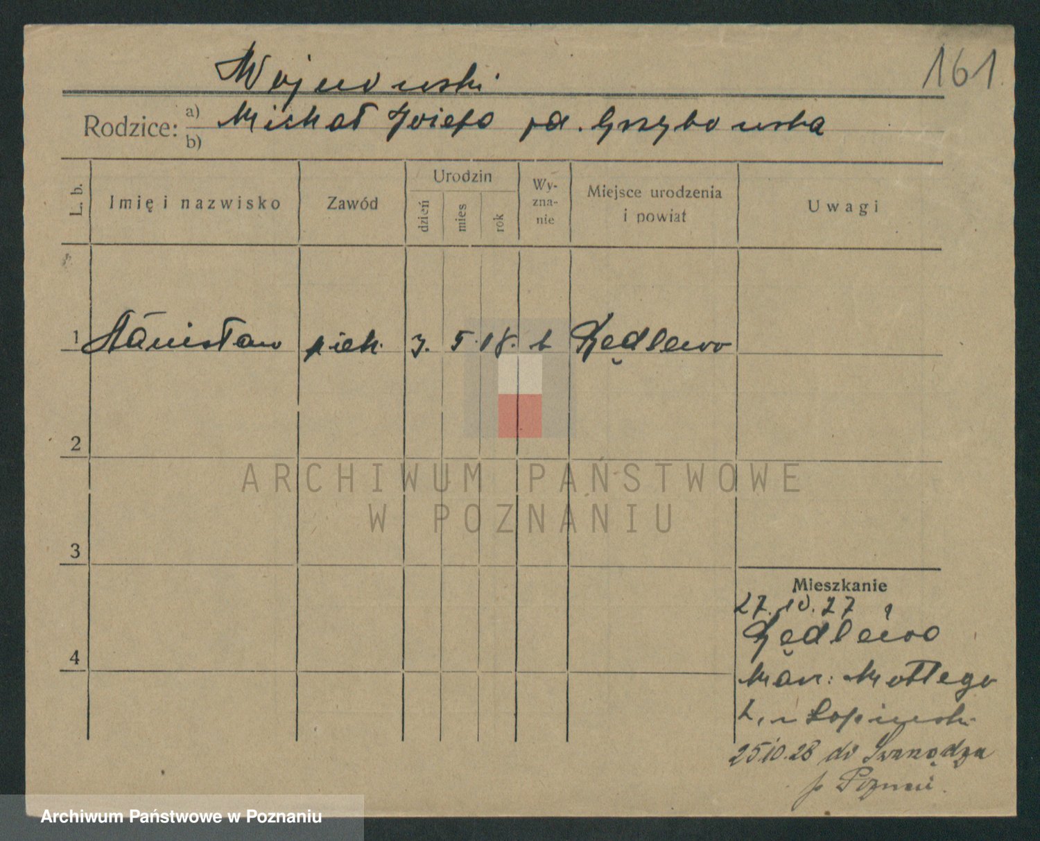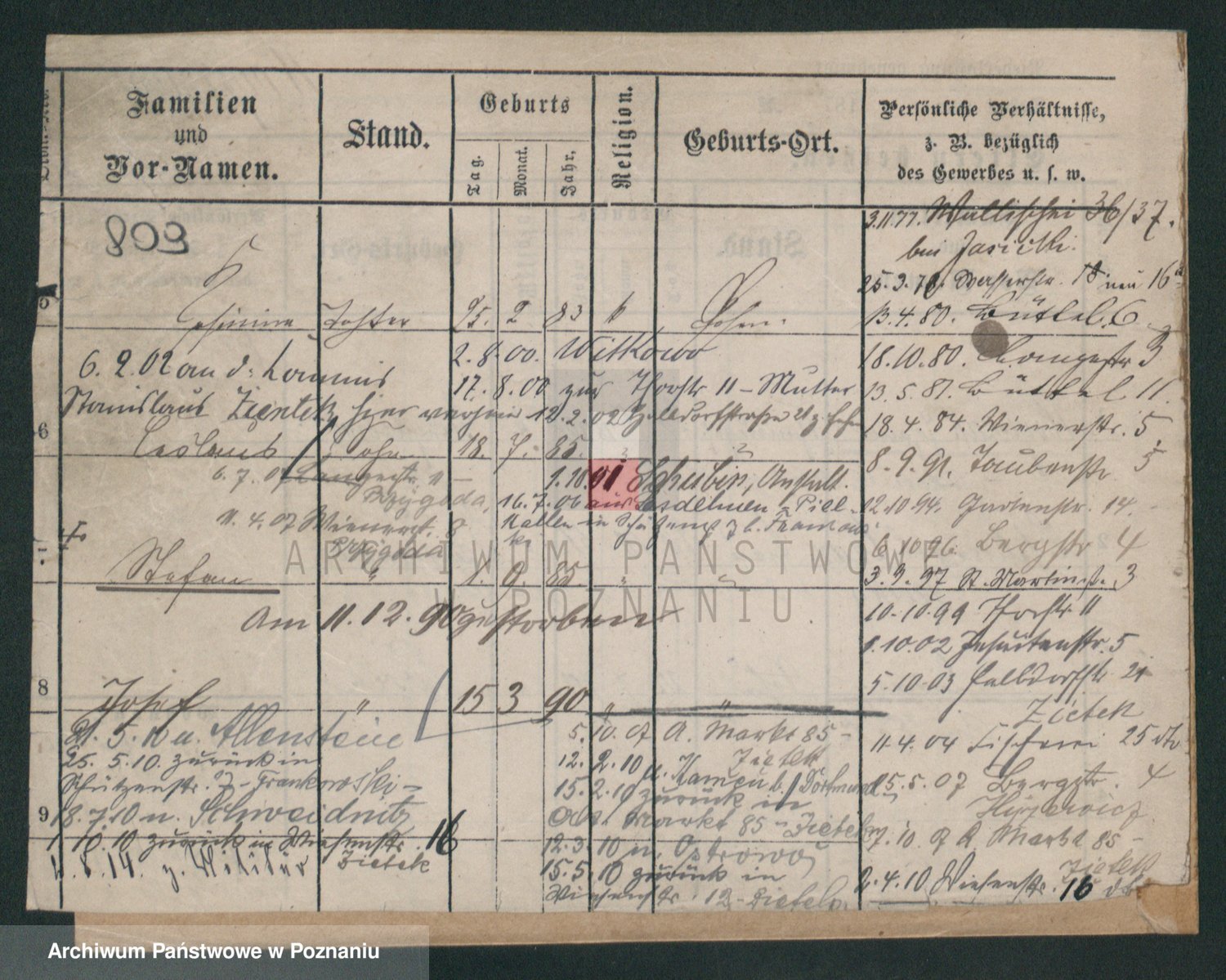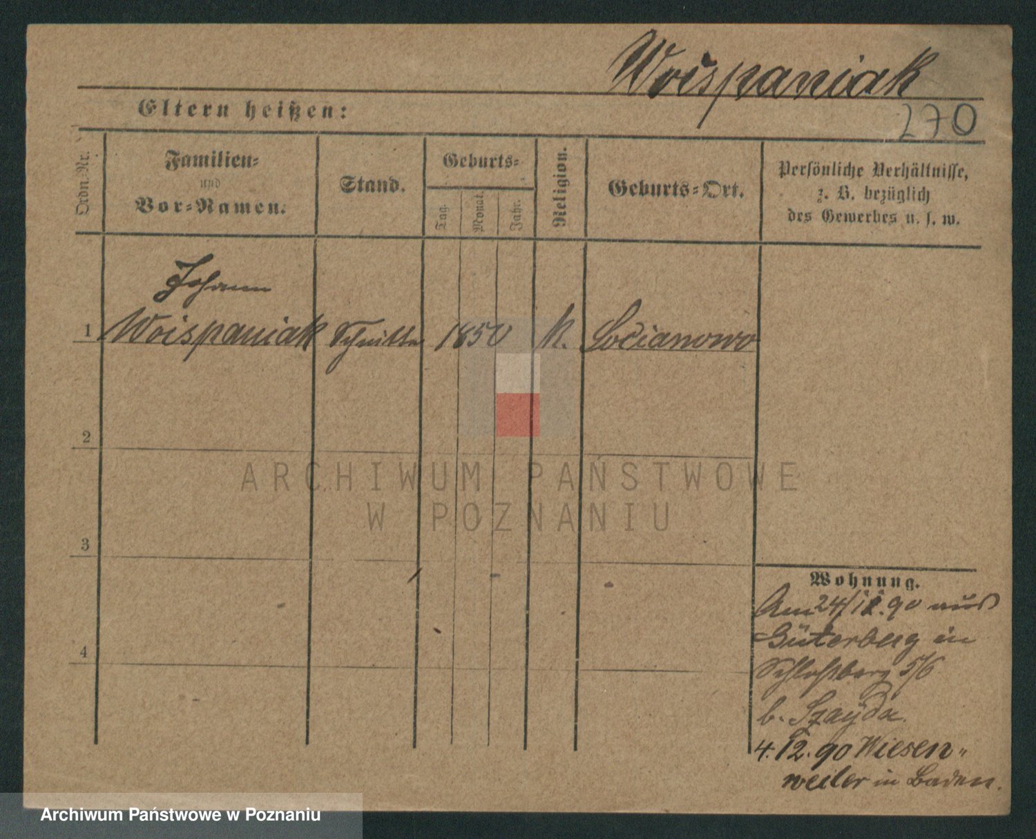 Podgląd karty osobowej dostępny jest po kliknięciu na nazwisko lub ikonkę karty. Można dokonywać powiększenia (ikony na górze) lub przechodzić między kolejnymi skanami (strzałki po bokach).