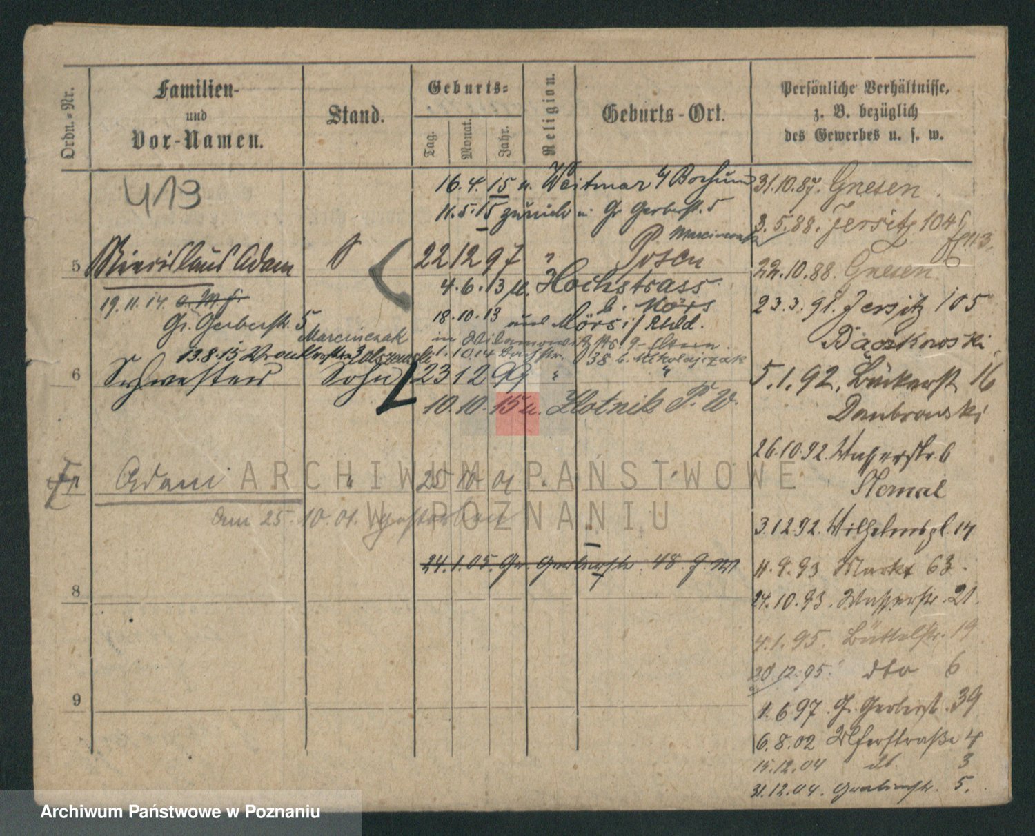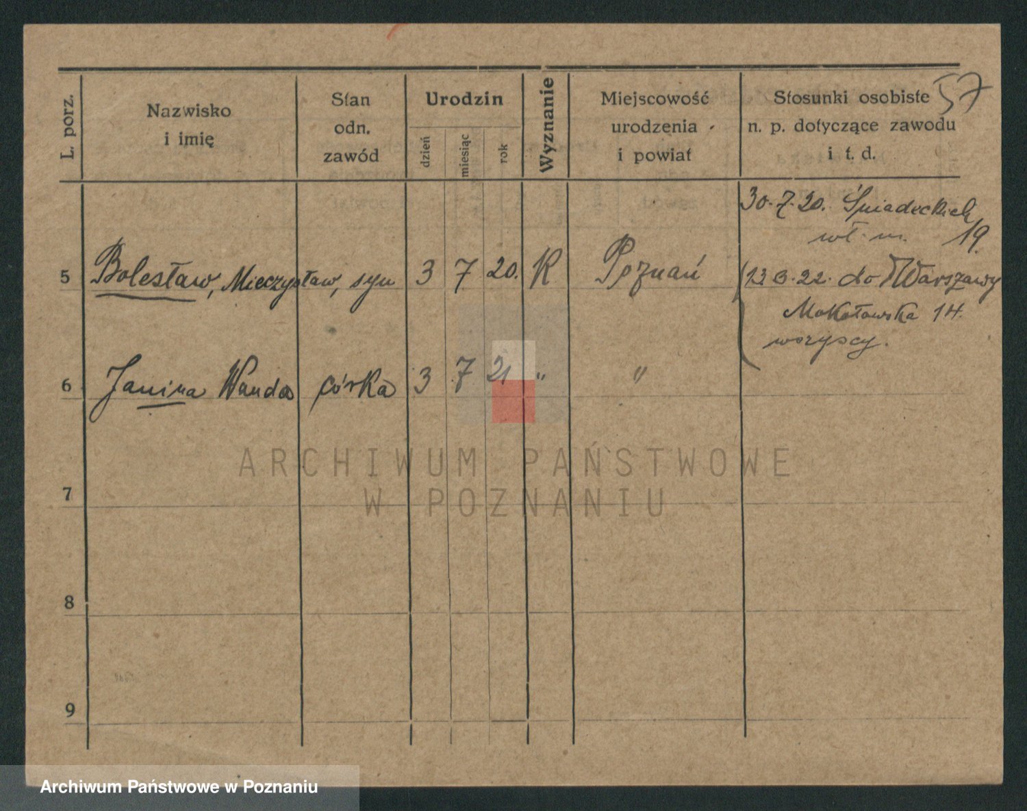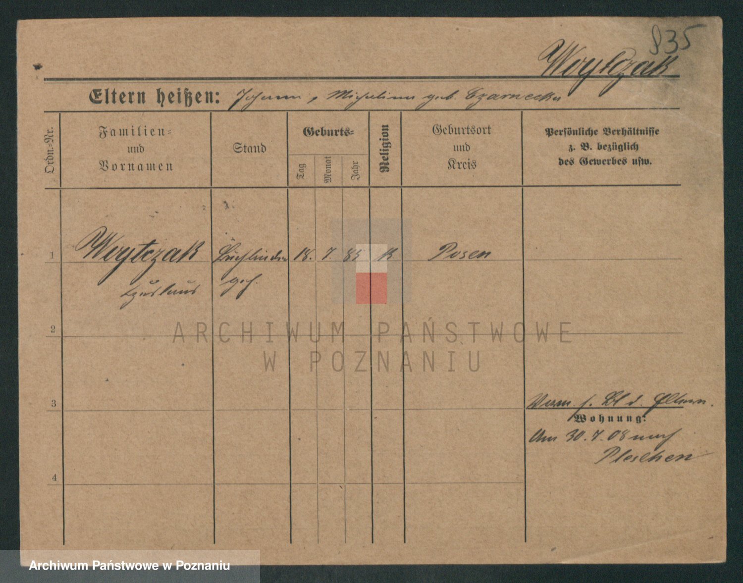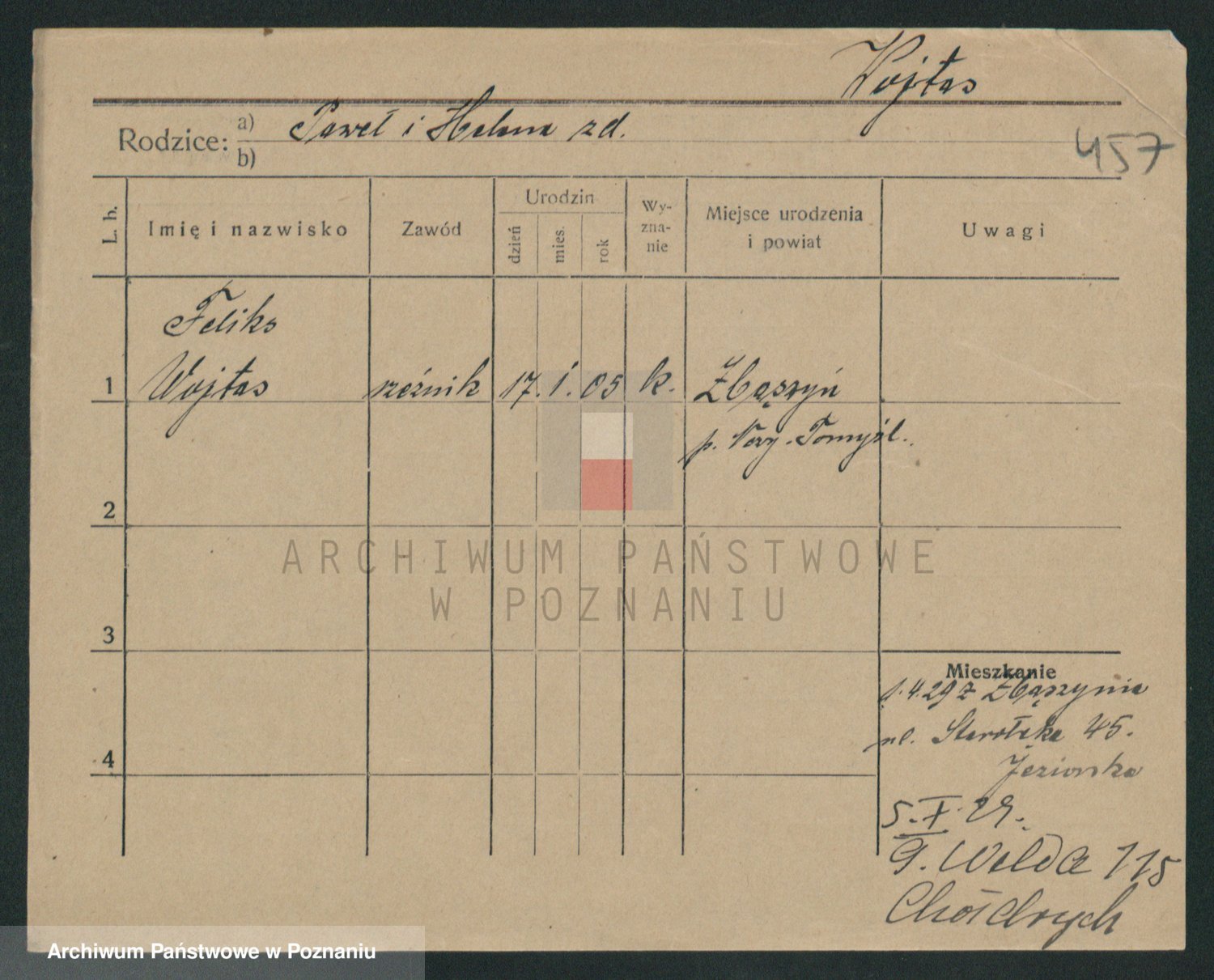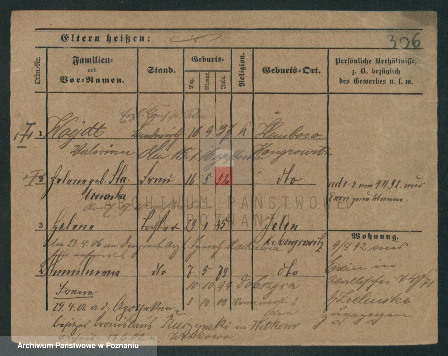 Podgląd karty osobowej dostępny jest po kliknięciu na nazwisko lub ikonkę karty. Można dokonywać powiększenia (ikony na górze) lub przechodzić między kolejnymi skanami (strzałki po bokach).
