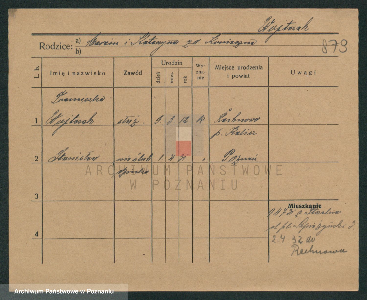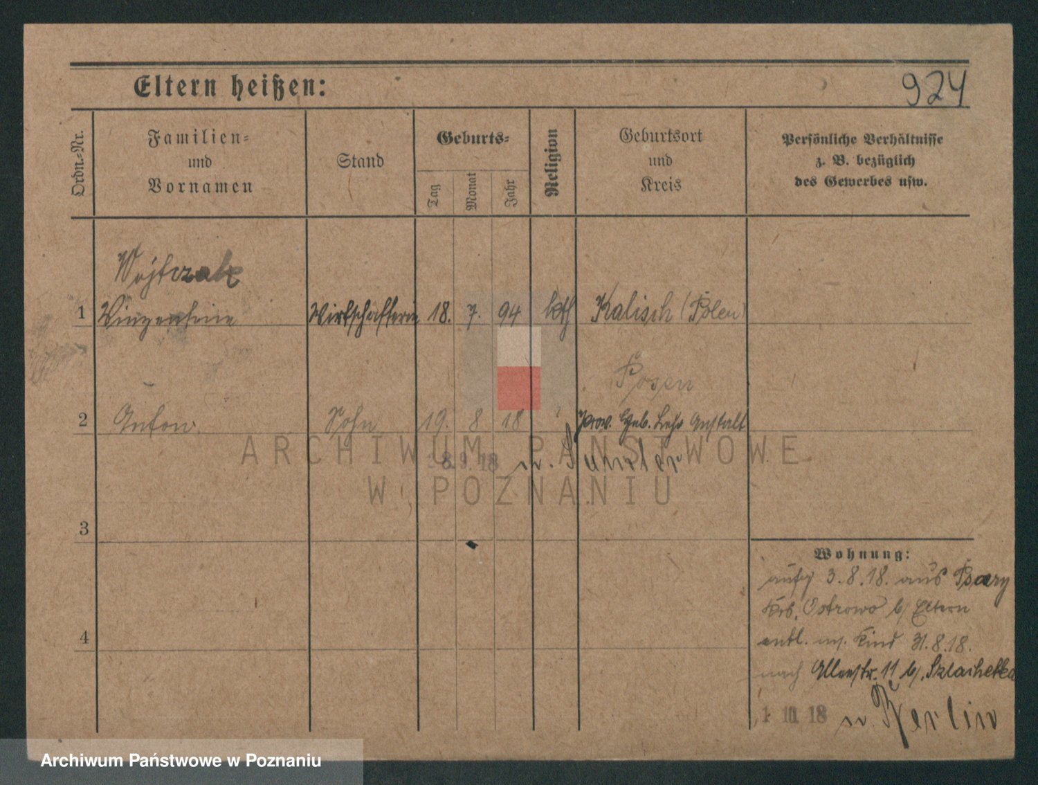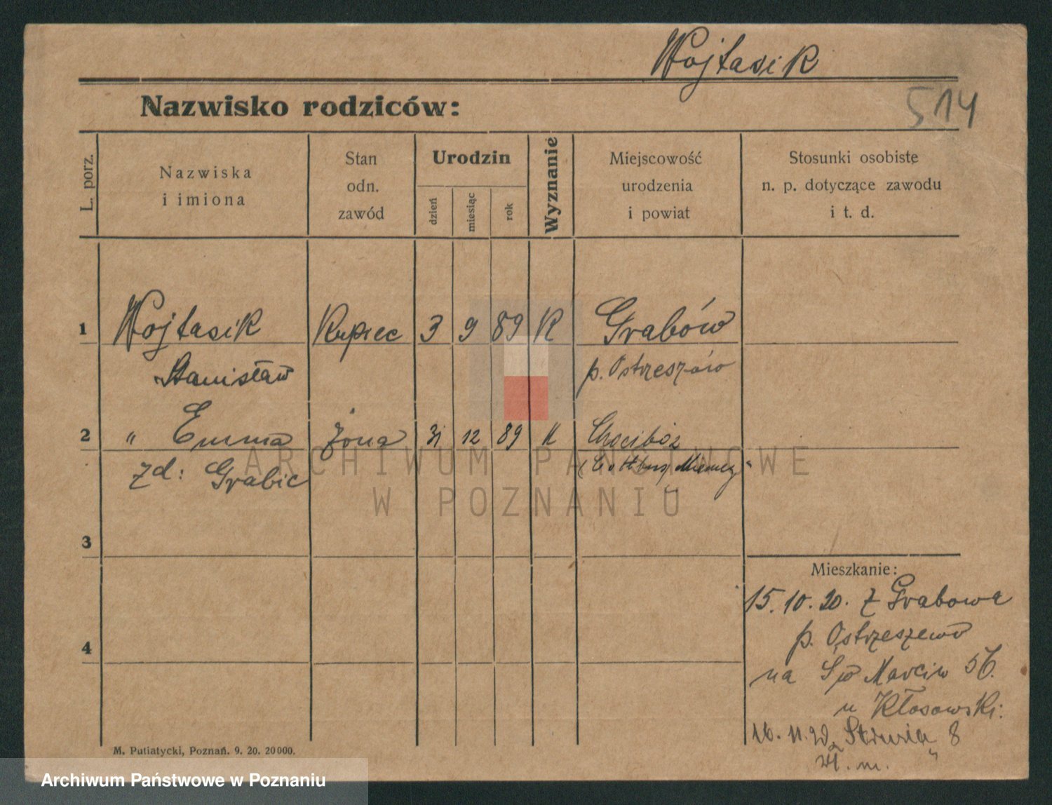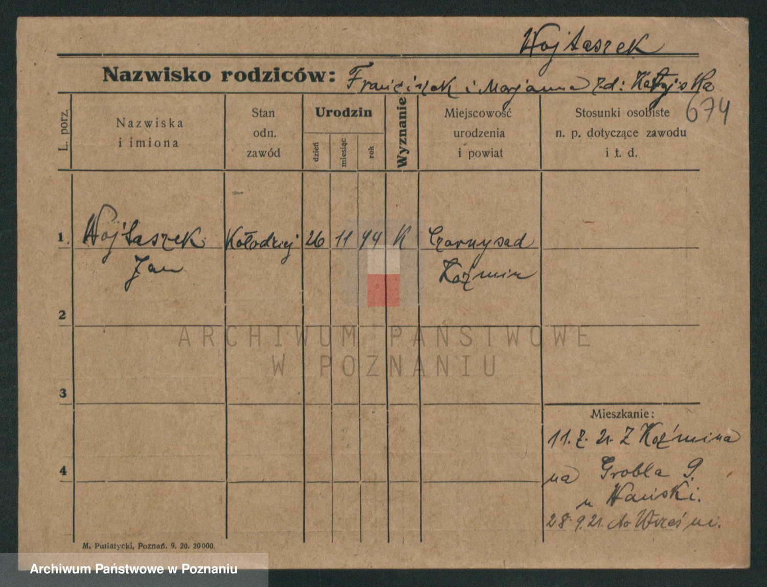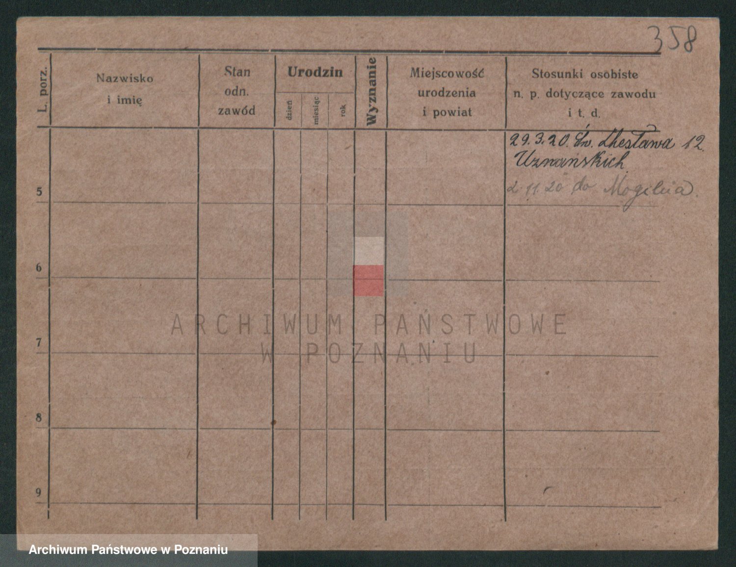 Podgląd karty osobowej dostępny jest po kliknięciu na nazwisko lub ikonkę karty. Można dokonywać powiększenia (ikony na górze) lub przechodzić między kolejnymi skanami (strzałki po bokach).