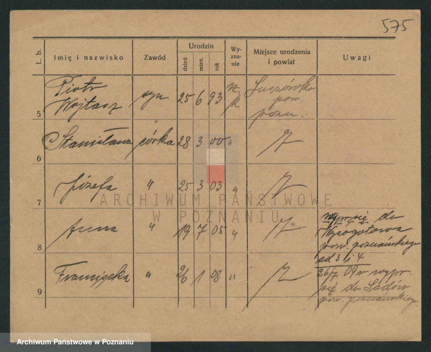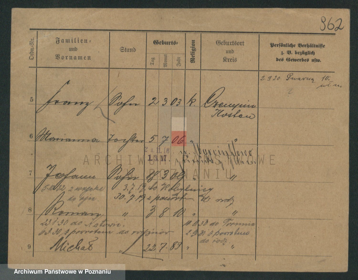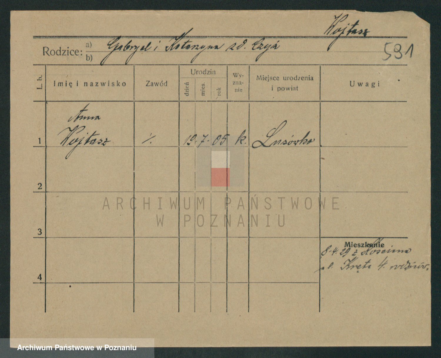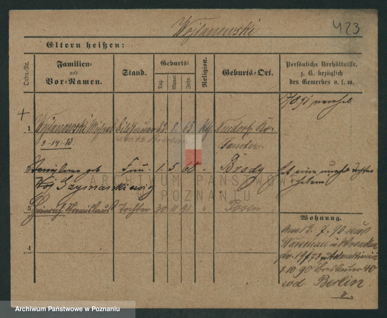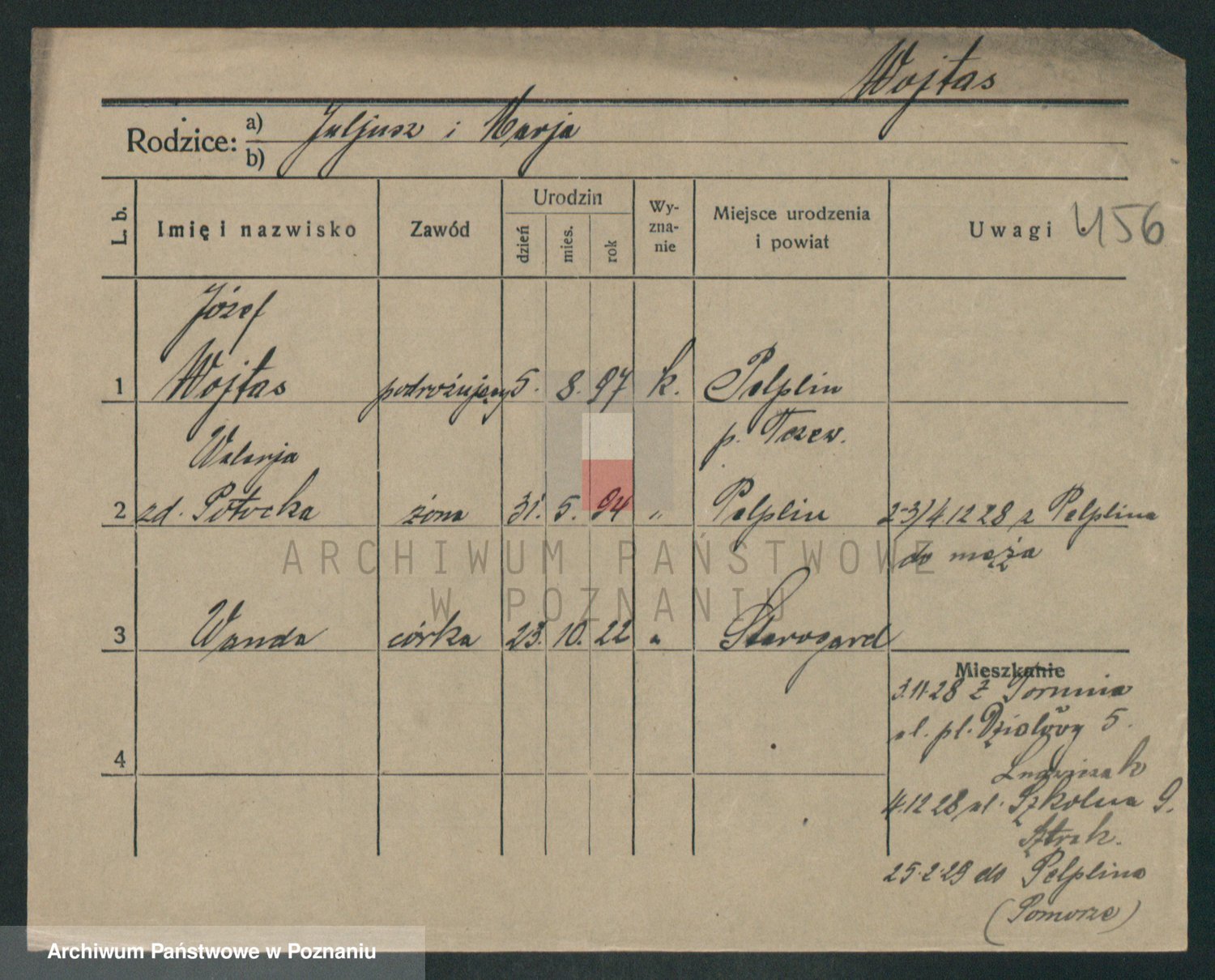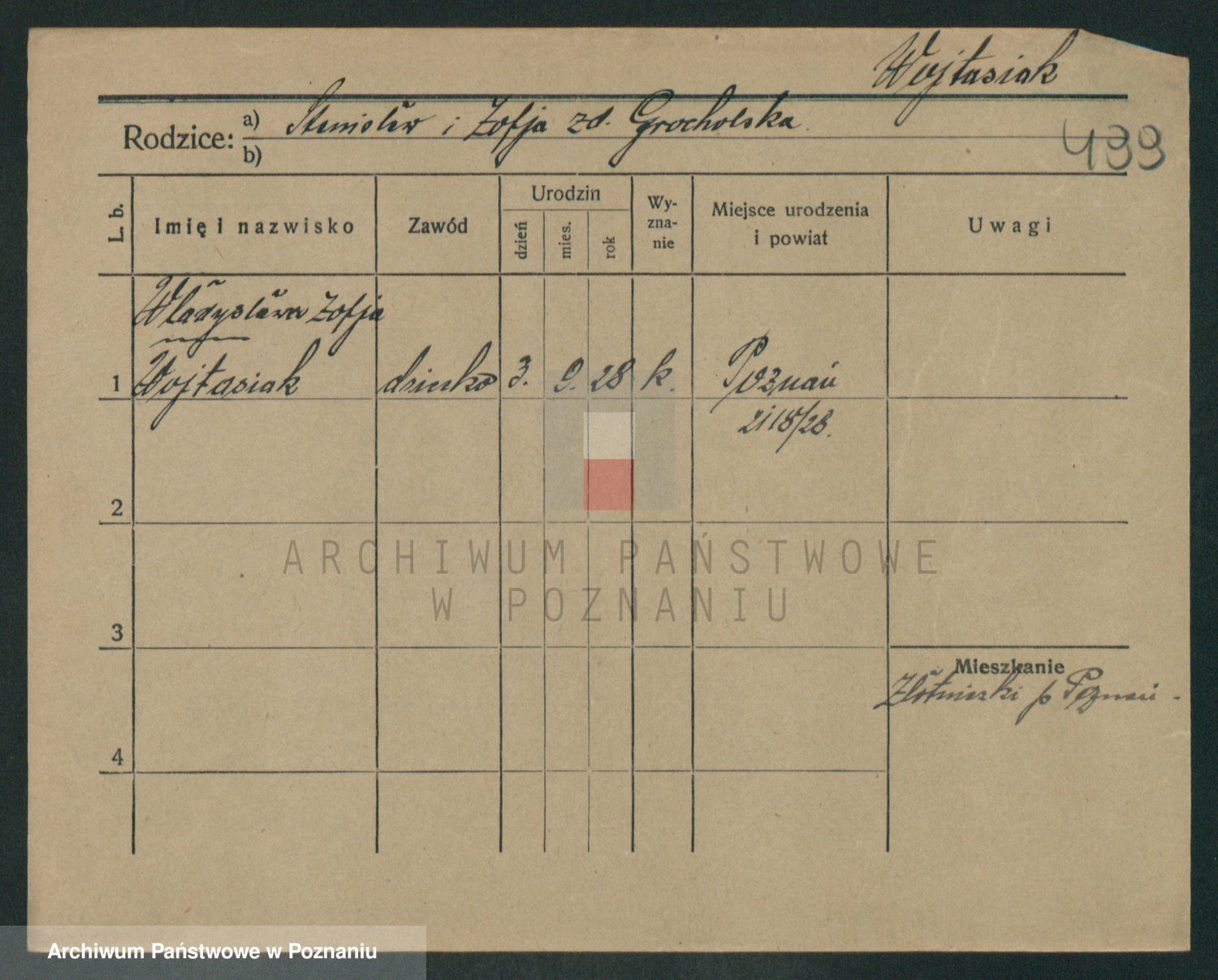 Podgląd karty osobowej dostępny jest po kliknięciu na nazwisko lub ikonkę karty. Można dokonywać powiększenia (ikony na górze) lub przechodzić między kolejnymi skanami (strzałki po bokach).