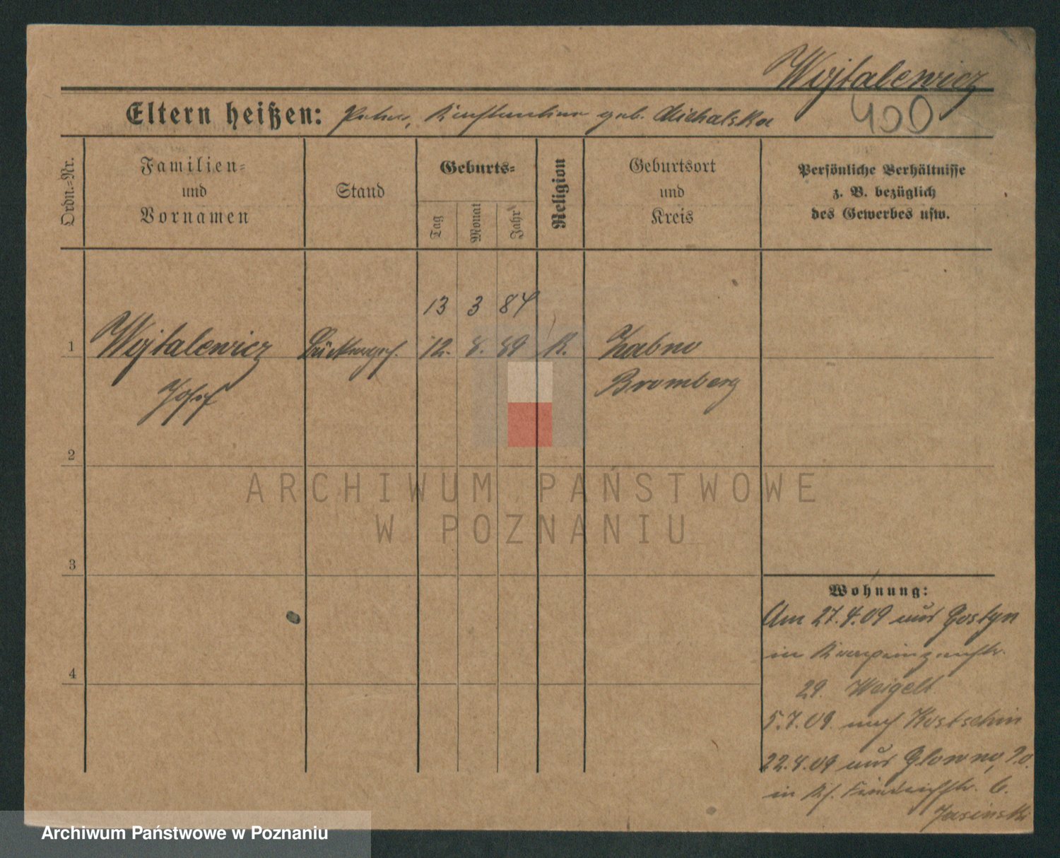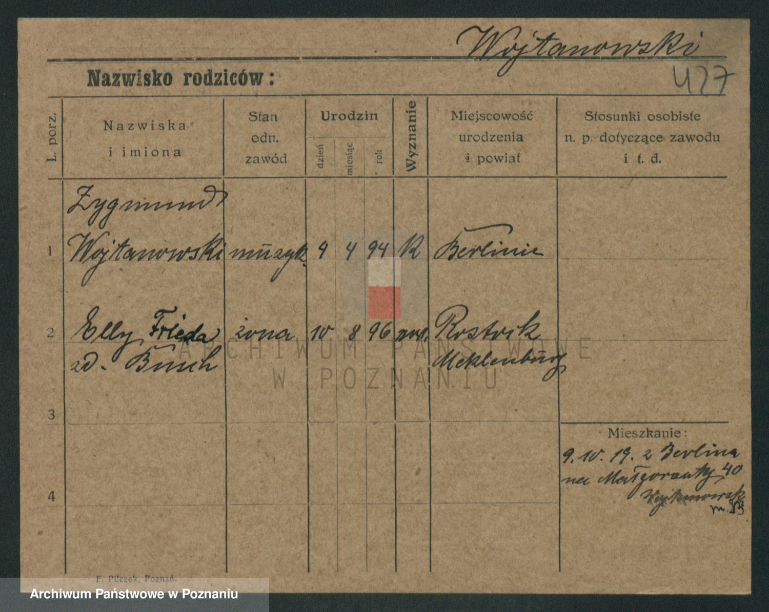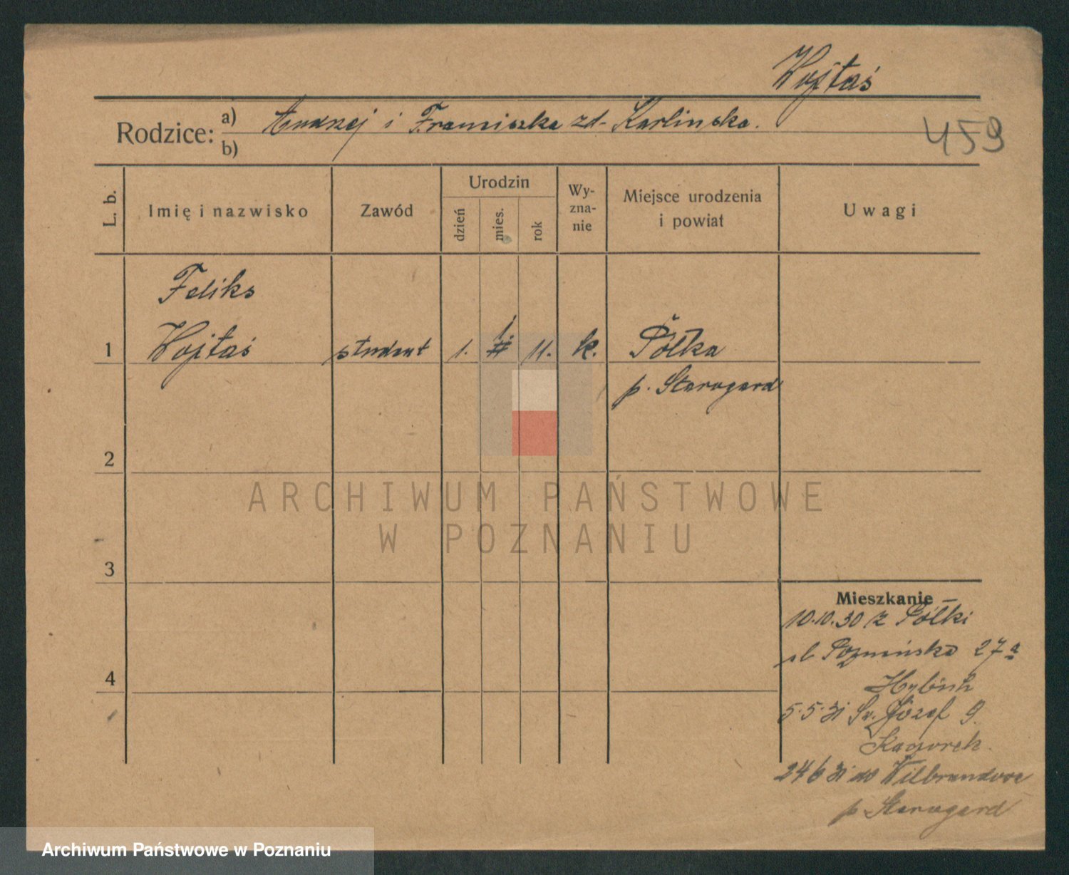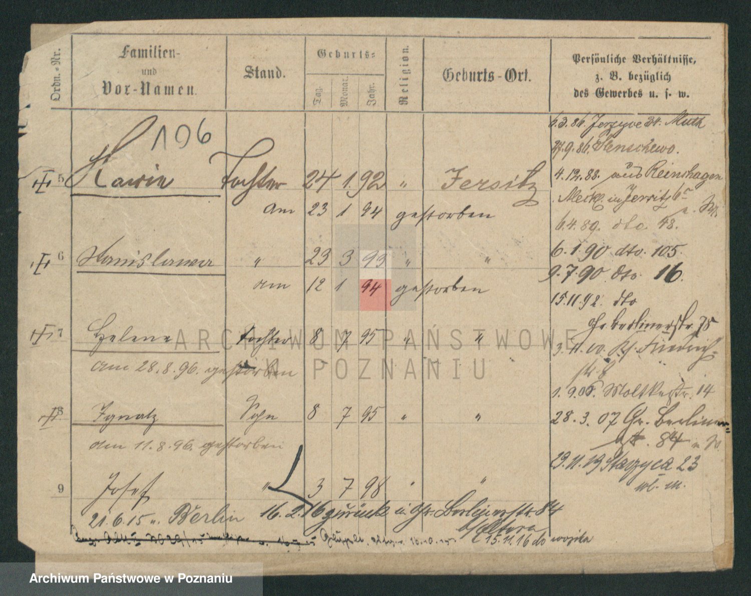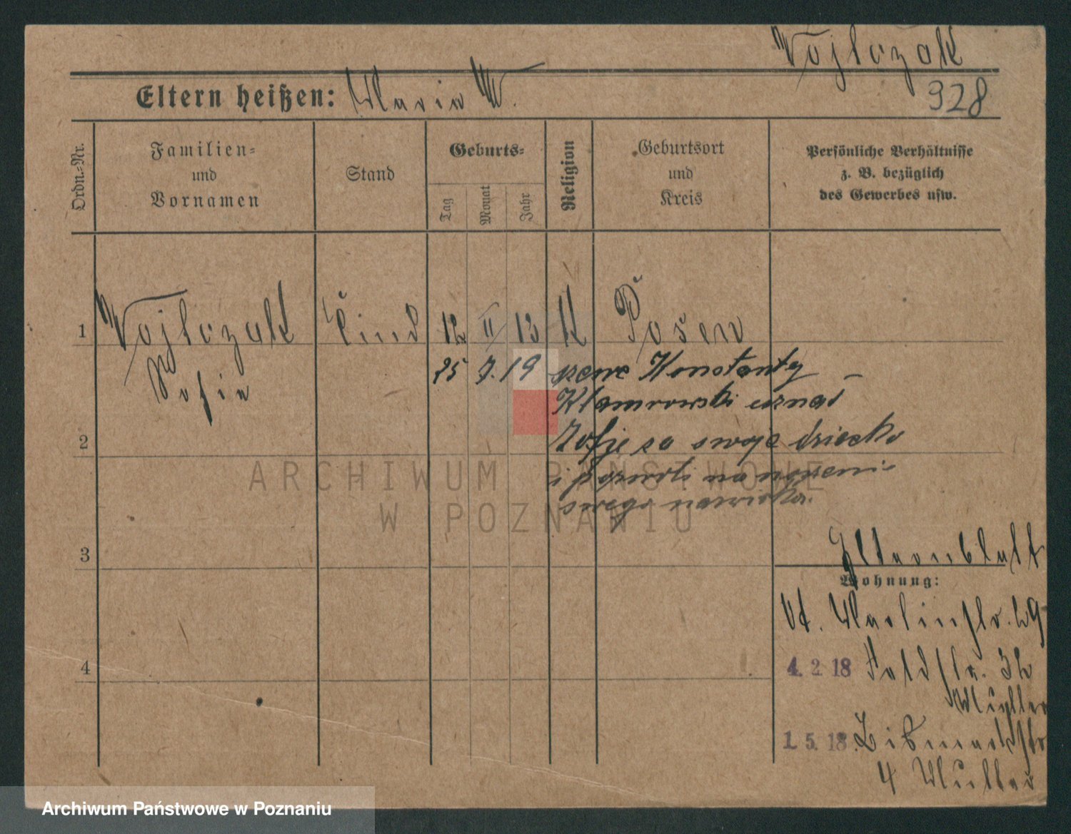 Podgląd karty osobowej dostępny jest po kliknięciu na nazwisko lub ikonkę karty. Można dokonywać powiększenia (ikony na górze) lub przechodzić między kolejnymi skanami (strzałki po bokach).