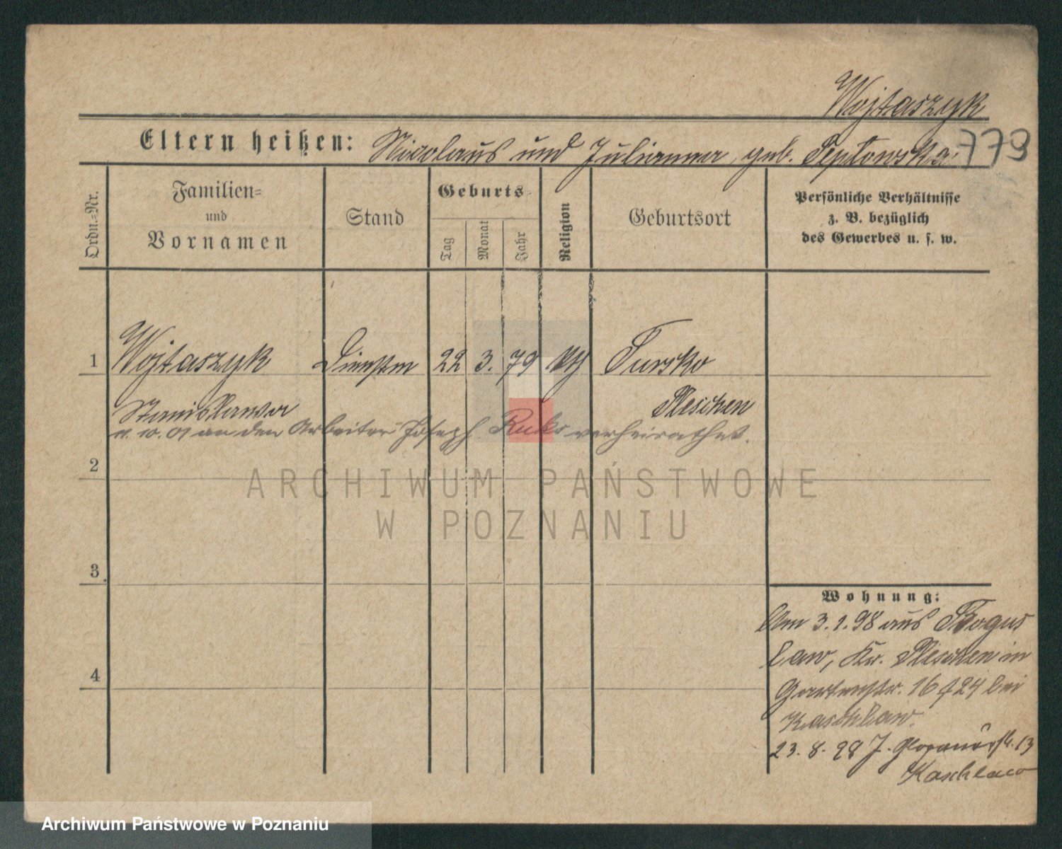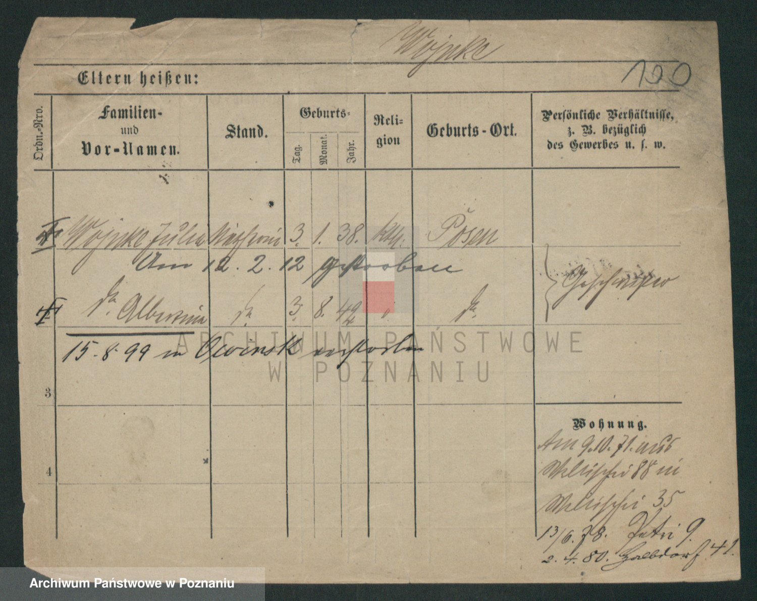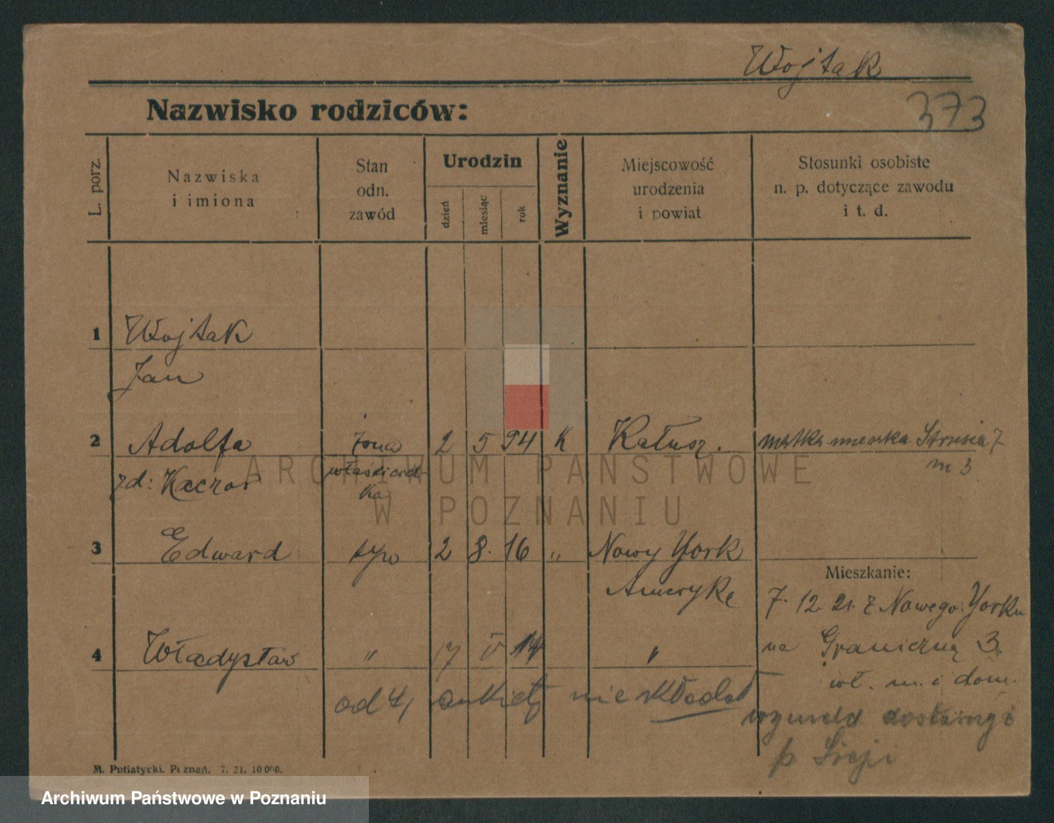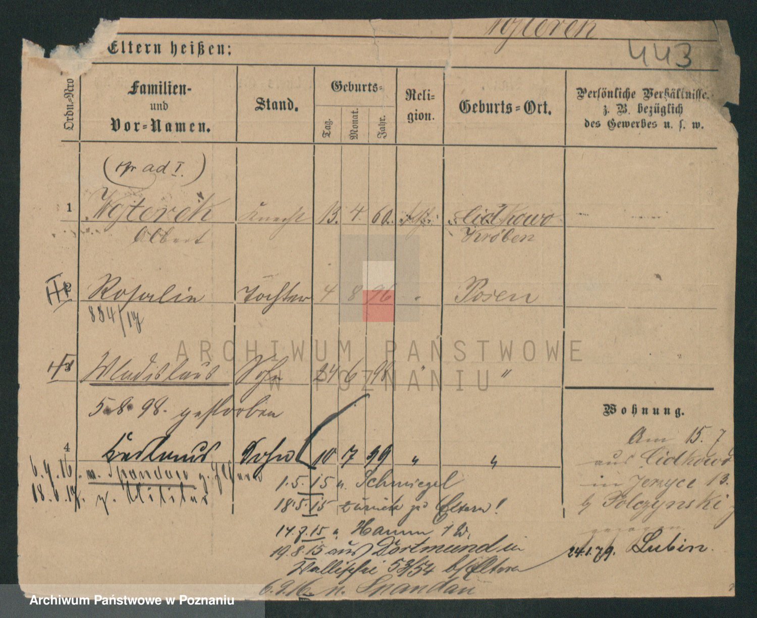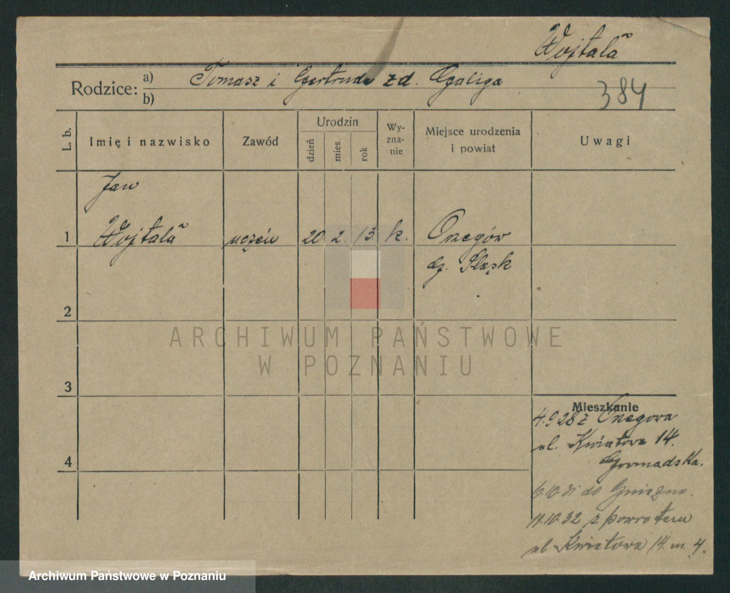 Podgląd karty osobowej dostępny jest po kliknięciu na nazwisko lub ikonkę karty. Można dokonywać powiększenia (ikony na górze) lub przechodzić między kolejnymi skanami (strzałki po bokach).