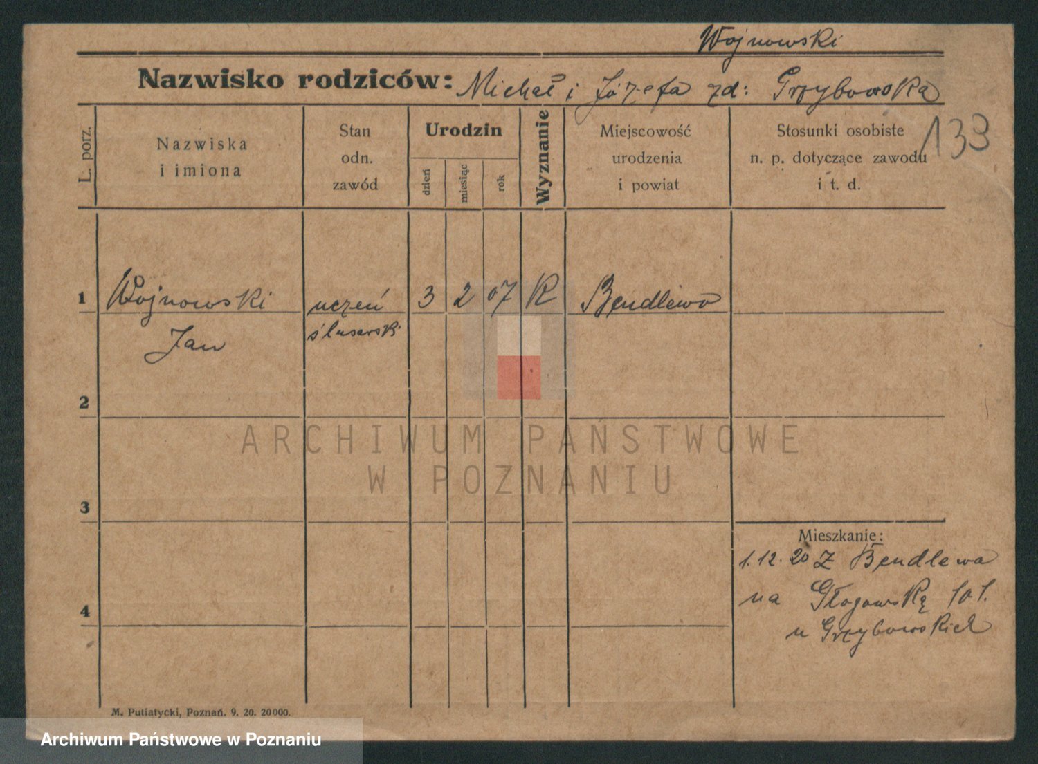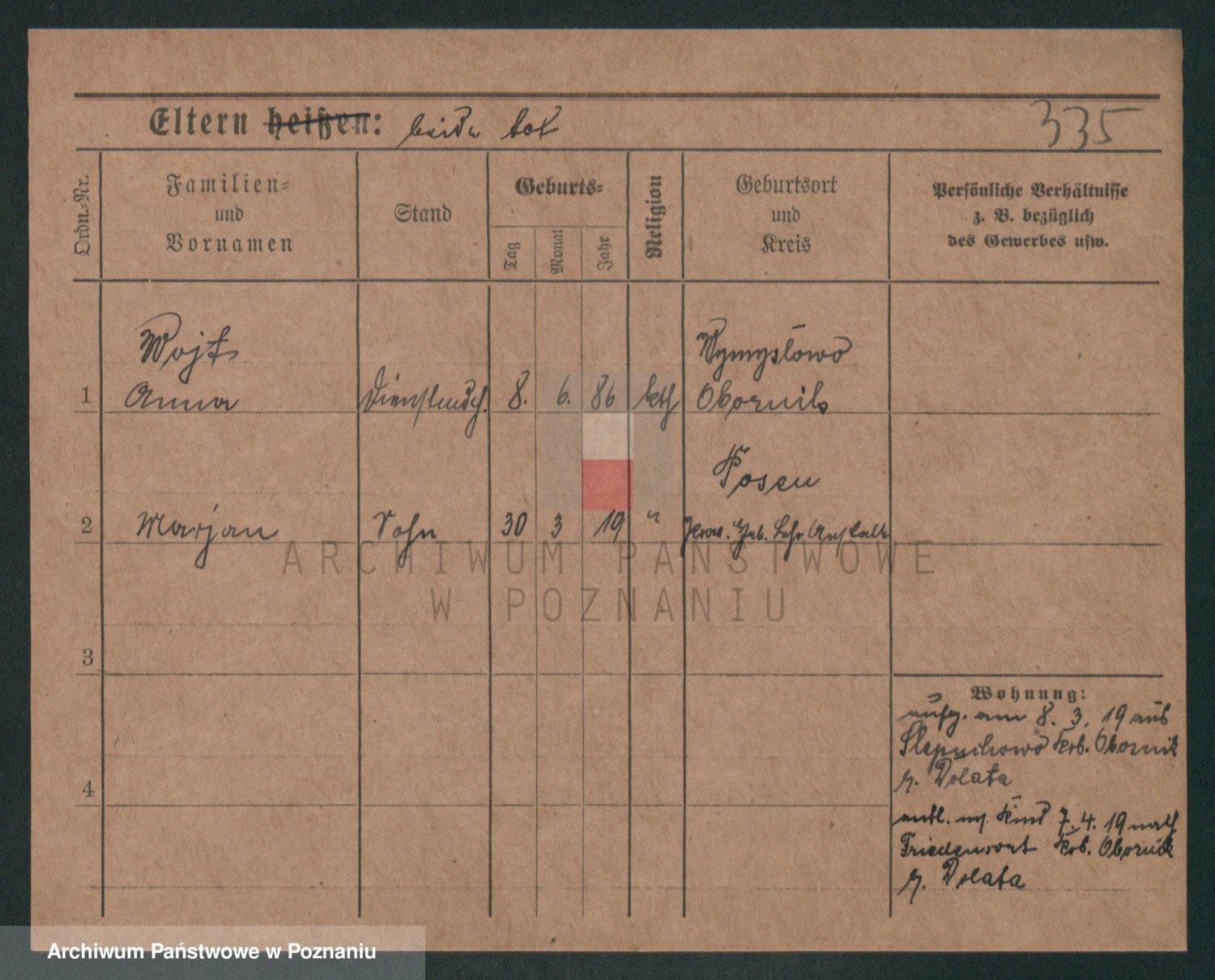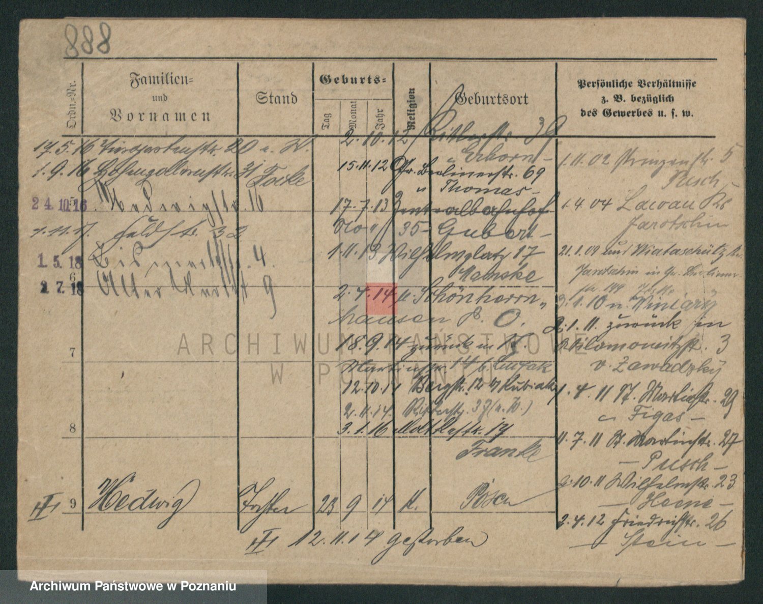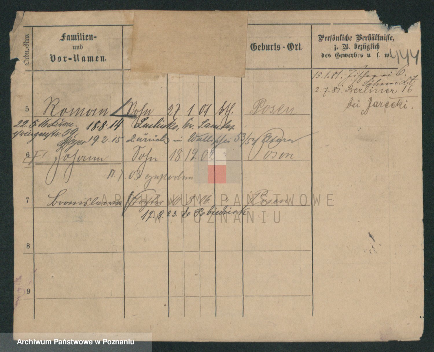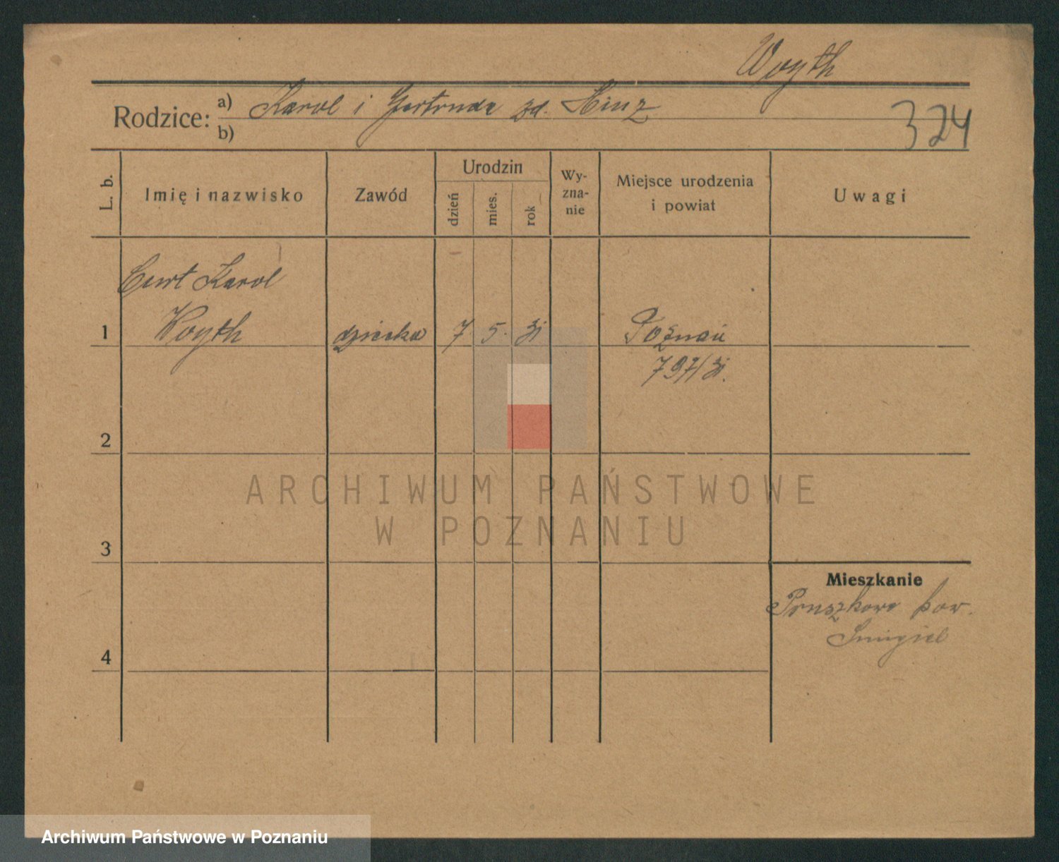 Podgląd karty osobowej dostępny jest po kliknięciu na nazwisko lub ikonkę karty. Można dokonywać powiększenia (ikony na górze) lub przechodzić między kolejnymi skanami (strzałki po bokach).