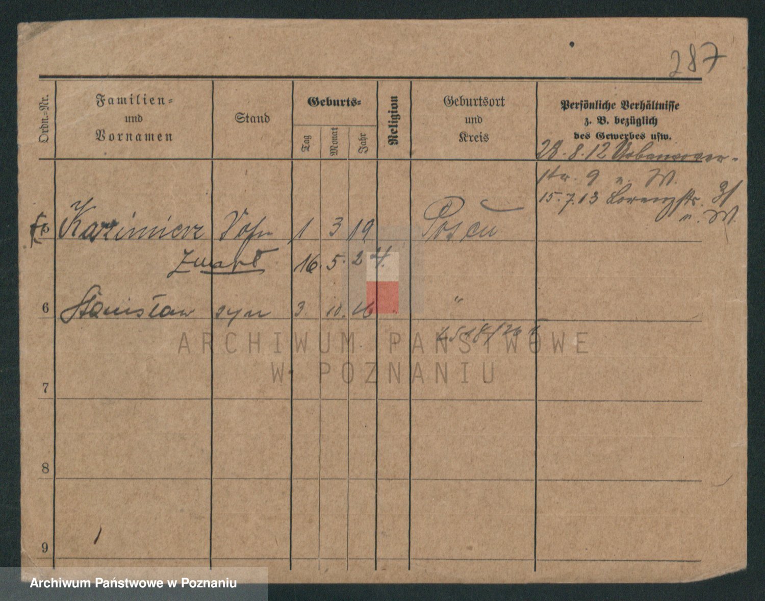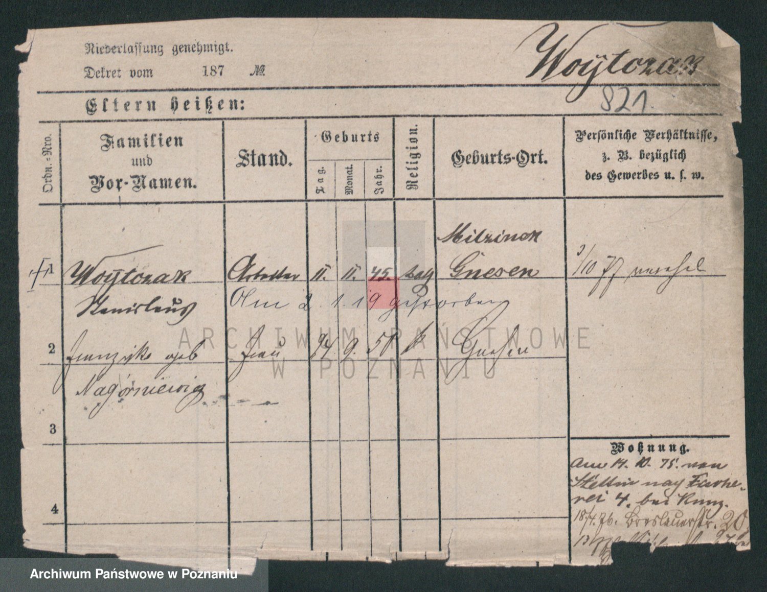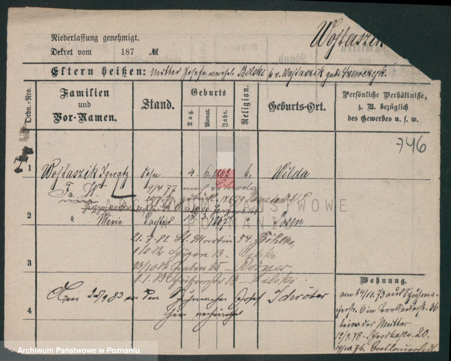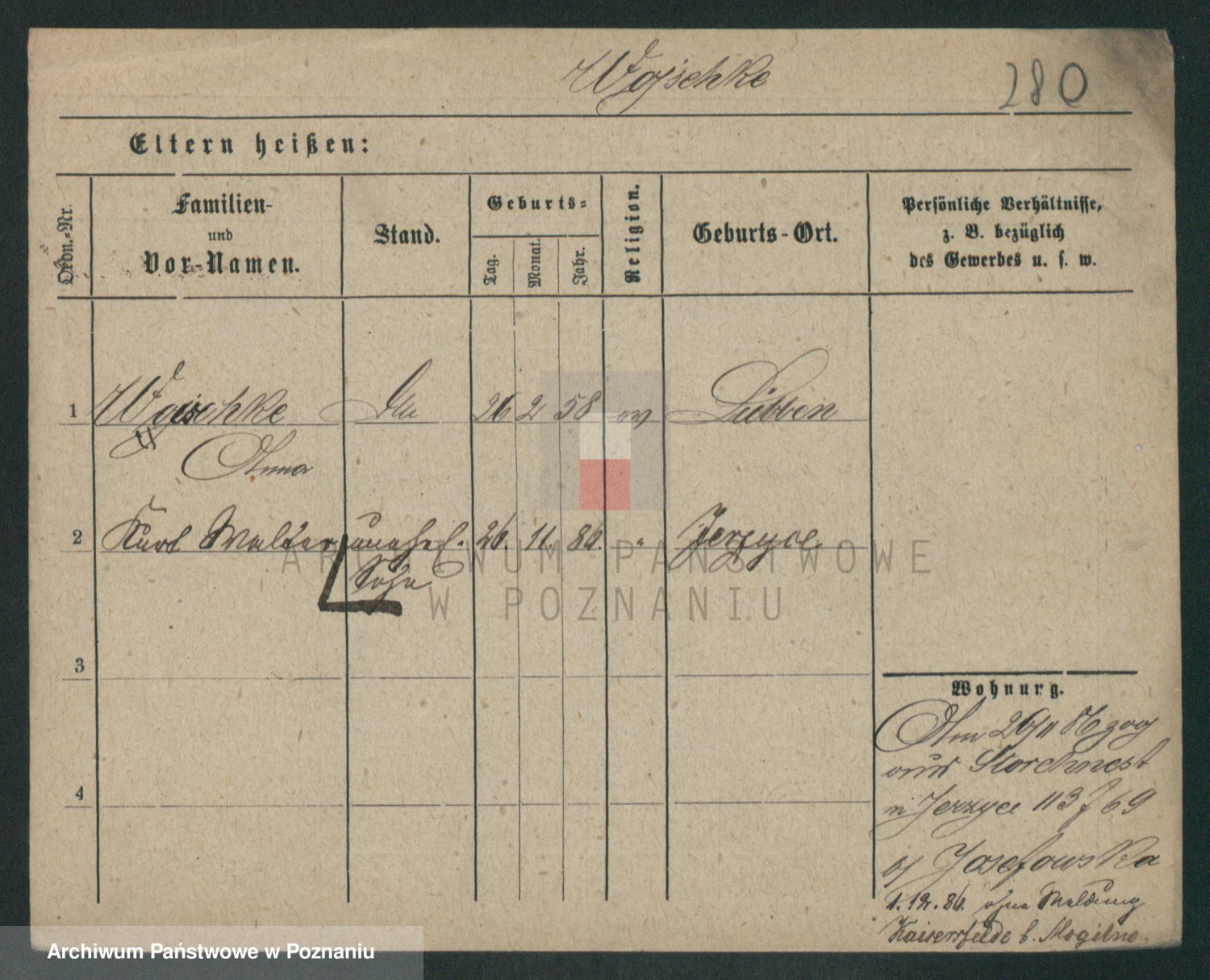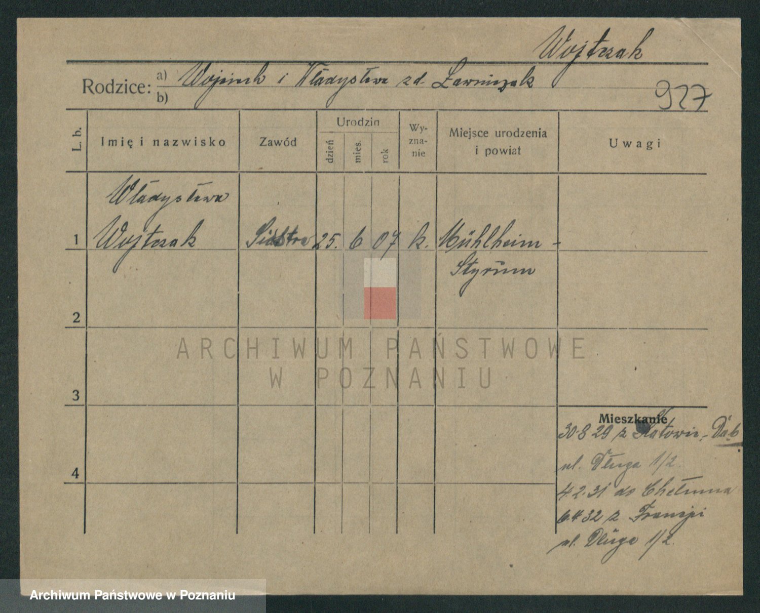 Podgląd karty osobowej dostępny jest po kliknięciu na nazwisko lub ikonkę karty. Można dokonywać powiększenia (ikony na górze) lub przechodzić między kolejnymi skanami (strzałki po bokach).