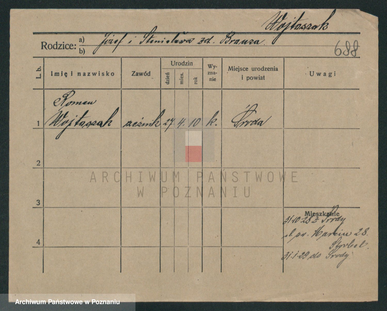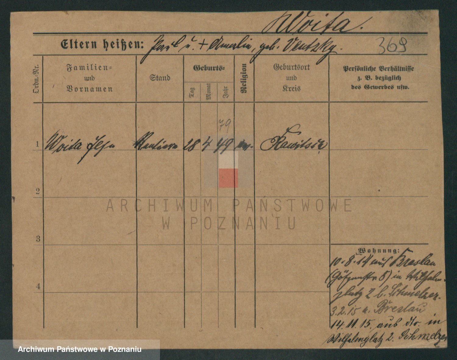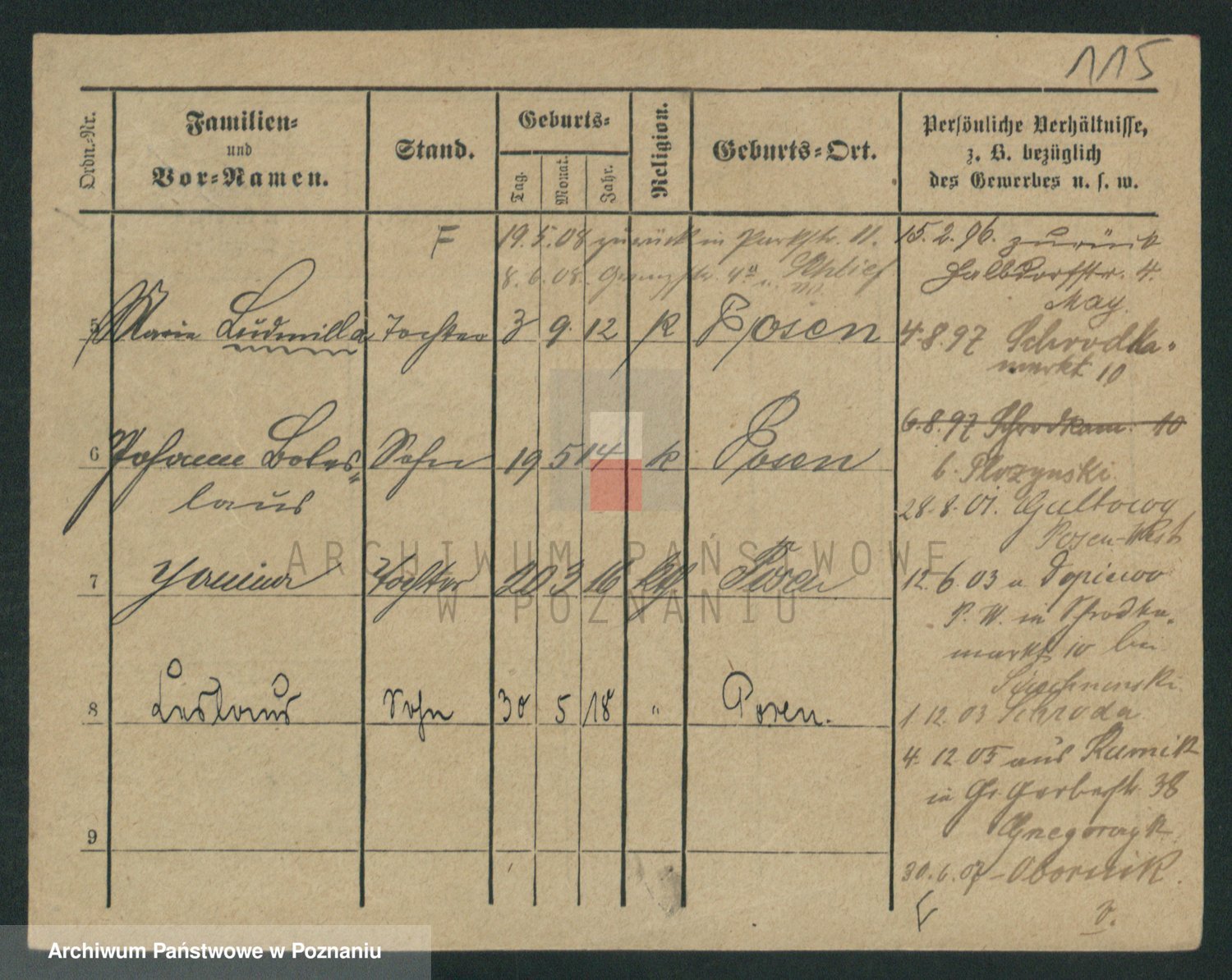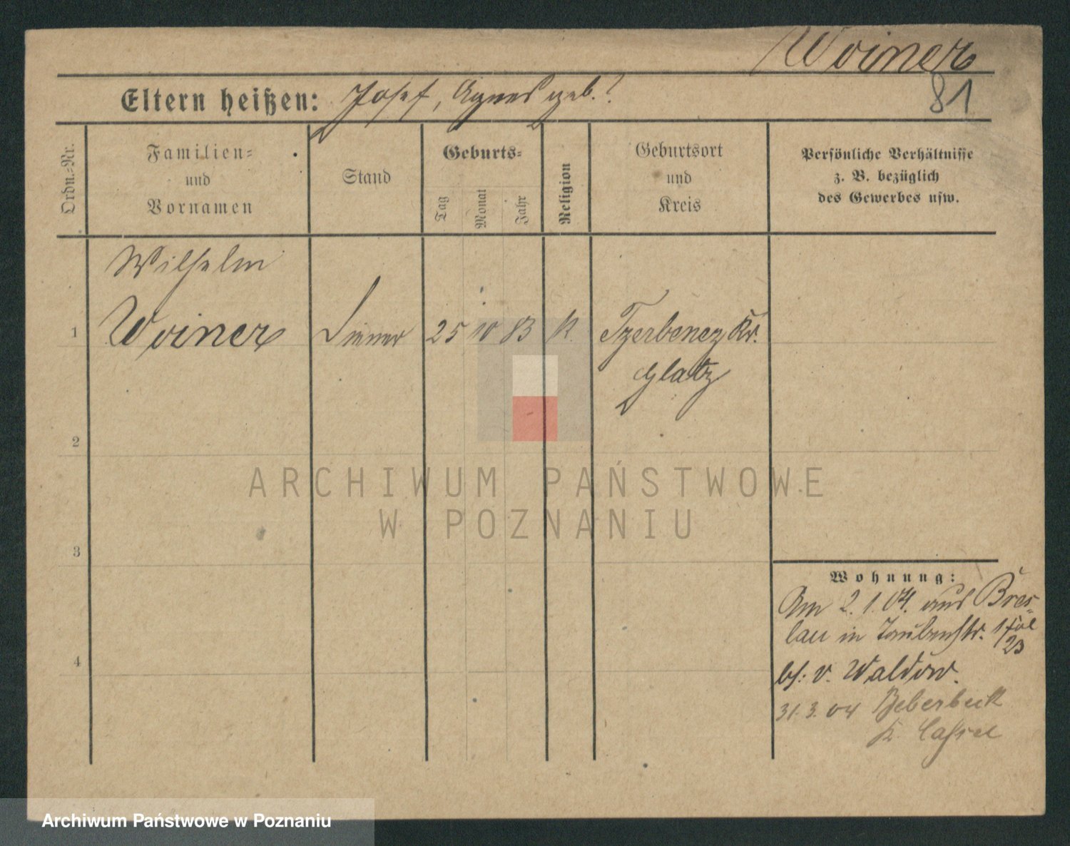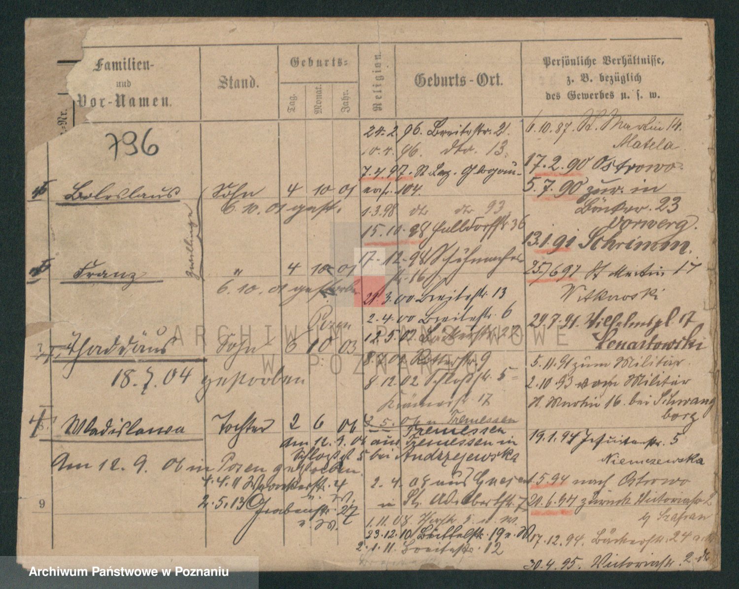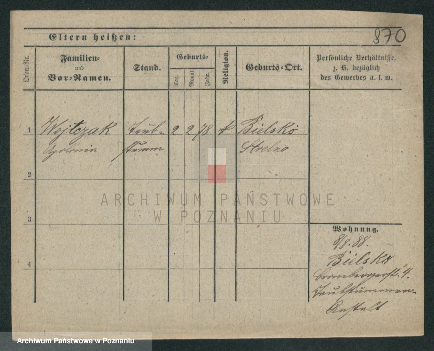 Podgląd karty osobowej dostępny jest po kliknięciu na nazwisko lub ikonkę karty. Można dokonywać powiększenia (ikony na górze) lub przechodzić między kolejnymi skanami (strzałki po bokach).