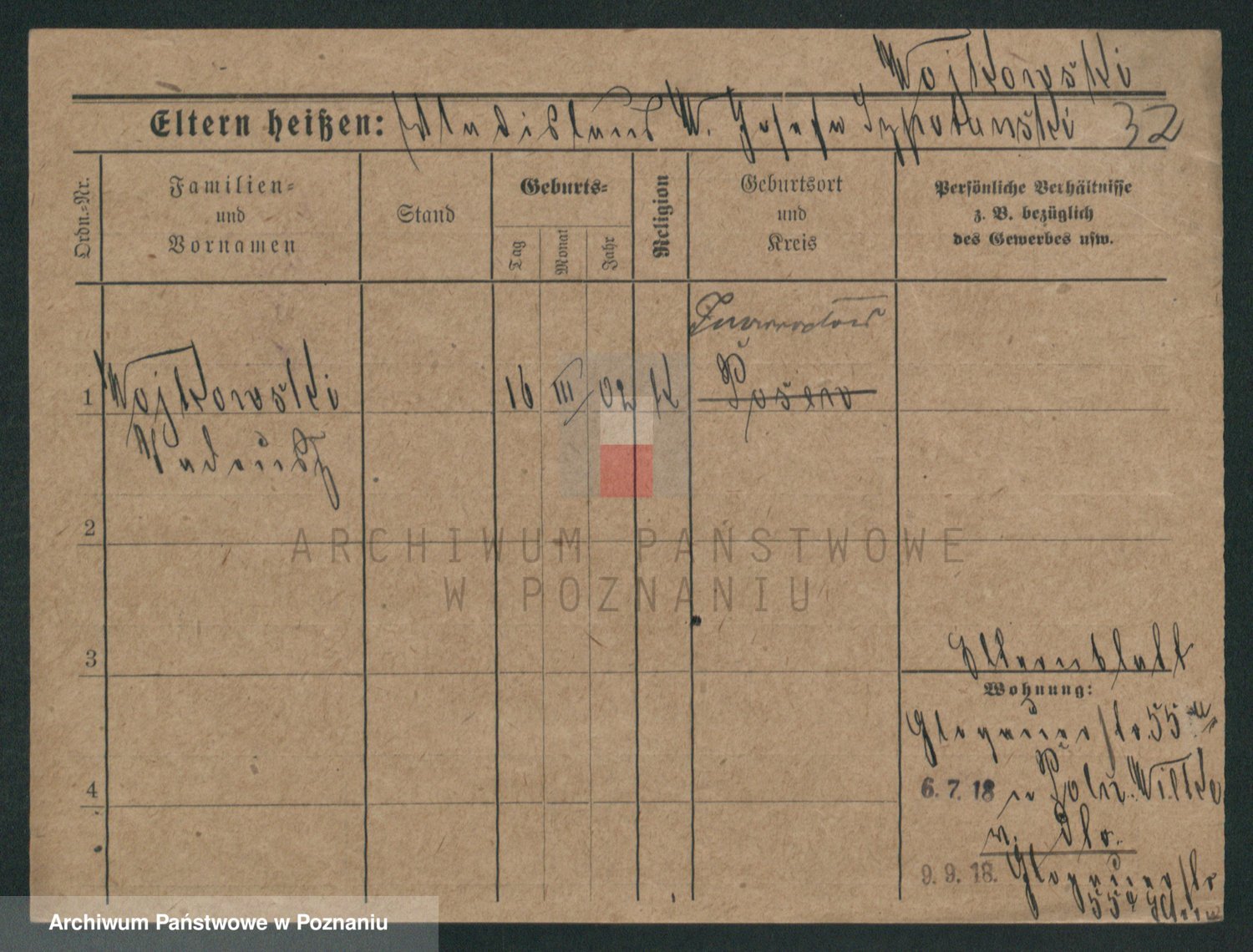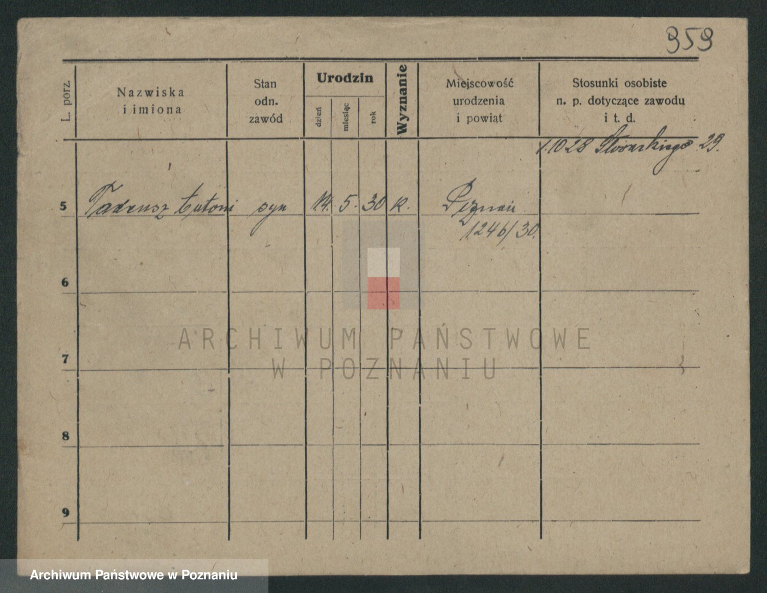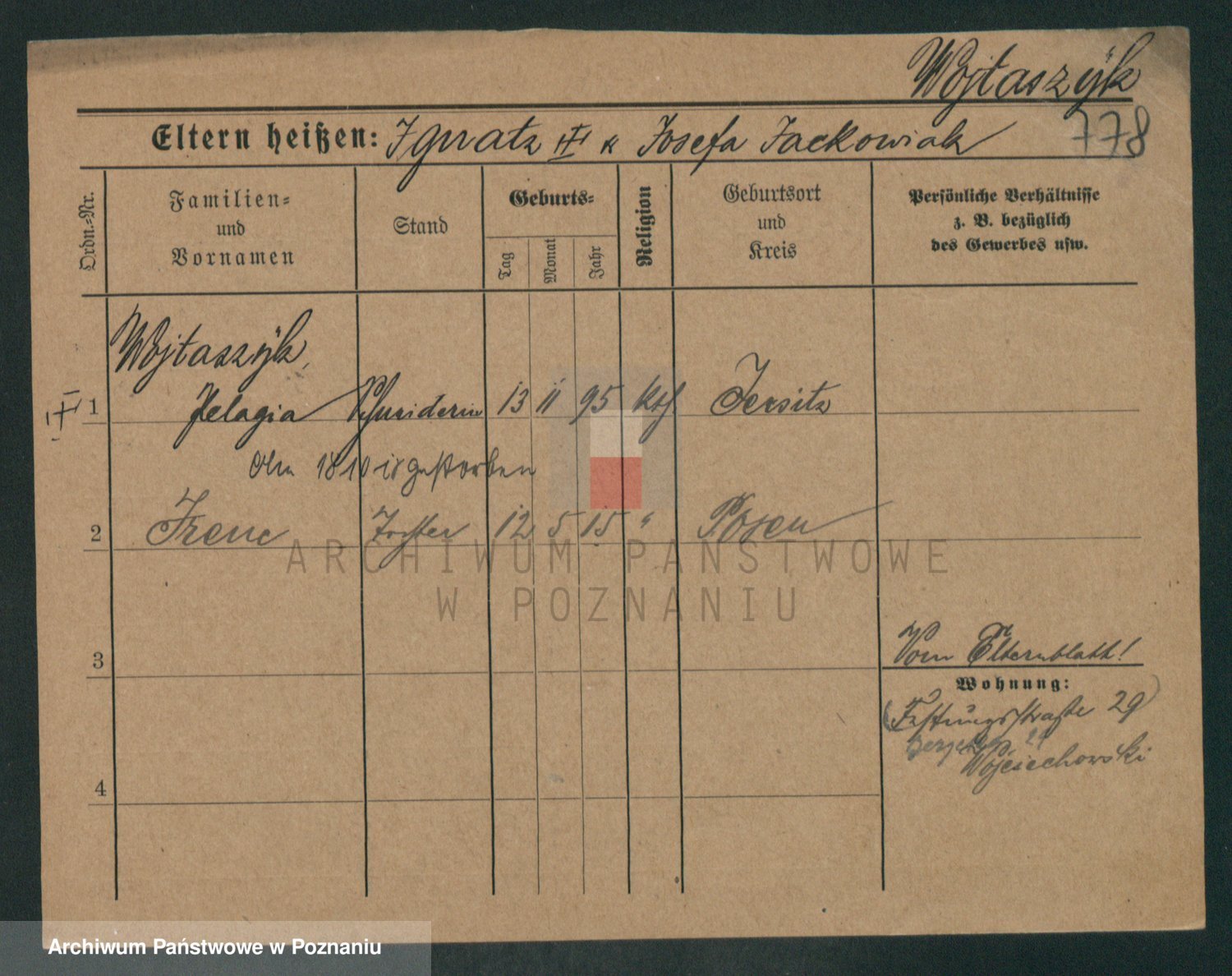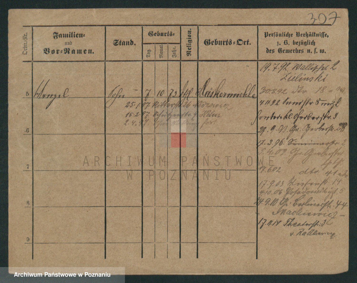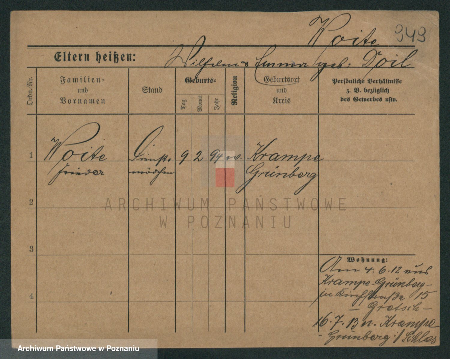 Podgląd karty osobowej dostępny jest po kliknięciu na nazwisko lub ikonkę karty. Można dokonywać powiększenia (ikony na górze) lub przechodzić między kolejnymi skanami (strzałki po bokach).