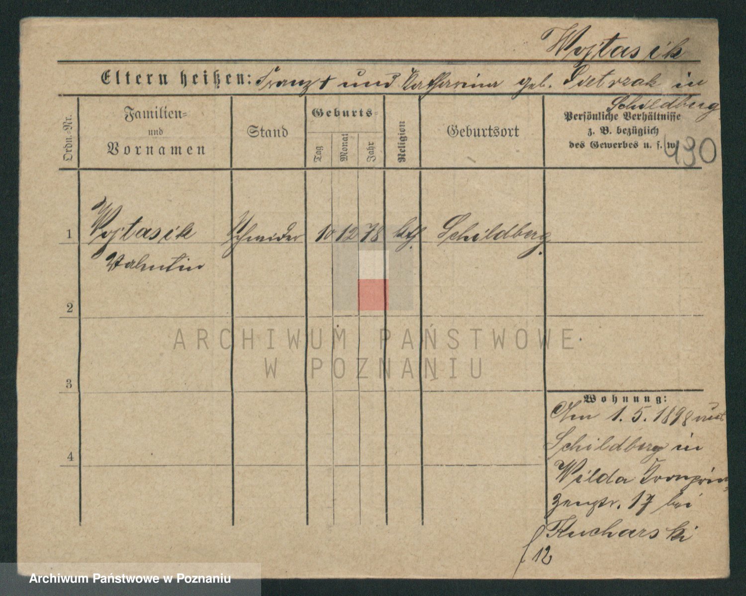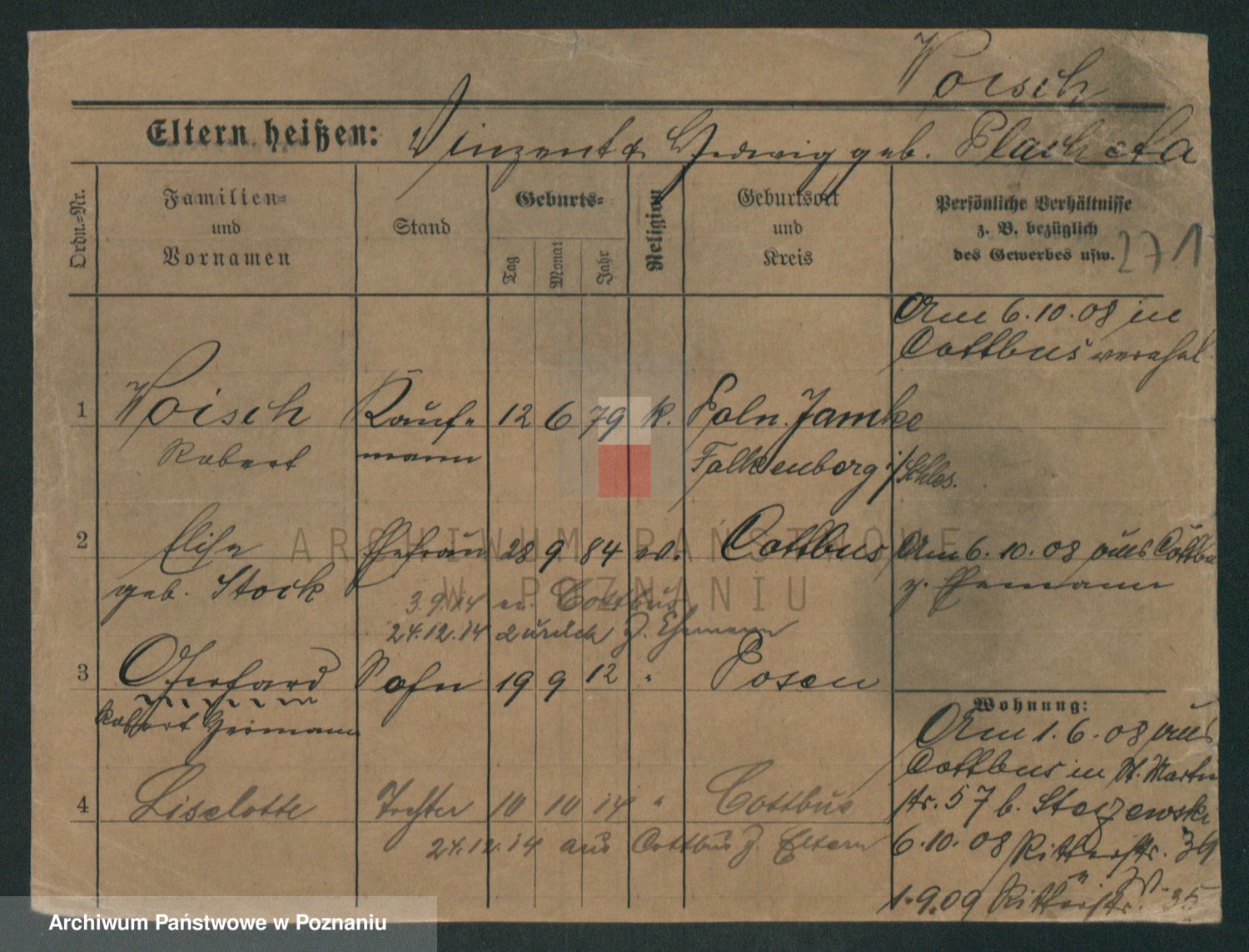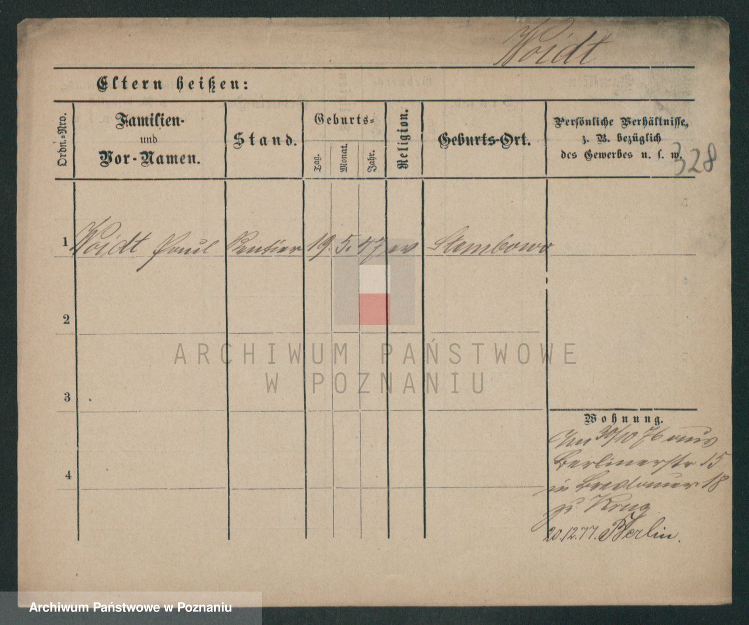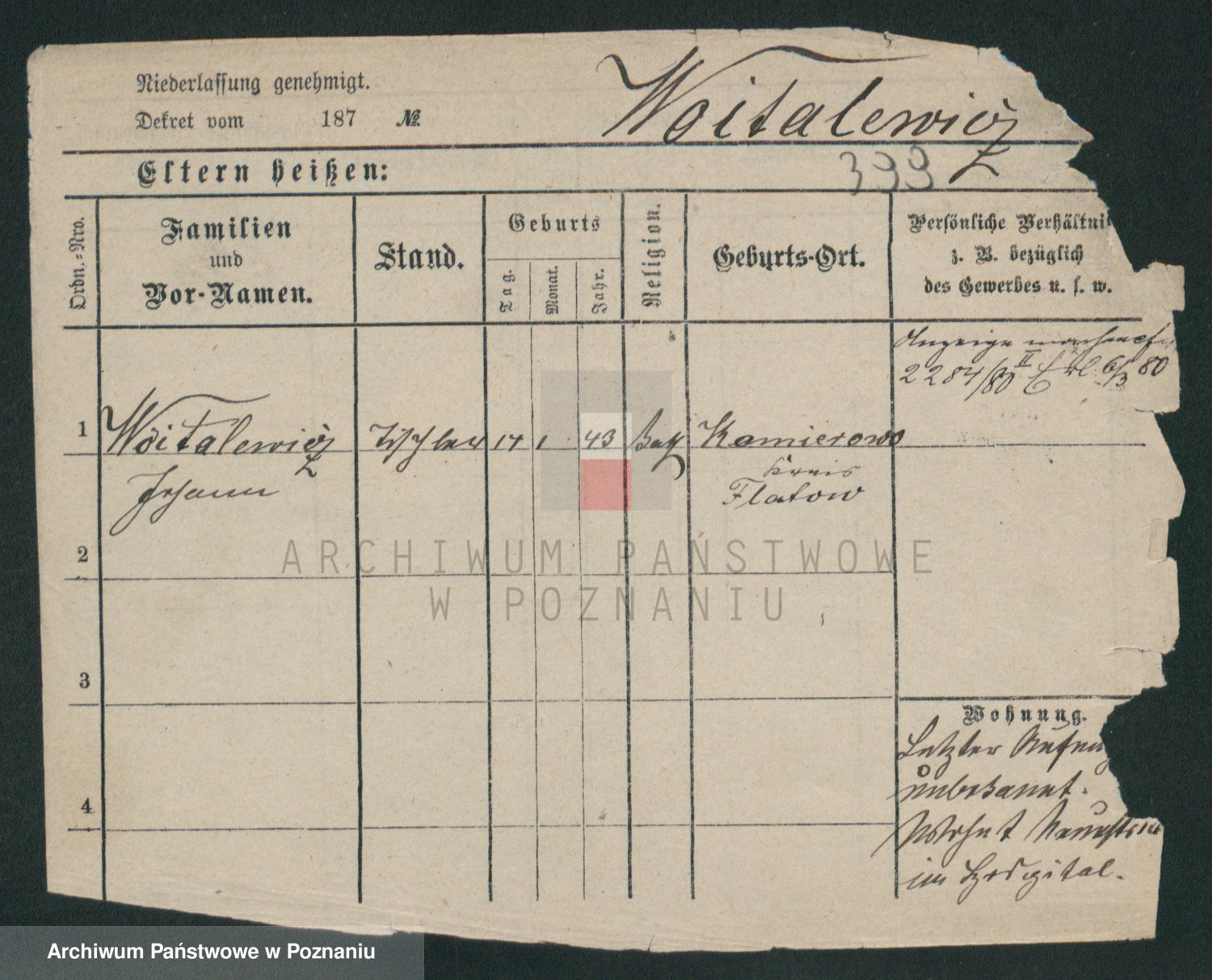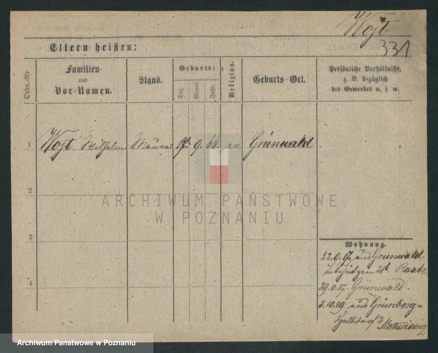 Podgląd karty osobowej dostępny jest po kliknięciu na nazwisko lub ikonkę karty. Można dokonywać powiększenia (ikony na górze) lub przechodzić między kolejnymi skanami (strzałki po bokach).