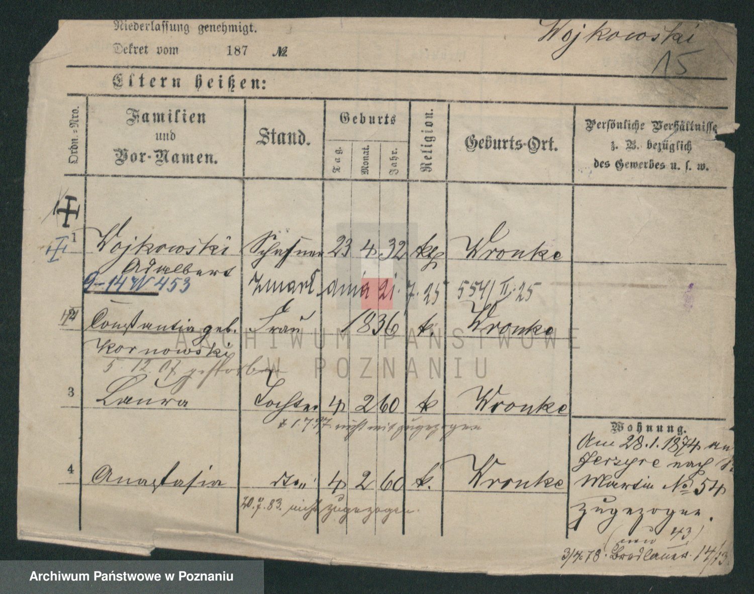 Wojkowski zd. Kornowski, Constantia