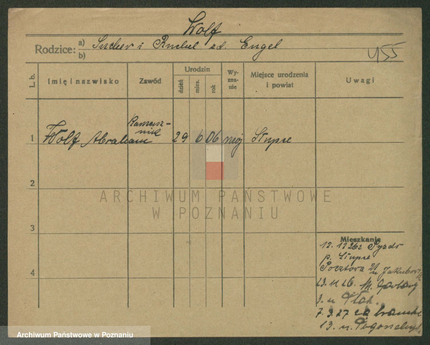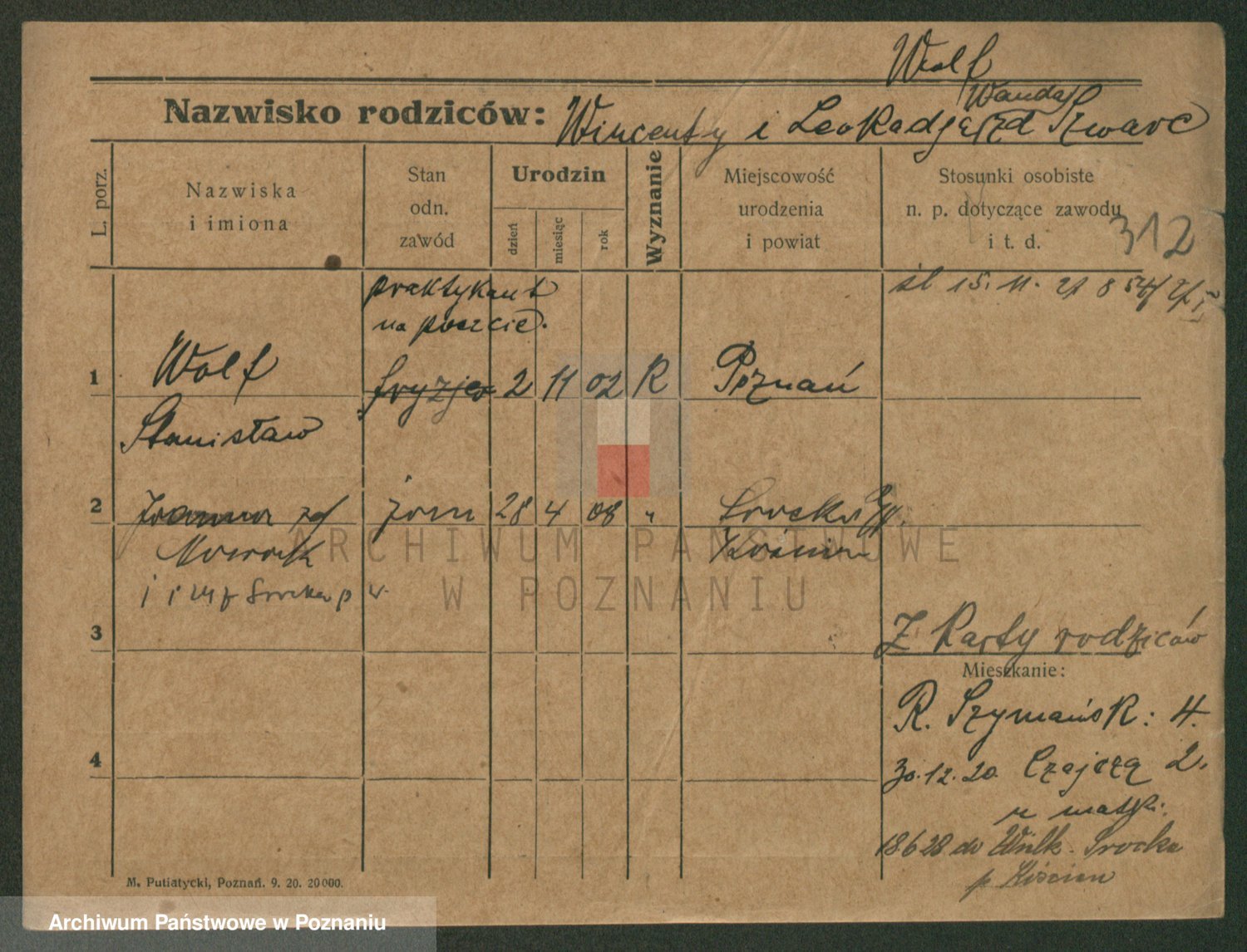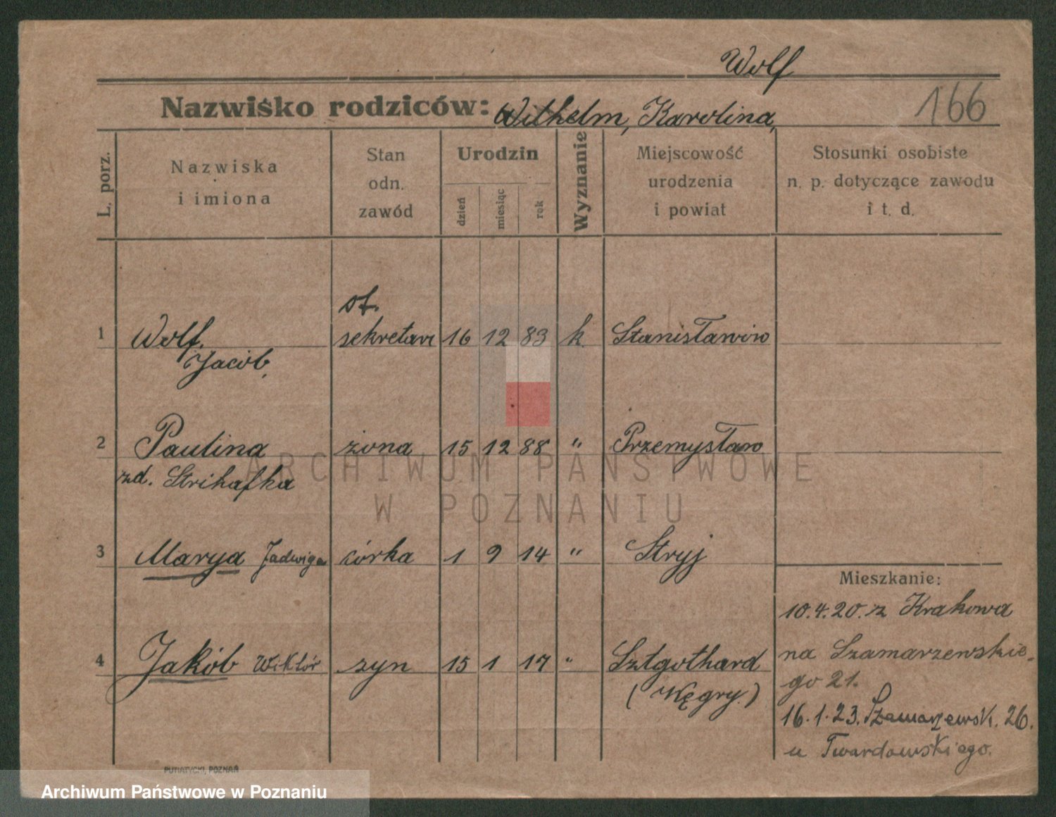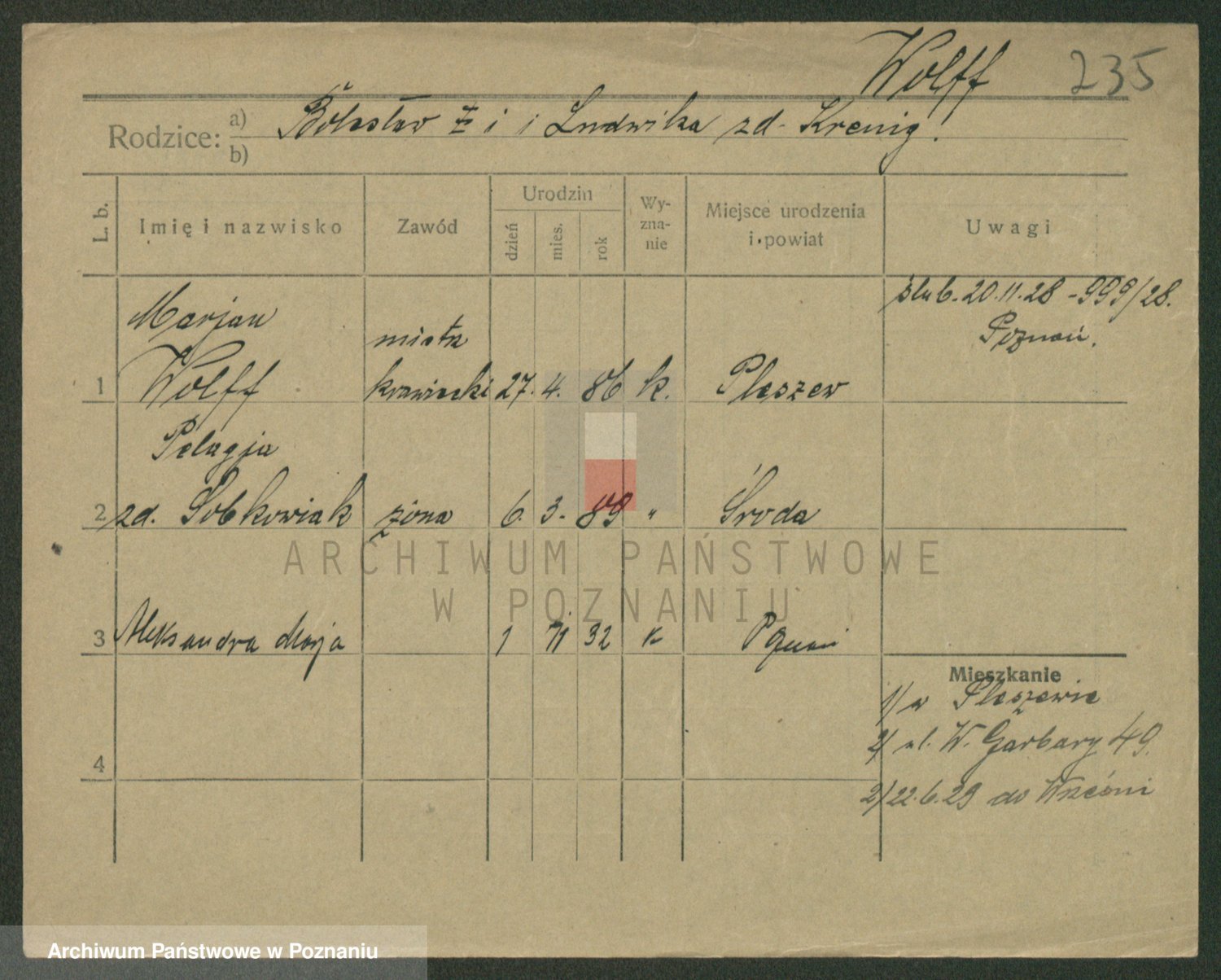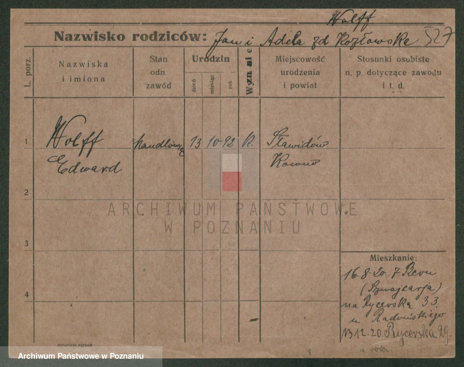 Podgląd karty osobowej dostępny jest po kliknięciu na nazwisko lub ikonkę karty. Można dokonywać powiększenia (ikony na górze) lub przechodzić między kolejnymi skanami (strzałki po bokach).