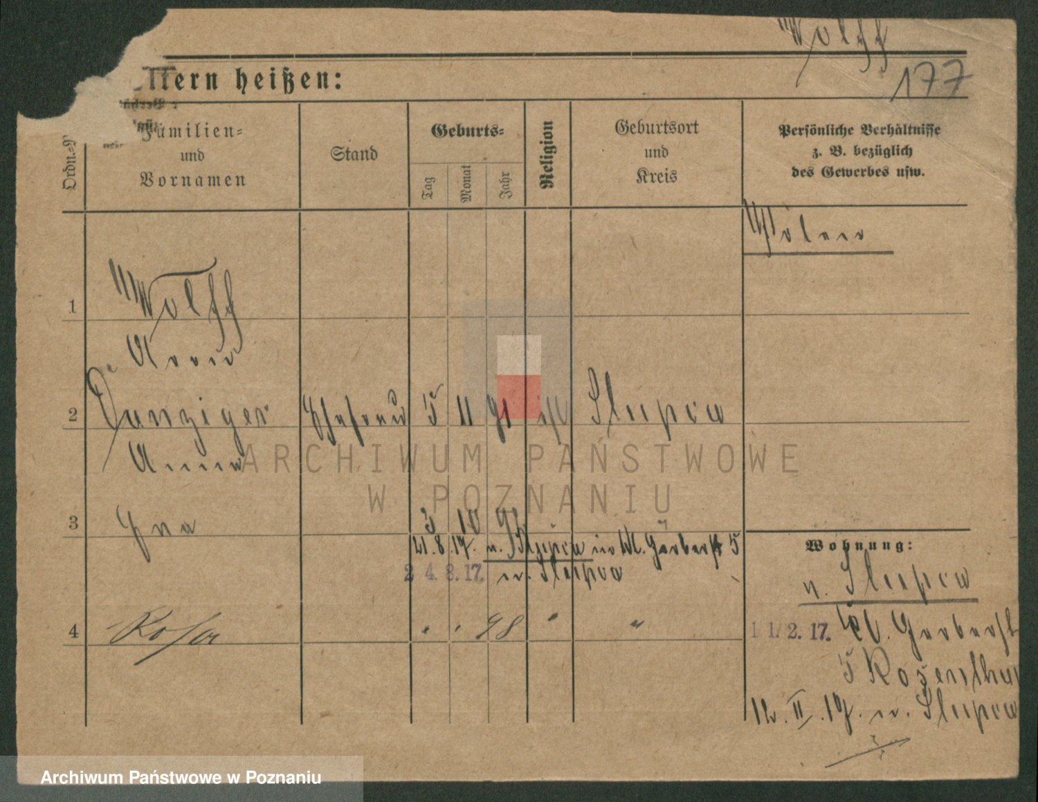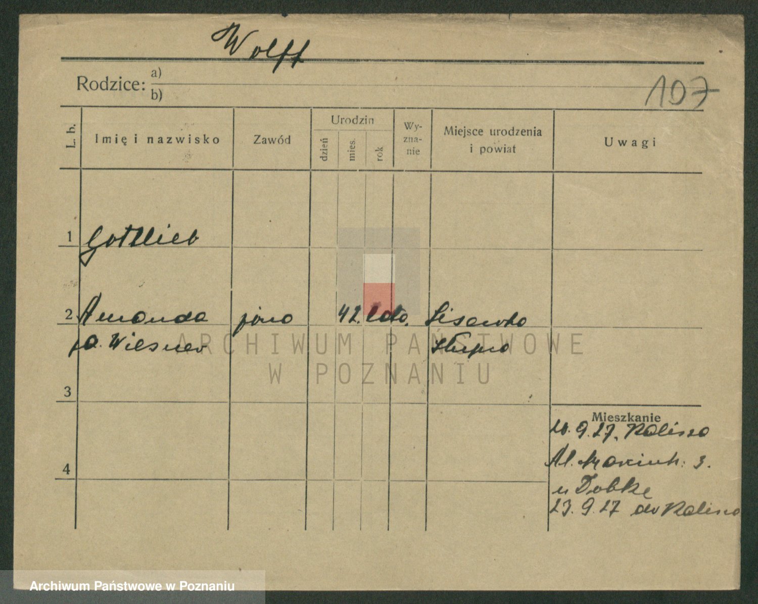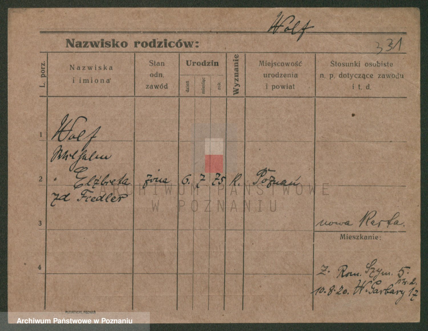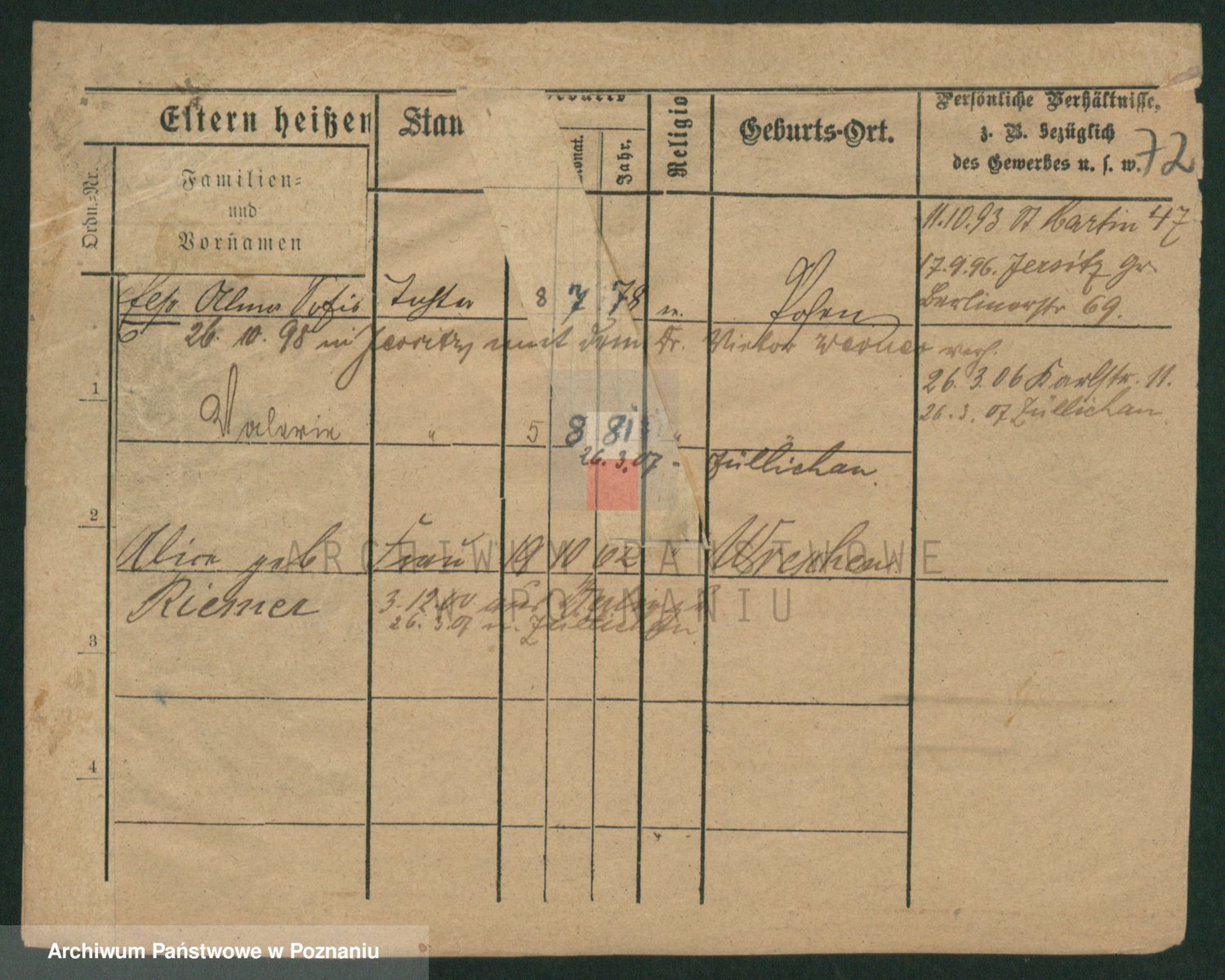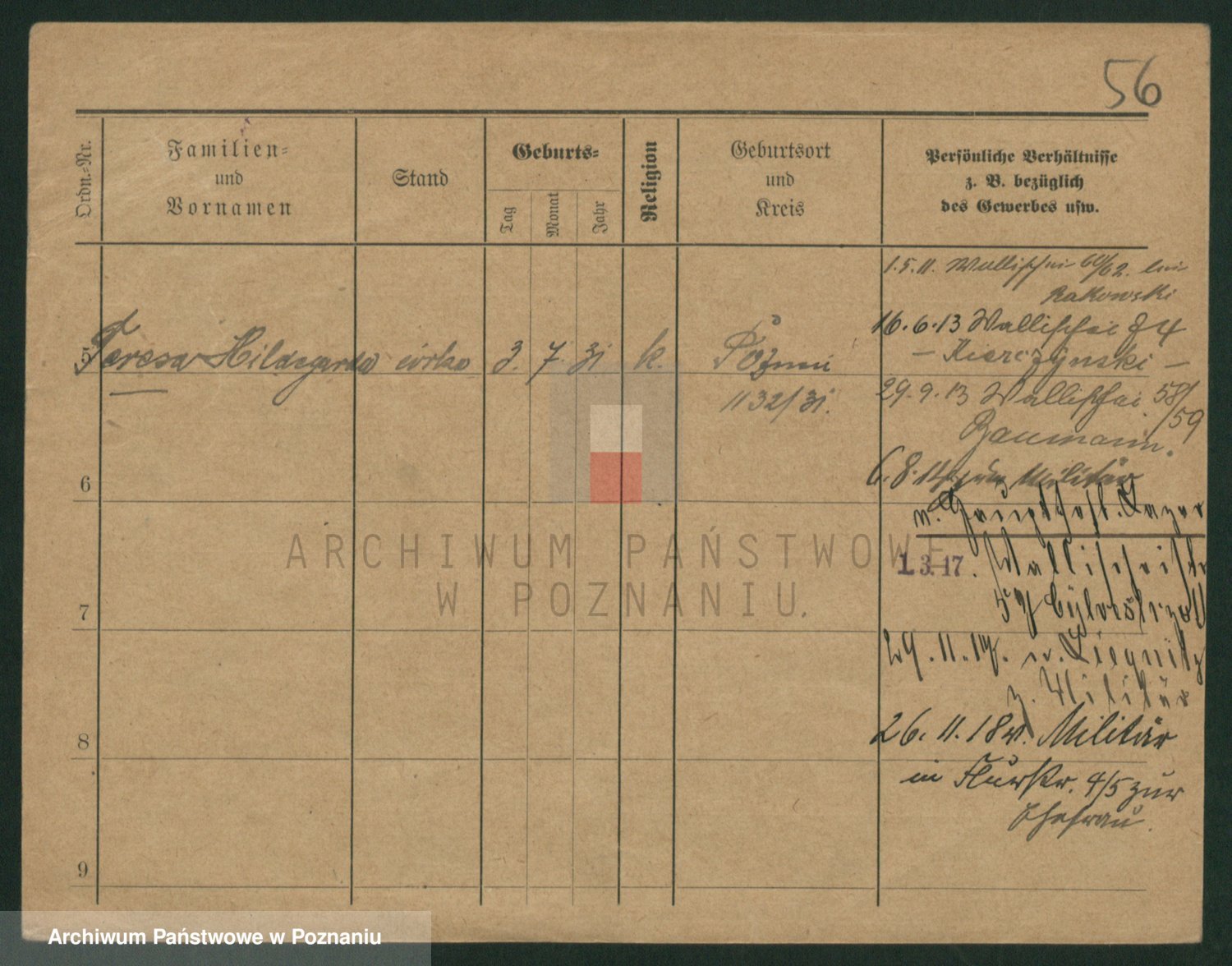 Podgląd karty osobowej dostępny jest po kliknięciu na nazwisko lub ikonkę karty. Można dokonywać powiększenia (ikony na górze) lub przechodzić między kolejnymi skanami (strzałki po bokach).