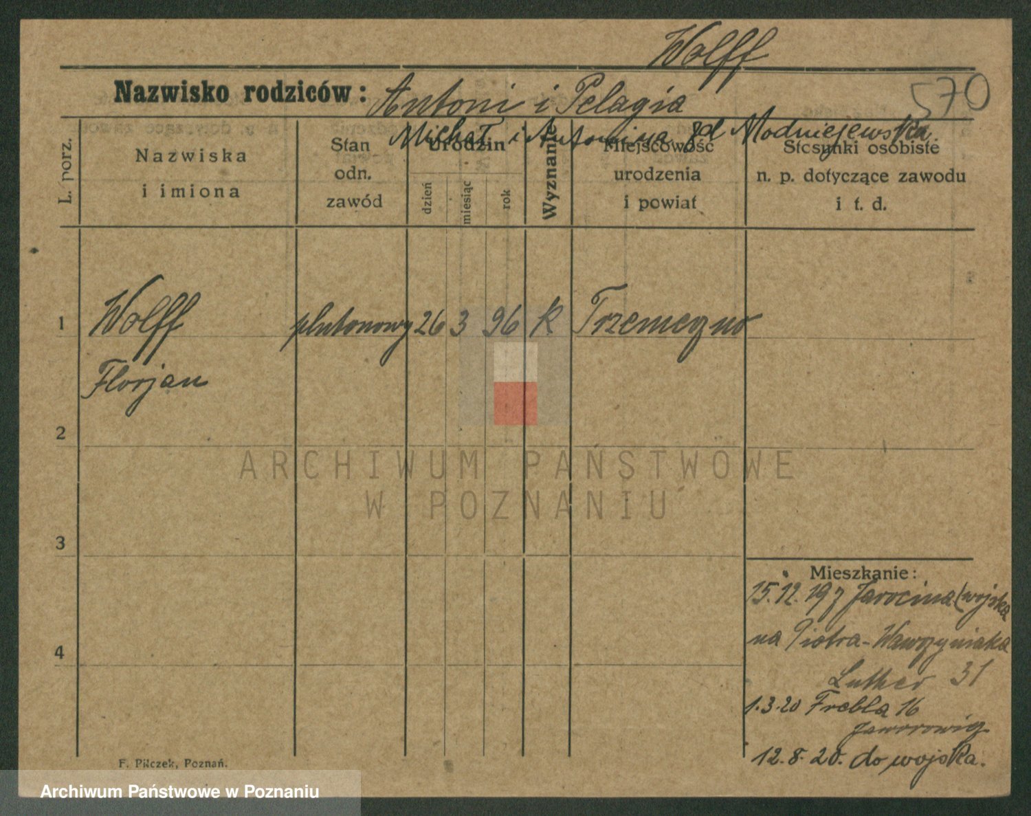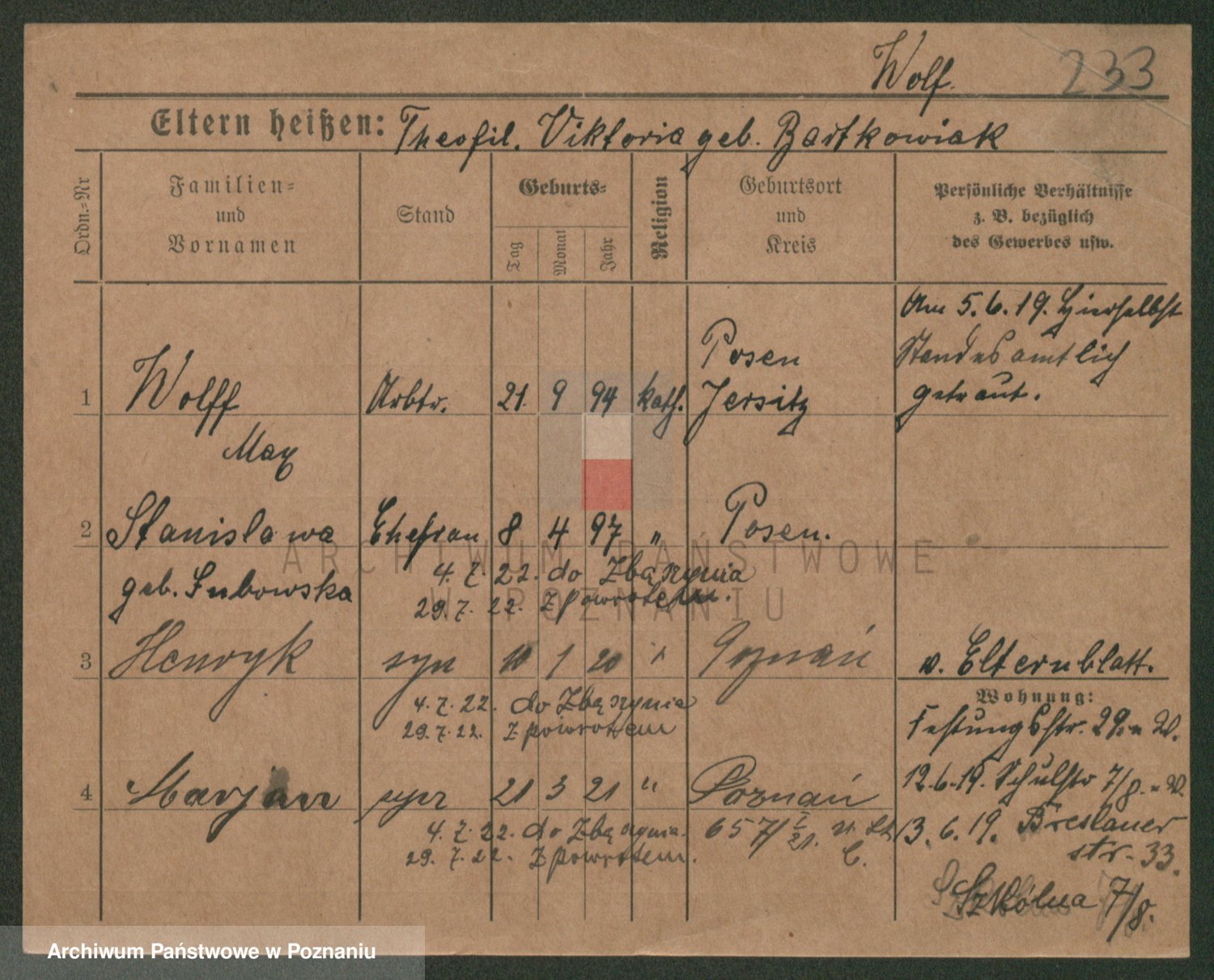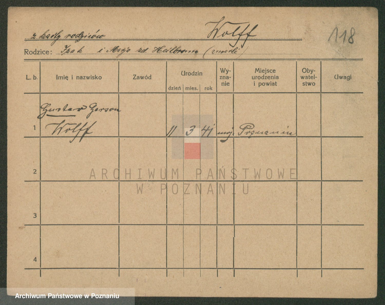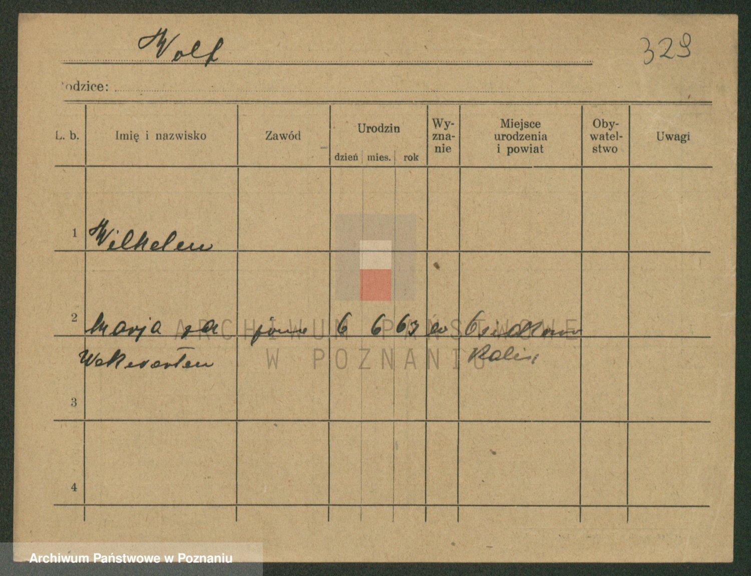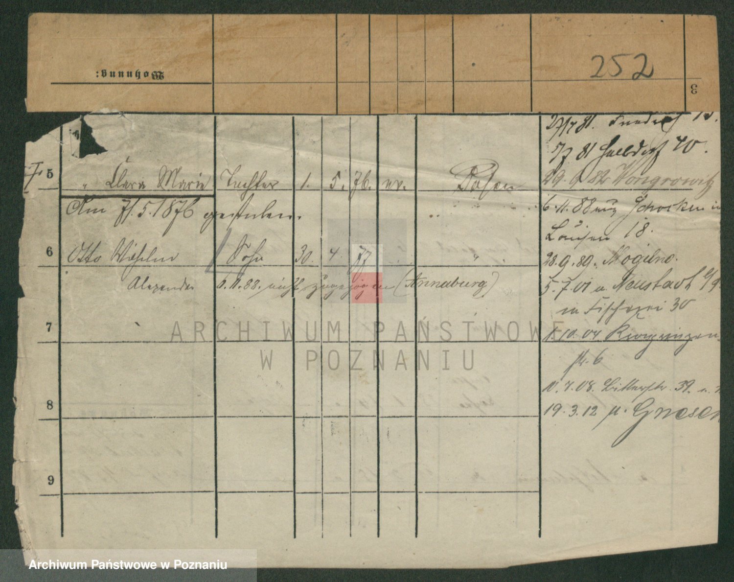 Podgląd karty osobowej dostępny jest po kliknięciu na nazwisko lub ikonkę karty. Można dokonywać powiększenia (ikony na górze) lub przechodzić między kolejnymi skanami (strzałki po bokach).