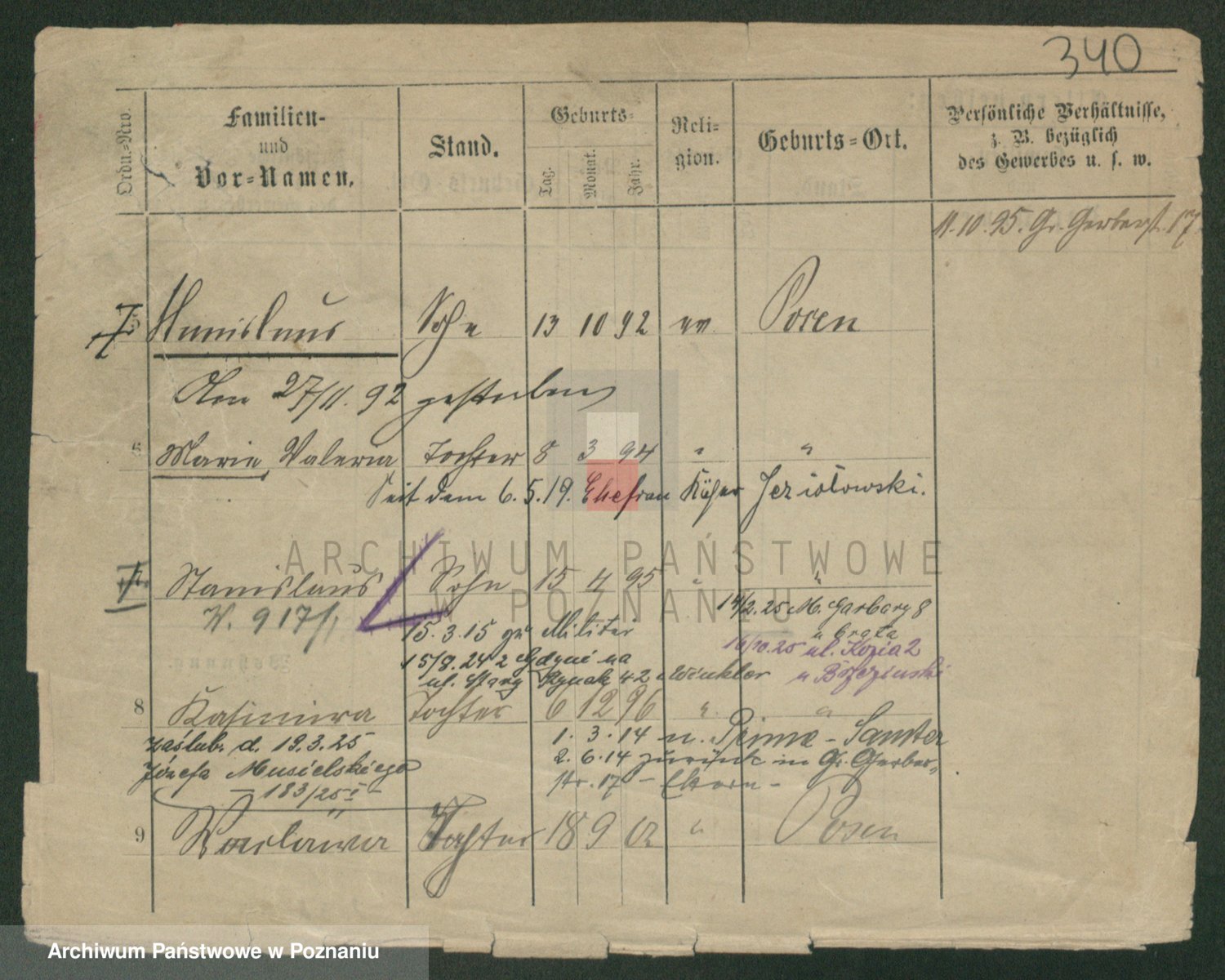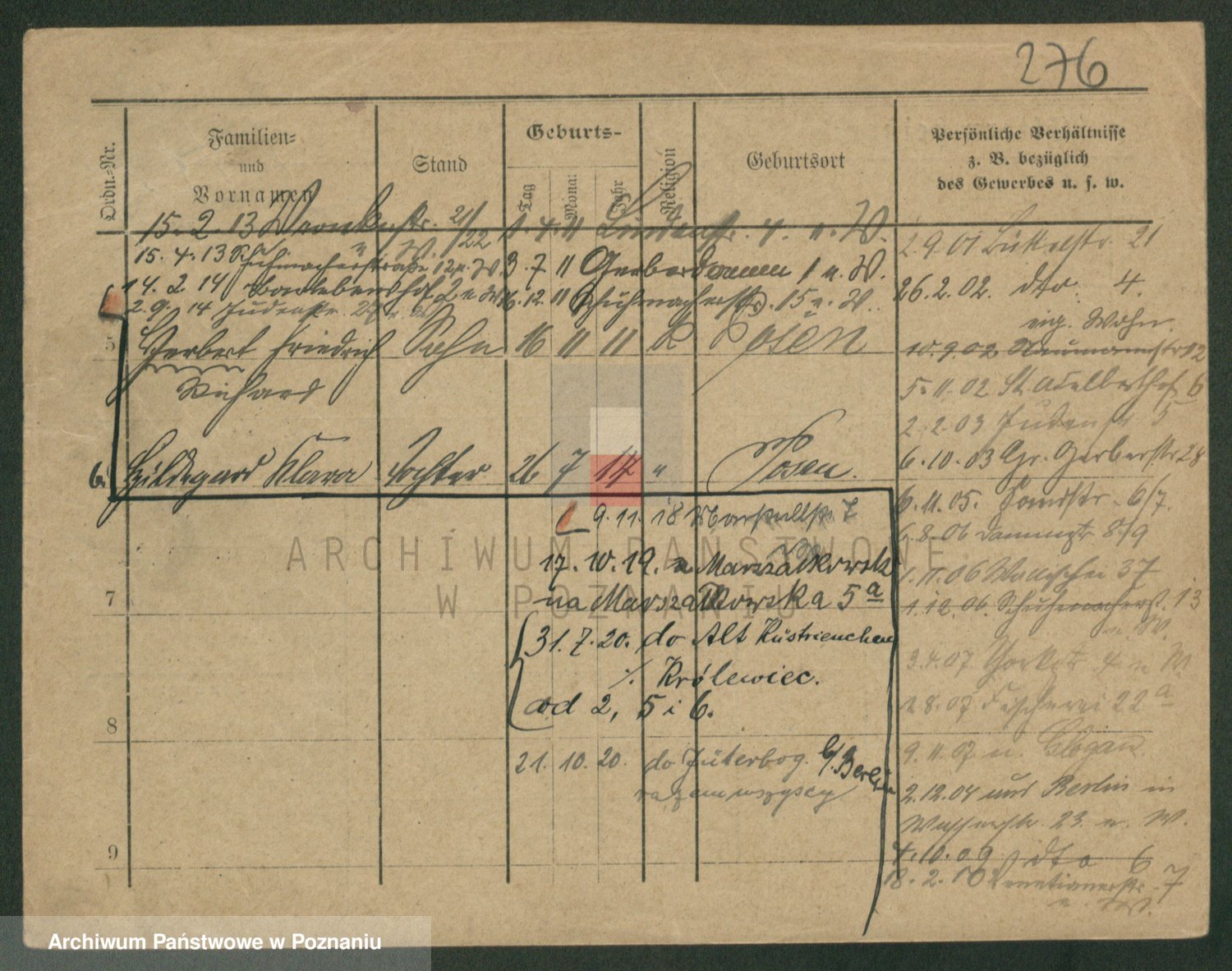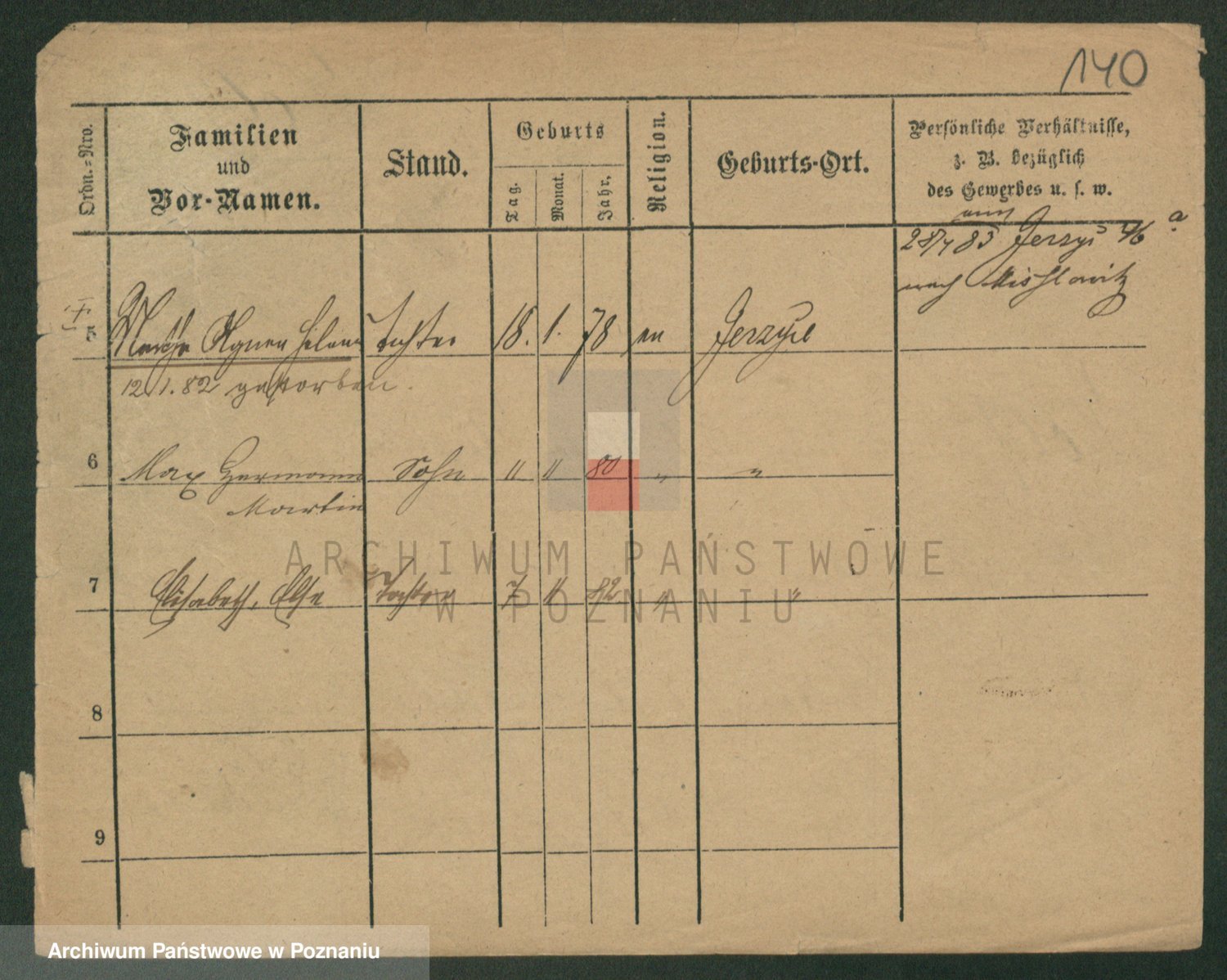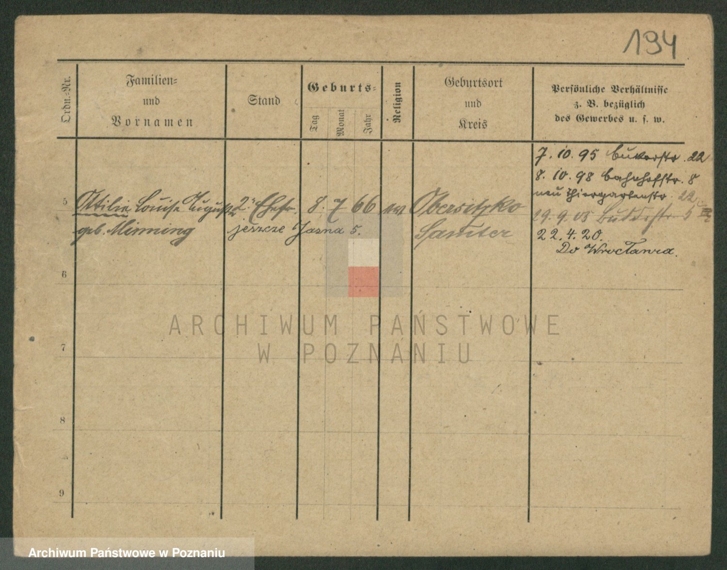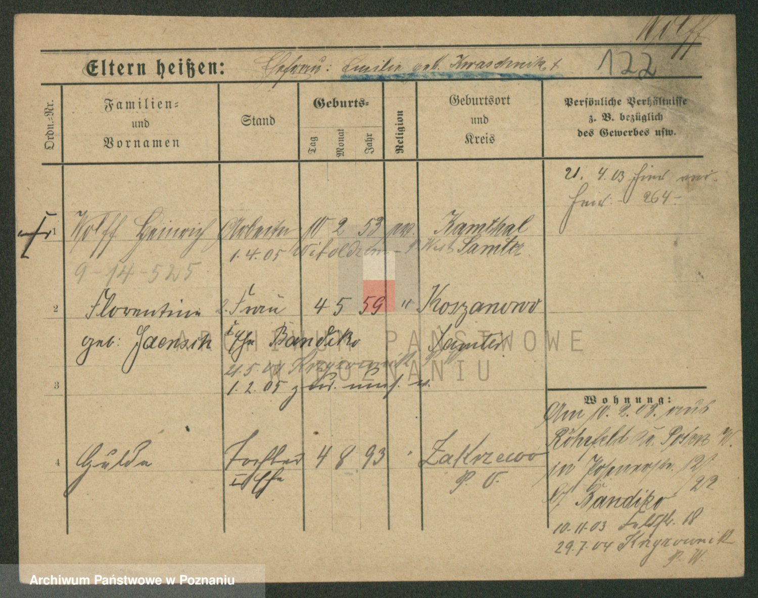 Podgląd karty osobowej dostępny jest po kliknięciu na nazwisko lub ikonkę karty. Można dokonywać powiększenia (ikony na górze) lub przechodzić między kolejnymi skanami (strzałki po bokach).