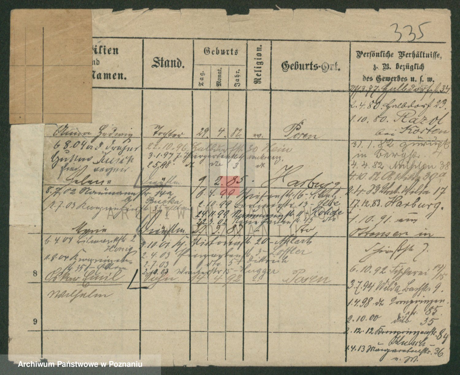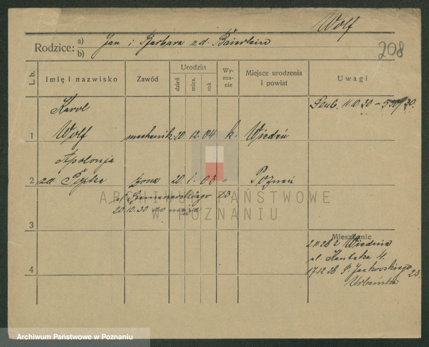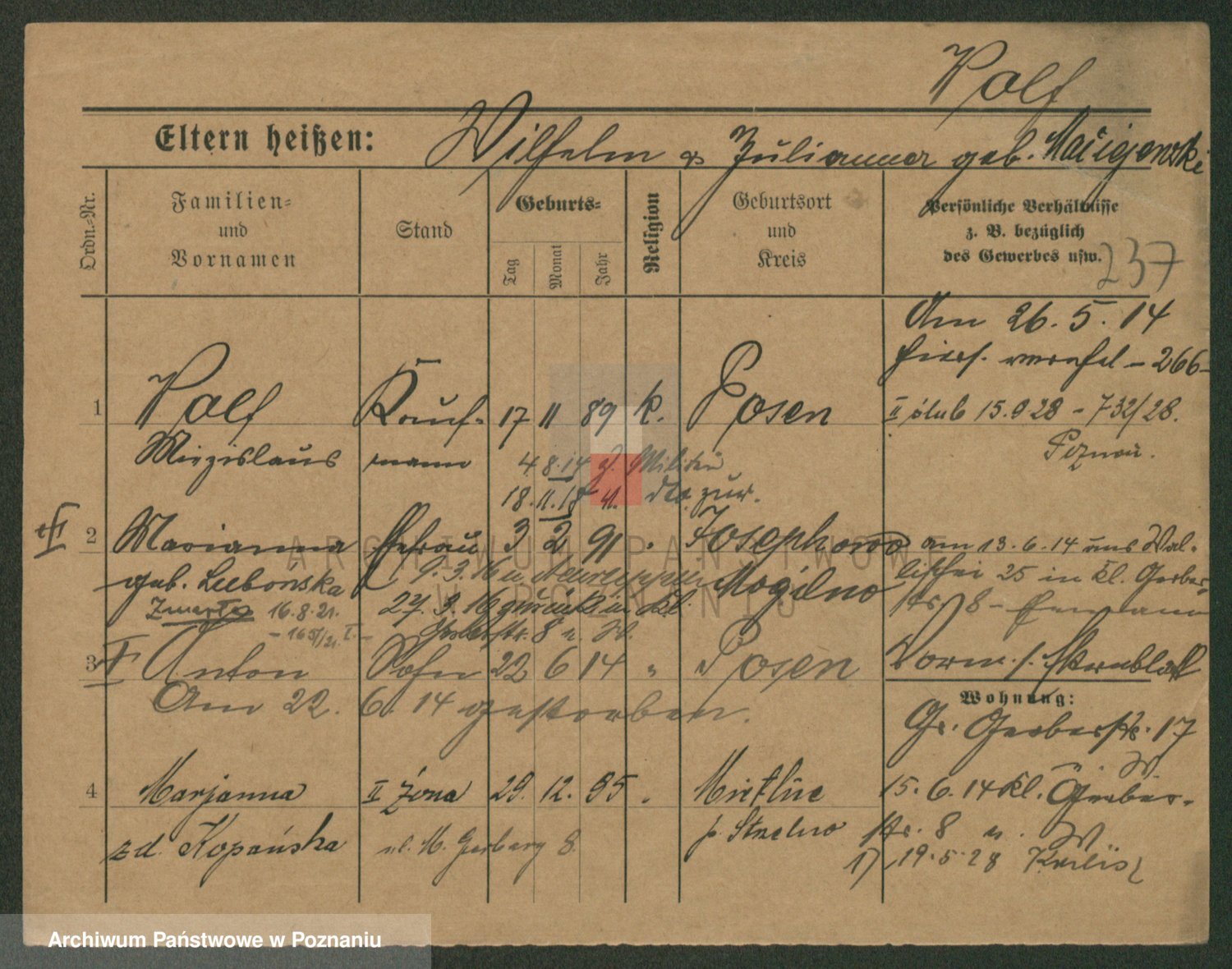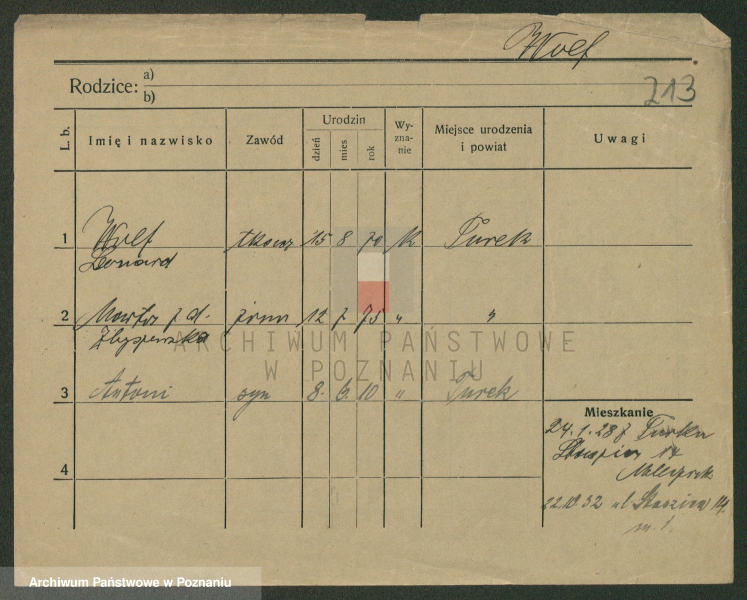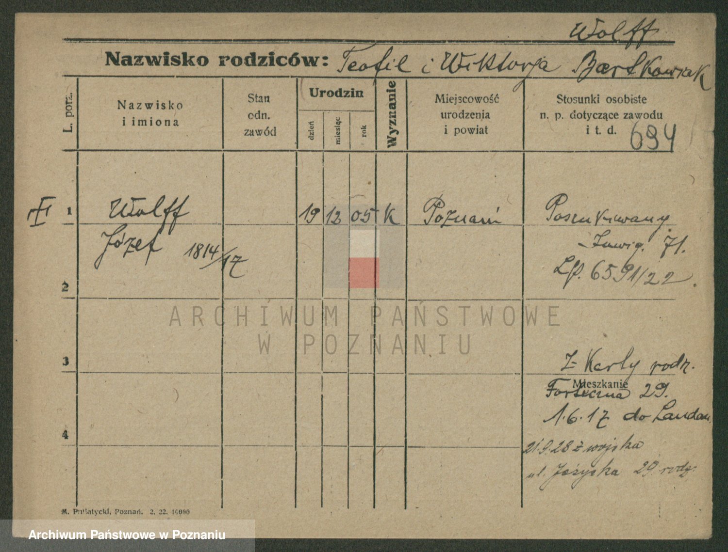 Podgląd karty osobowej dostępny jest po kliknięciu na nazwisko lub ikonkę karty. Można dokonywać powiększenia (ikony na górze) lub przechodzić między kolejnymi skanami (strzałki po bokach).