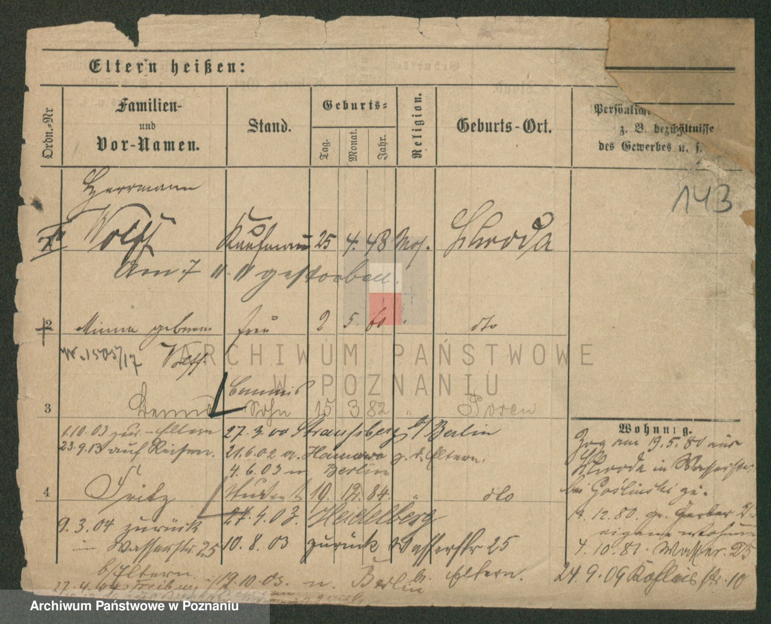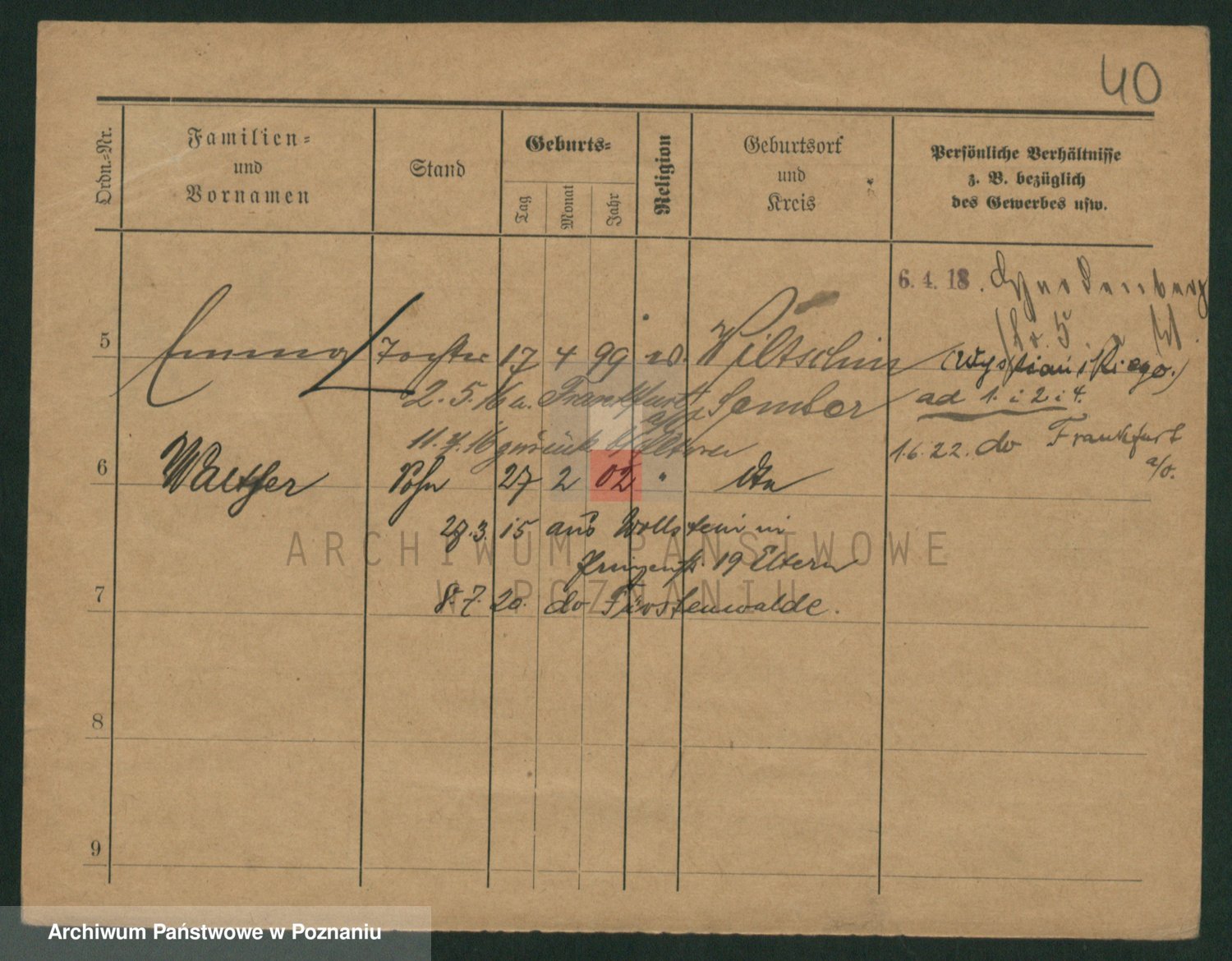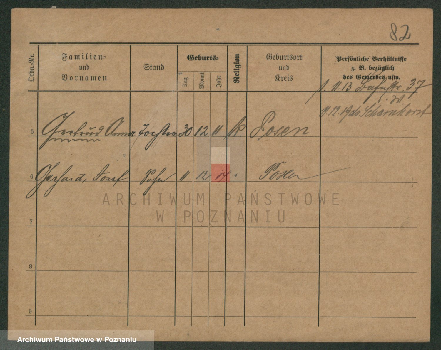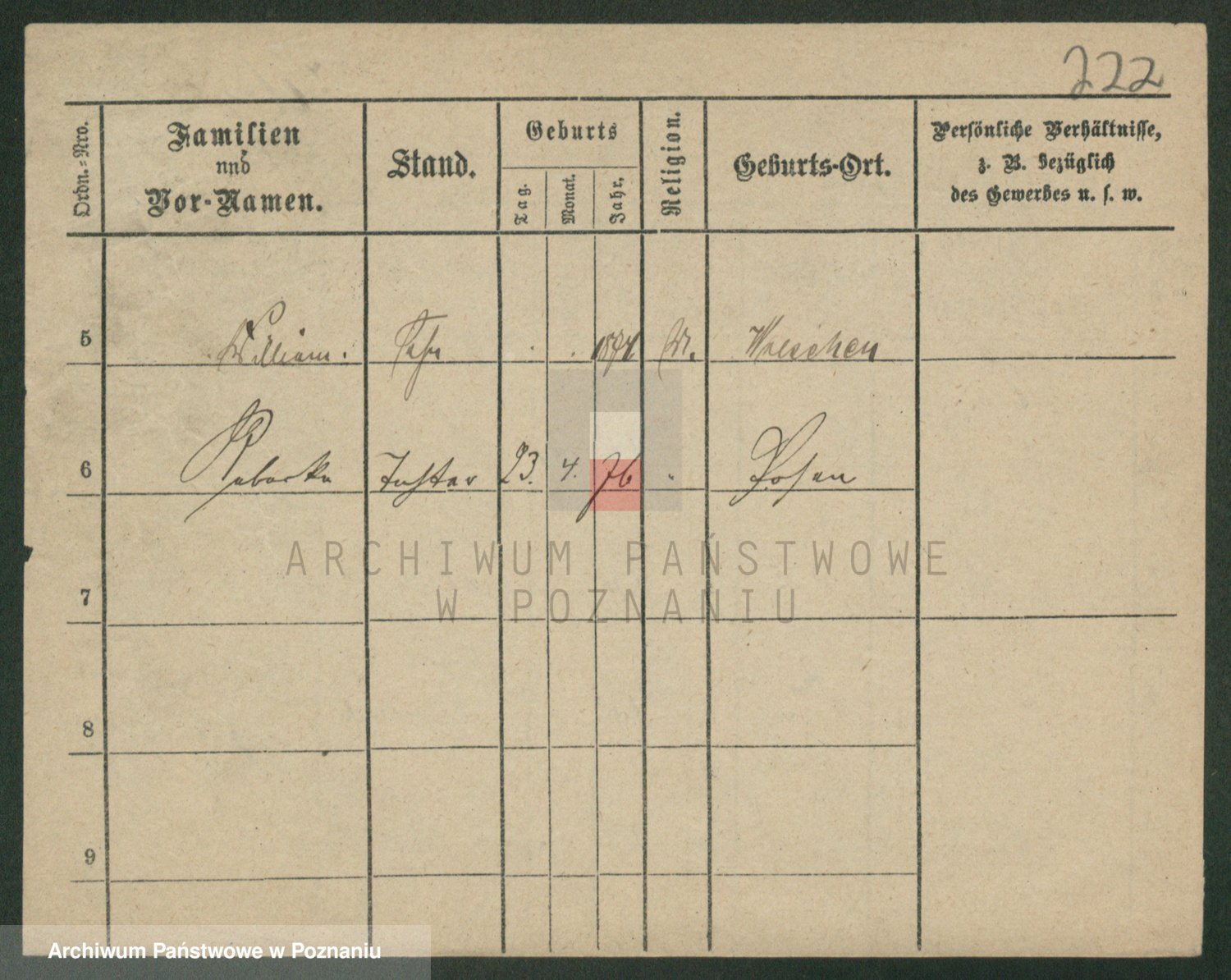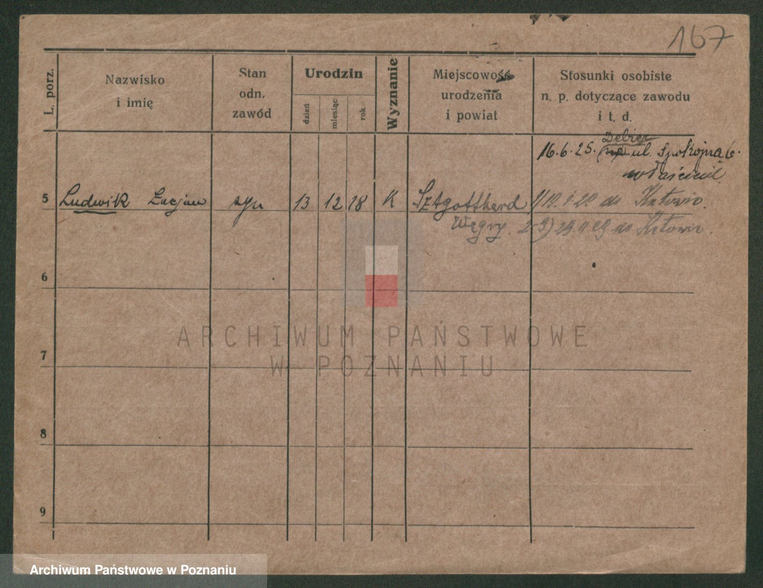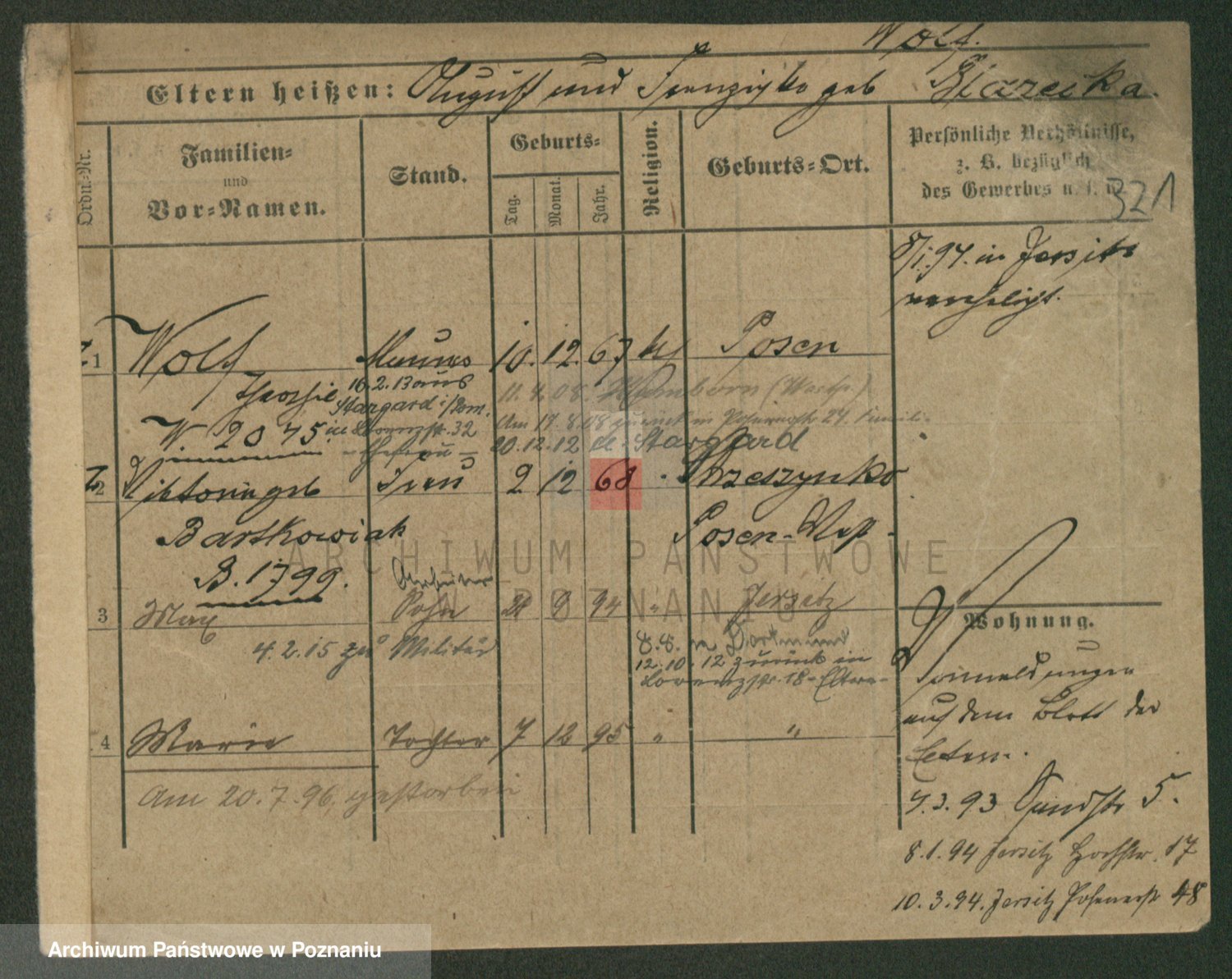 Podgląd karty osobowej dostępny jest po kliknięciu na nazwisko lub ikonkę karty. Można dokonywać powiększenia (ikony na górze) lub przechodzić między kolejnymi skanami (strzałki po bokach).