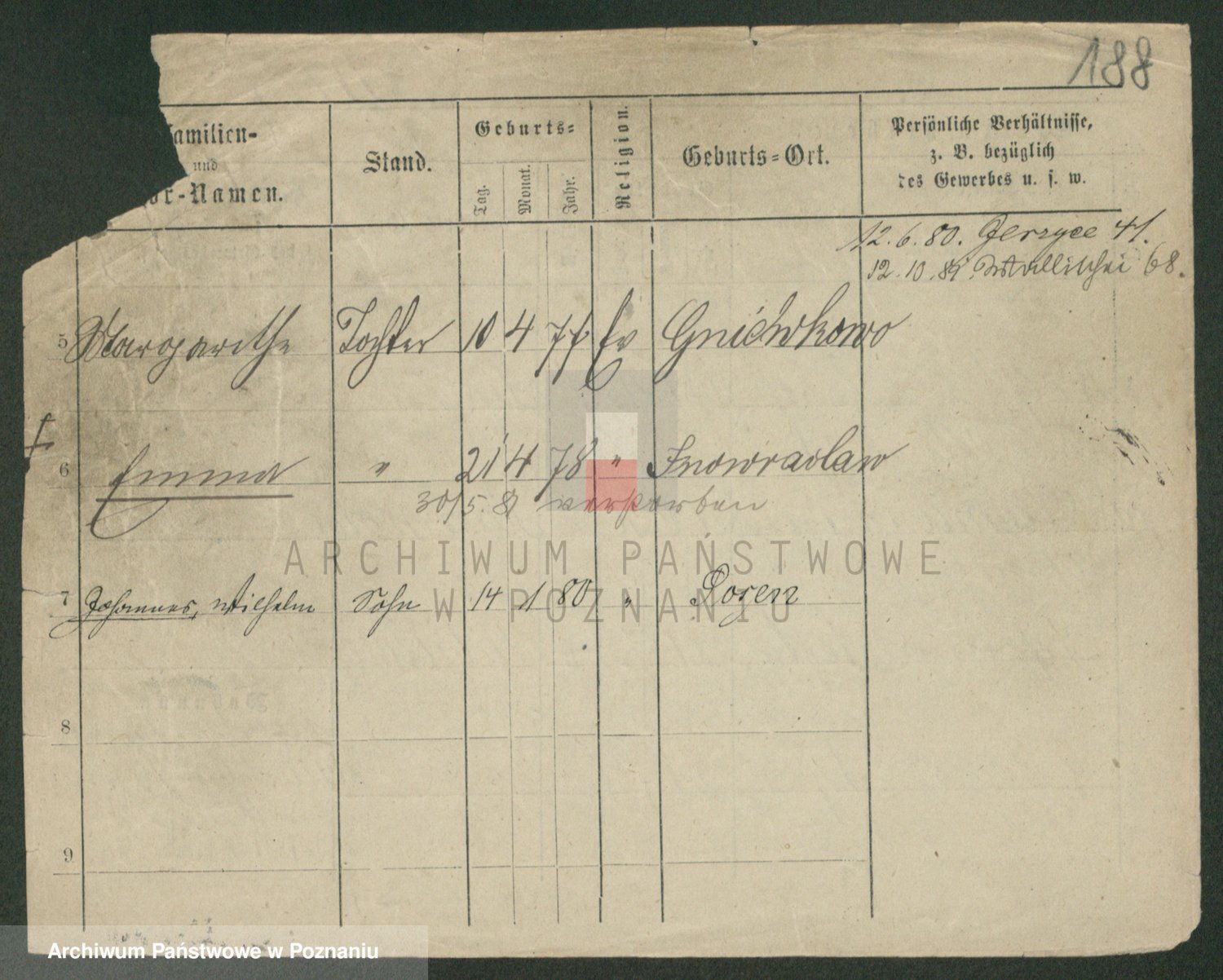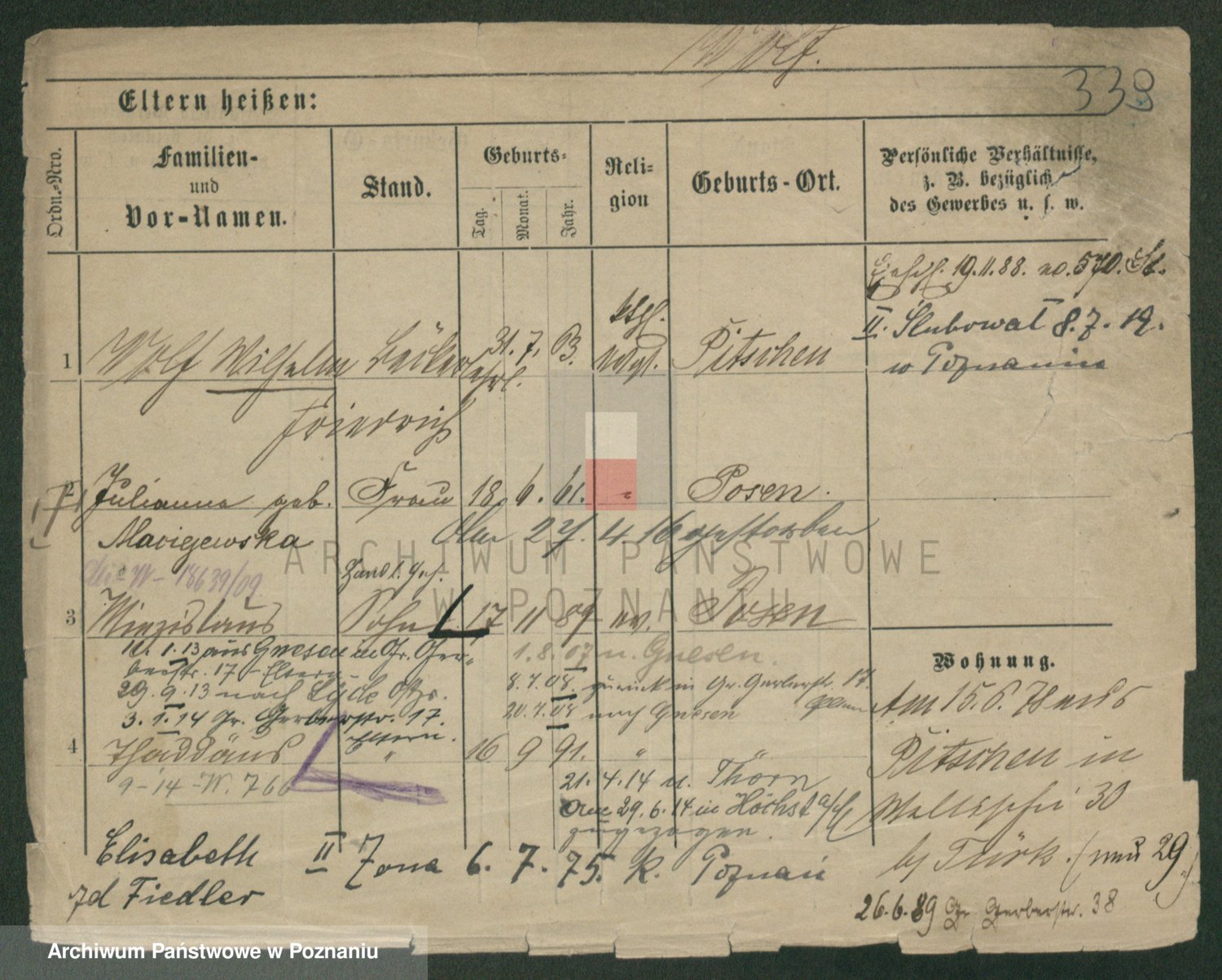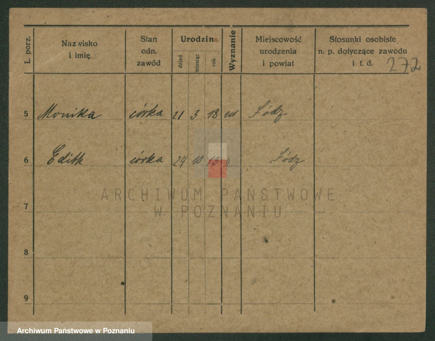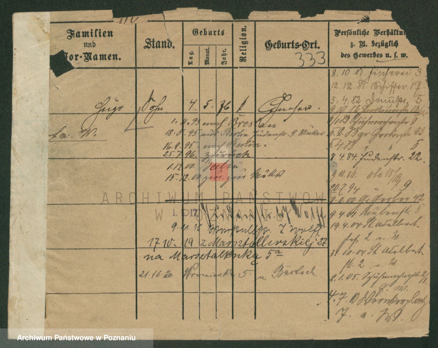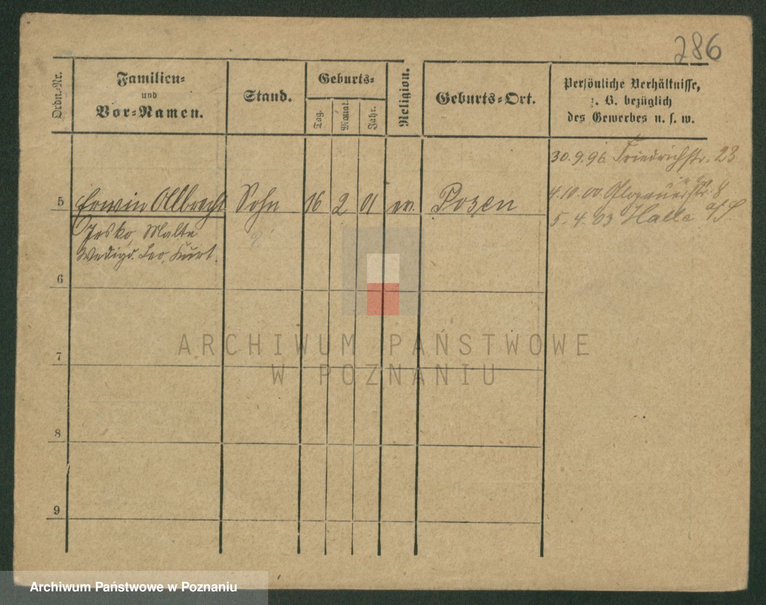Podgląd karty osobowej dostępny jest po kliknięciu na nazwisko lub ikonkę karty. Można dokonywać powiększenia (ikony na górze) lub przechodzić między kolejnymi skanami (strzałki po bokach).