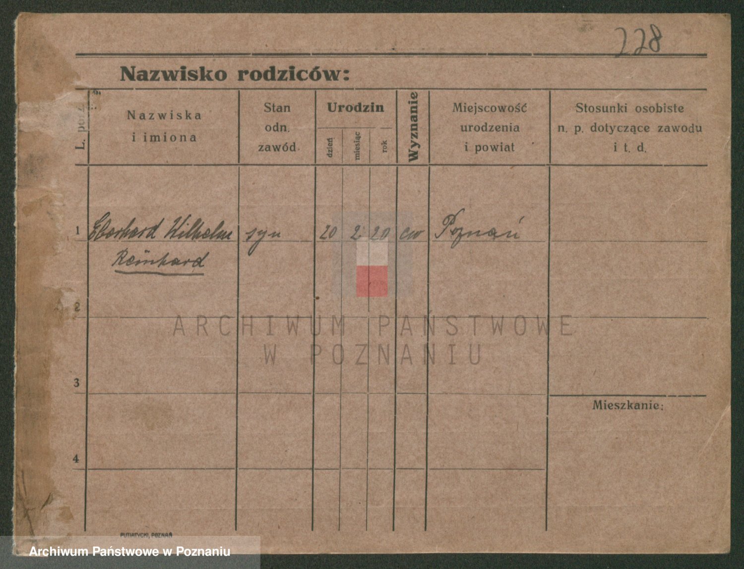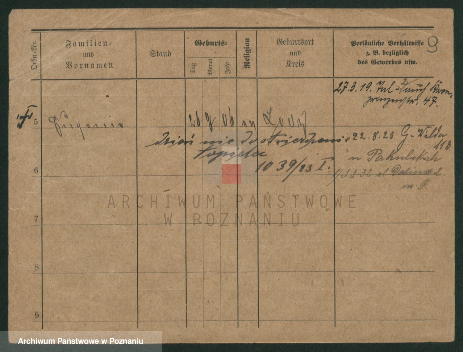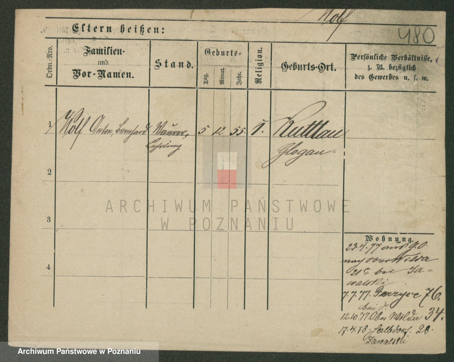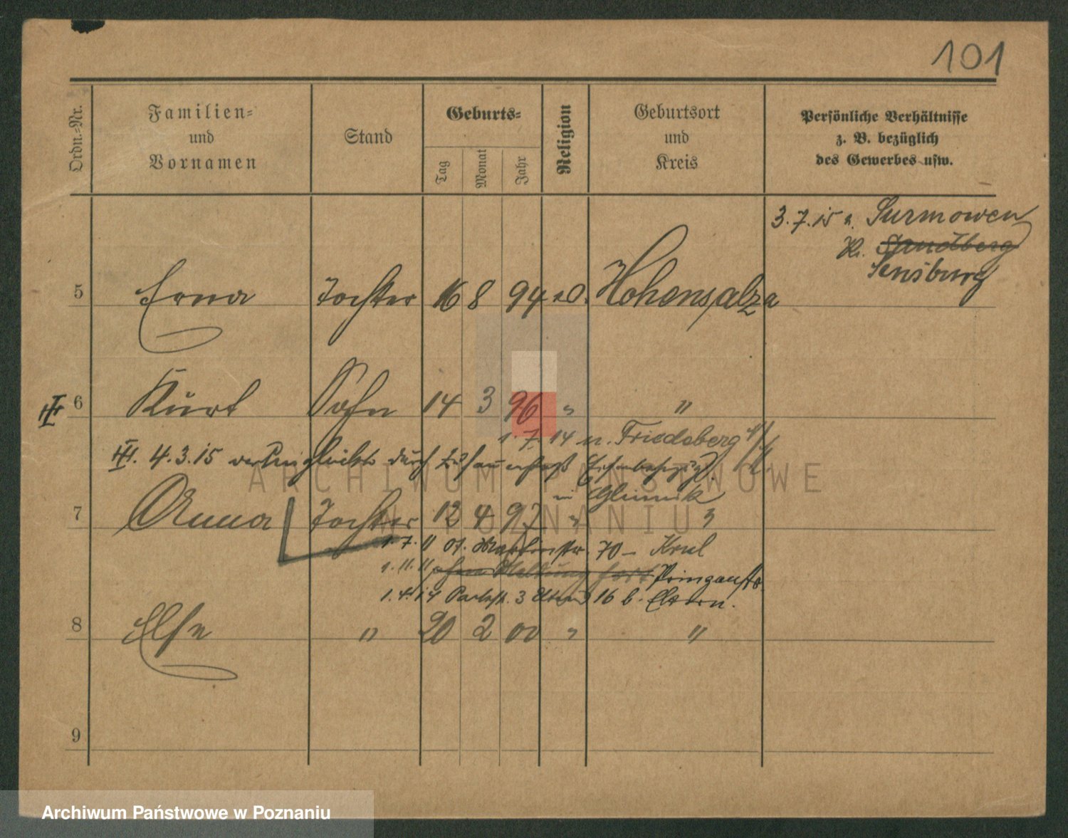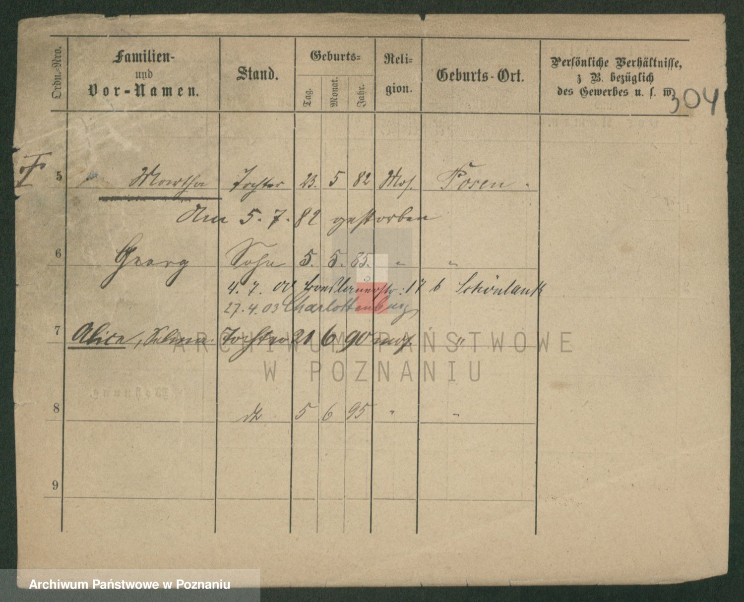 Podgląd karty osobowej dostępny jest po kliknięciu na nazwisko lub ikonkę karty. Można dokonywać powiększenia (ikony na górze) lub przechodzić między kolejnymi skanami (strzałki po bokach).