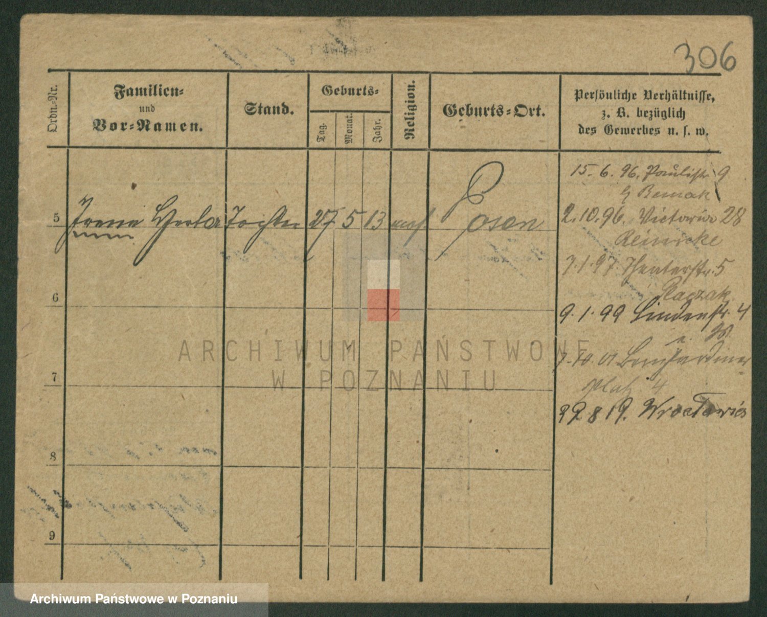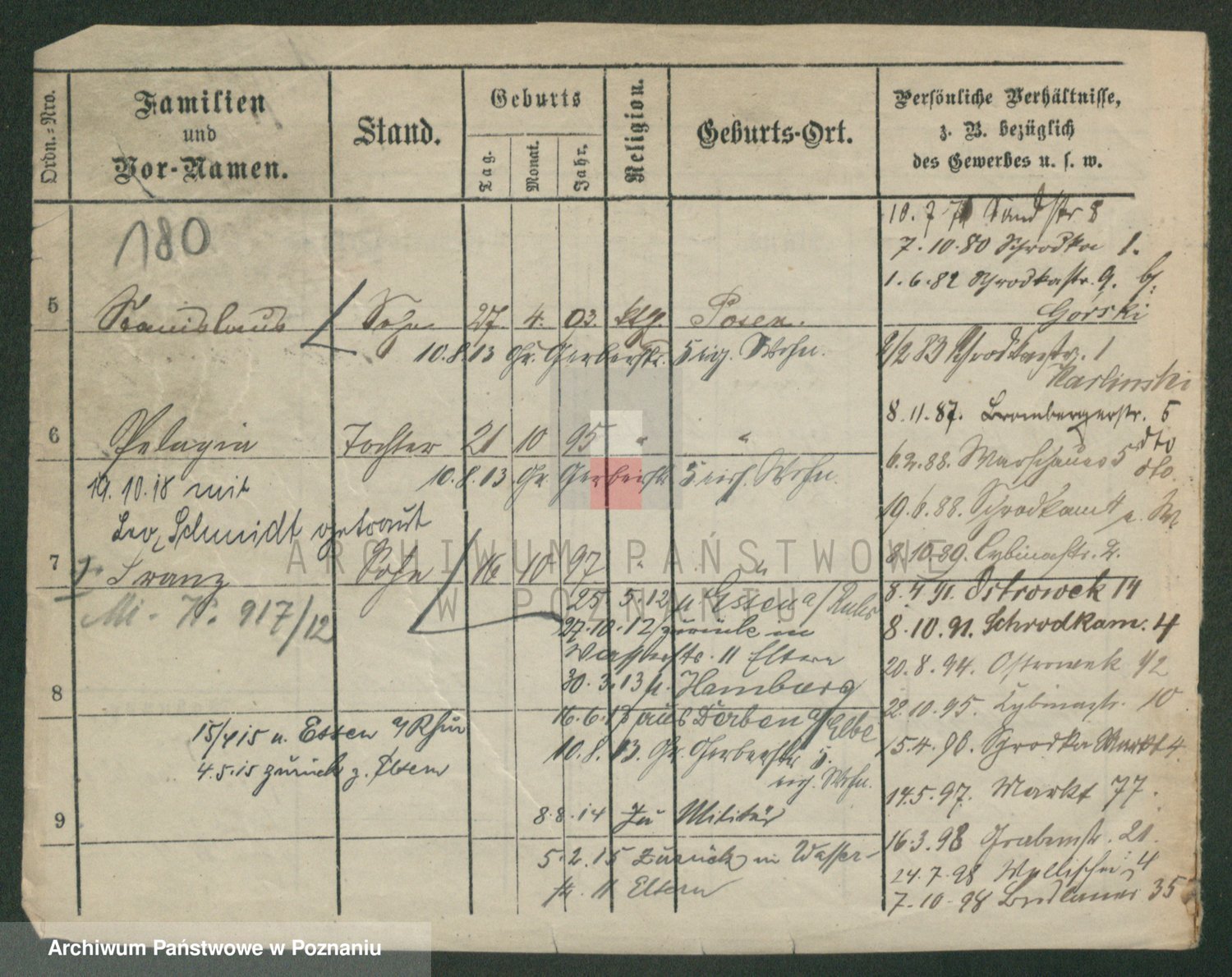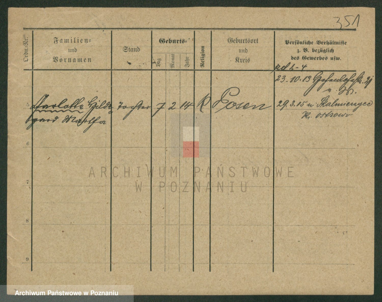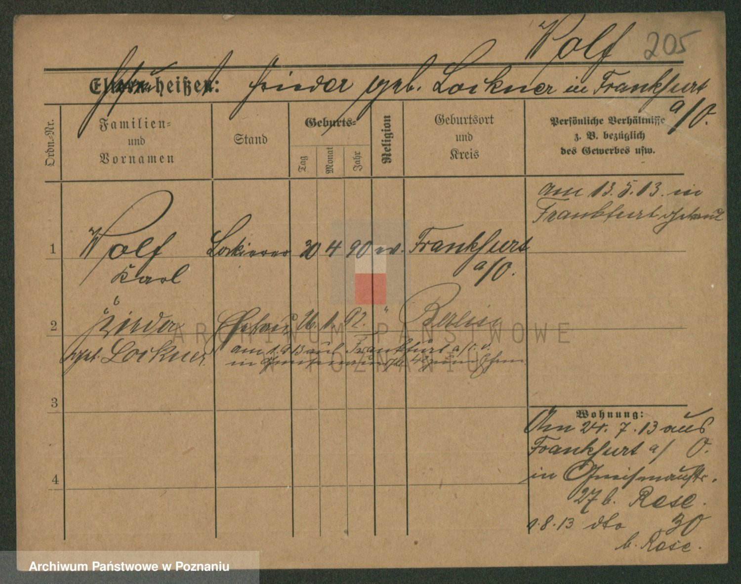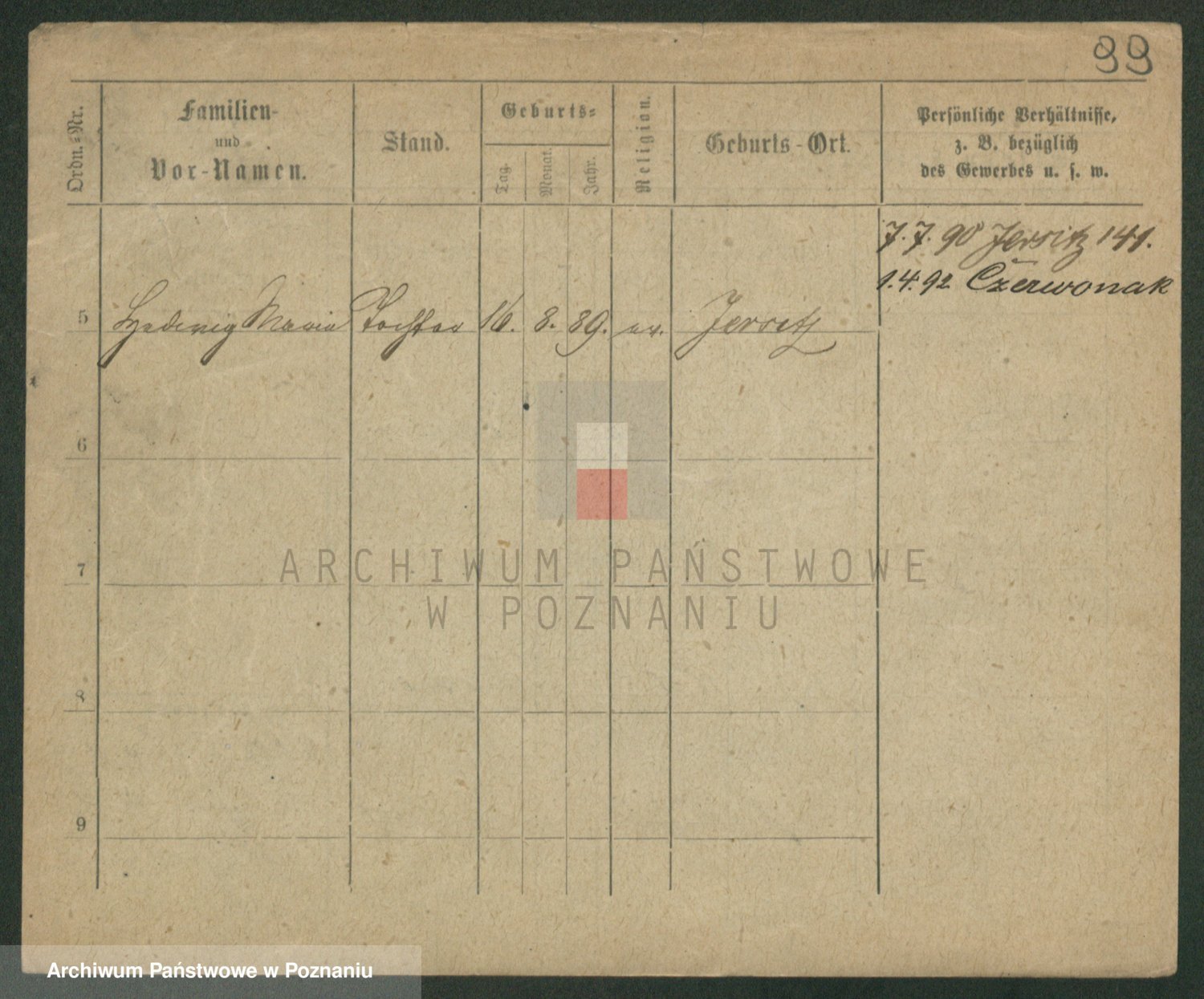 Podgląd karty osobowej dostępny jest po kliknięciu na nazwisko lub ikonkę karty. Można dokonywać powiększenia (ikony na górze) lub przechodzić między kolejnymi skanami (strzałki po bokach).