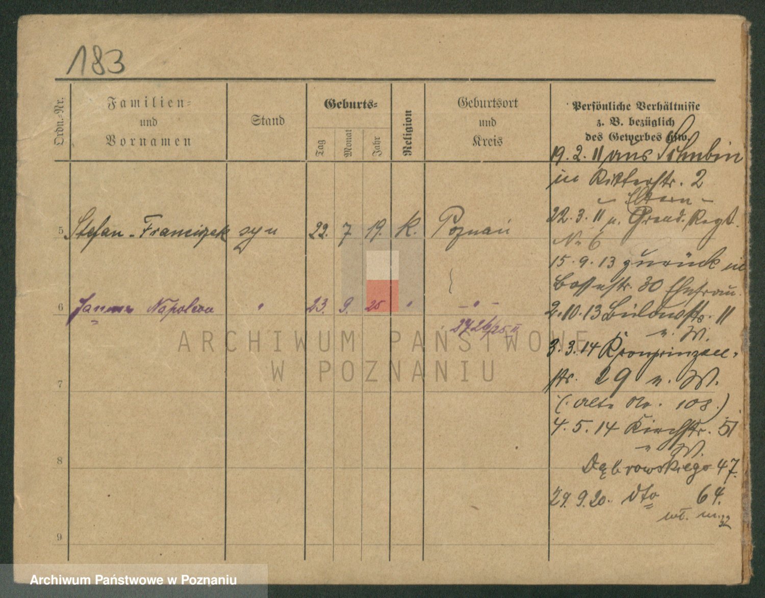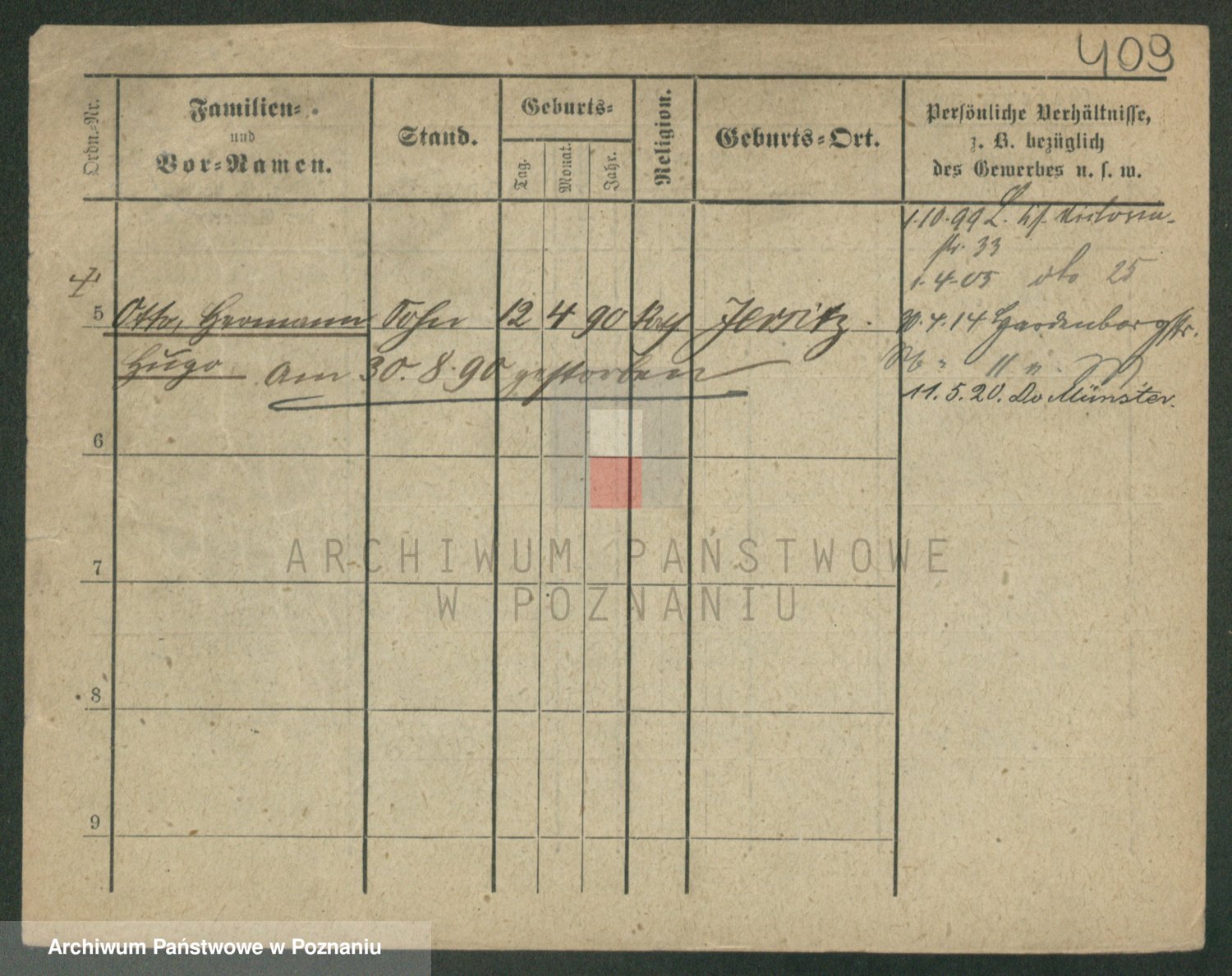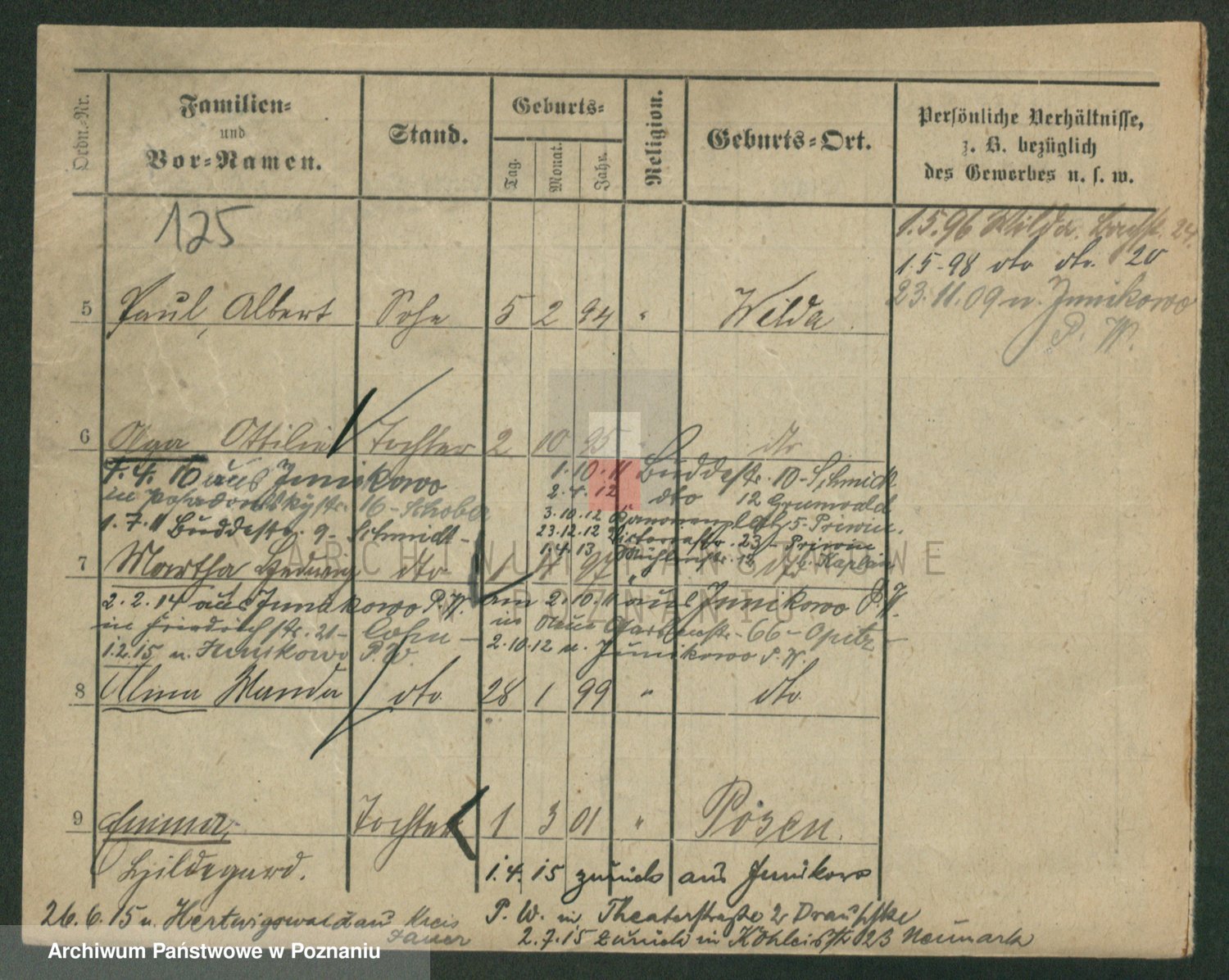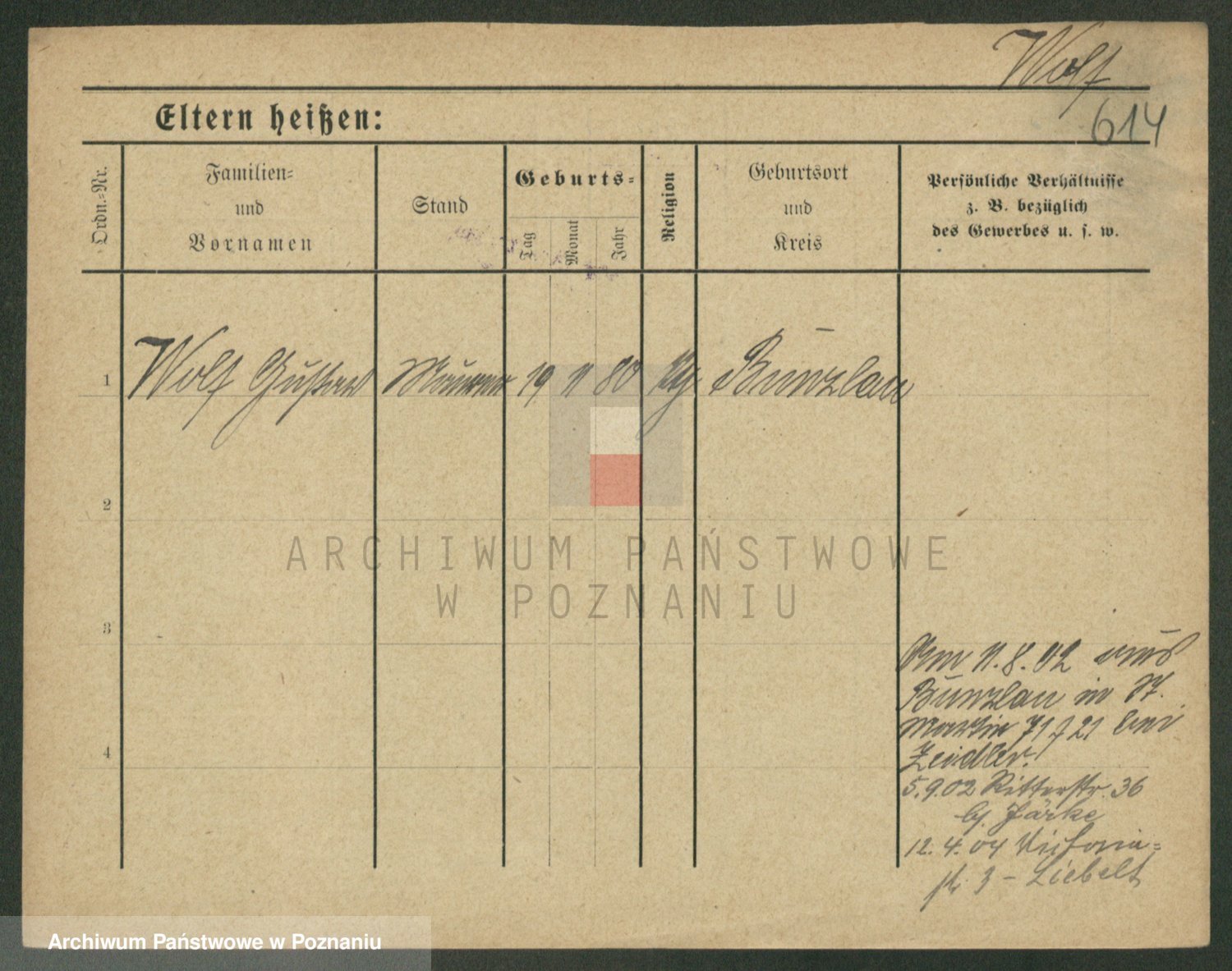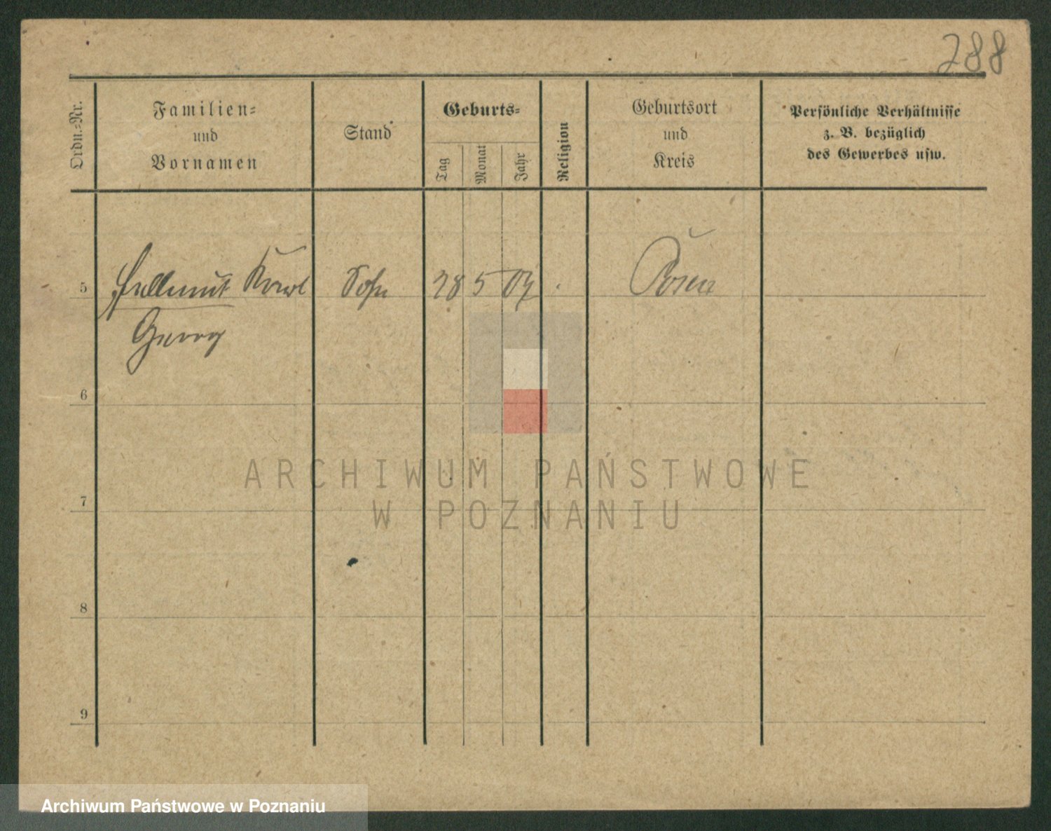 Podgląd karty osobowej dostępny jest po kliknięciu na nazwisko lub ikonkę karty. Można dokonywać powiększenia (ikony na górze) lub przechodzić między kolejnymi skanami (strzałki po bokach).