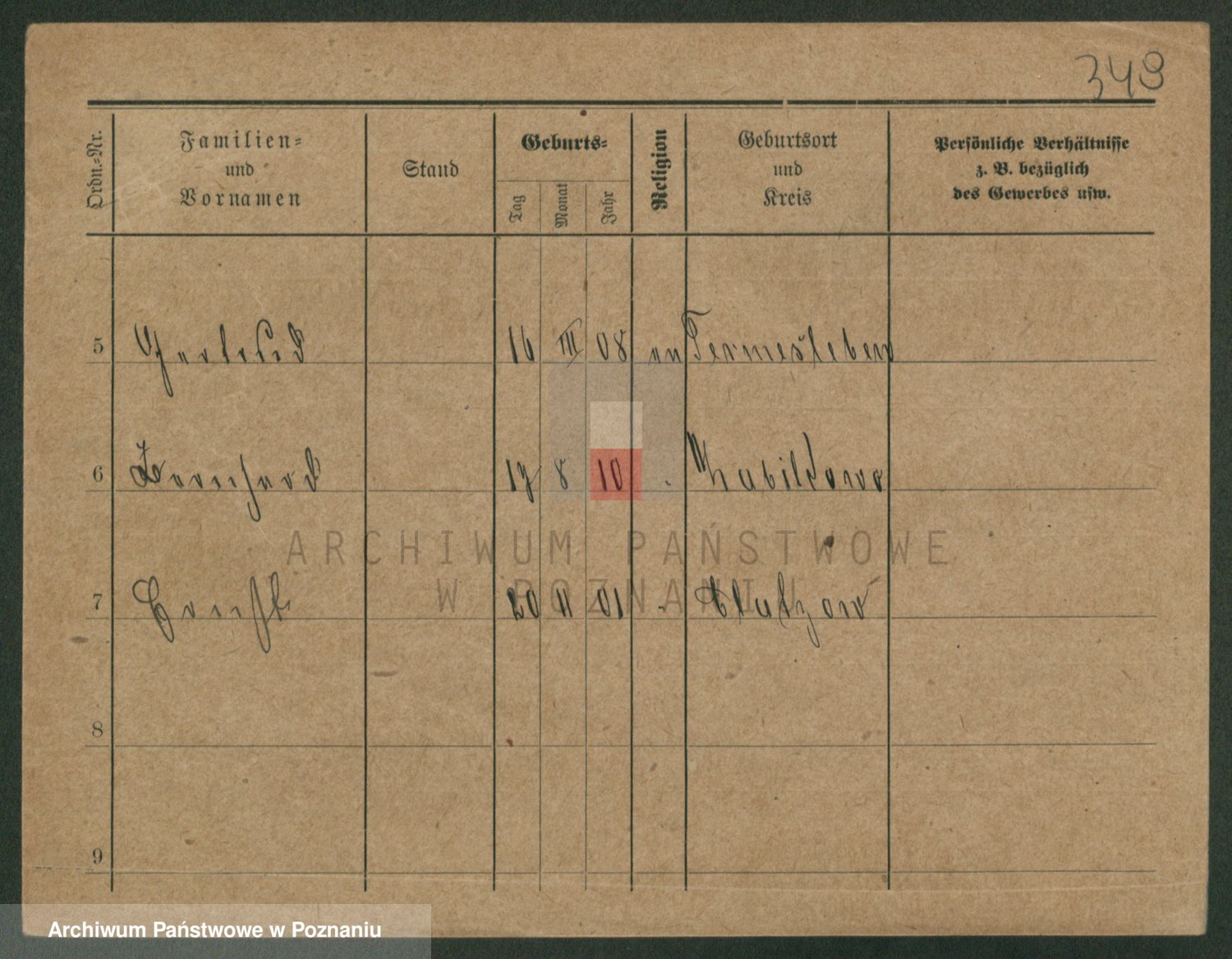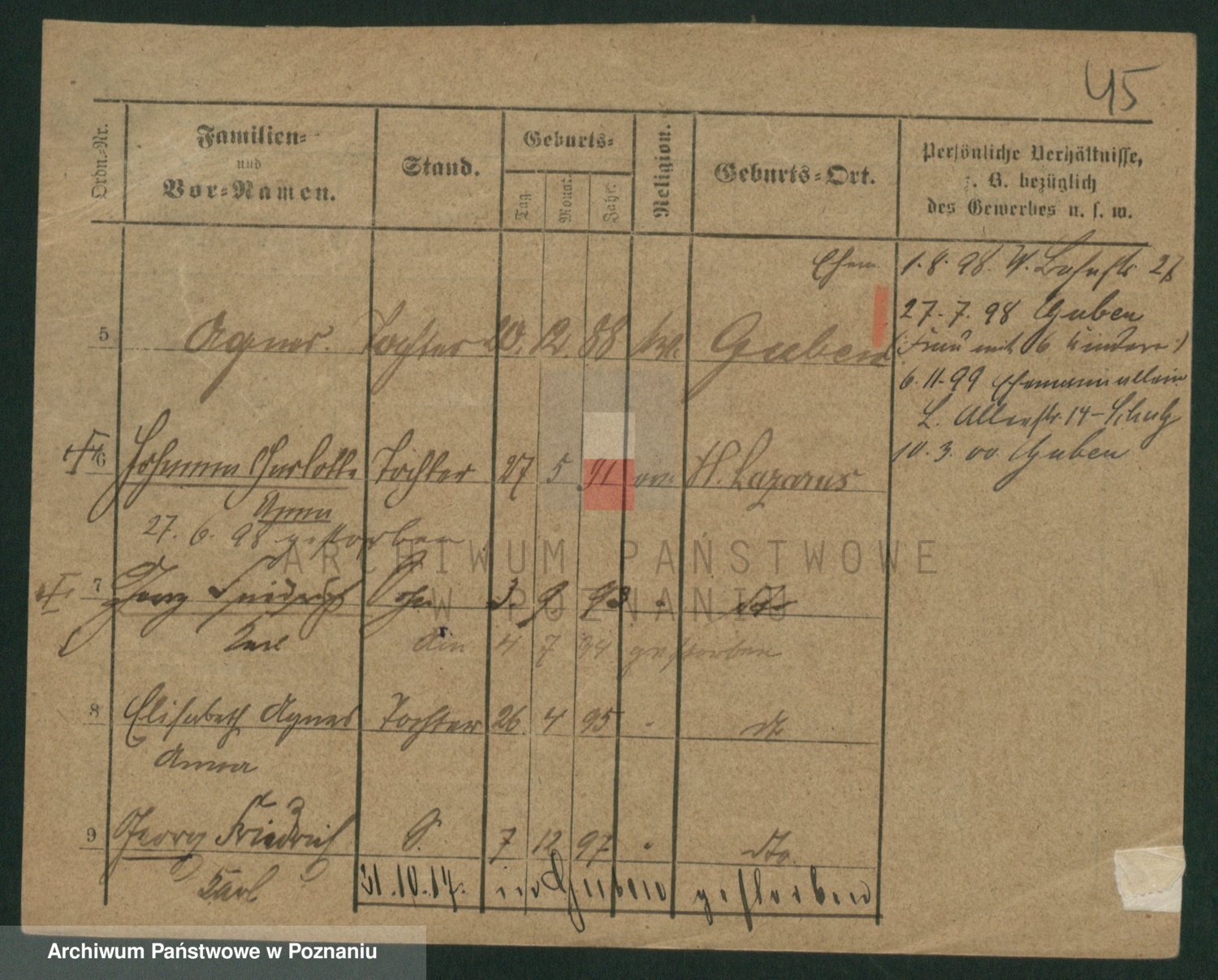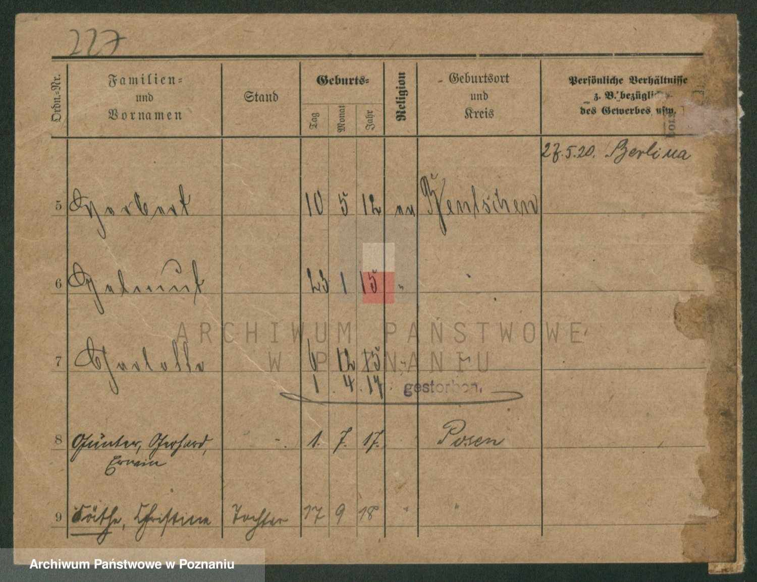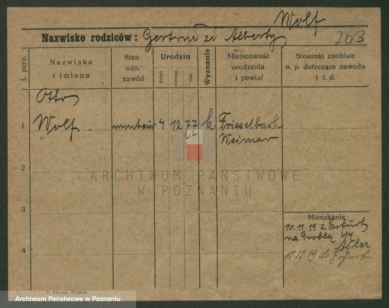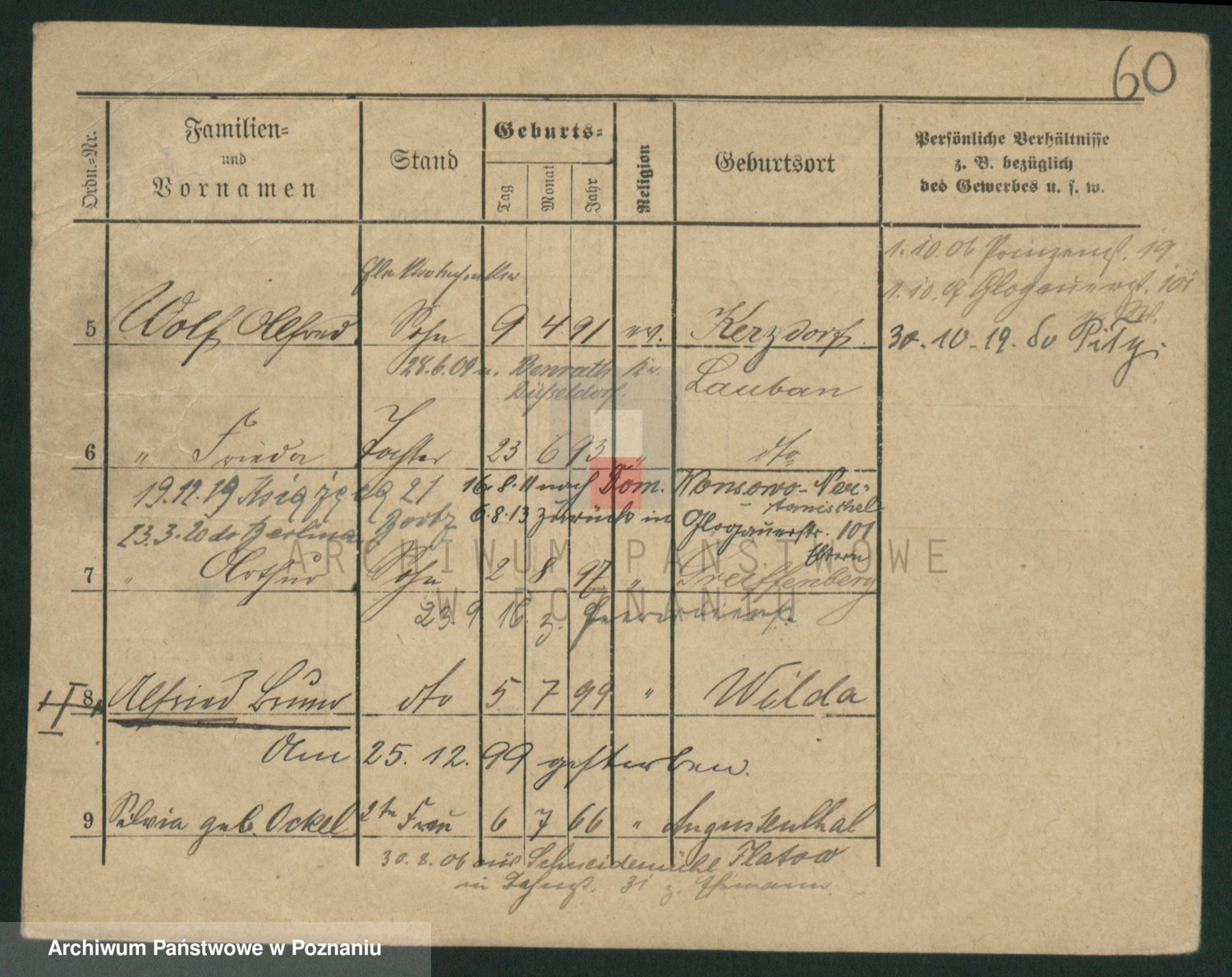 Podgląd karty osobowej dostępny jest po kliknięciu na nazwisko lub ikonkę karty. Można dokonywać powiększenia (ikony na górze) lub przechodzić między kolejnymi skanami (strzałki po bokach).
