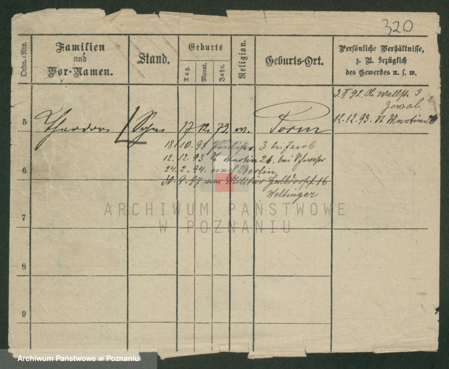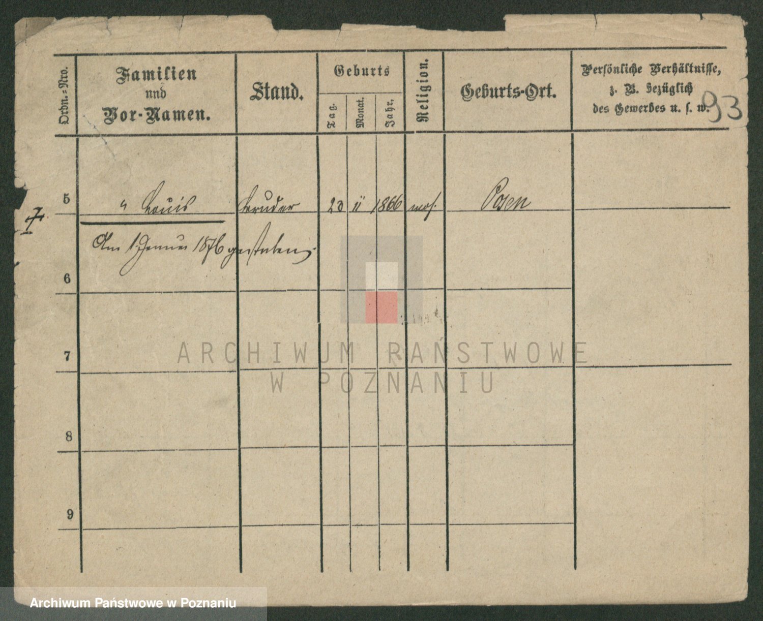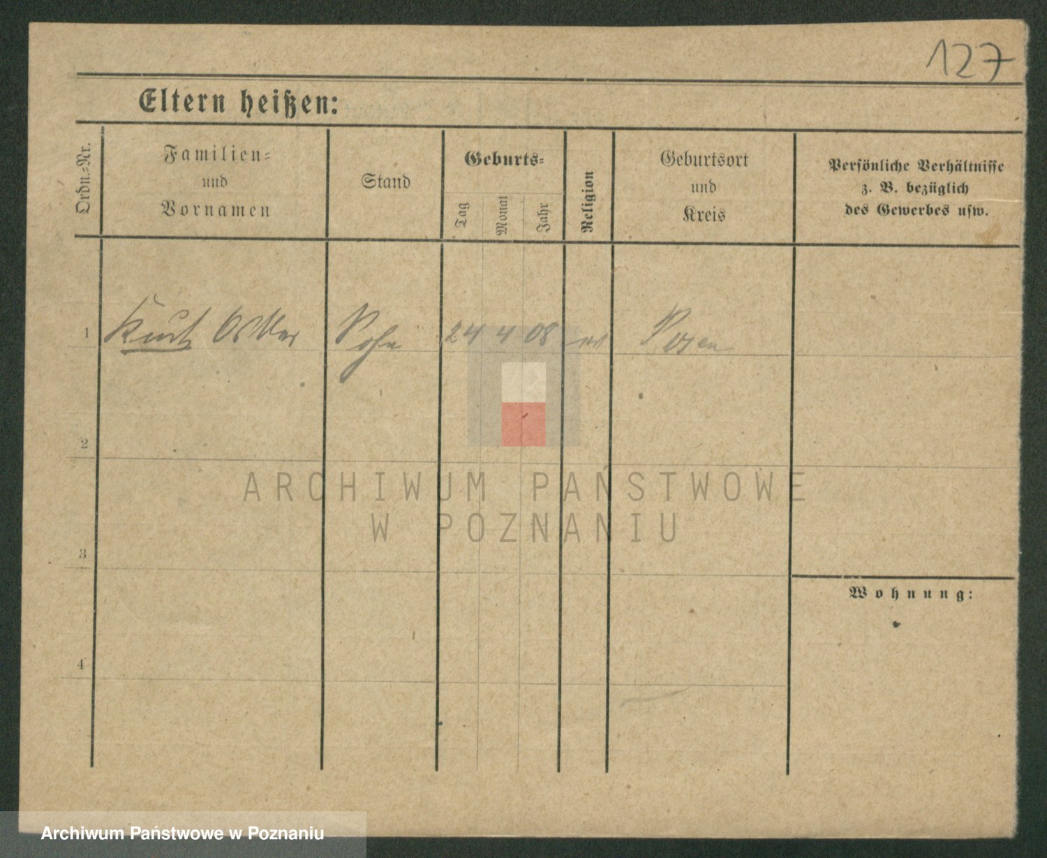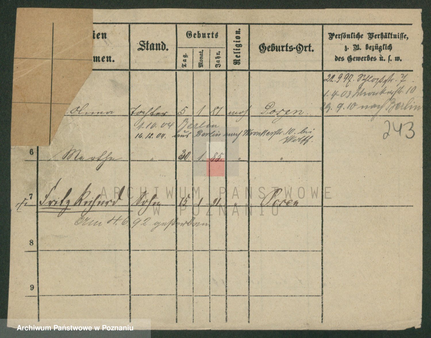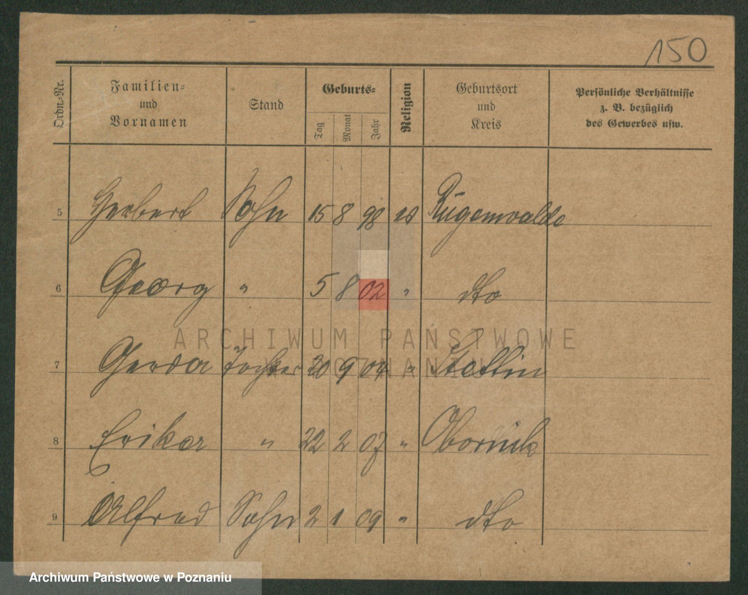 Podgląd karty osobowej dostępny jest po kliknięciu na nazwisko lub ikonkę karty. Można dokonywać powiększenia (ikony na górze) lub przechodzić między kolejnymi skanami (strzałki po bokach).