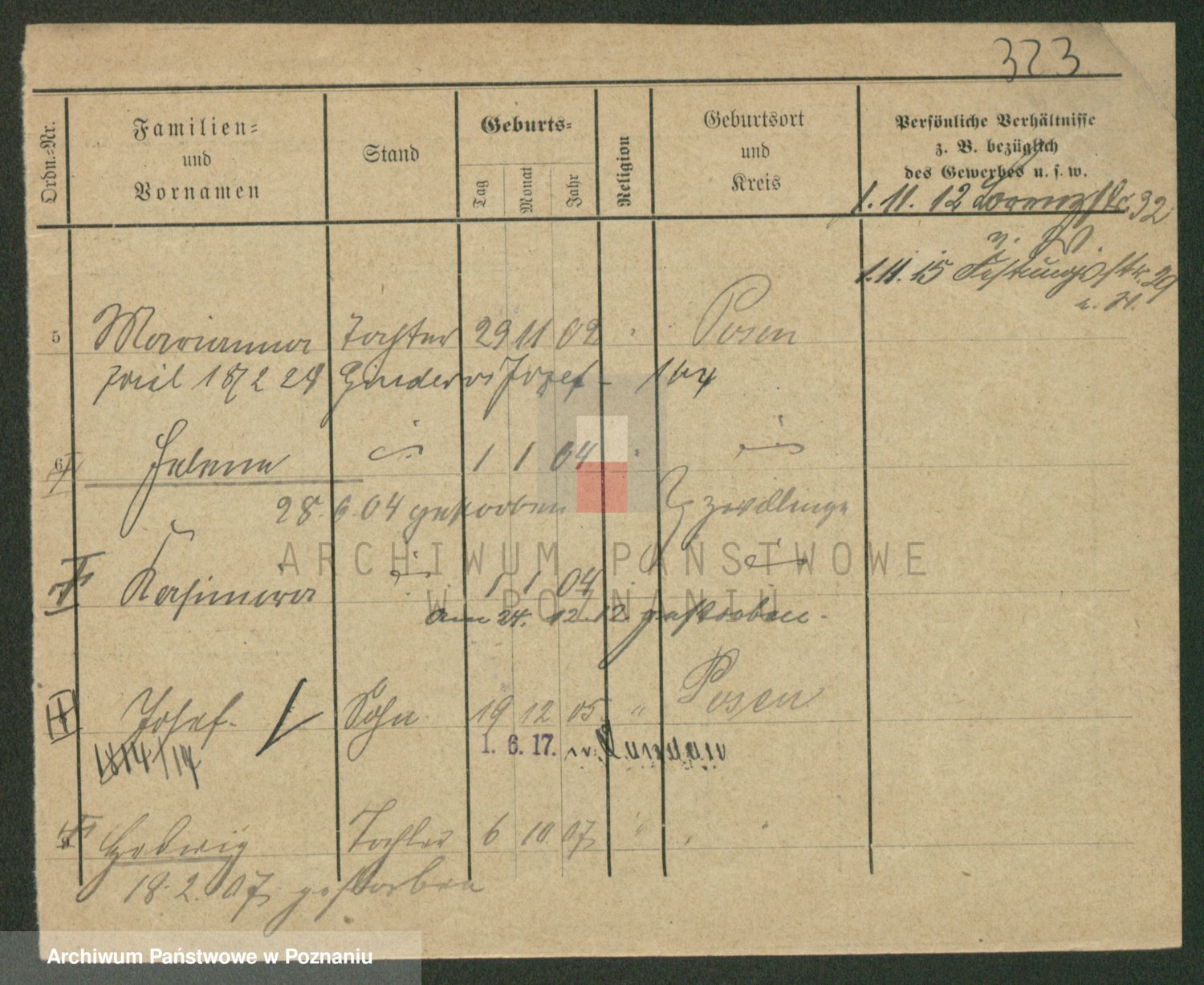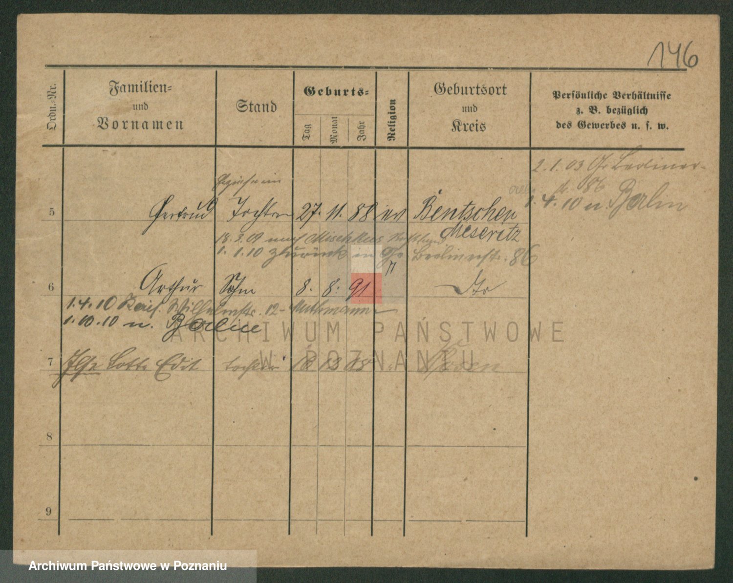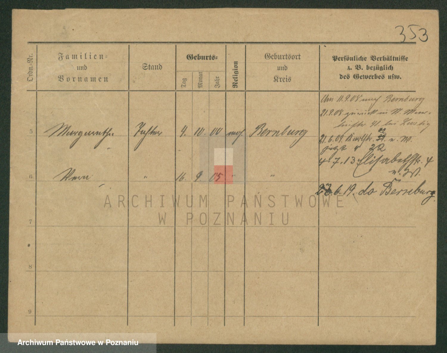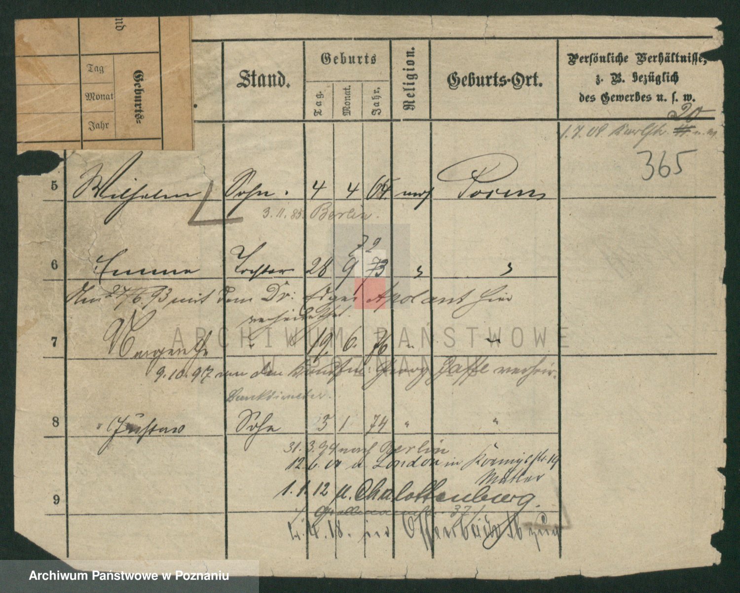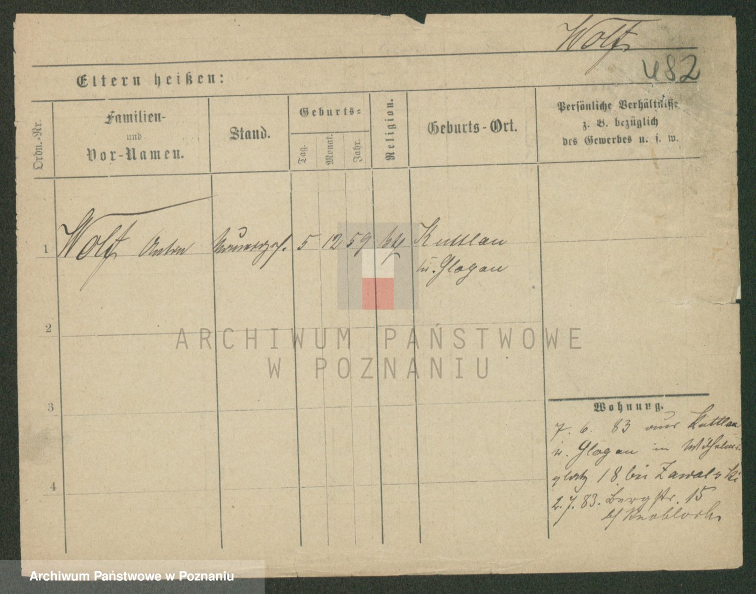Podgląd karty osobowej dostępny jest po kliknięciu na nazwisko lub ikonkę karty. Można dokonywać powiększenia (ikony na górze) lub przechodzić między kolejnymi skanami (strzałki po bokach).