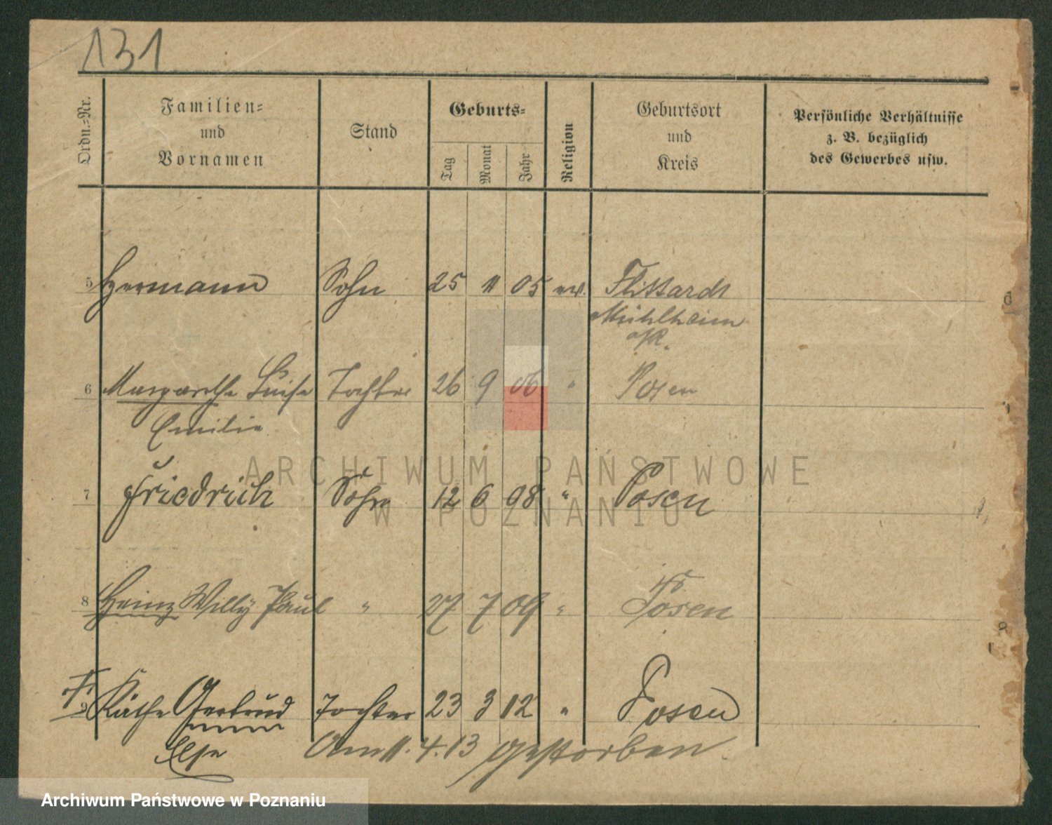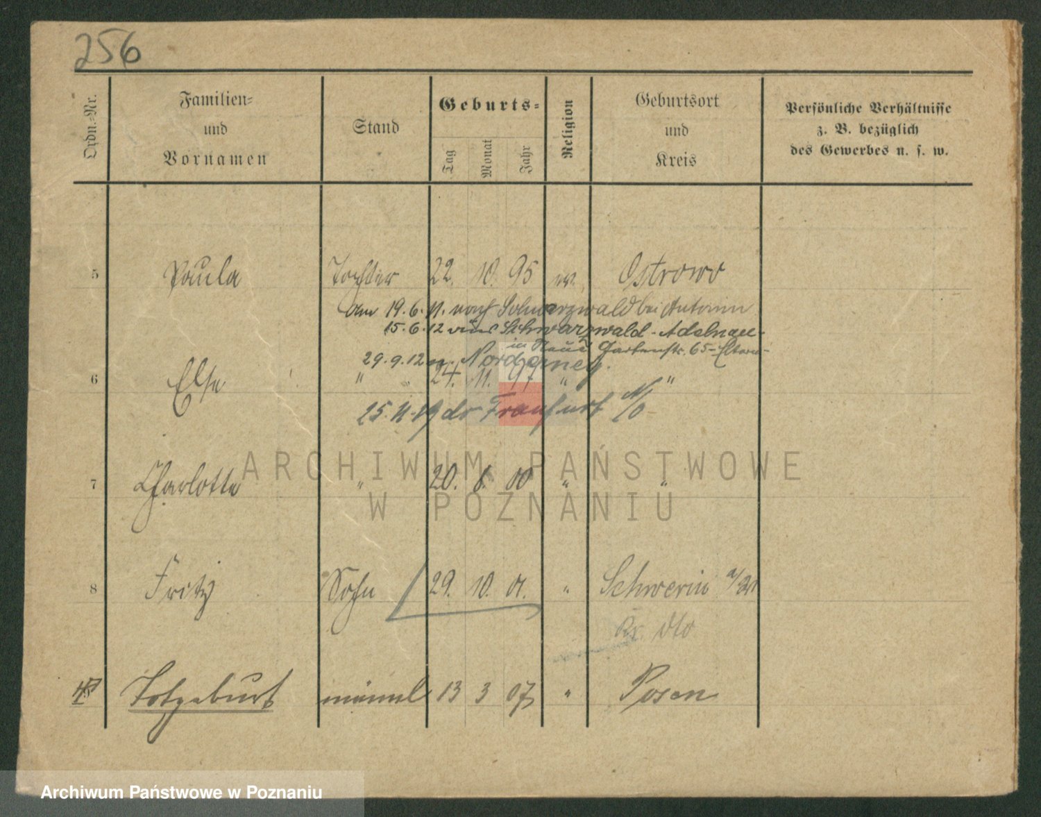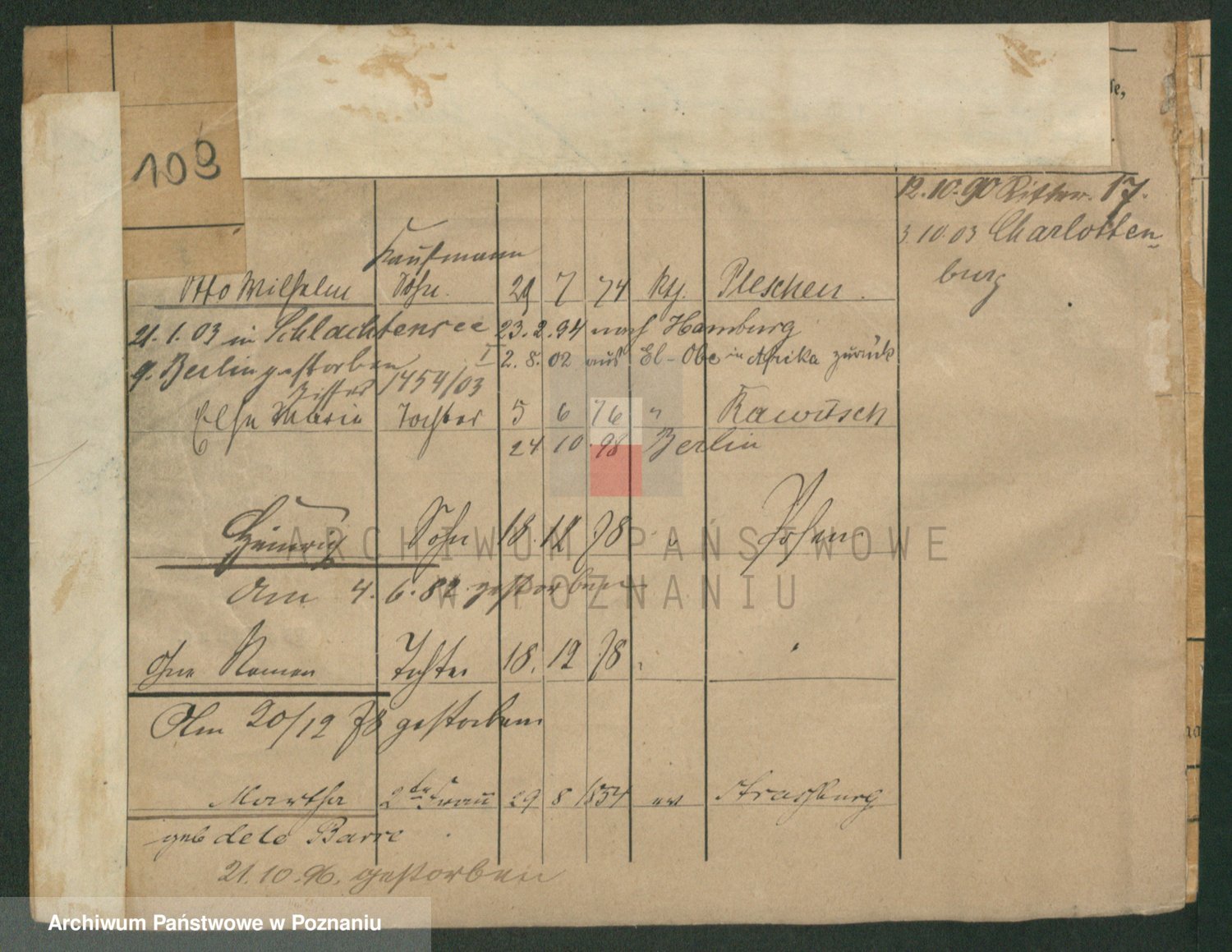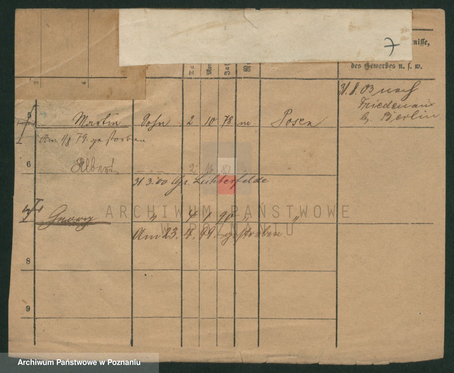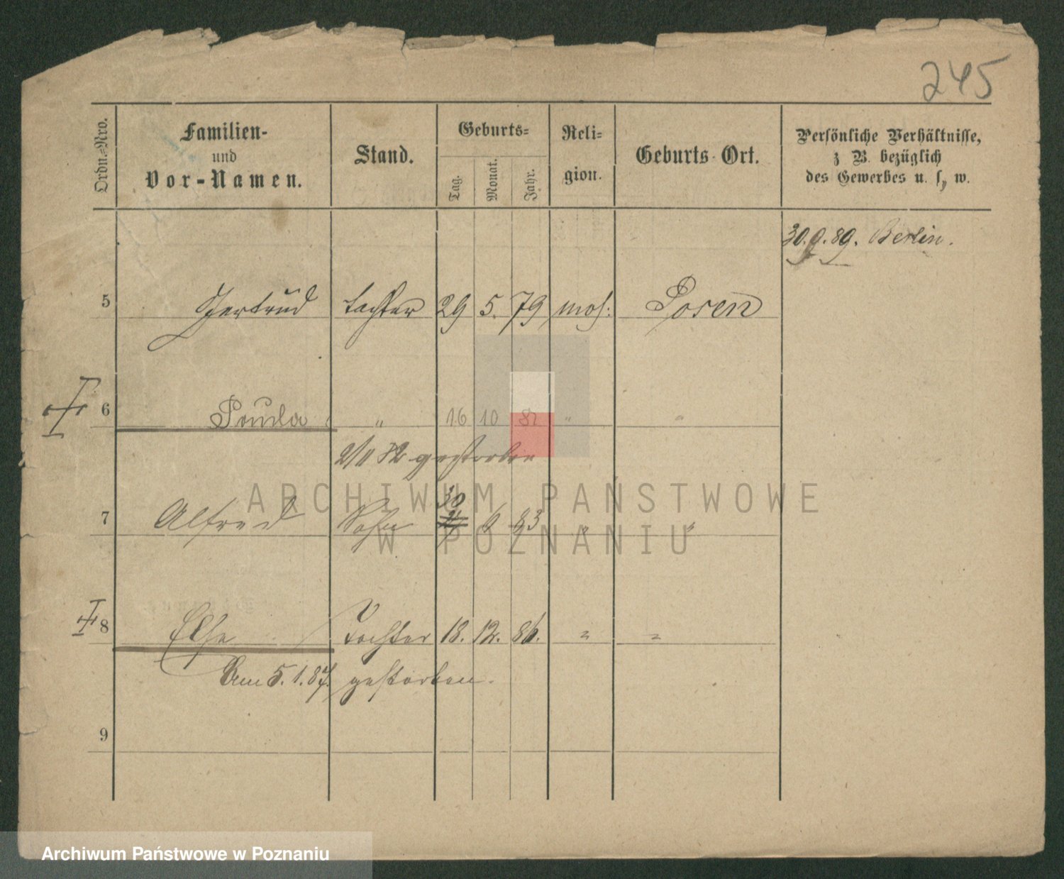 Podgląd karty osobowej dostępny jest po kliknięciu na nazwisko lub ikonkę karty. Można dokonywać powiększenia (ikony na górze) lub przechodzić między kolejnymi skanami (strzałki po bokach).