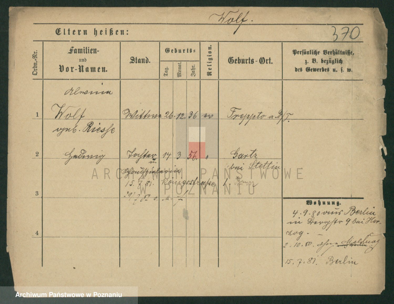 Wolf z d. Linke, Ottilie