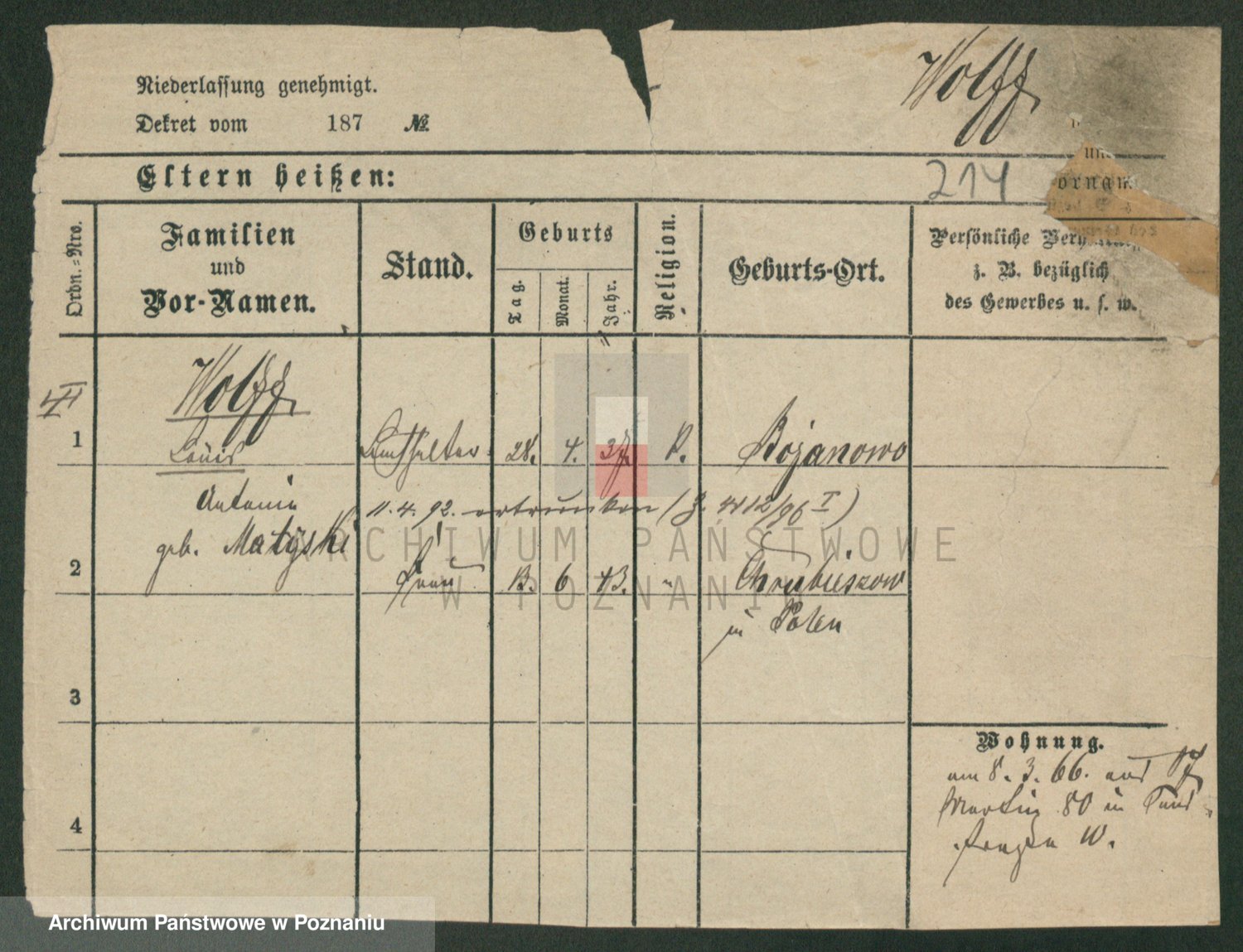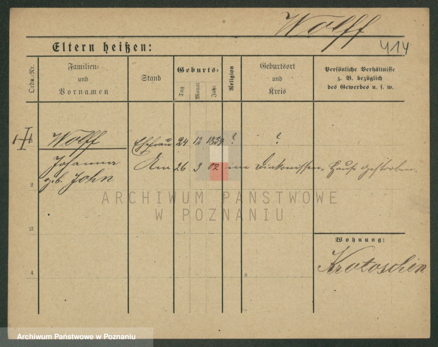 Wolff z d. Balcerska, Johanna