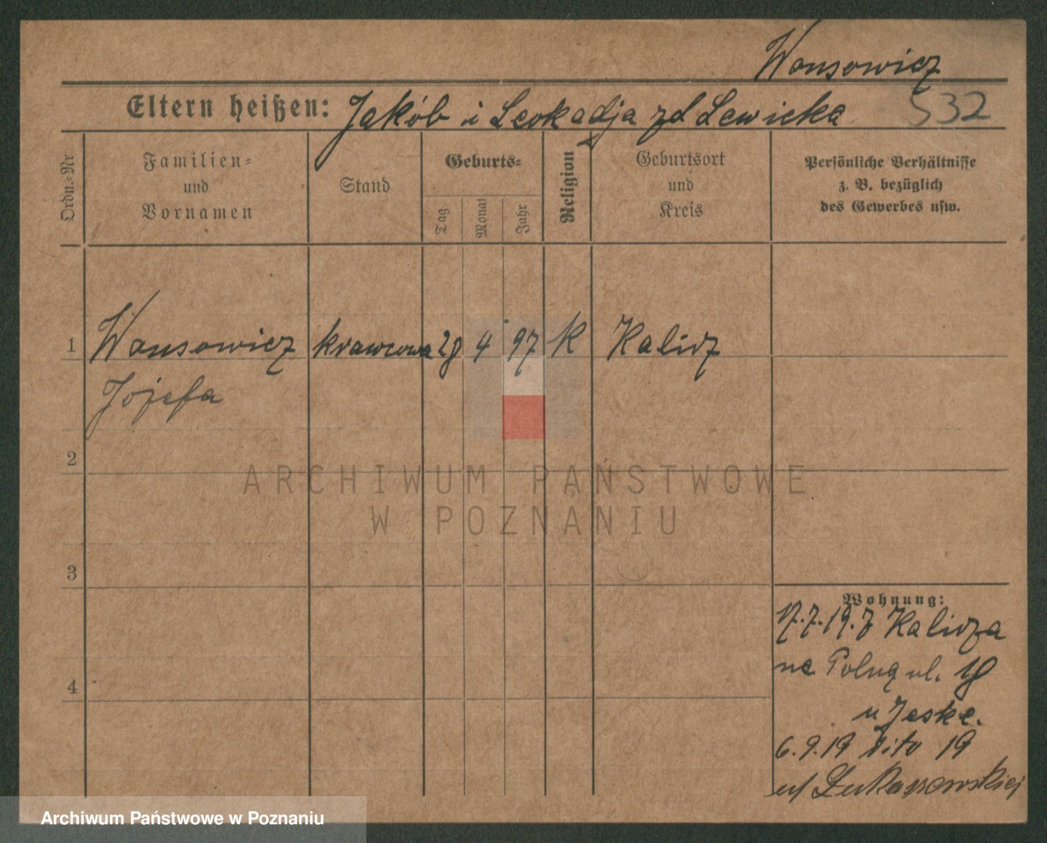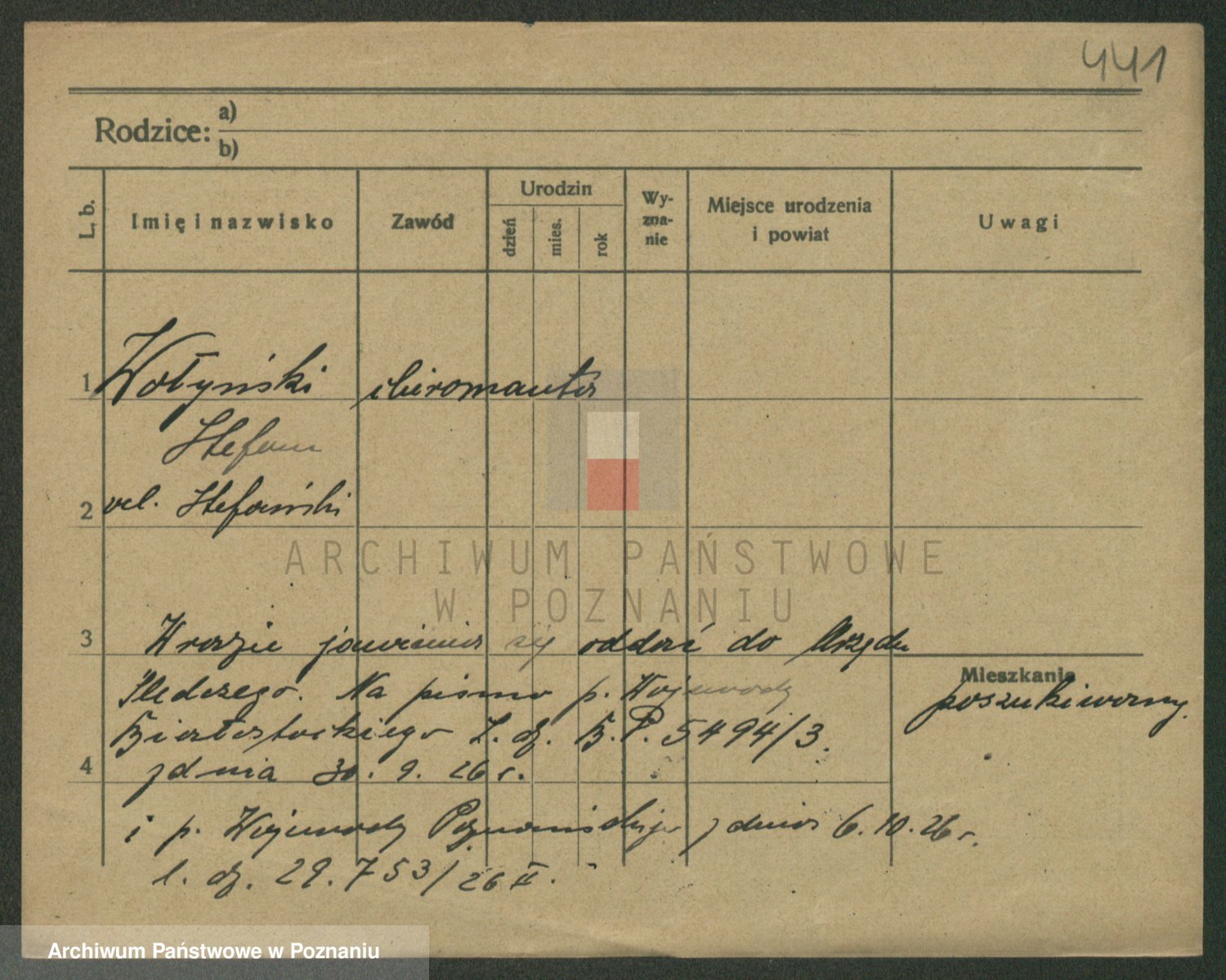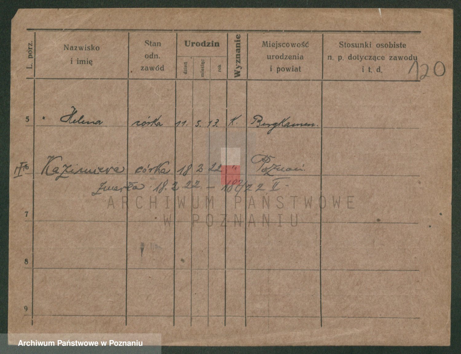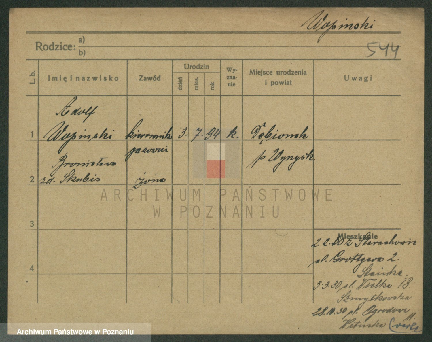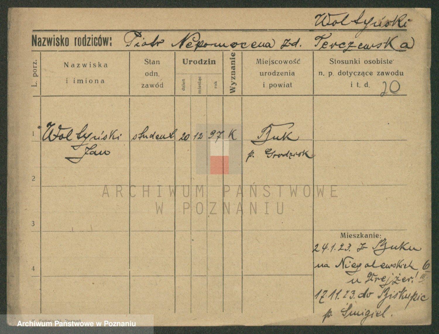 Podgląd karty osobowej dostępny jest po kliknięciu na nazwisko lub ikonkę karty. Można dokonywać powiększenia (ikony na górze) lub przechodzić między kolejnymi skanami (strzałki po bokach).