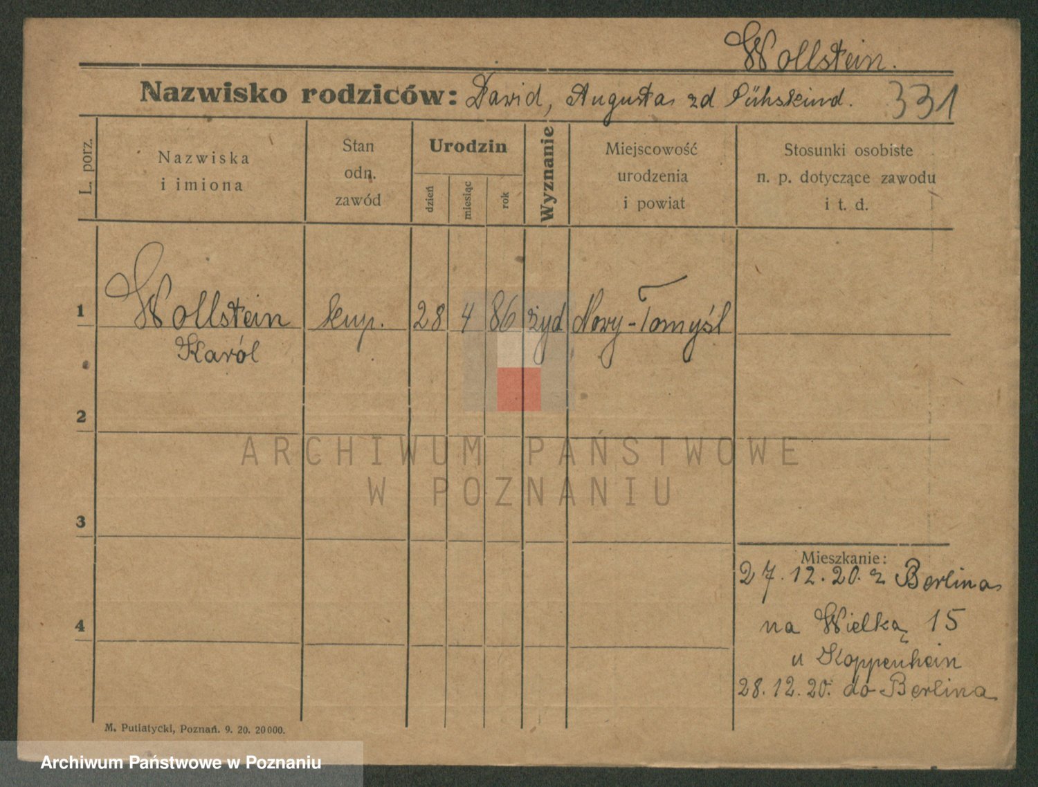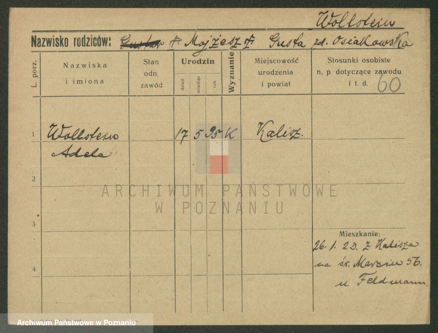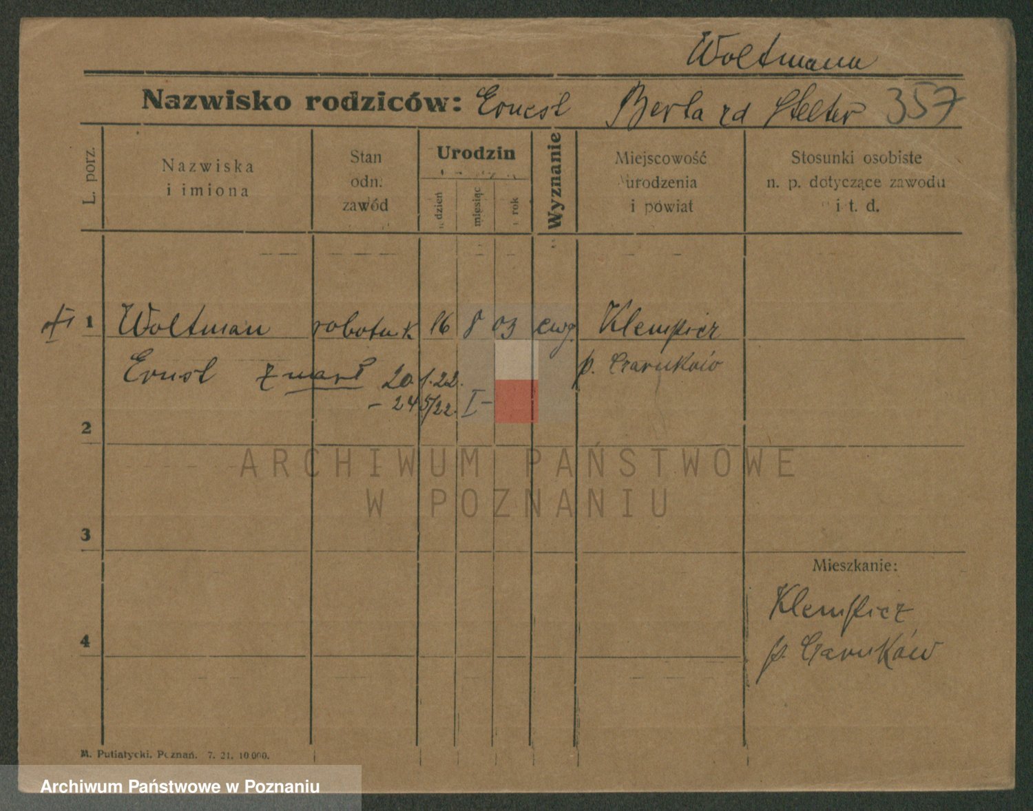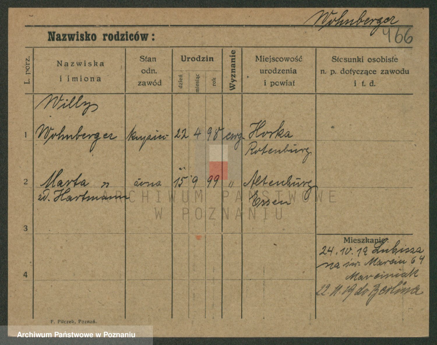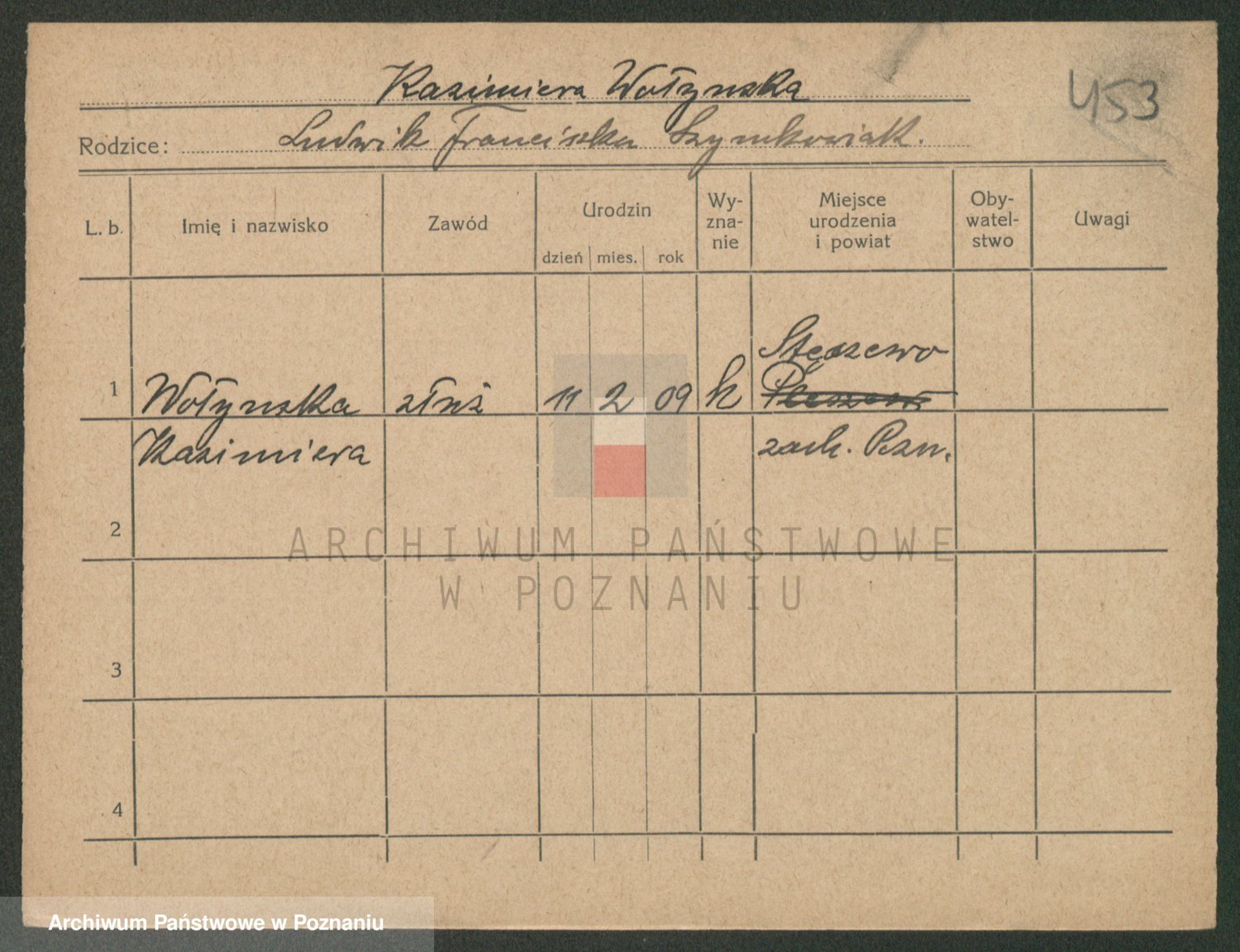 Podgląd karty osobowej dostępny jest po kliknięciu na nazwisko lub ikonkę karty. Można dokonywać powiększenia (ikony na górze) lub przechodzić między kolejnymi skanami (strzałki po bokach).